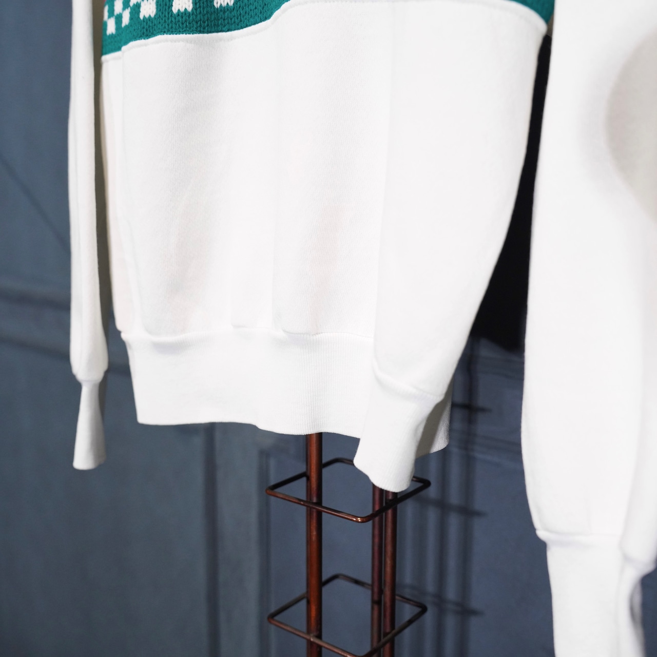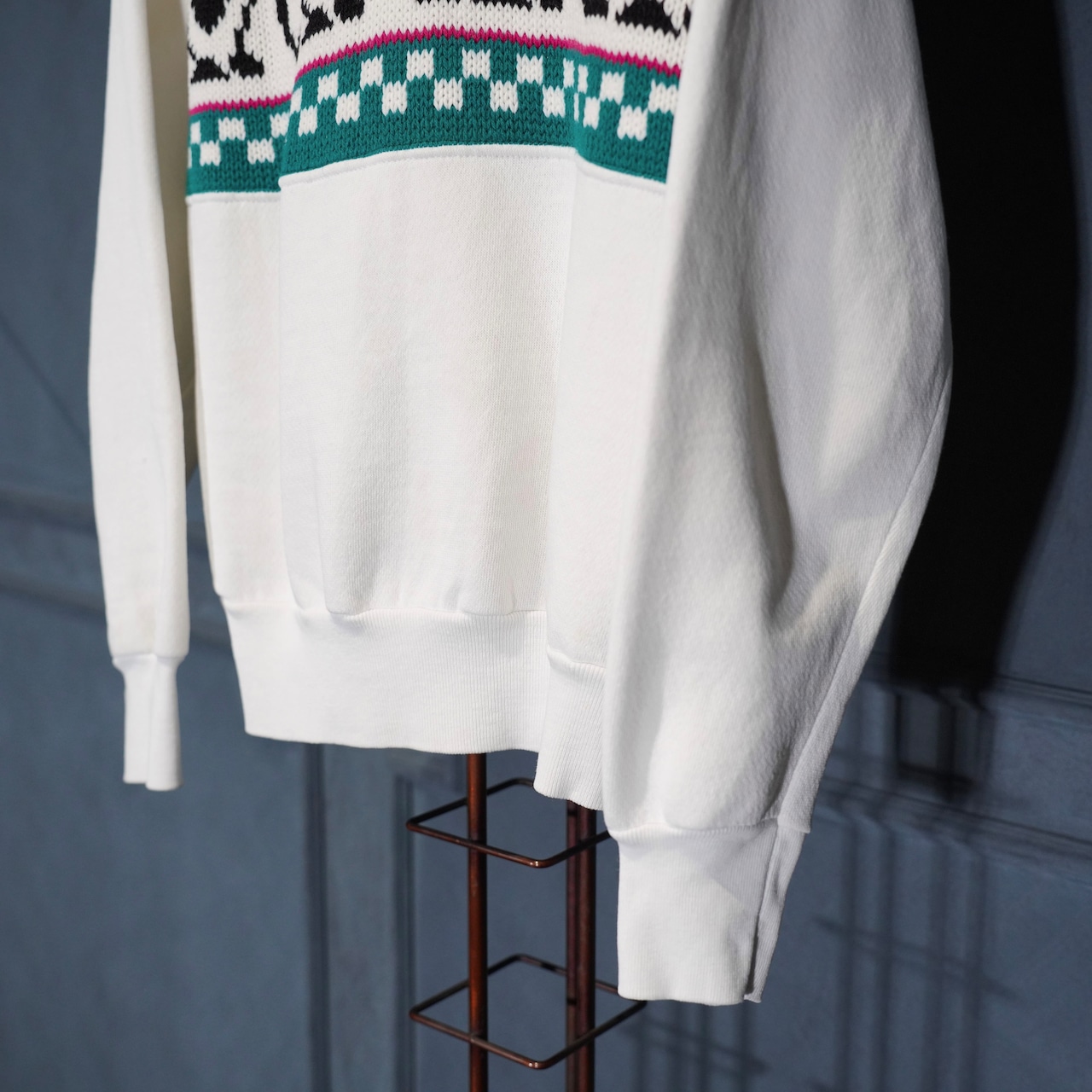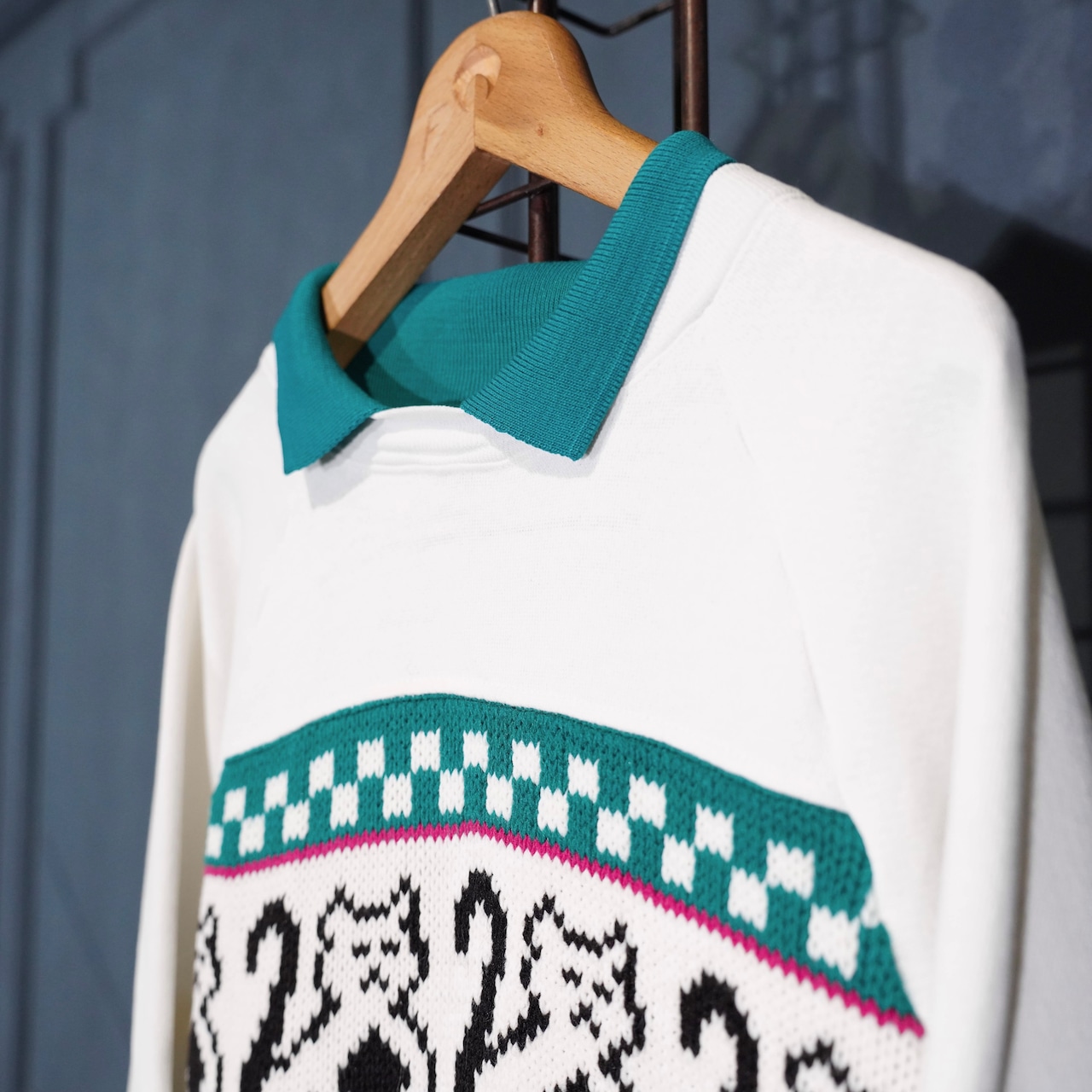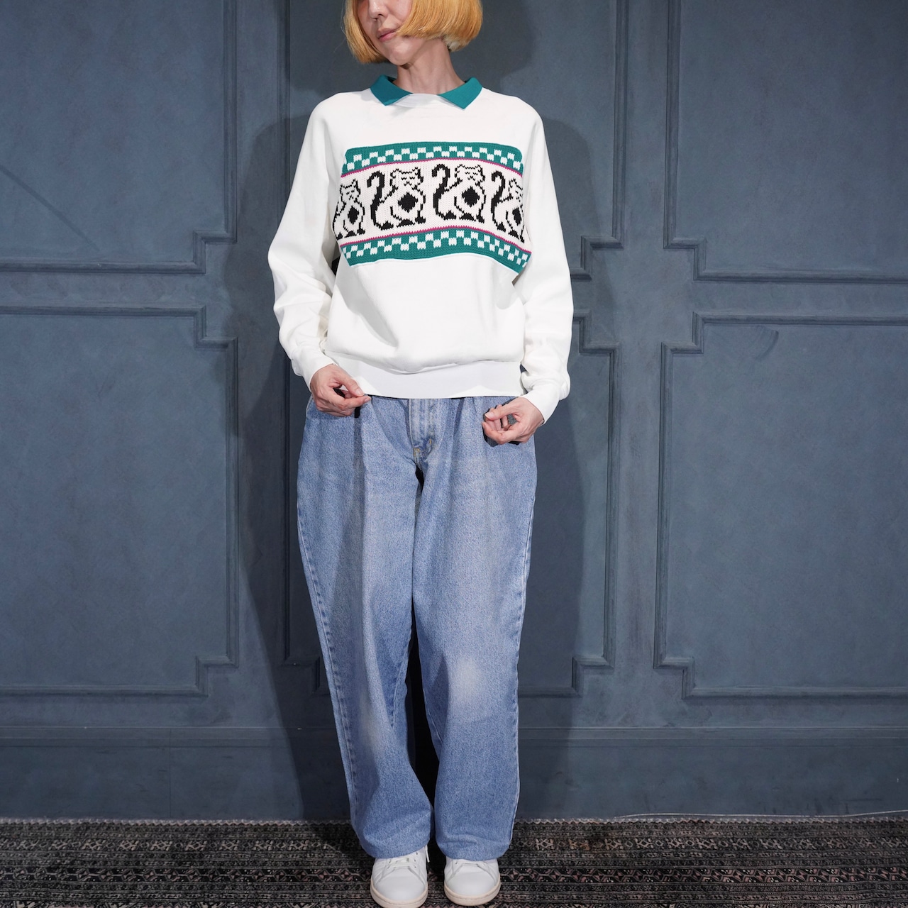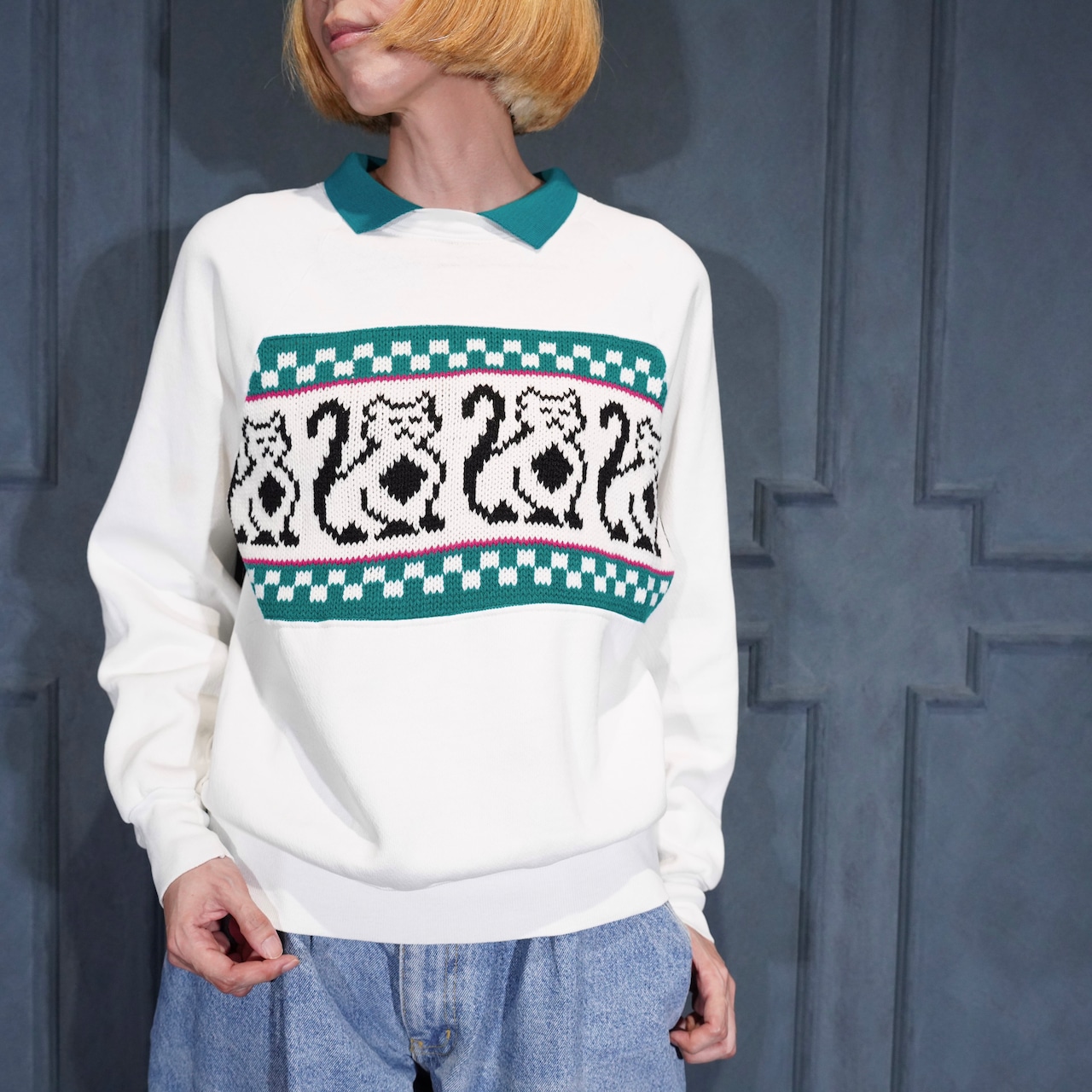 USA VINTAGE Heartland CAT DESIGN KNIT SWITCHED DESIGN POLO SWEAT SHIRT/アメリカ古着にゃんこデザインニット切替ポロスウェット
