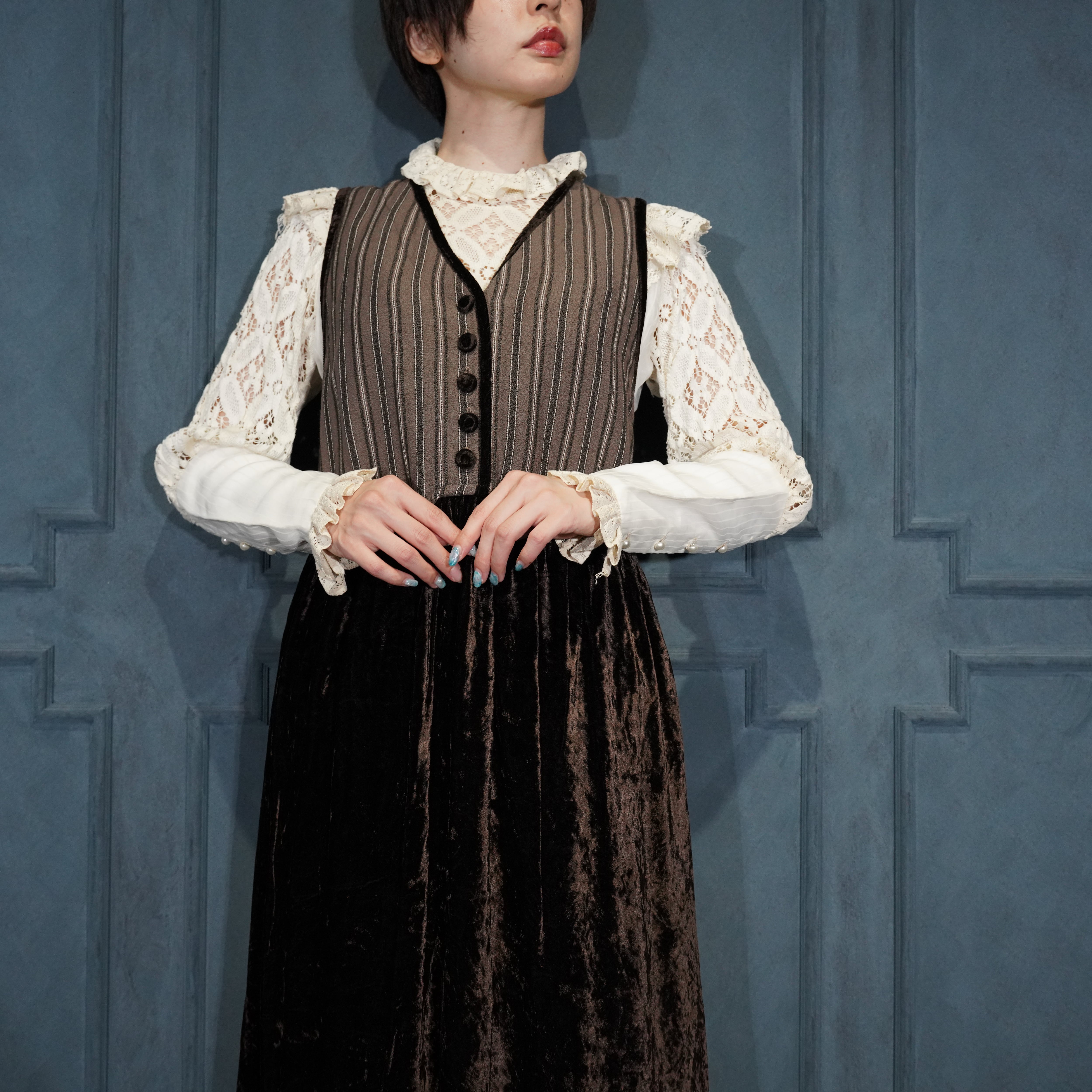 EU VINTAGE free WEAR by johnathon hoenscheidt VELOUR SWITCHED DESIGN NO SLEEVE ONE PIECE/ヨーロッパ古着ベロア切替デザインノースリーブワンピース