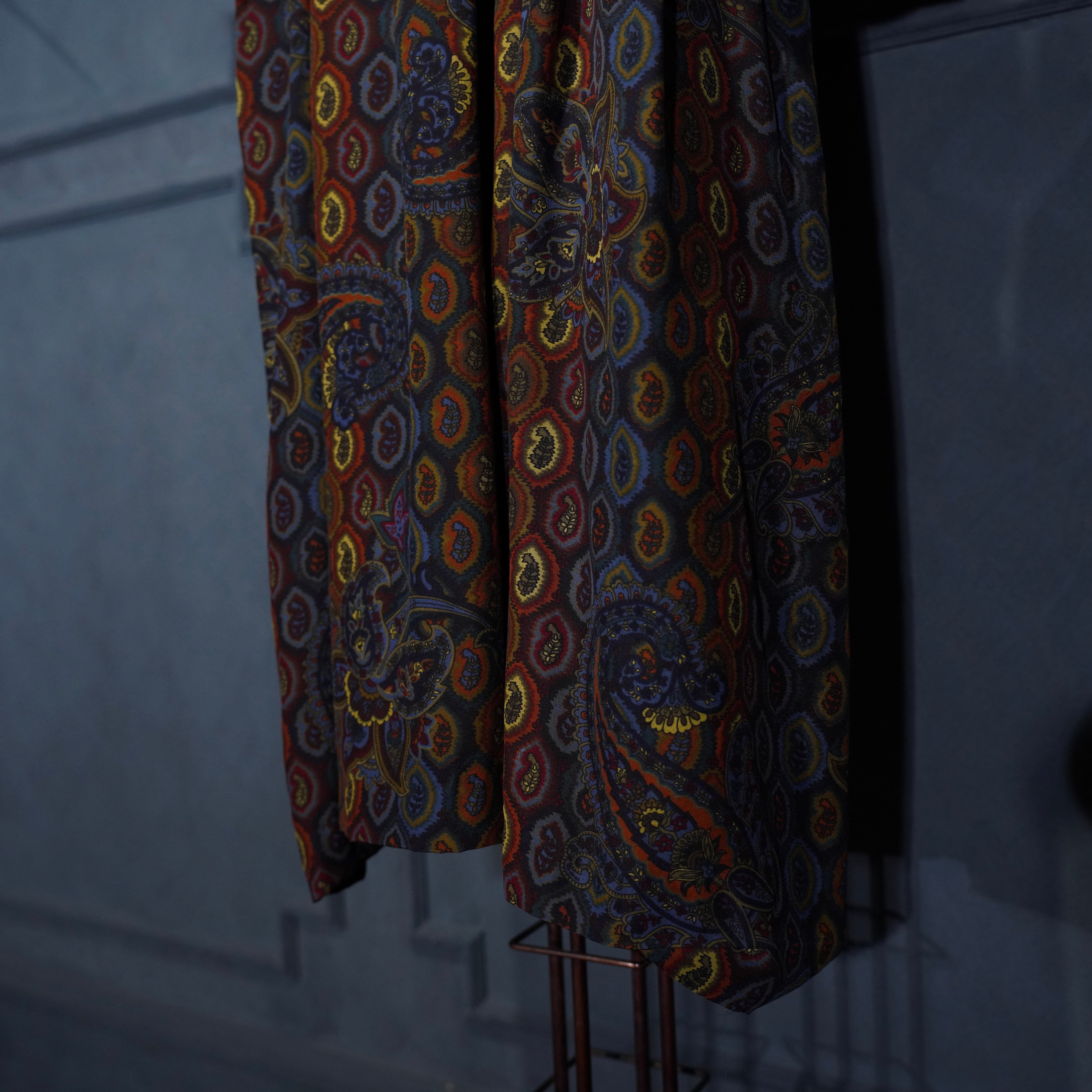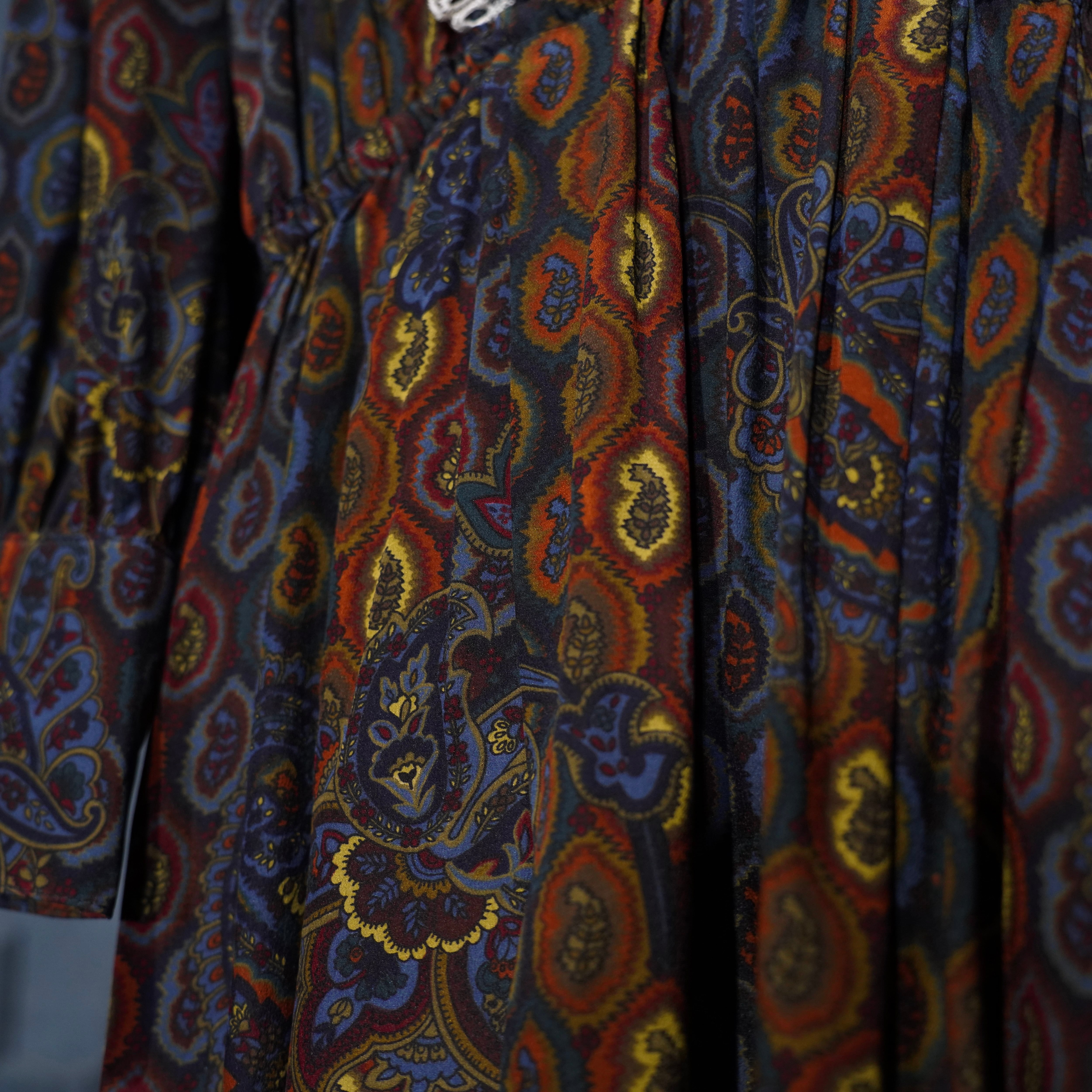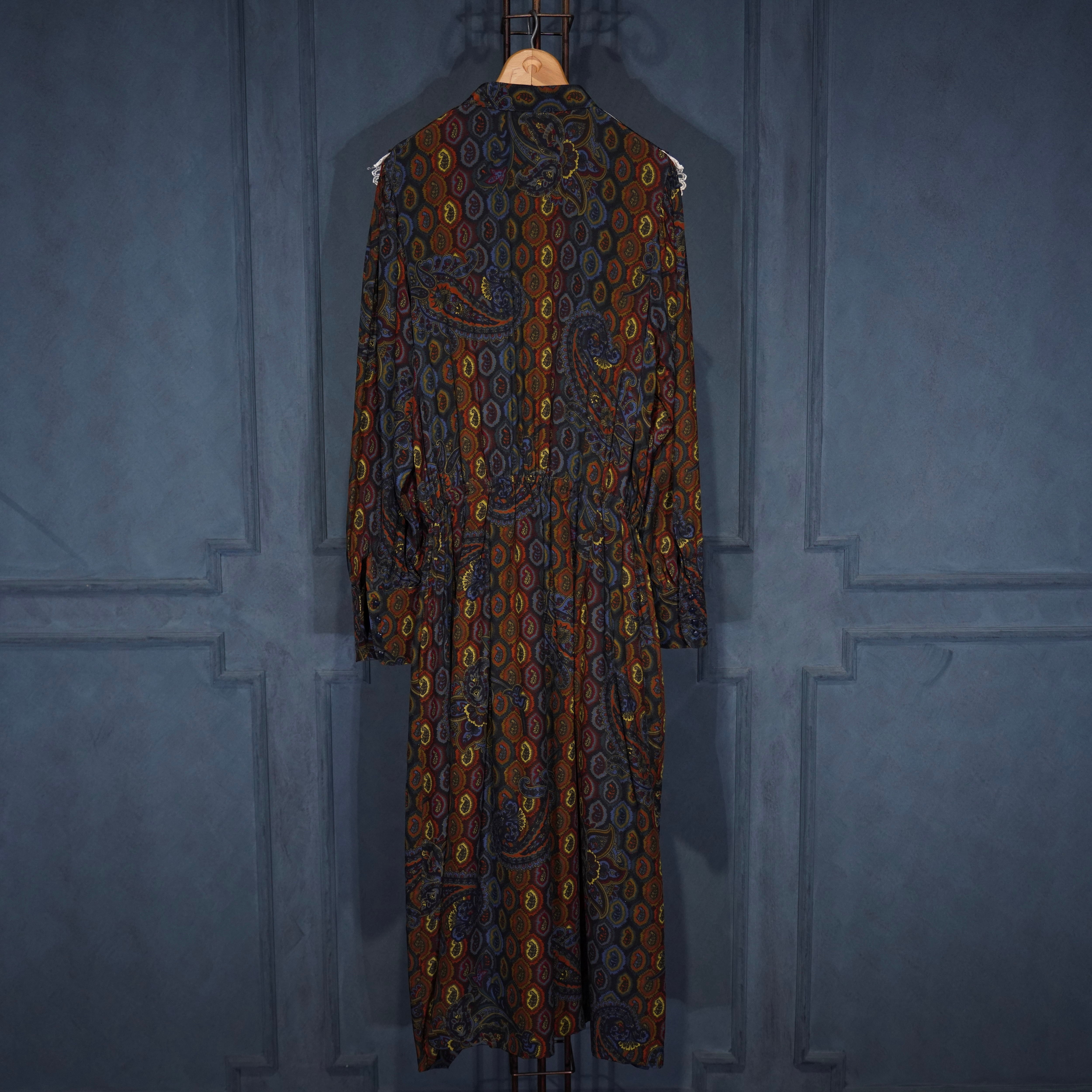 EU VINTAGE DRESS WITHJOY by Trixi Schober PAISLEY PATTERNED LACE FRILL DESIGN SILK ONE PIECE/ヨーロッパ古着ペイズリー柄レースフリルデザインシルクワンピース