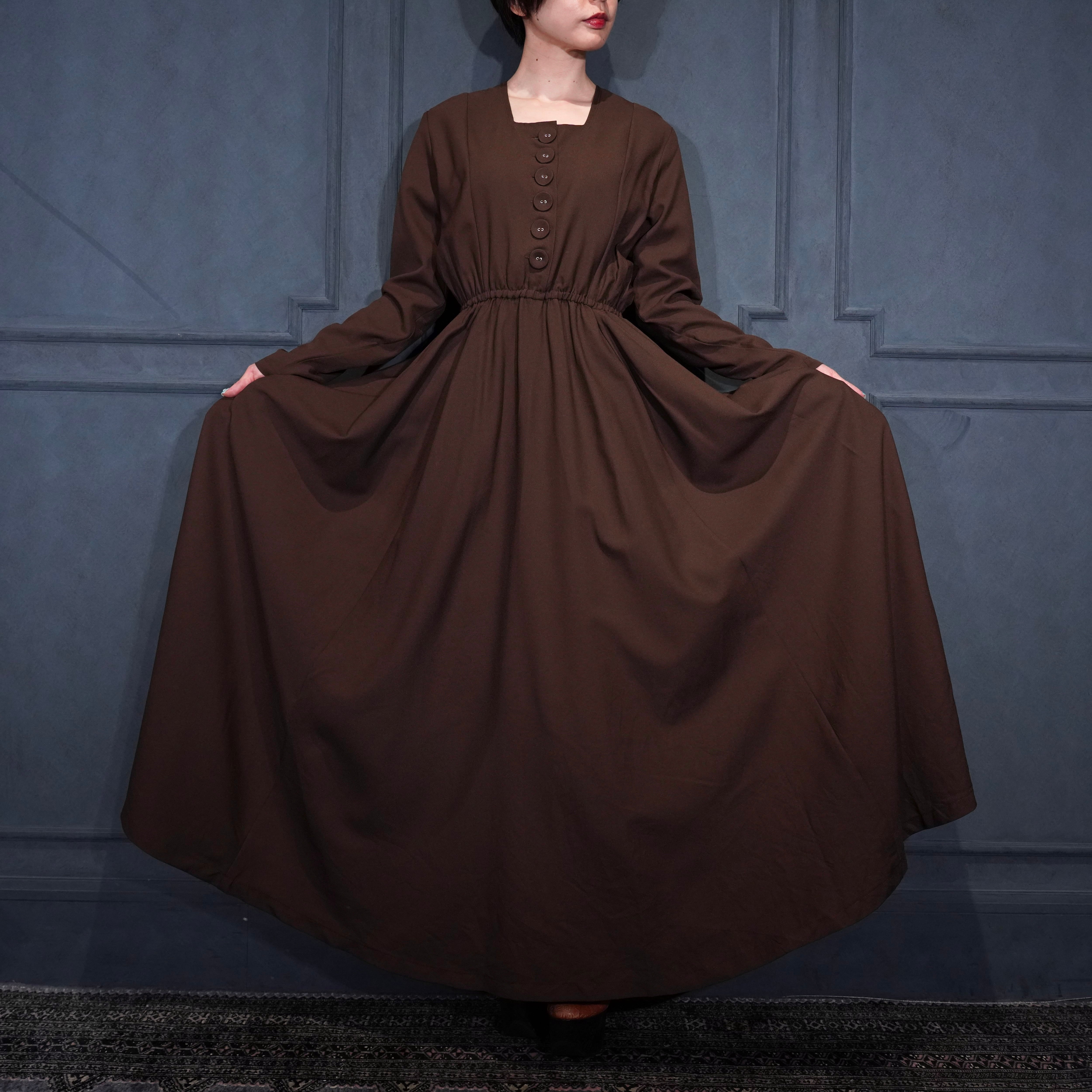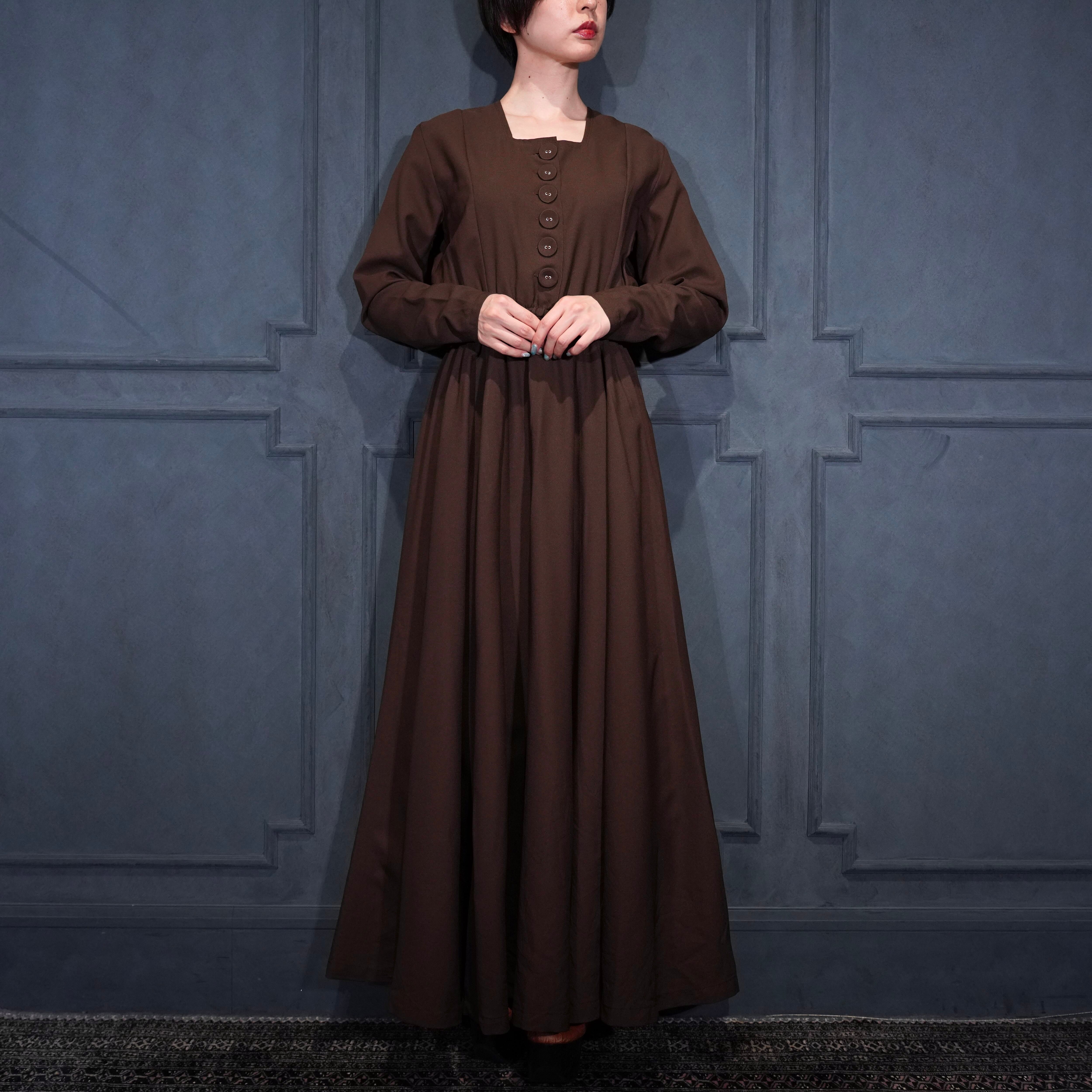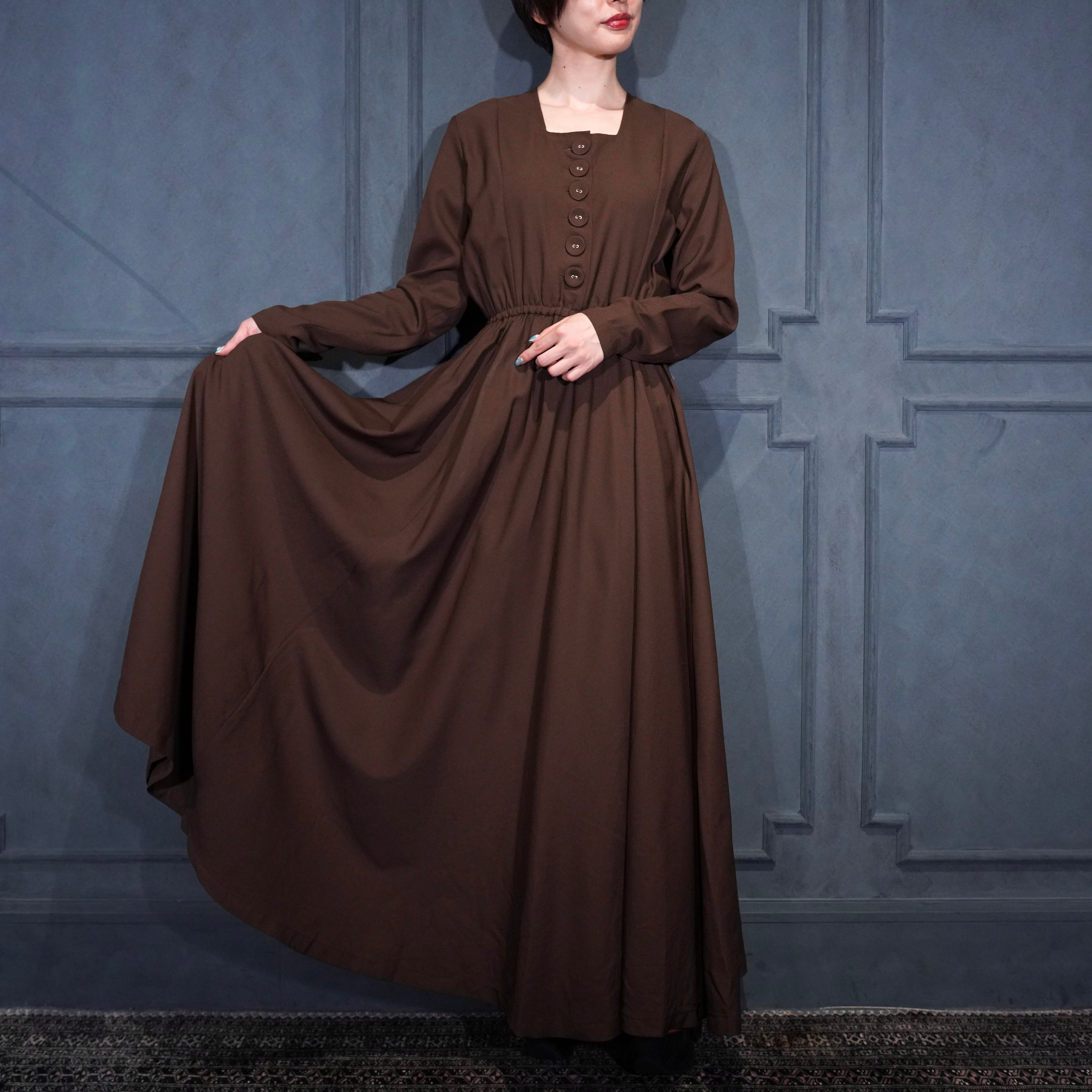EU VINTAGE BROWN COLOR FLARE DESIGN LONG ONE PIECE/ヨーロッパ古着ブラウンカラーフレアデザインロングワンピース