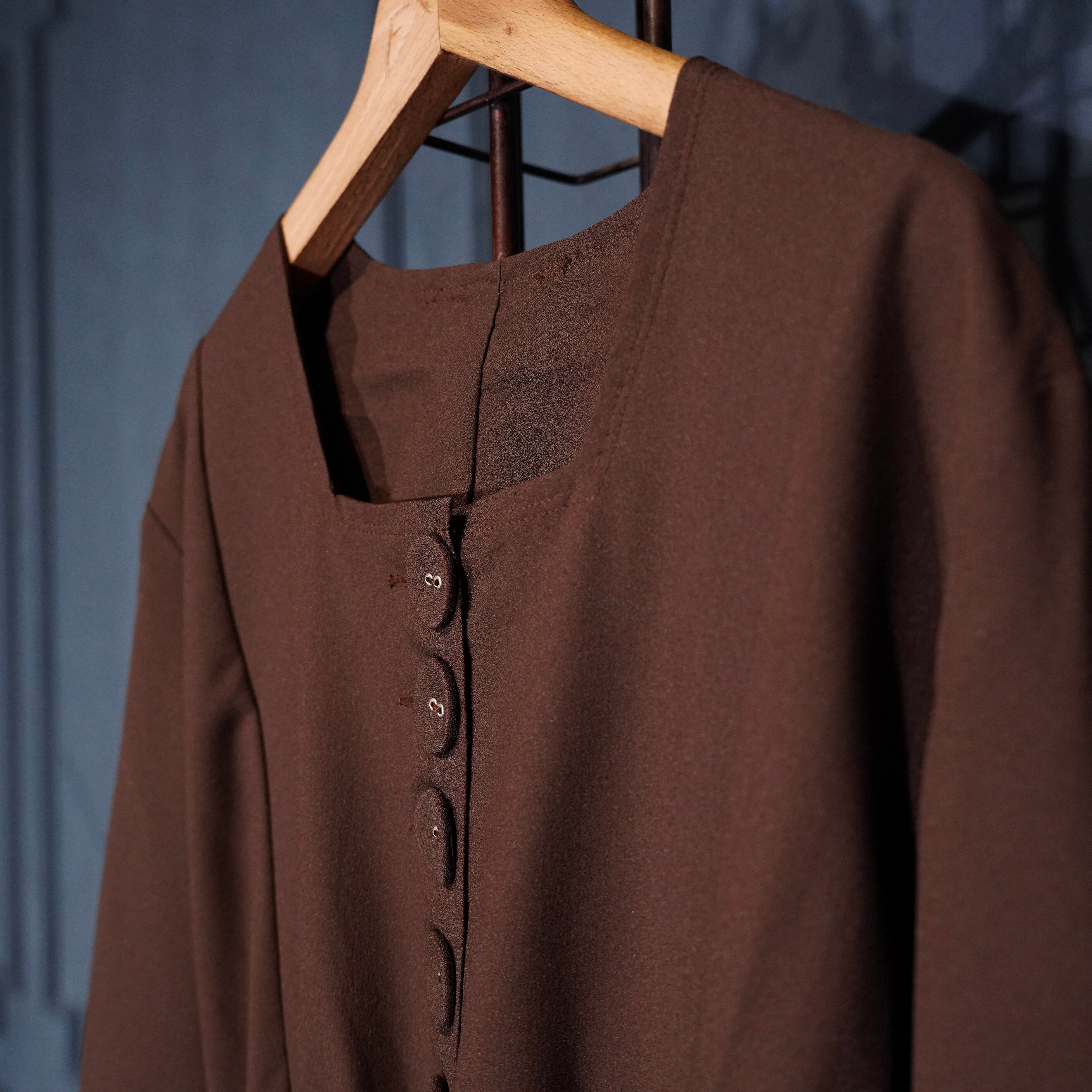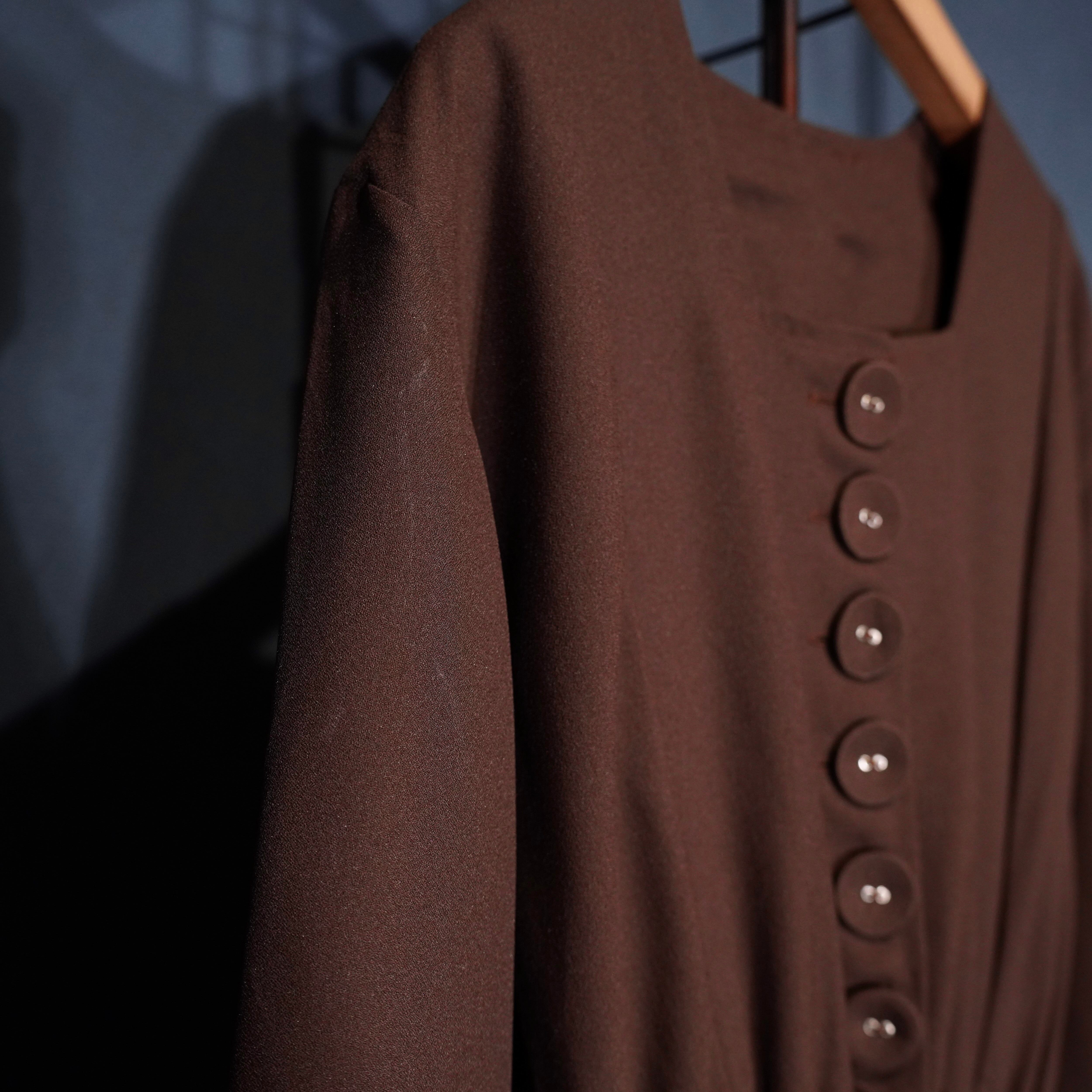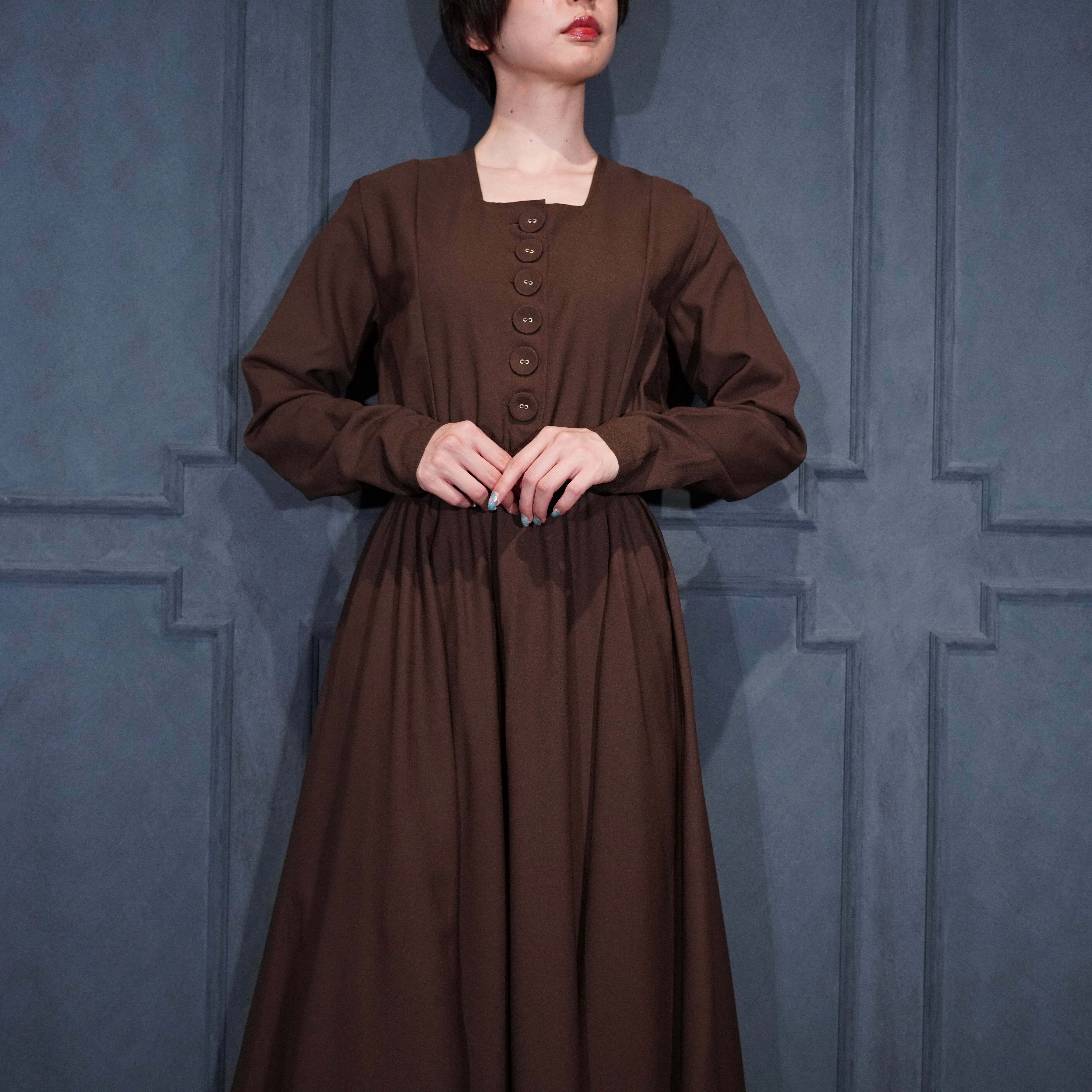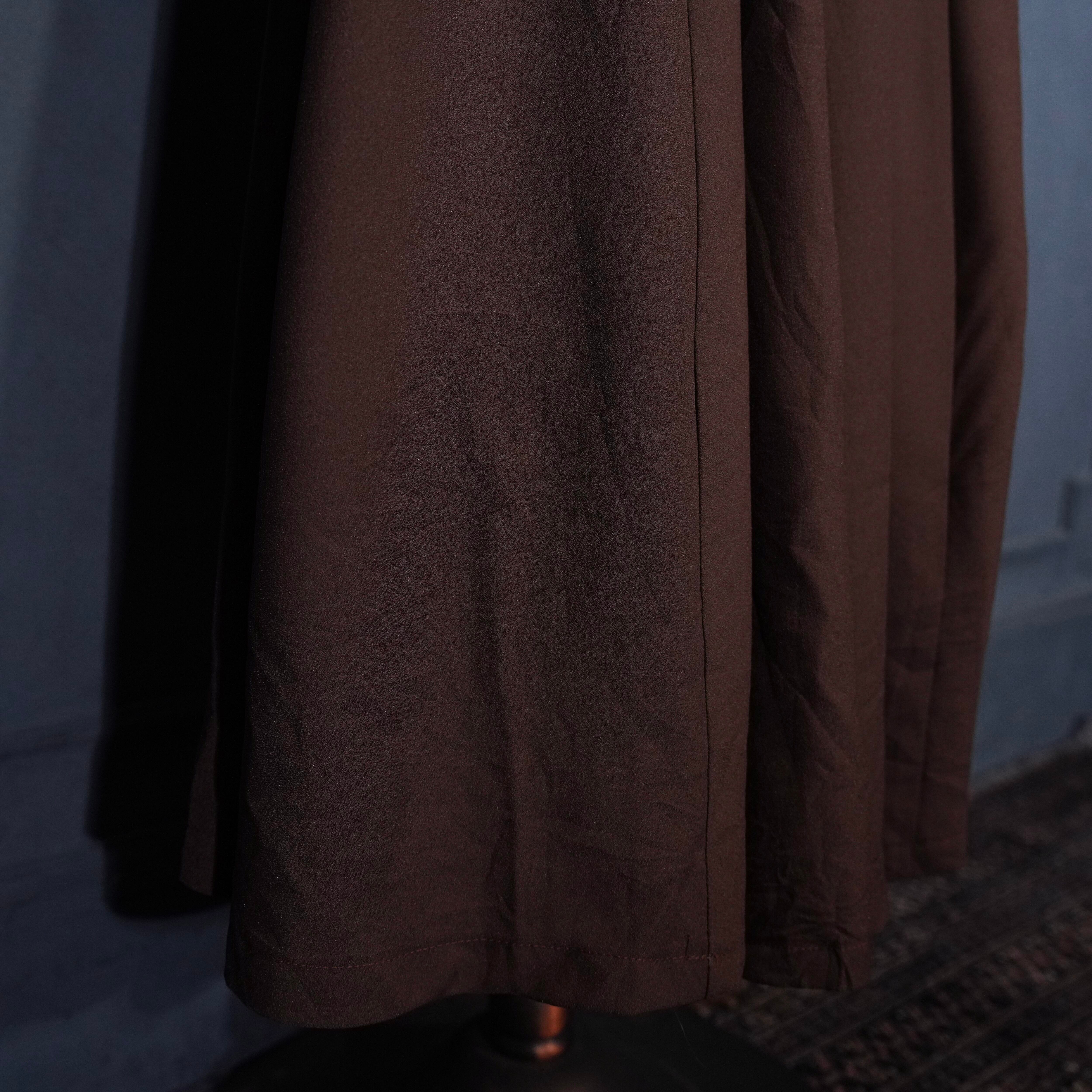 EU VINTAGE BROWN COLOR FLARE DESIGN LONG ONE PIECE/ヨーロッパ古着ブラウンカラーフレアデザインロングワンピース