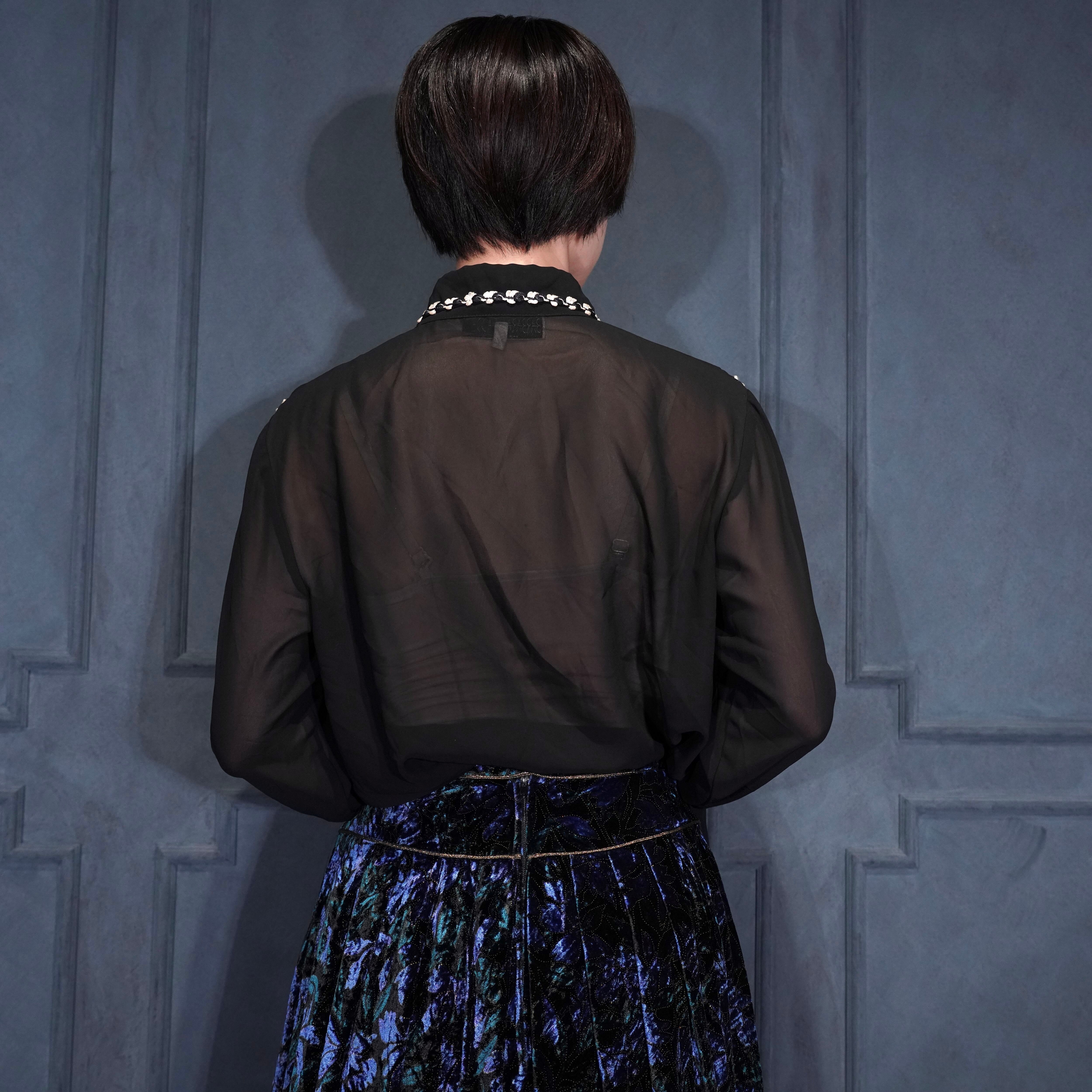 EU VINTAGE BARBARA TADDEI BIG FRILL DESIGN SHEER BLOUSE MADE IN ITALY/ヨーロッパ古着ビッグフリルデザインシアーブラウス