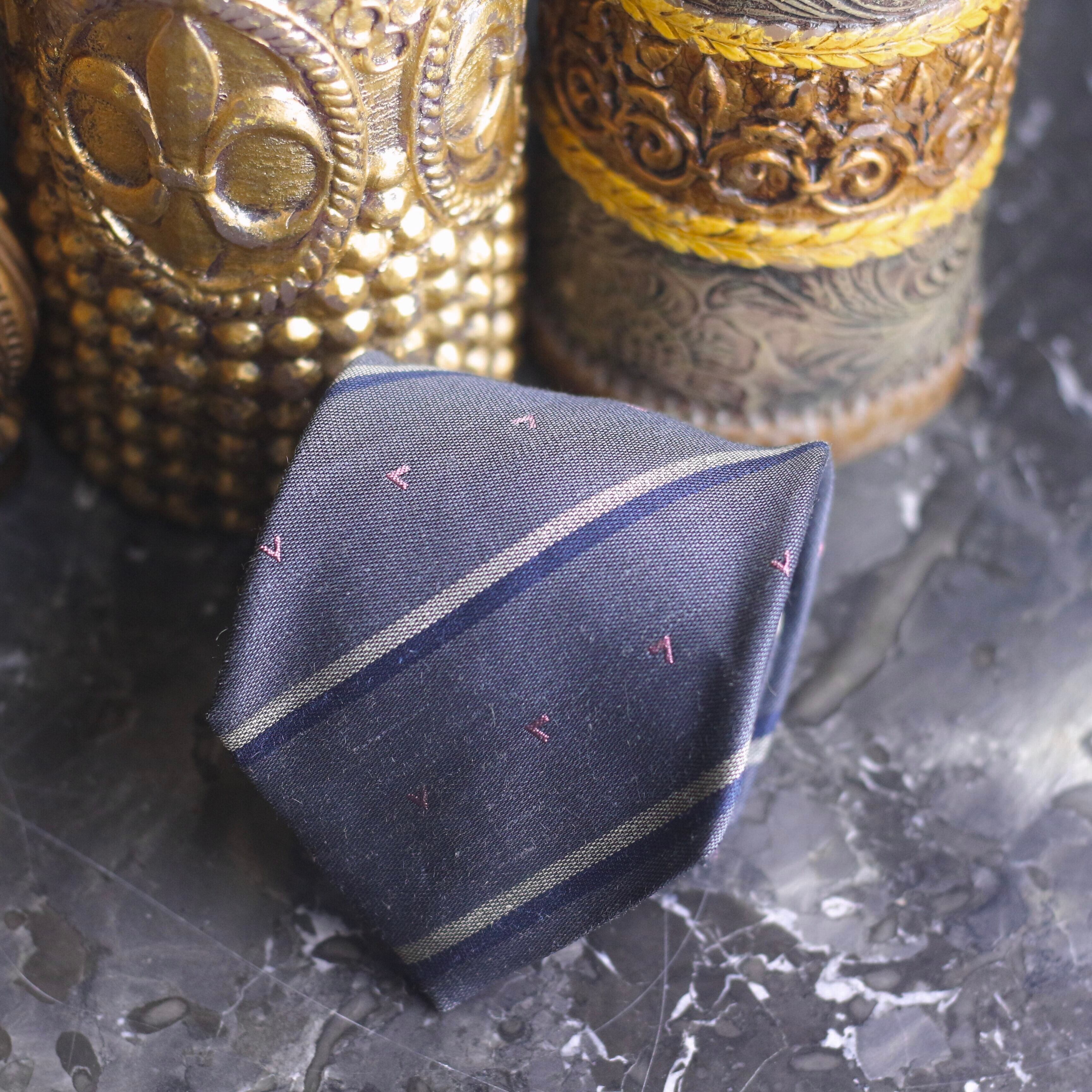 RETRO VINTAGE ANGELO SILK LINEN REGIMENTAL TIE/レトロ古着シルクリネンレジメンタルネクタイ
