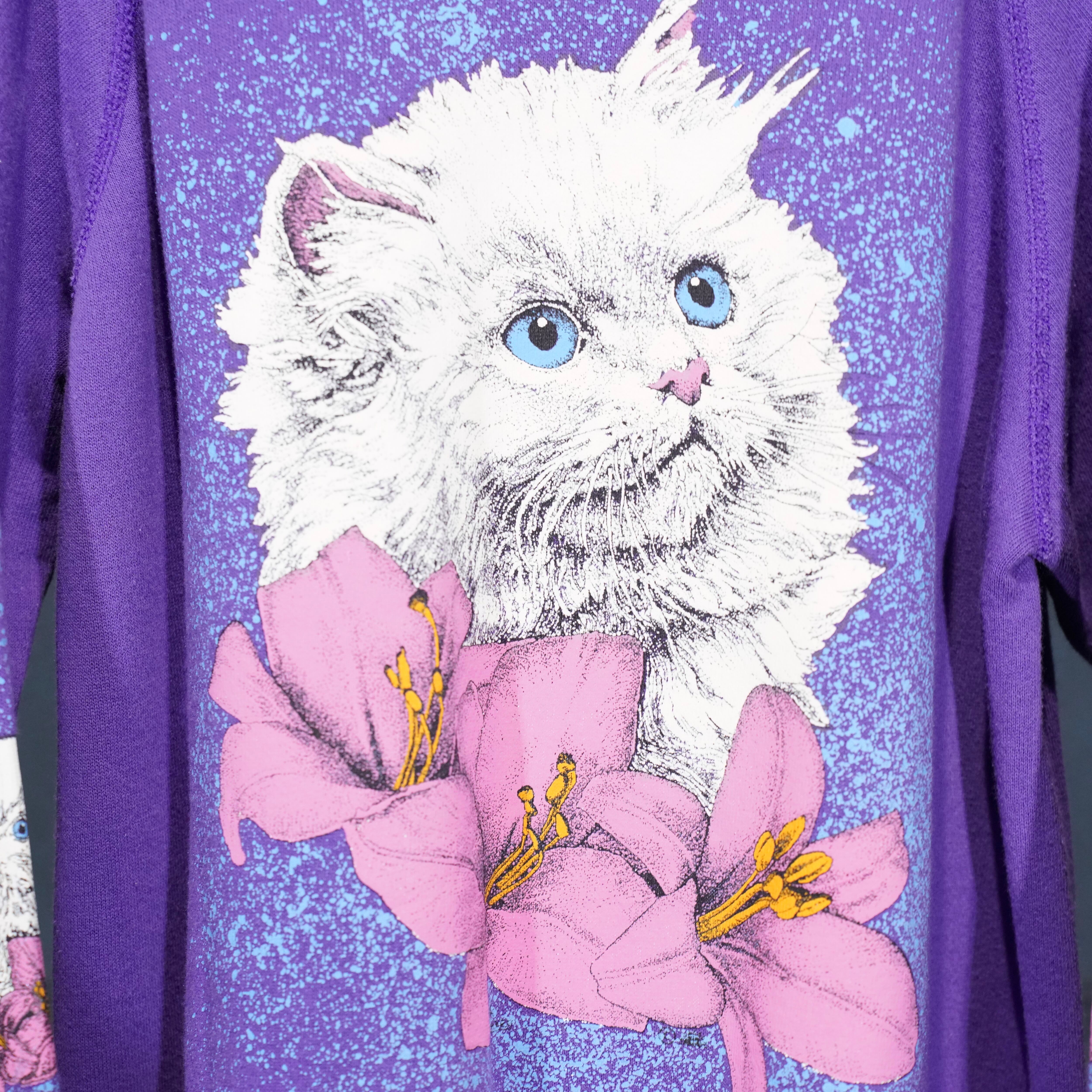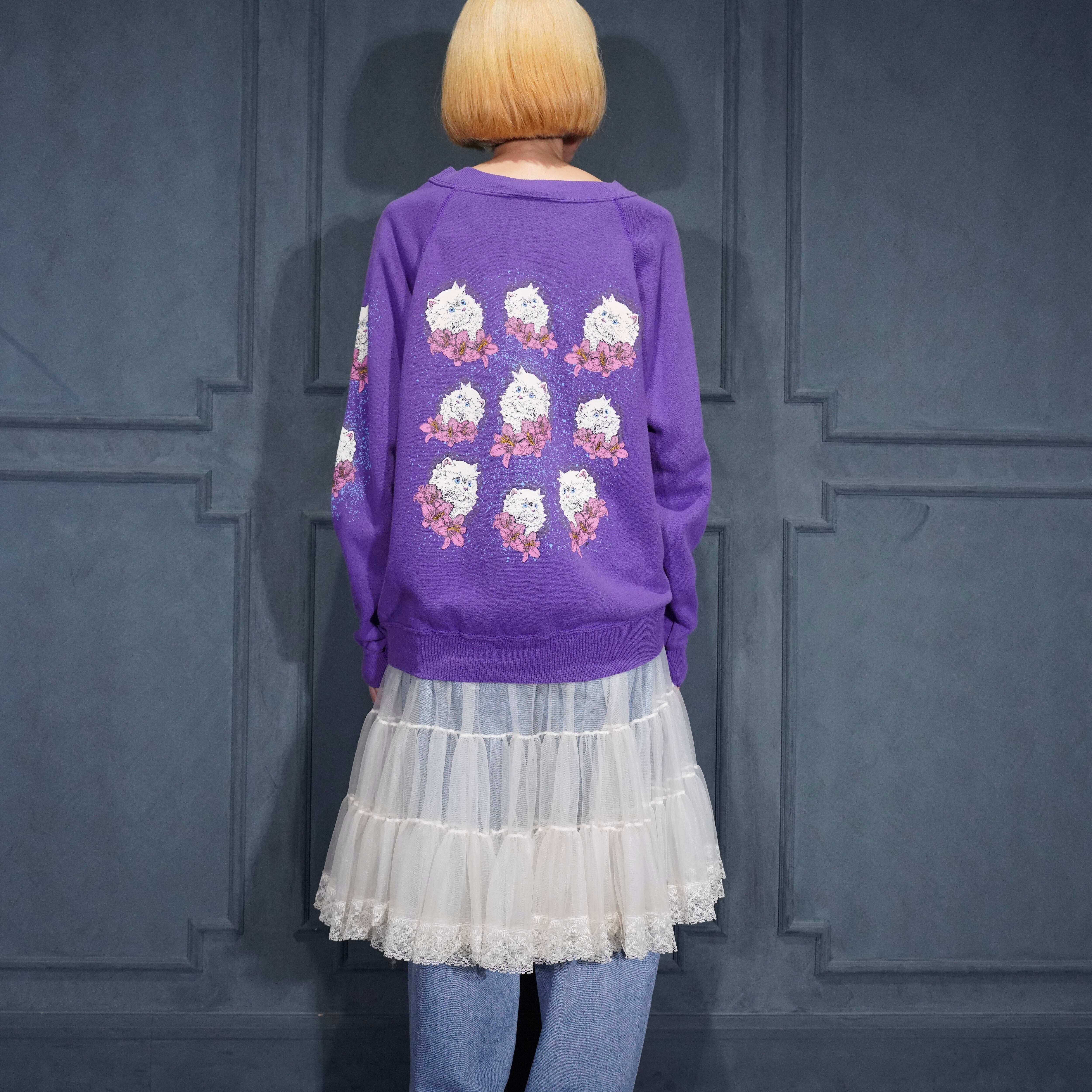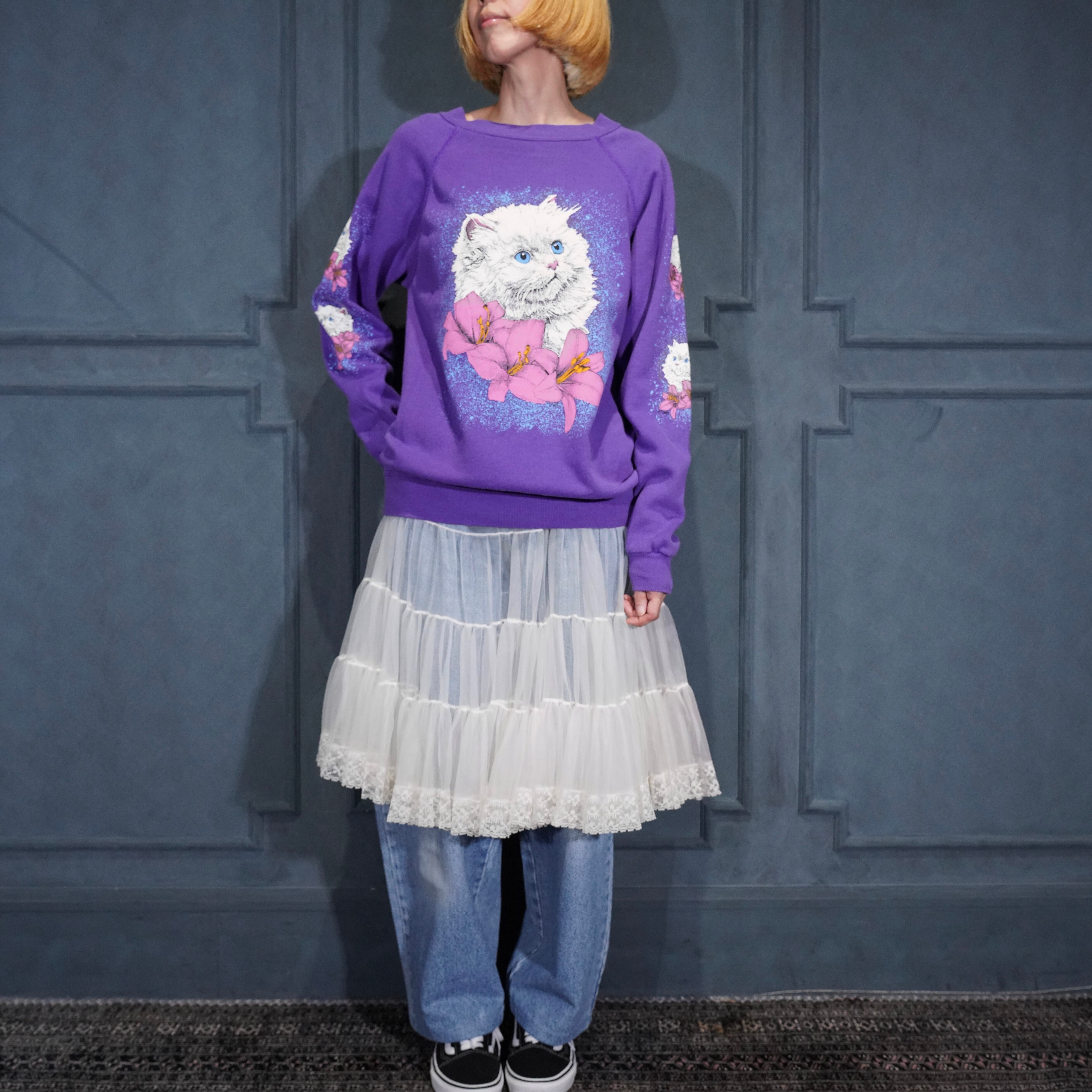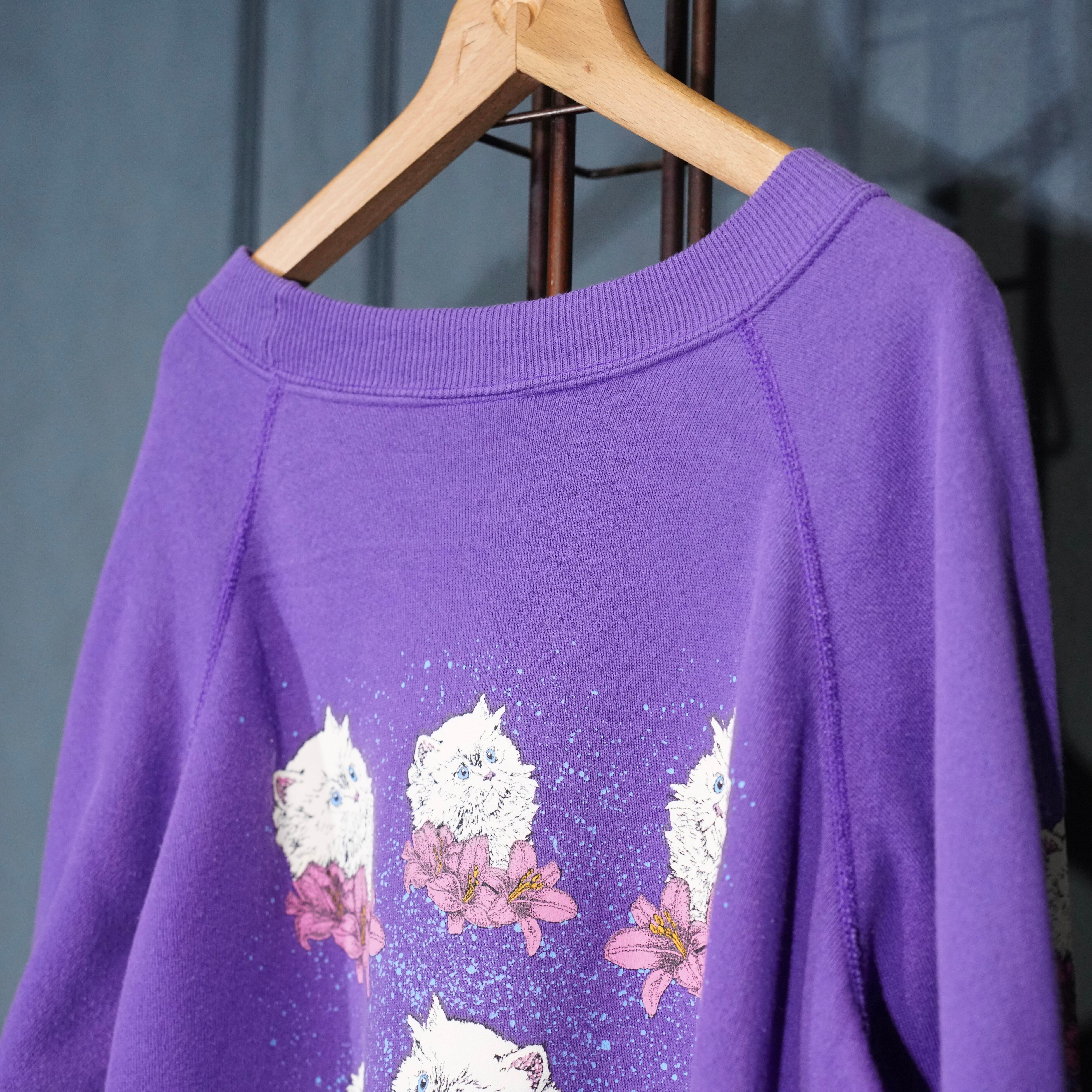 USA VINTAGE Hanes Her Way FLOWER CAT DOUBLE SIDED PRINT DESIGN SWEAT SHIRT/アメリカ古着お花にゃんこ両面プリントデザインスウェット