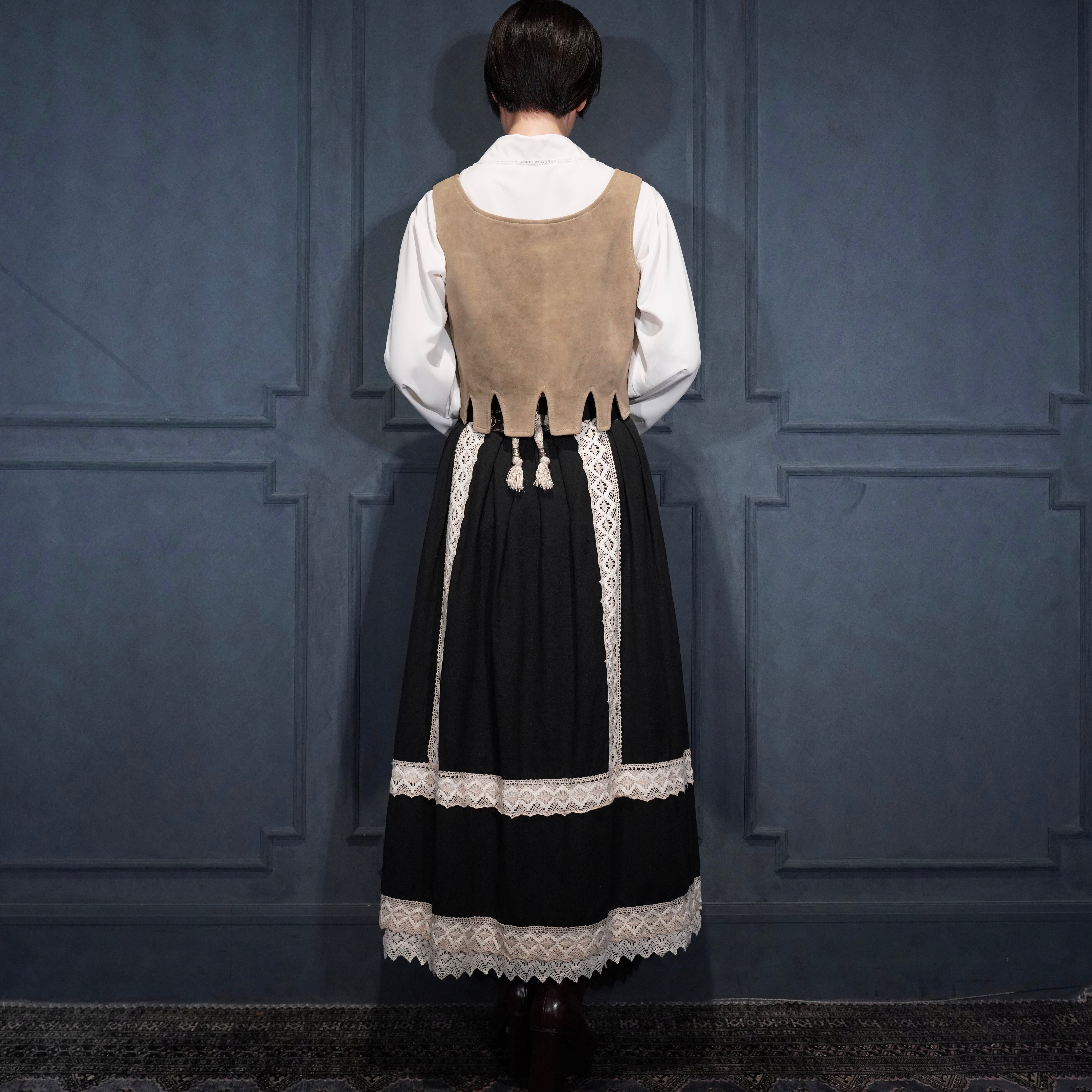EU VINTAGE wimmer DEFORMATION DESIGN CORSET LIKE LEATHER TYROLEAN VEST/ヨーロッパ古着変形デザインコルセット風レザーチロリアンベスト