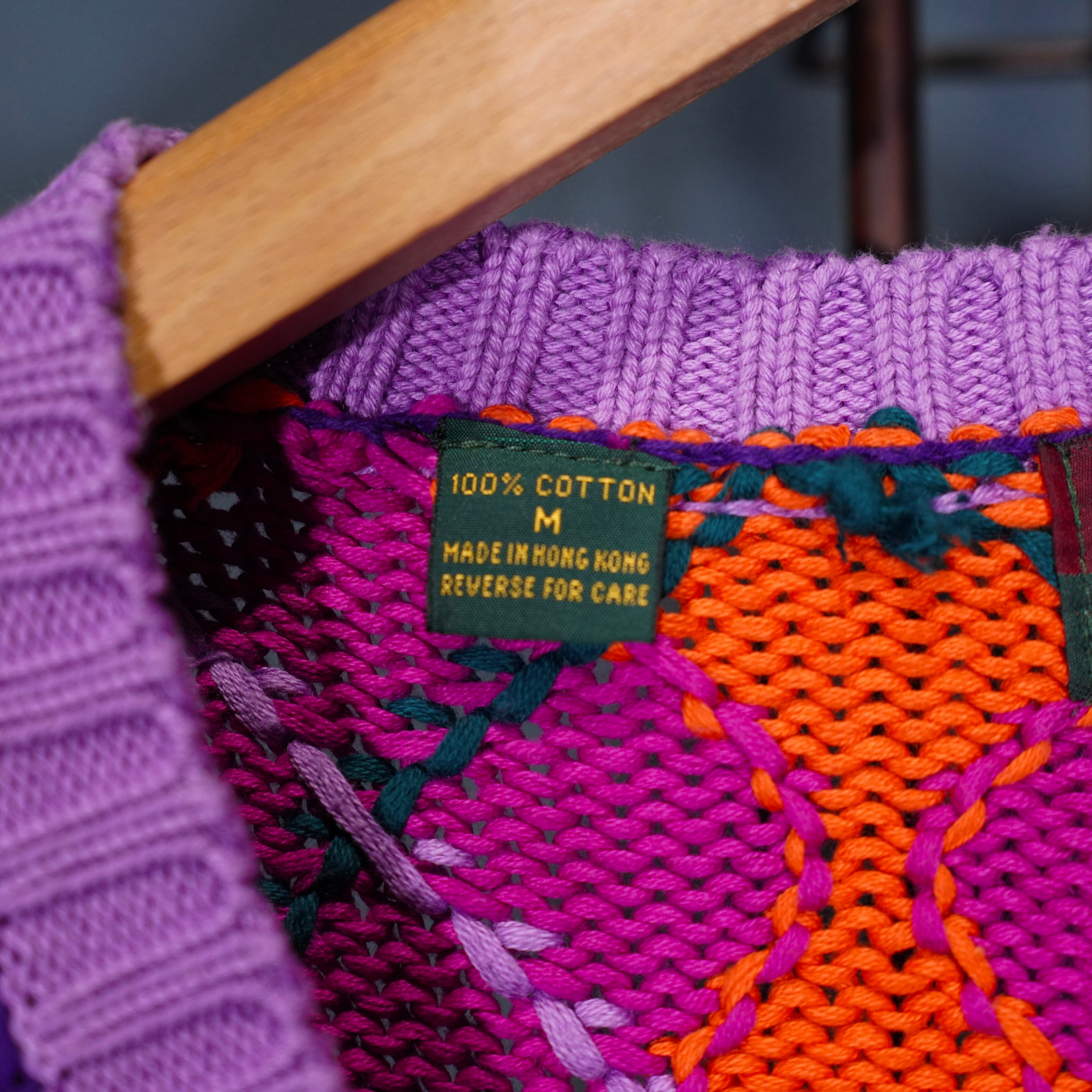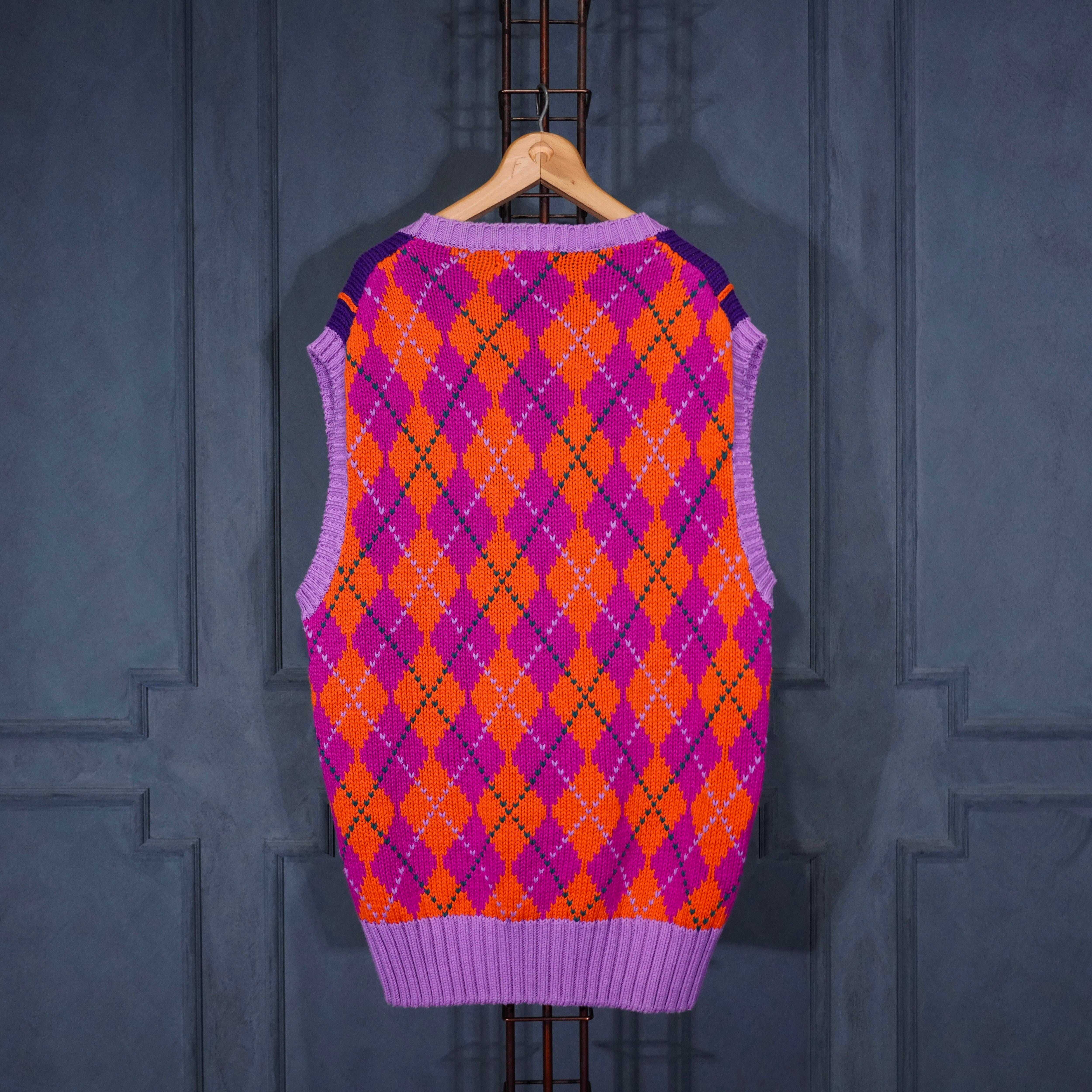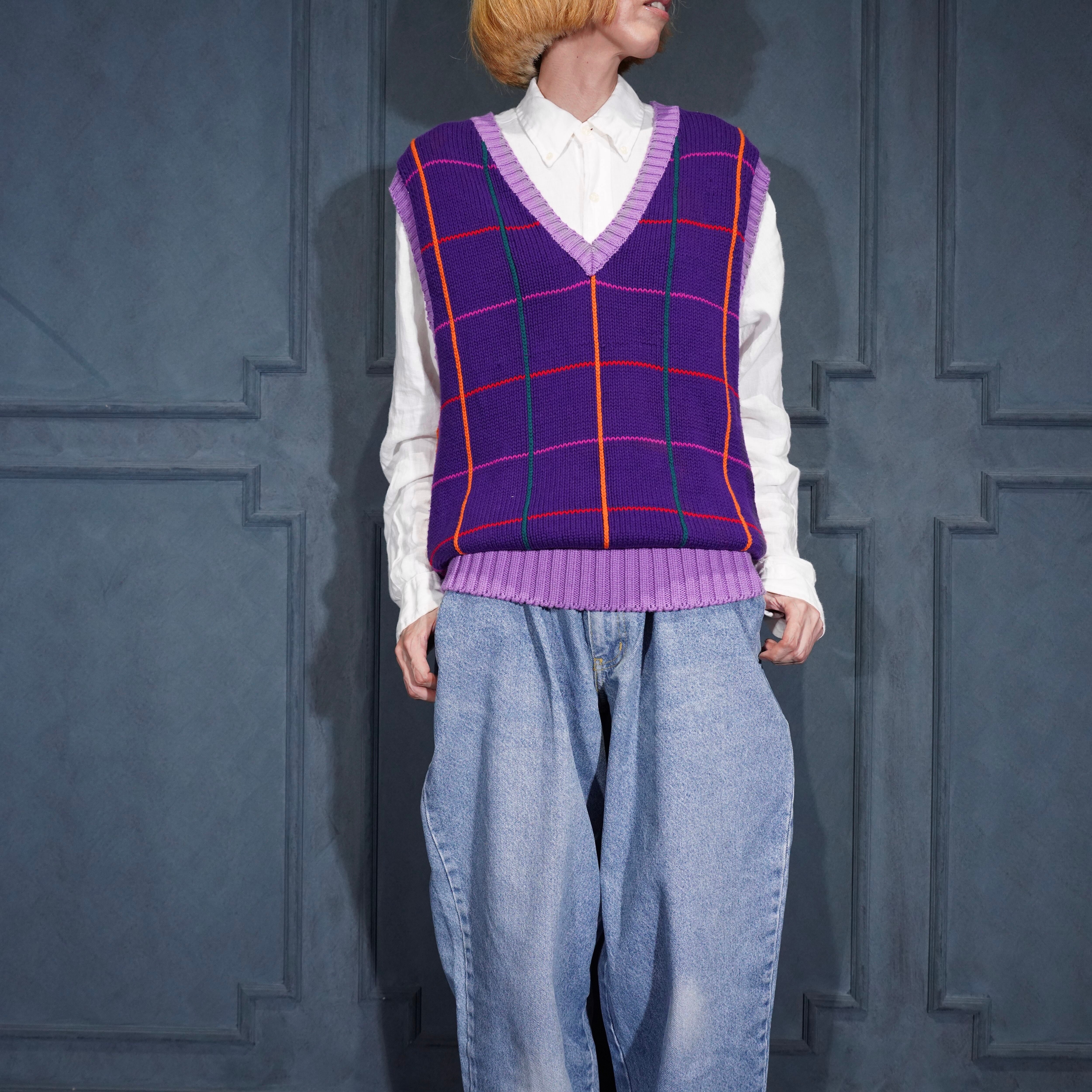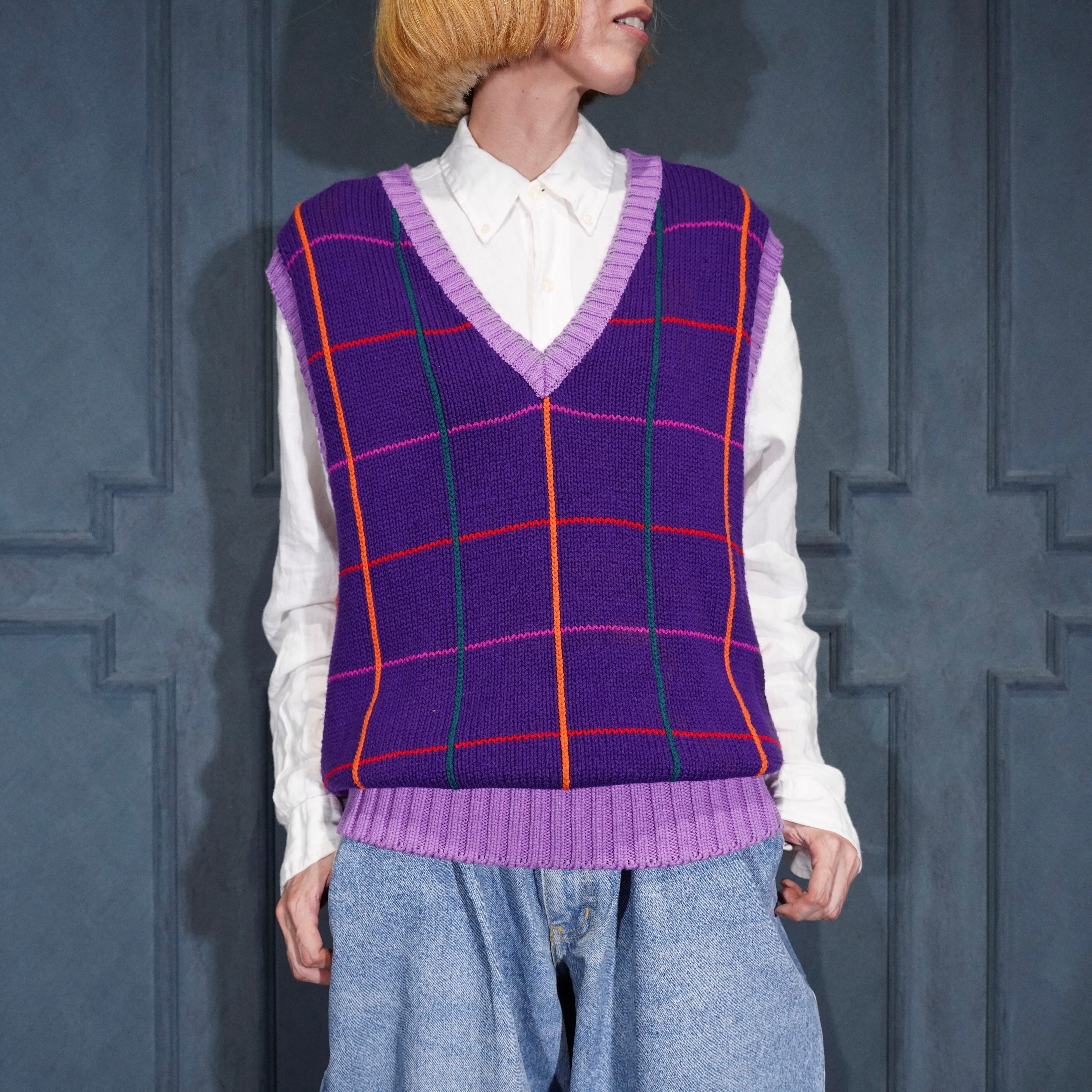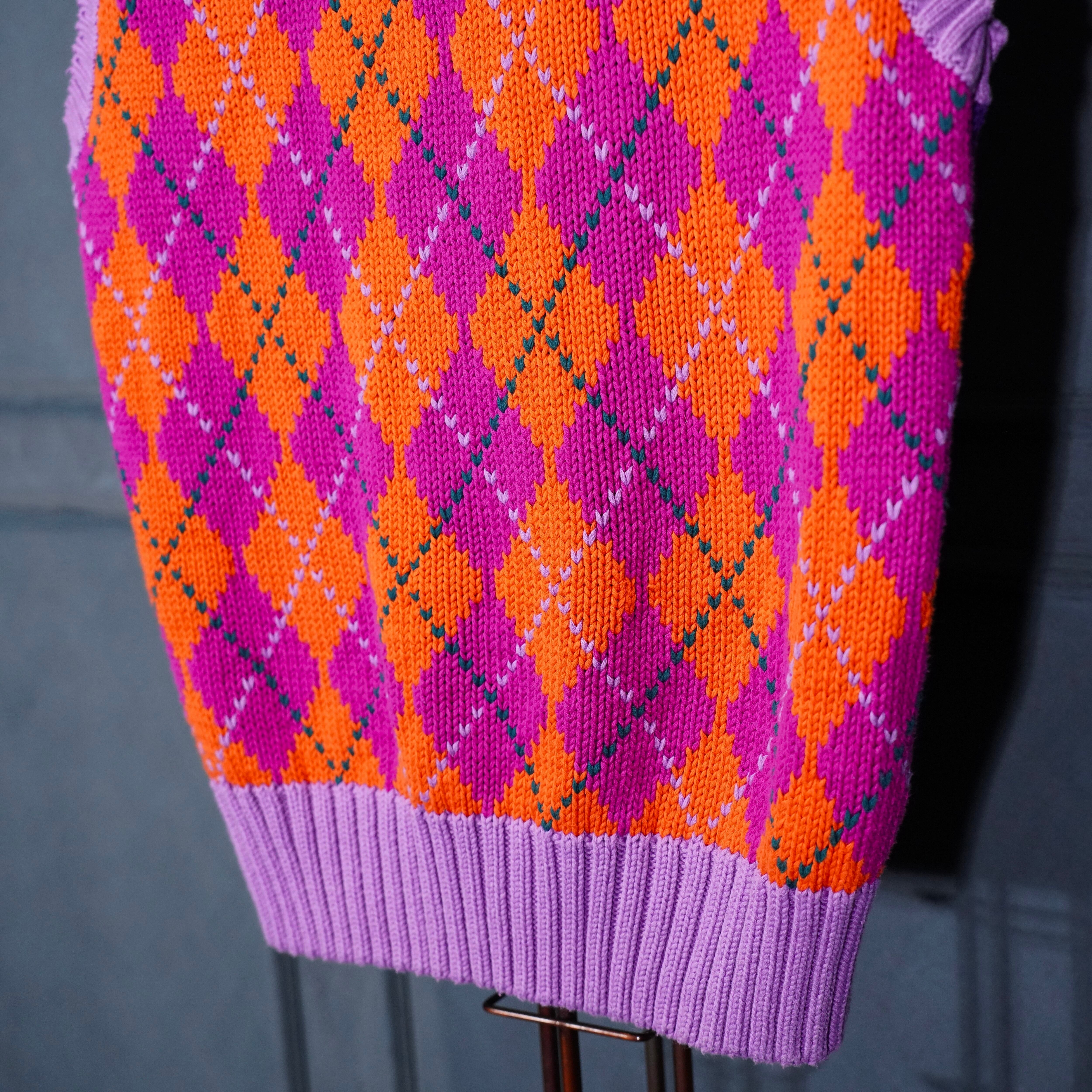 USA VINTAGE Resilio SPORT 2 TONE ARGYLE CHECK PATTERNED DESIGN COTTON KNIT VEST/アメリカ古着2トーンアーガイルチェック柄デザインコットンニットベスト