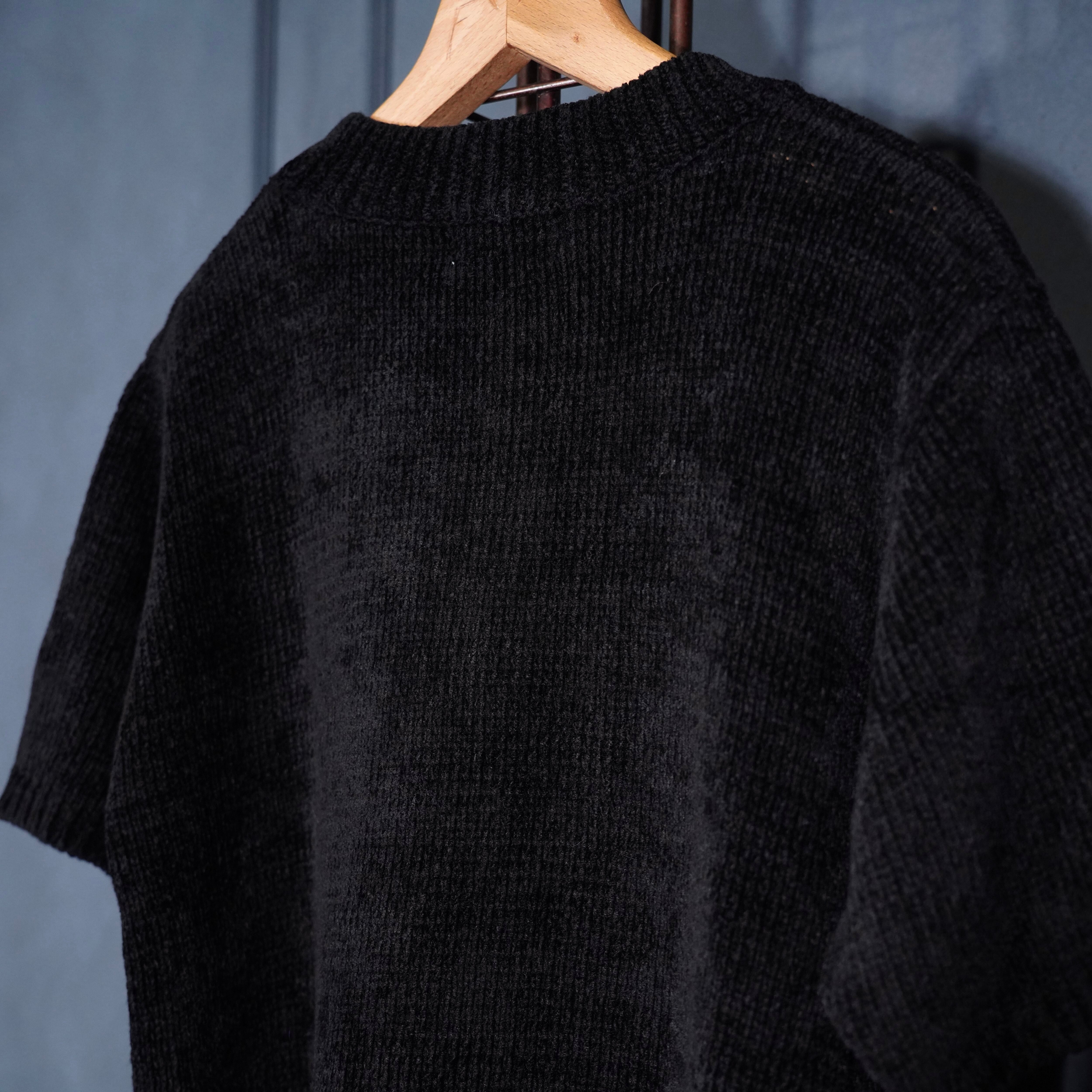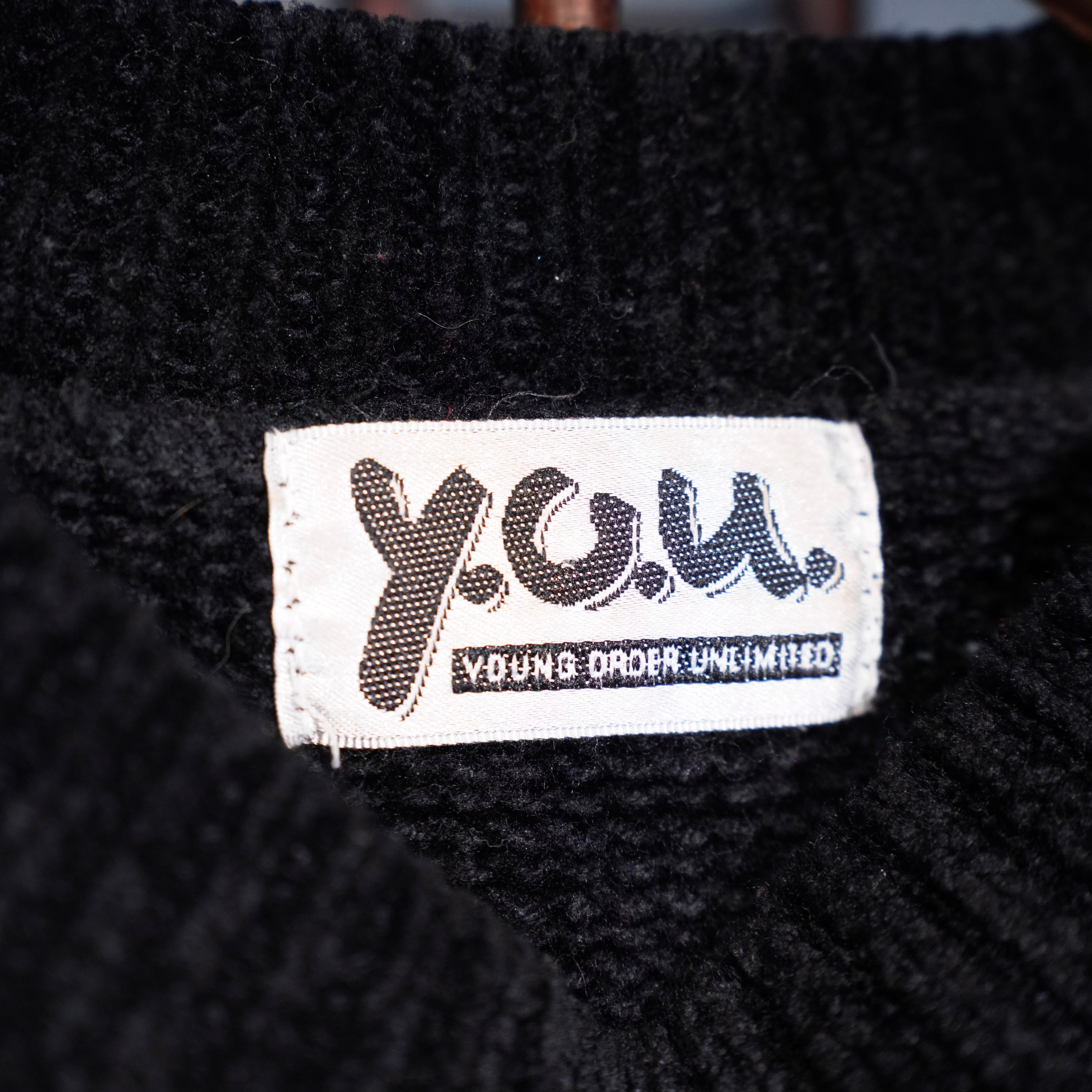 USA VINTAGE y.o.u YOUNG ORDER UNLIMITED BLACK COLOR PILE KNIT CUT&SEWN/アメリカ古着ブラックカラーパイルニットカットソー(ニットソー)