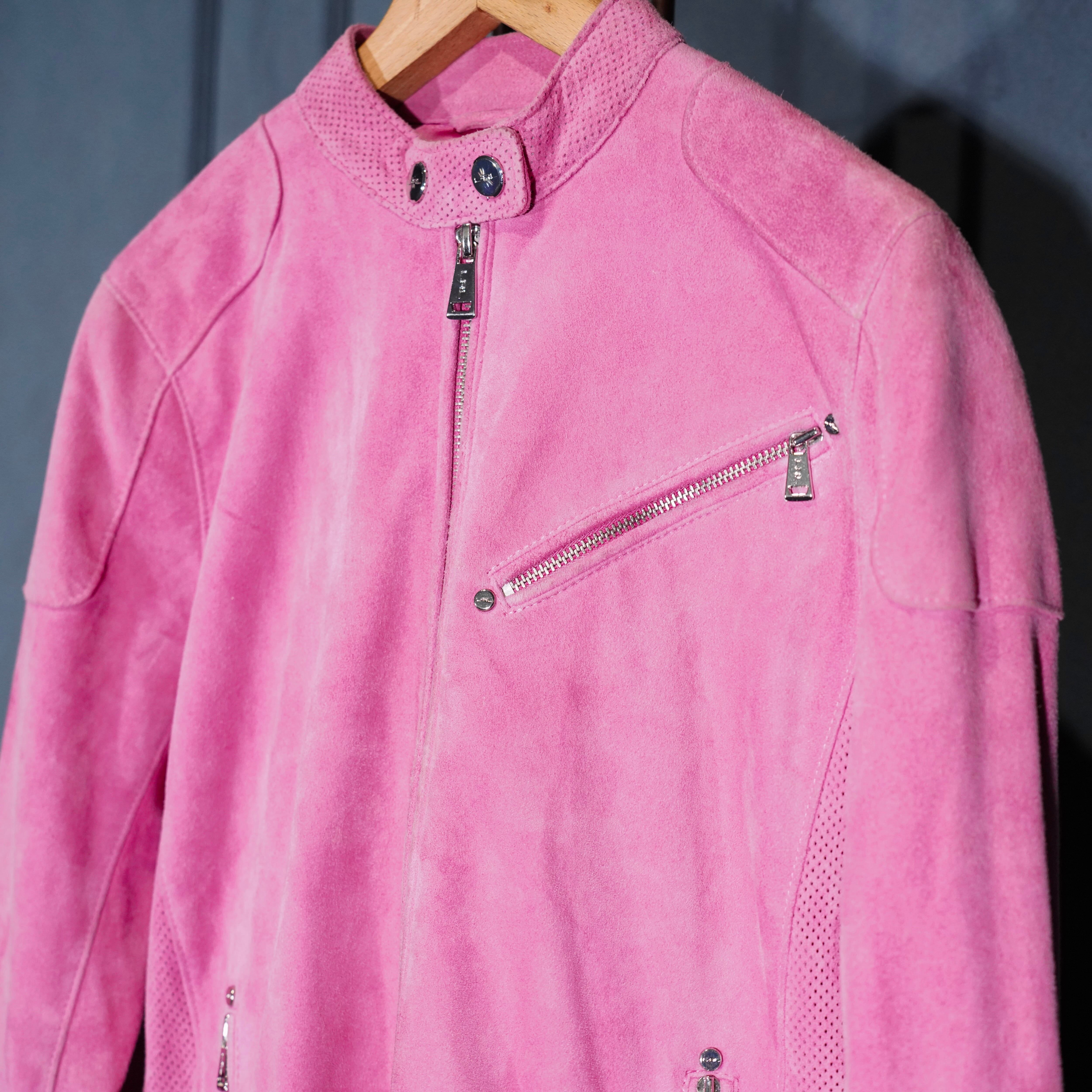 USA VINTAGE LAUREN RALPH LAUREN PINK COLOR DESIGN LEATHER RIDERS JACKET/アメリカ古着ローレンラルフローレンピンクカラーデザインレザーライダースジャケット