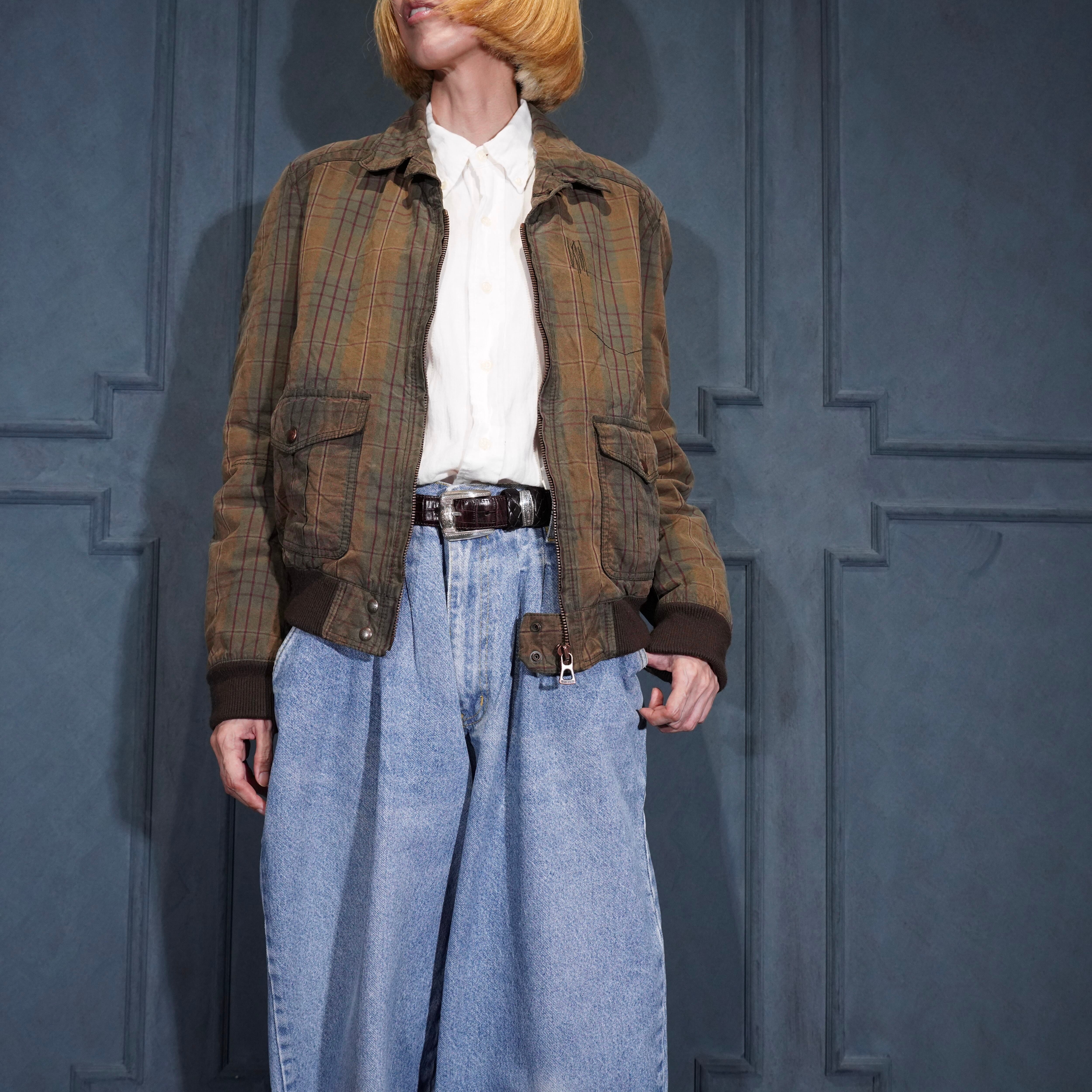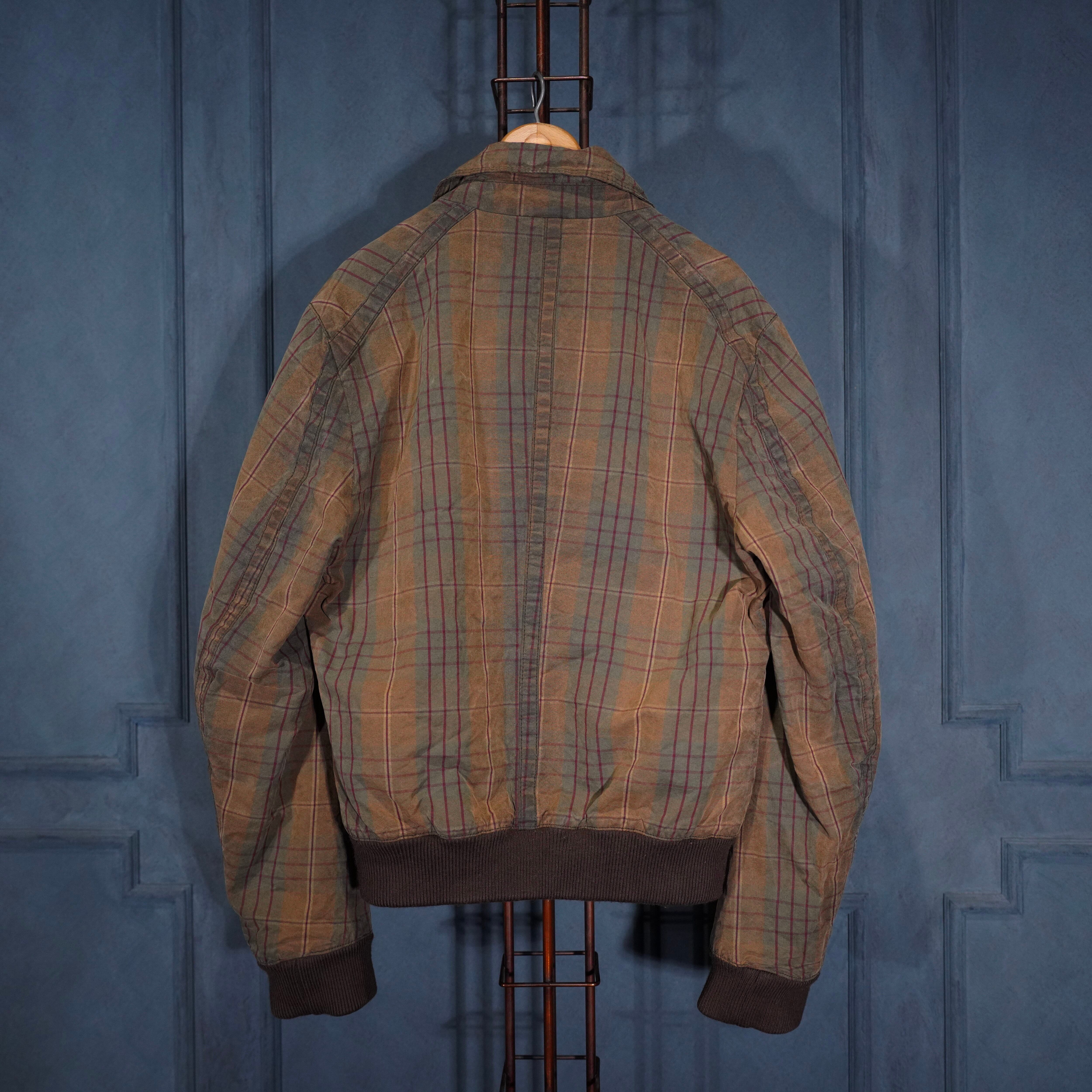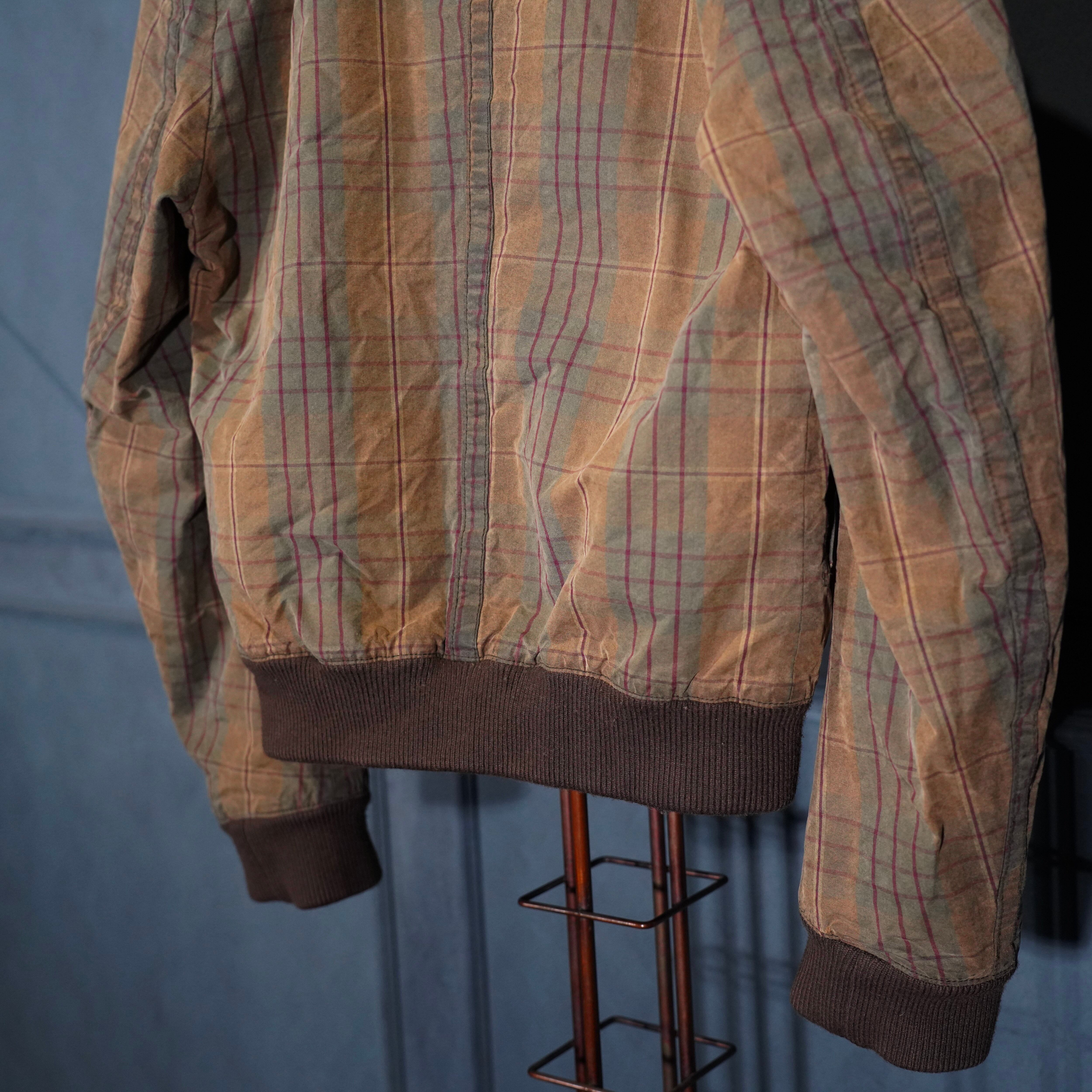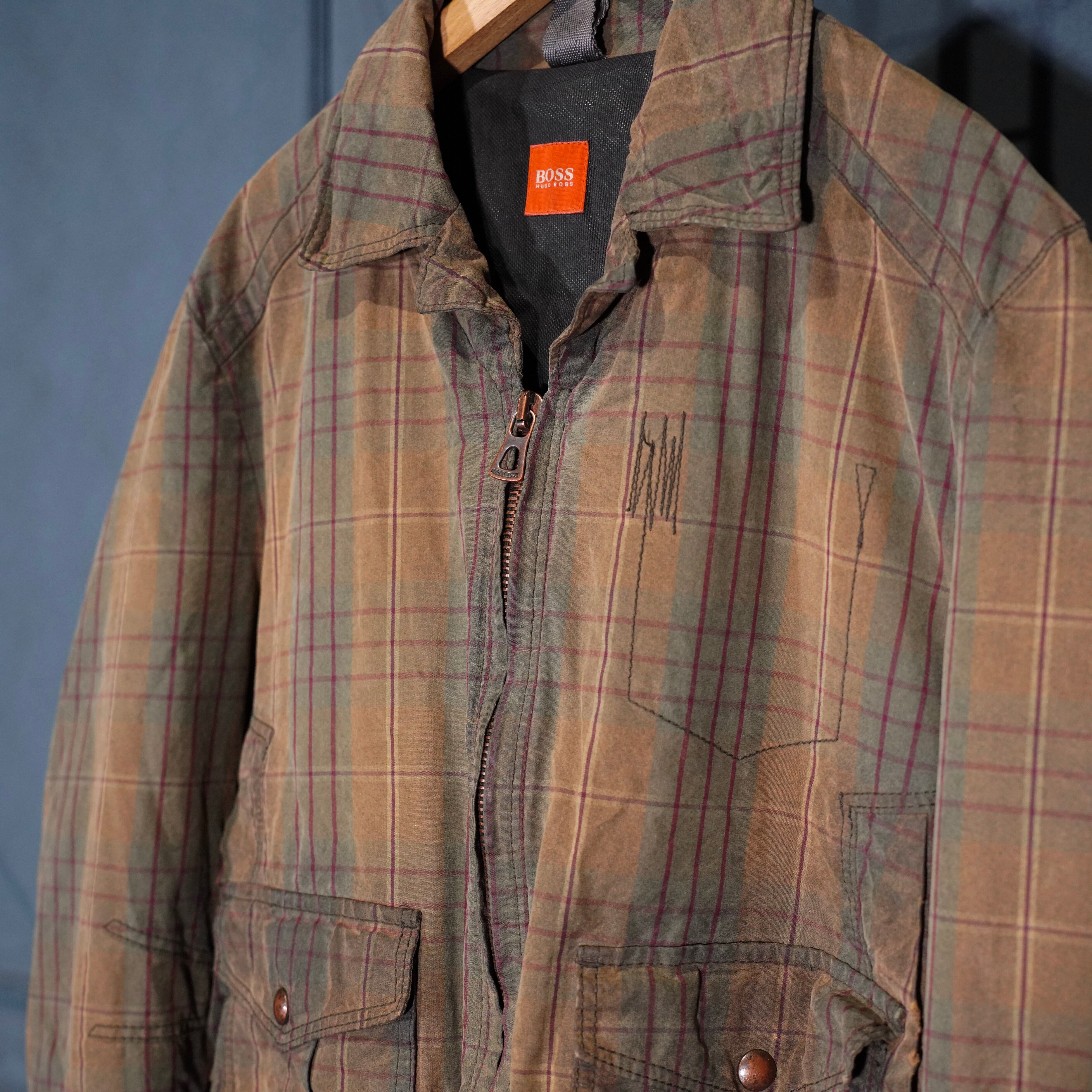 EU VINTAGE BOSS HUGO BOSS CHECK PATTERNED DESIGN OILED ZIP BLOUSON/ヨーロッパ古着ヒューゴボスチェック柄デザインオイルドジップブルゾン