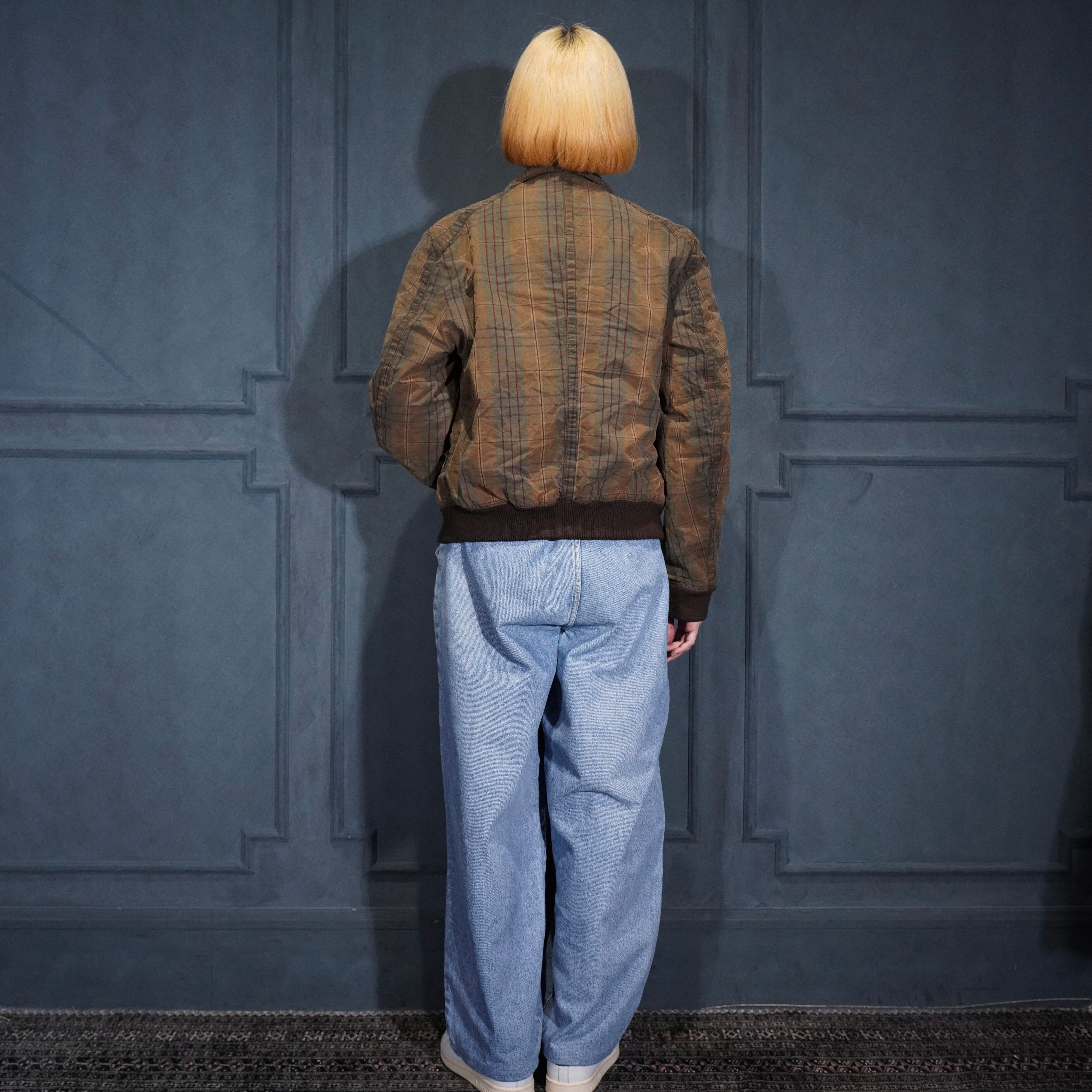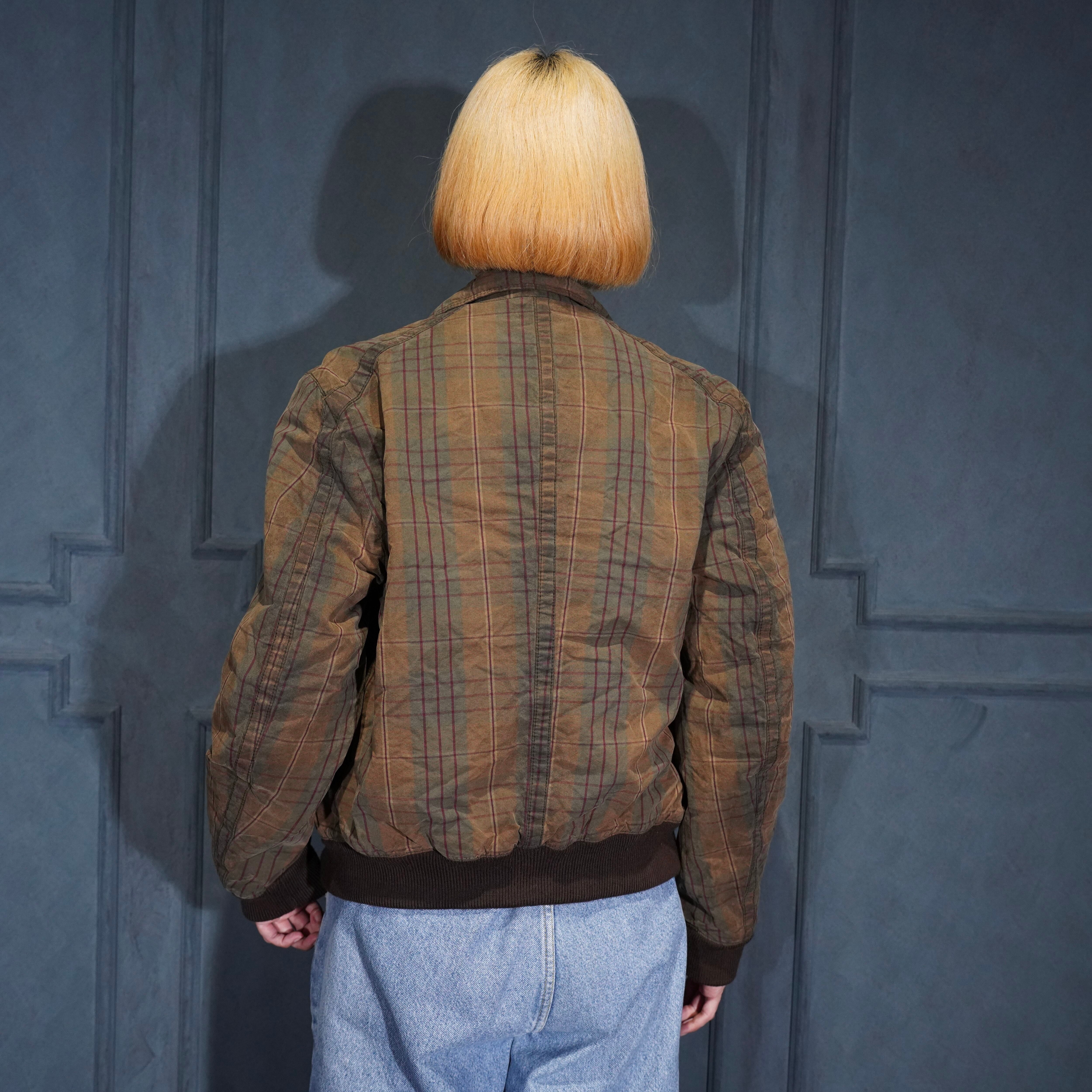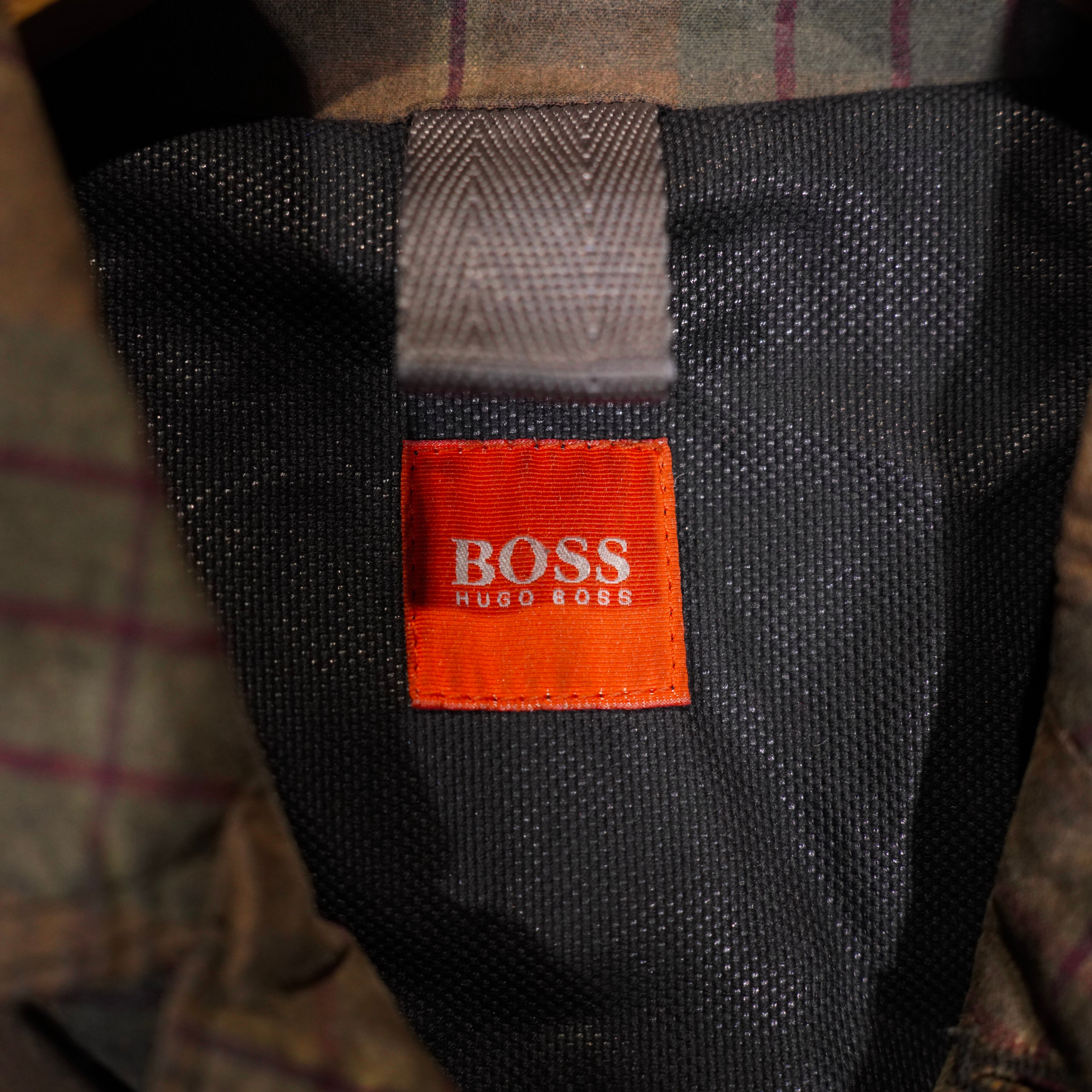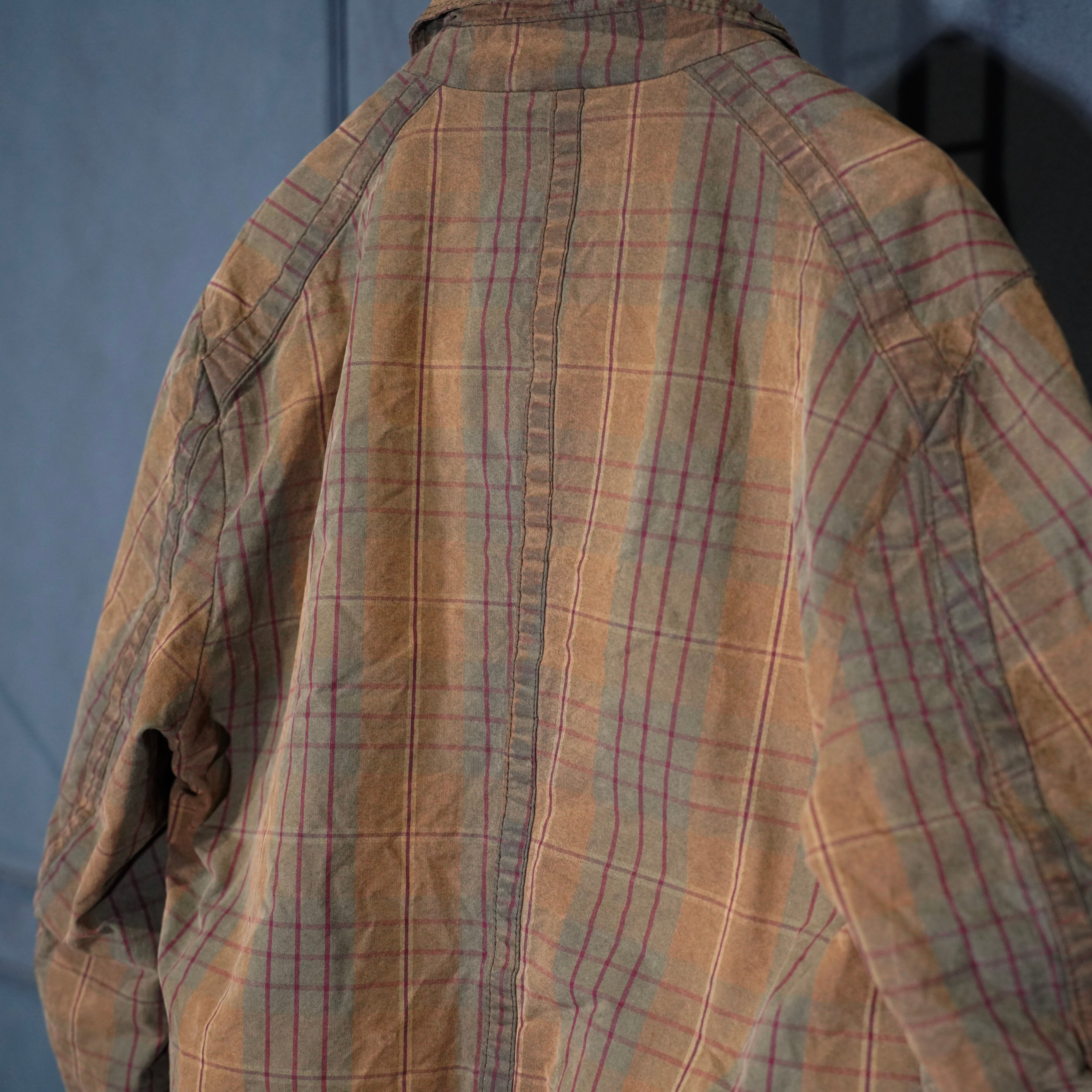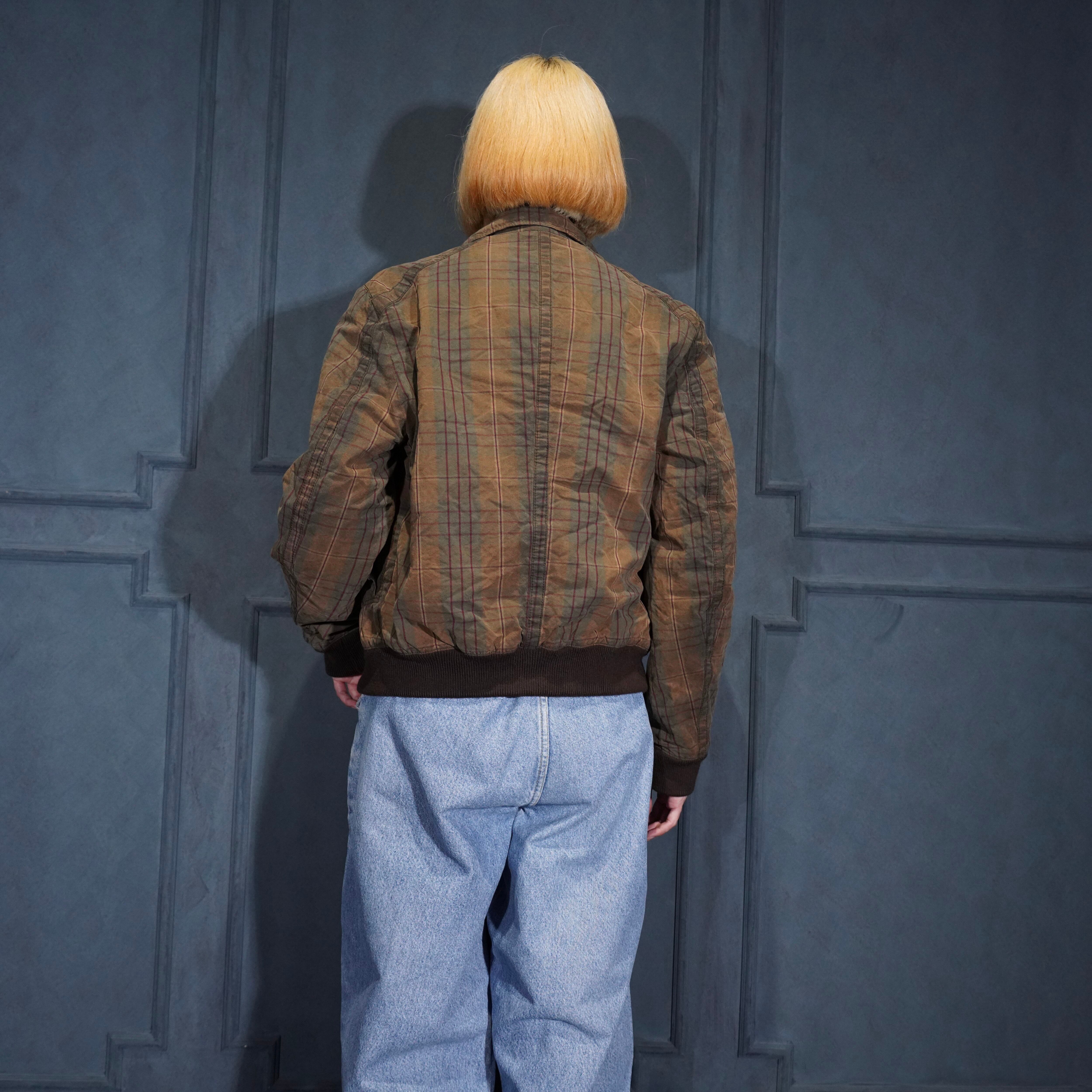EU VINTAGE BOSS HUGO BOSS CHECK PATTERNED DESIGN OILED ZIP BLOUSON/ヨーロッパ古着ヒューゴボスチェック柄デザインオイルドジップブルゾン