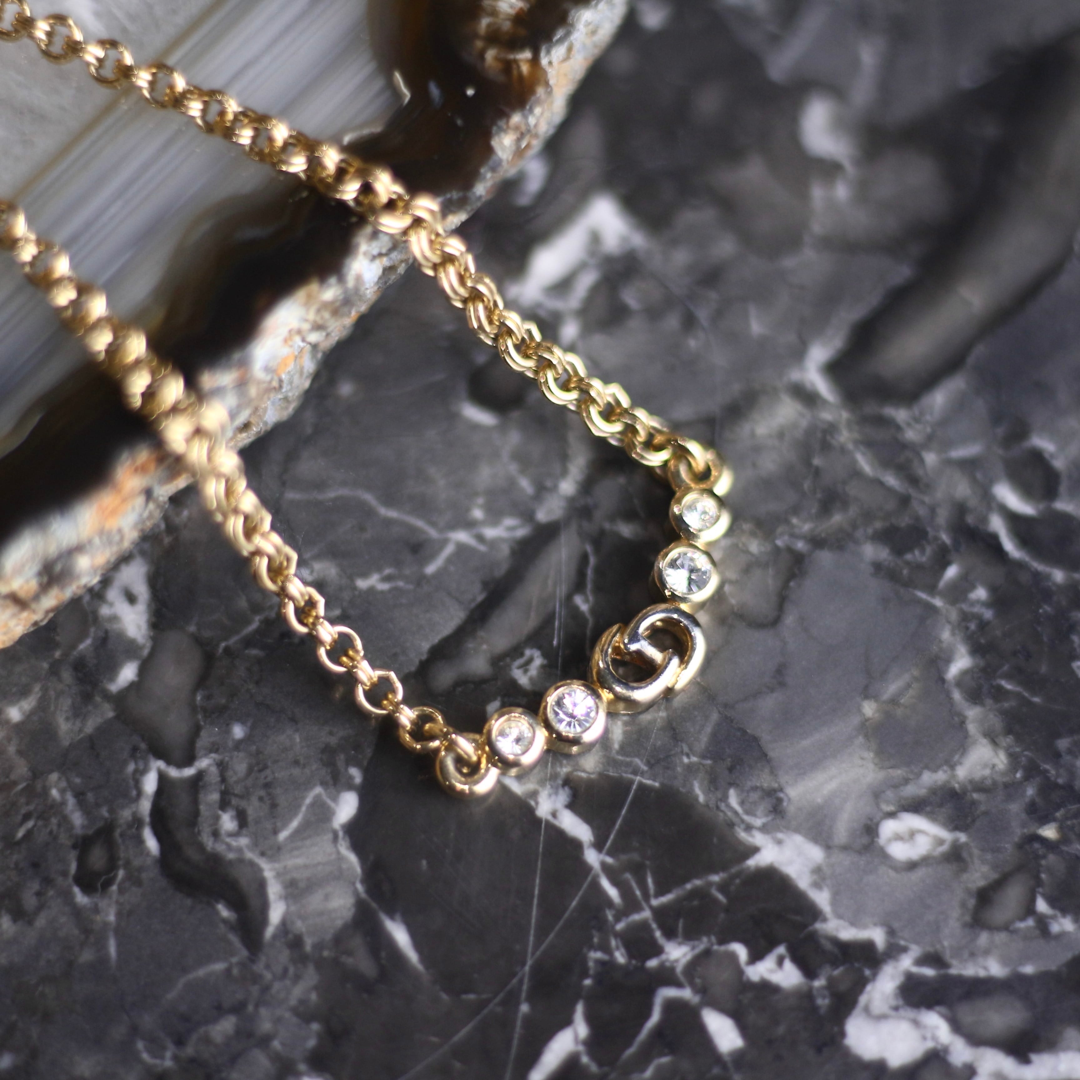 Christian Dior CLEAR STONE LOGO DESIGN CHAIN NECKLACE/クリスチャンディオールクリアストーンデザインチェーンネックレス