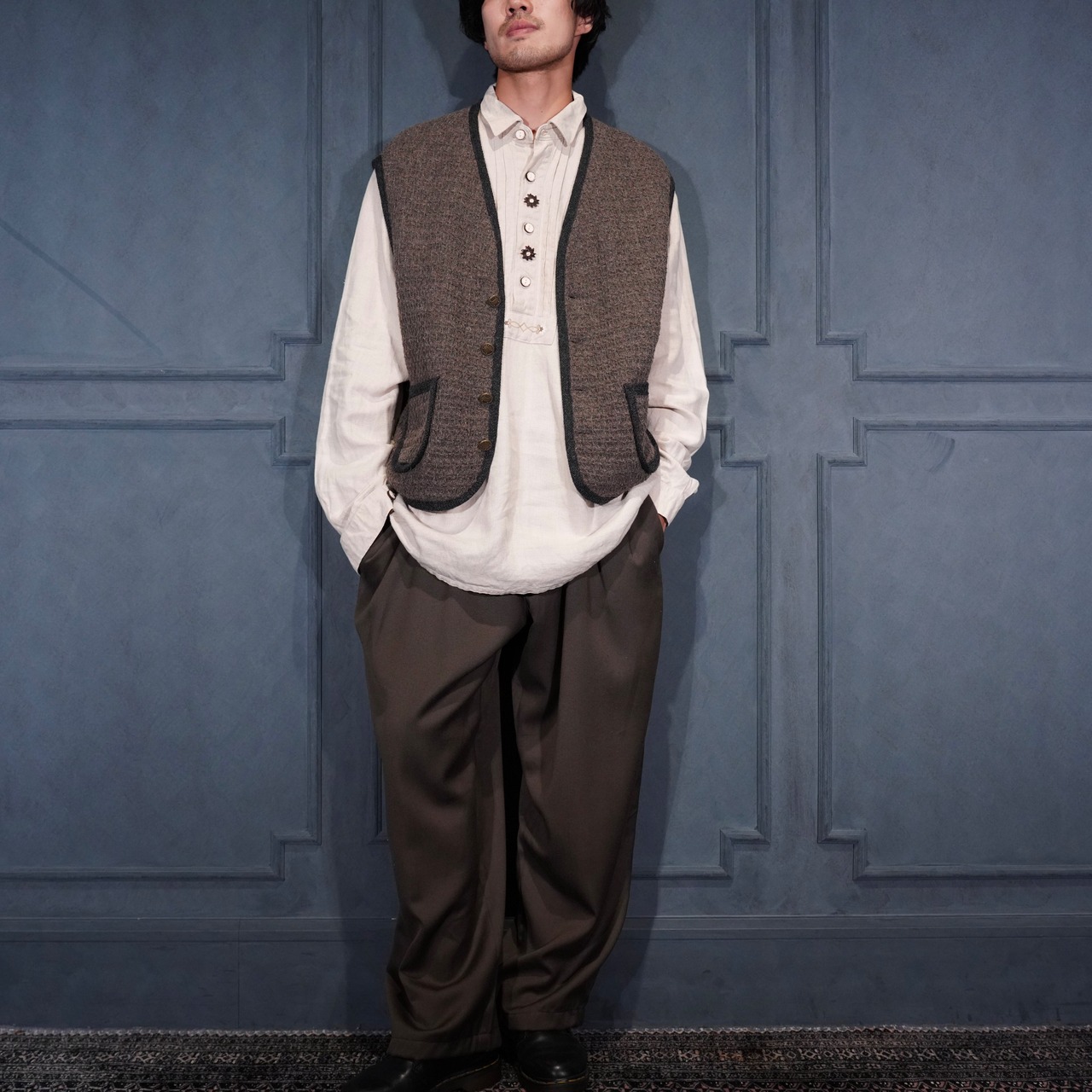 USA VINTAGE TURBULENCE DESIGN BUTTON TWEED WOOL VEST/アメリカ古着デザインボタンツイードウールべスト
