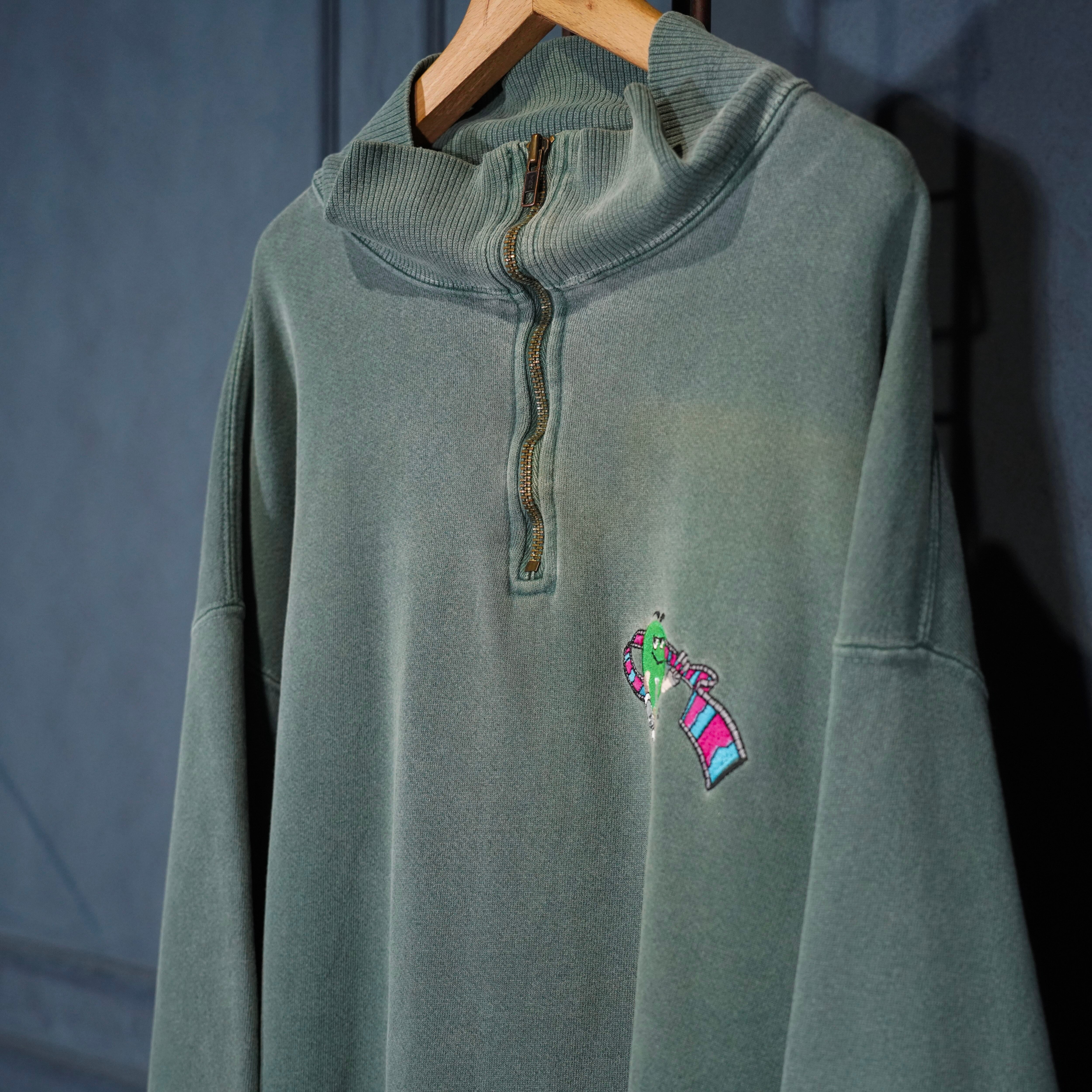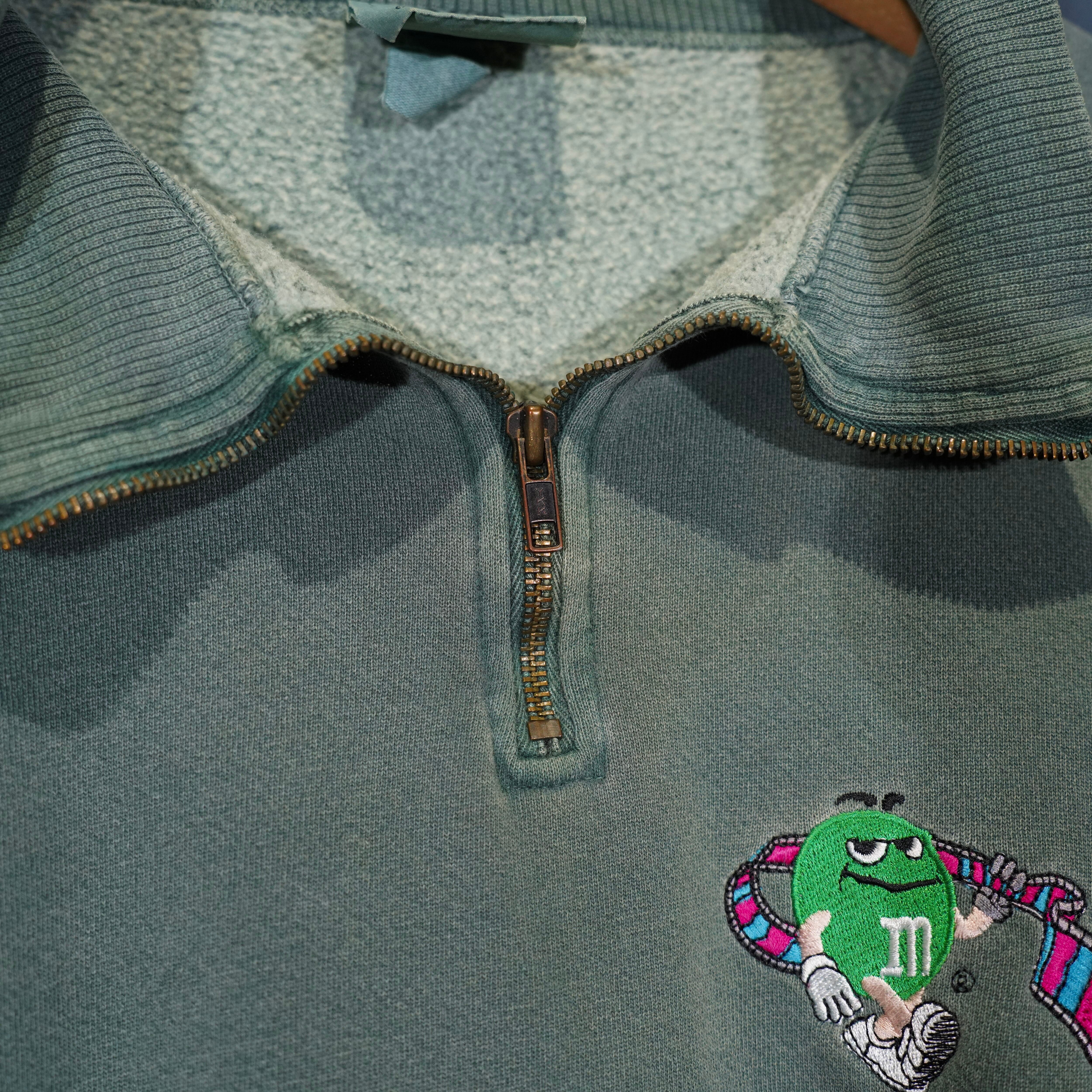 90's USA VINTAGE Authentic Pigment m&m's CHARACTER EMBROIDERY FADED DESIGN SWEAT HALF ZIP/90年代アメリカ古着キャラクター刺繍フェードデザインスウェットハーフジップ