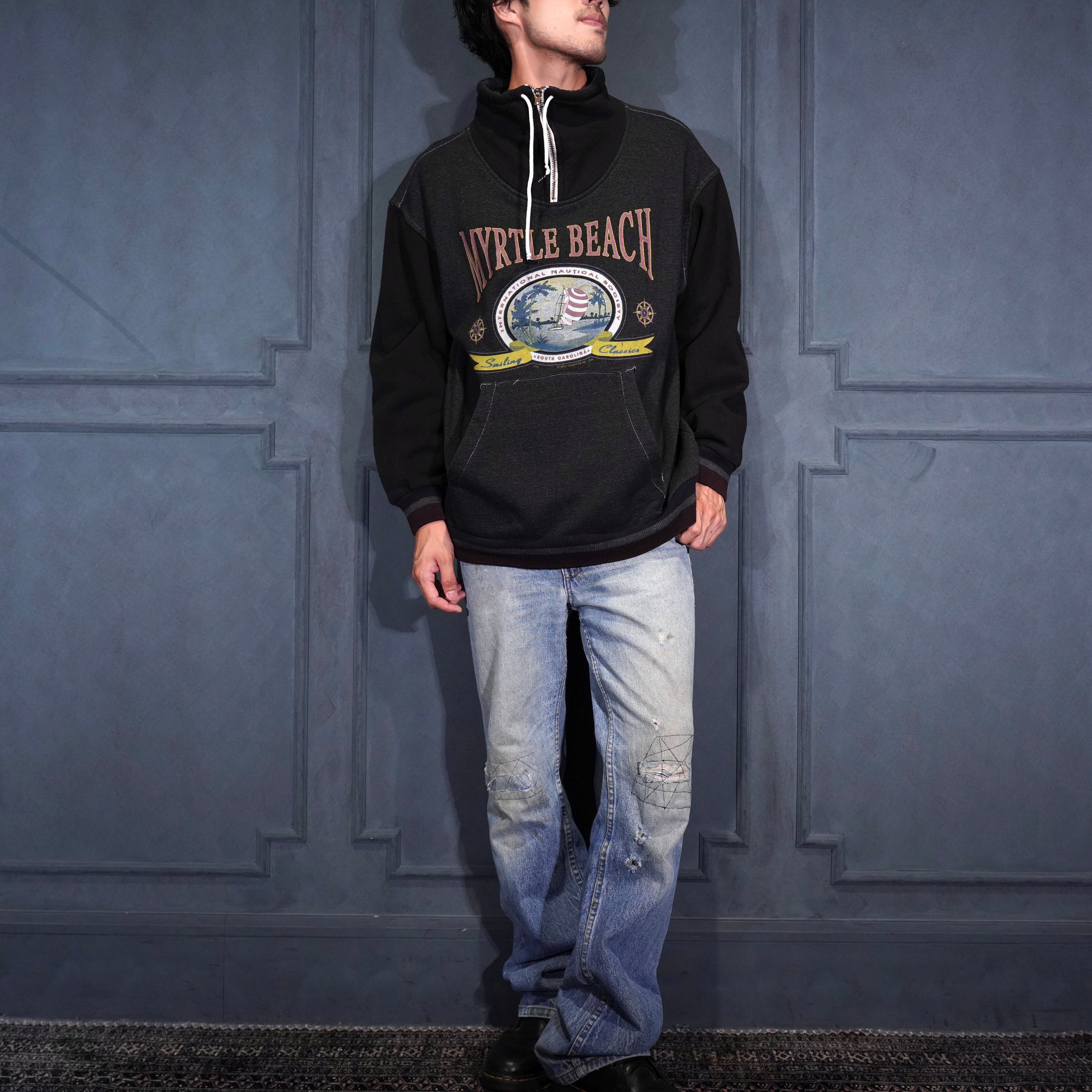 USA VINTAGE POWER U.S.A. MYRTLE BEACH OVER DYE DESIGN SWEAT HALF ZIP/アメリカ古着後染めデザインハーフジップスウェット