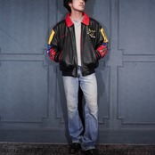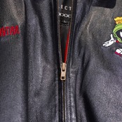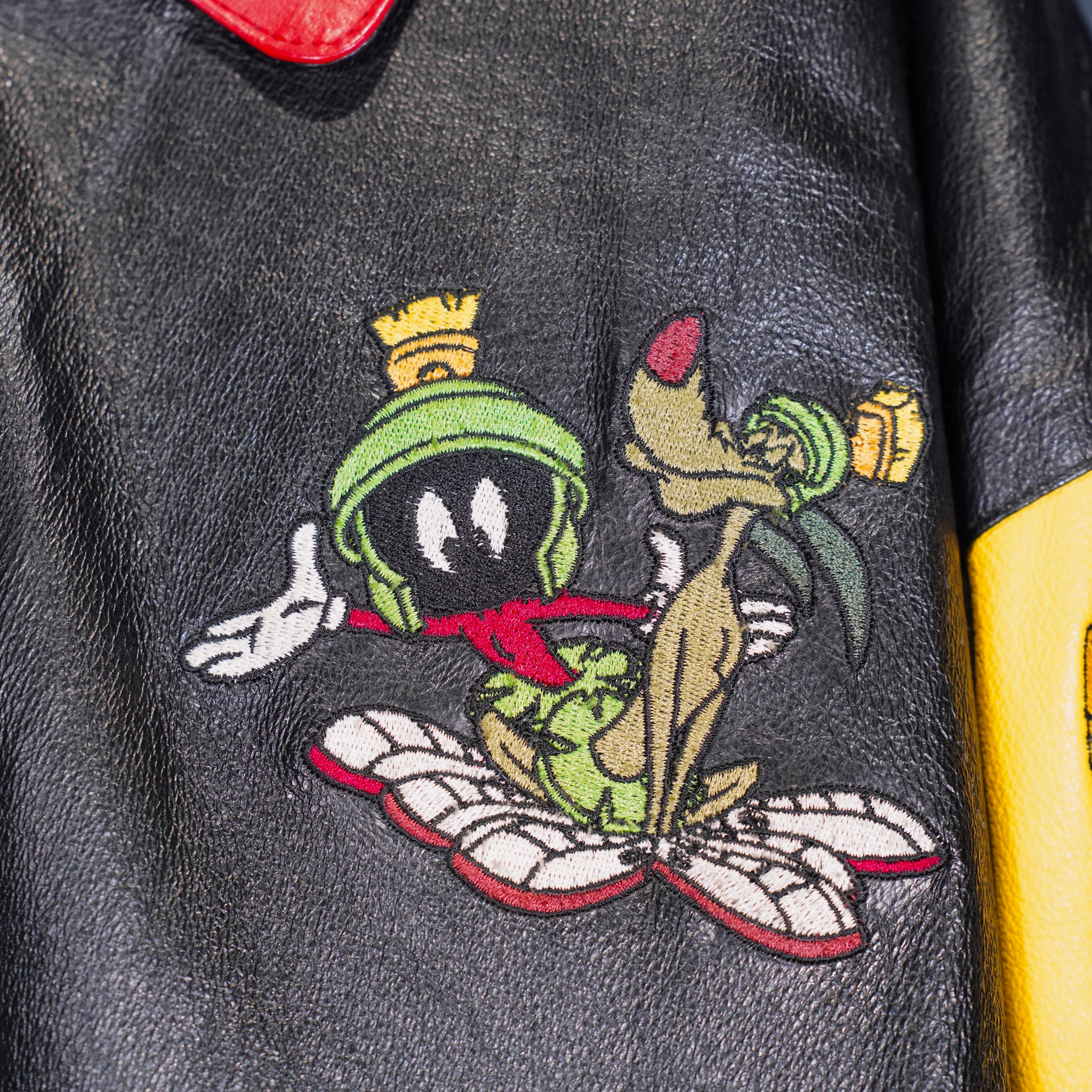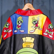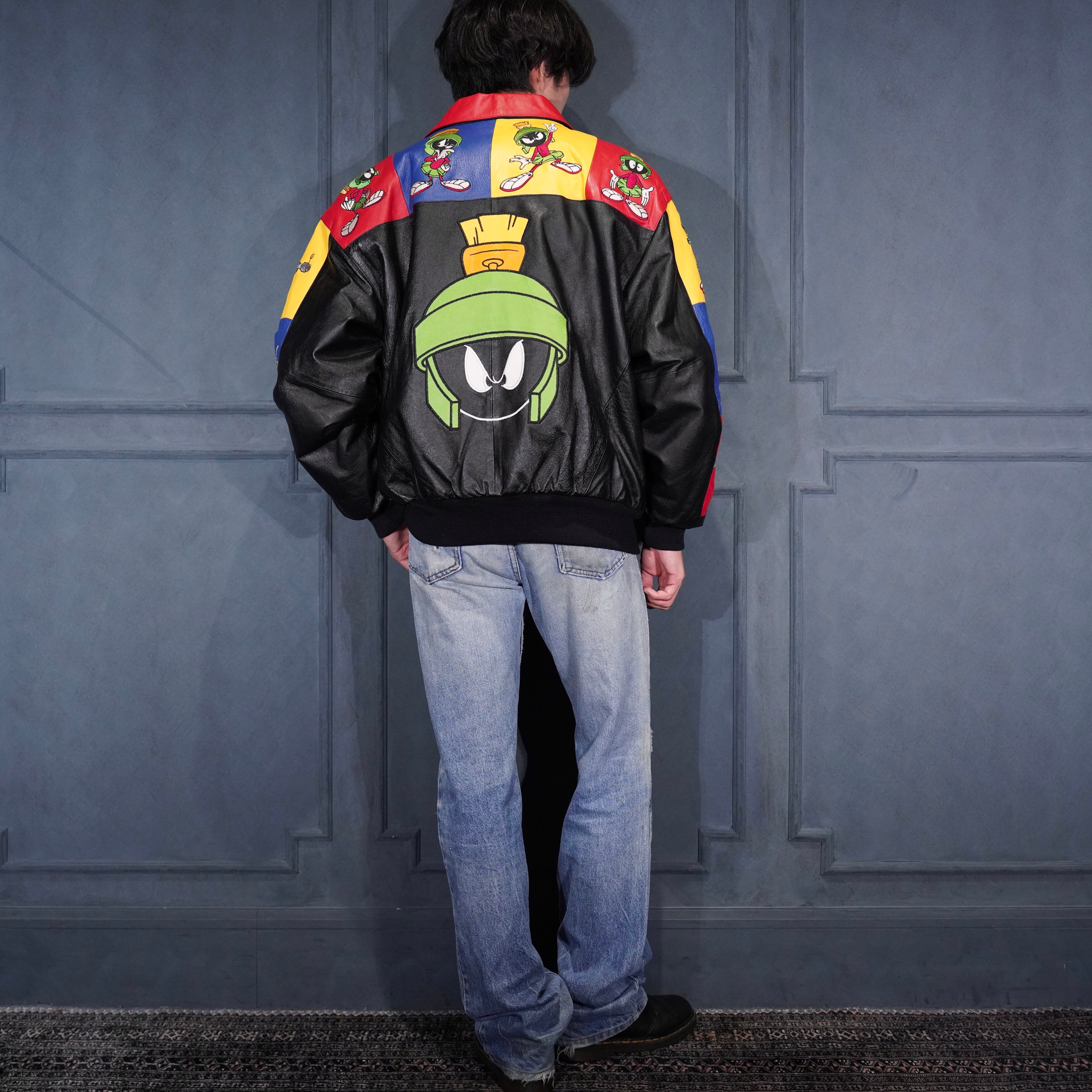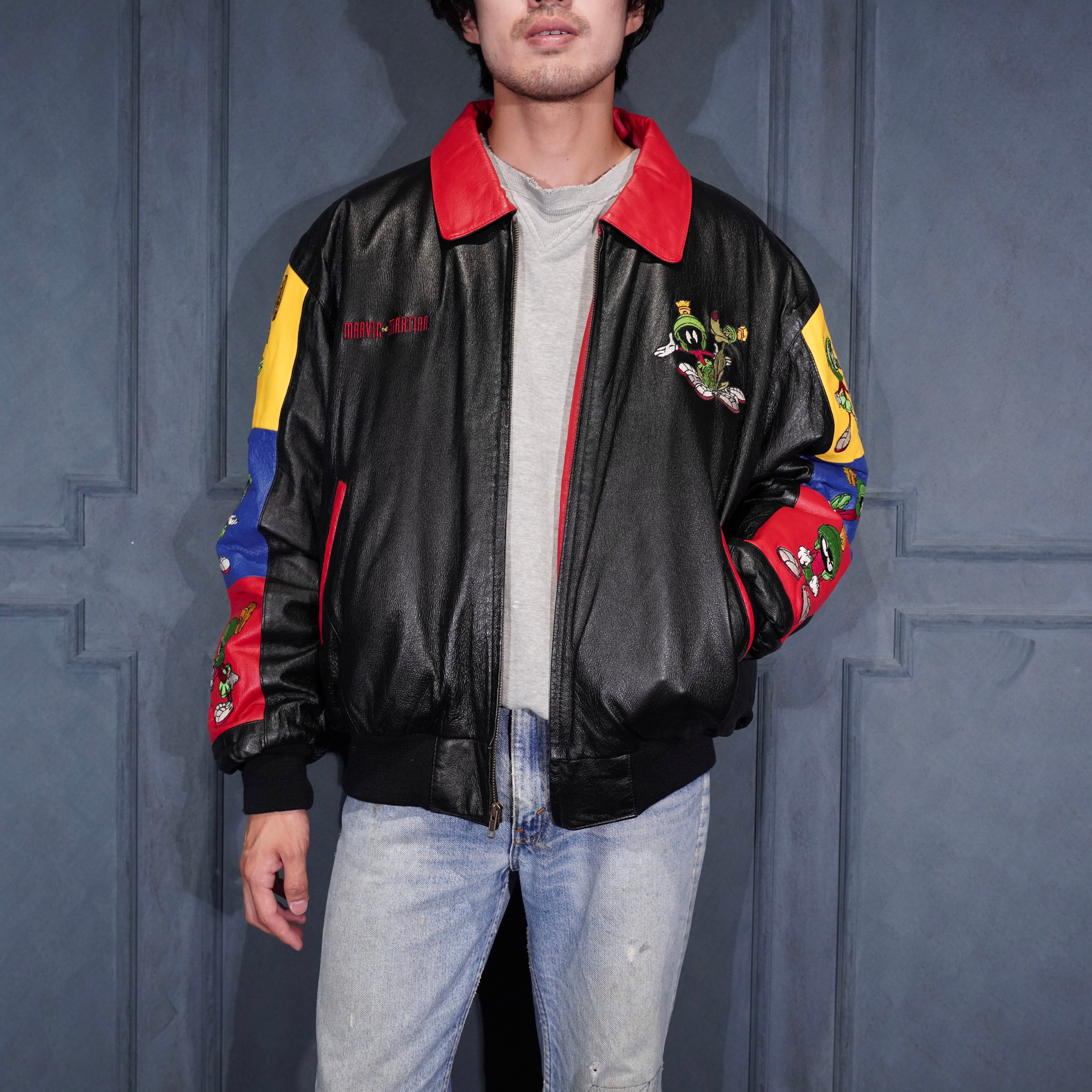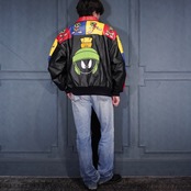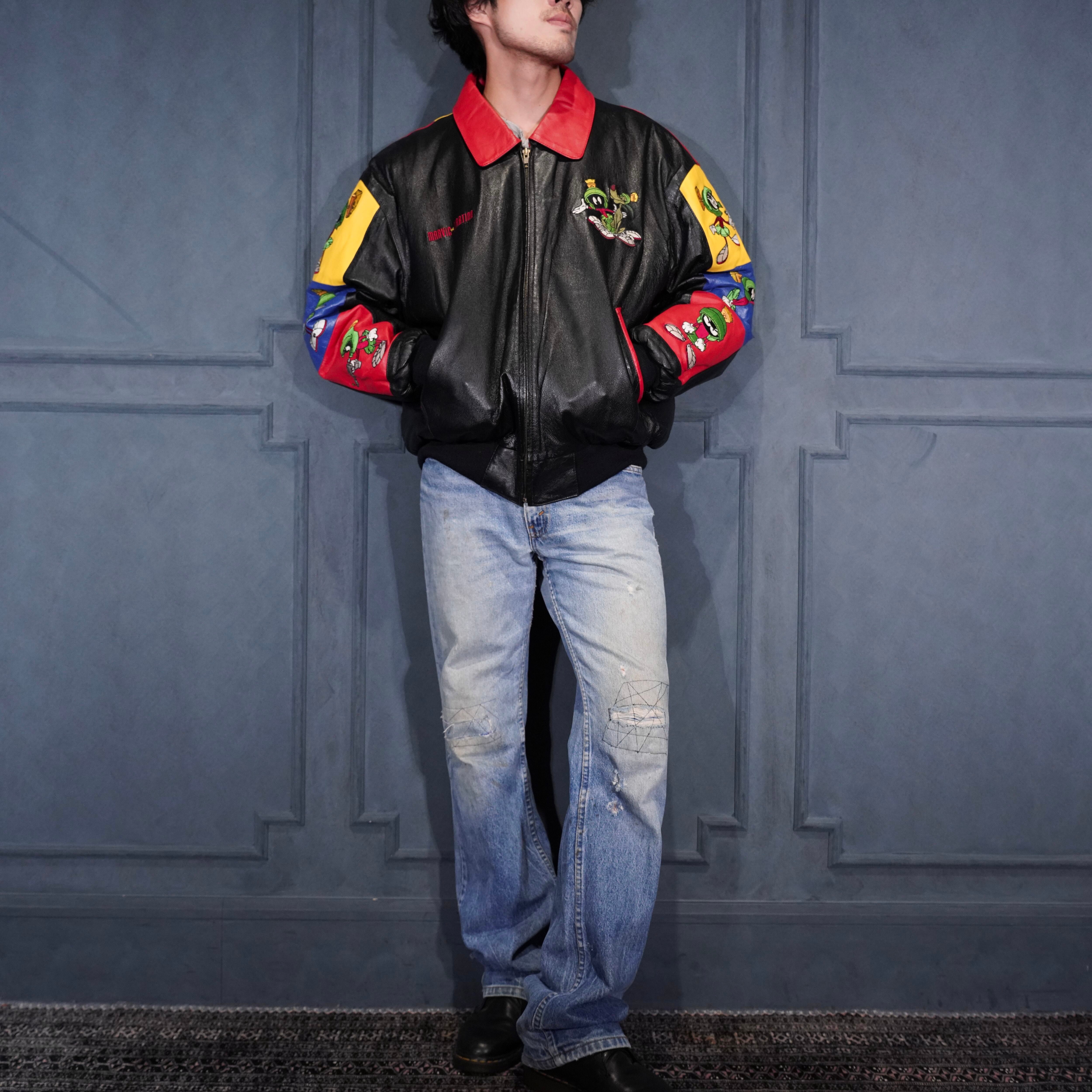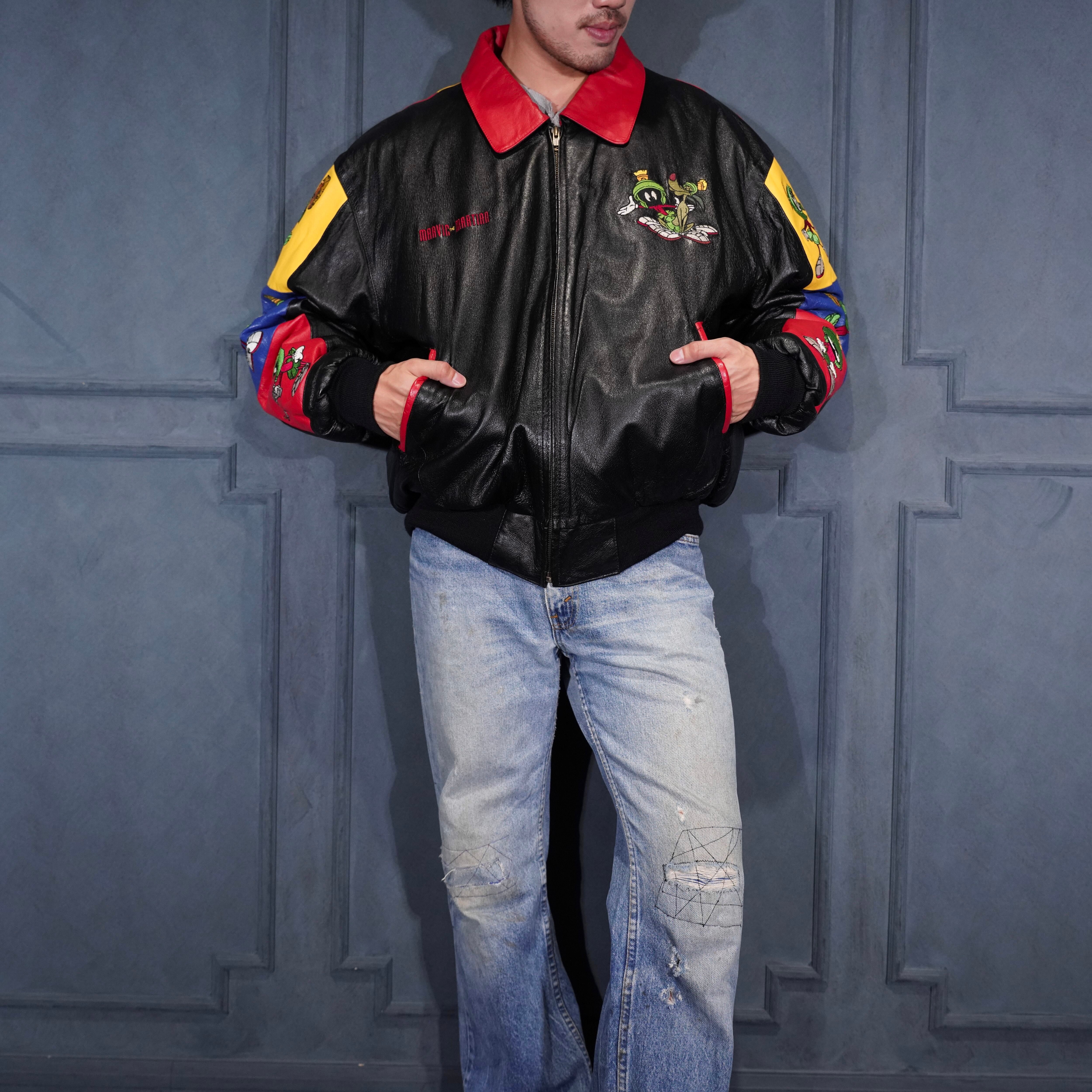 *SPECIAL ITEM* 90's USA VINTAGE LOONEY TUNES CLASSIC COLLECTION CHARACTER EMBRIDERY DESIGN ZIP UP LEATHER BLOUSON/アメリカ古着キャラクター刺繍デザインジップアップレザーブルゾン