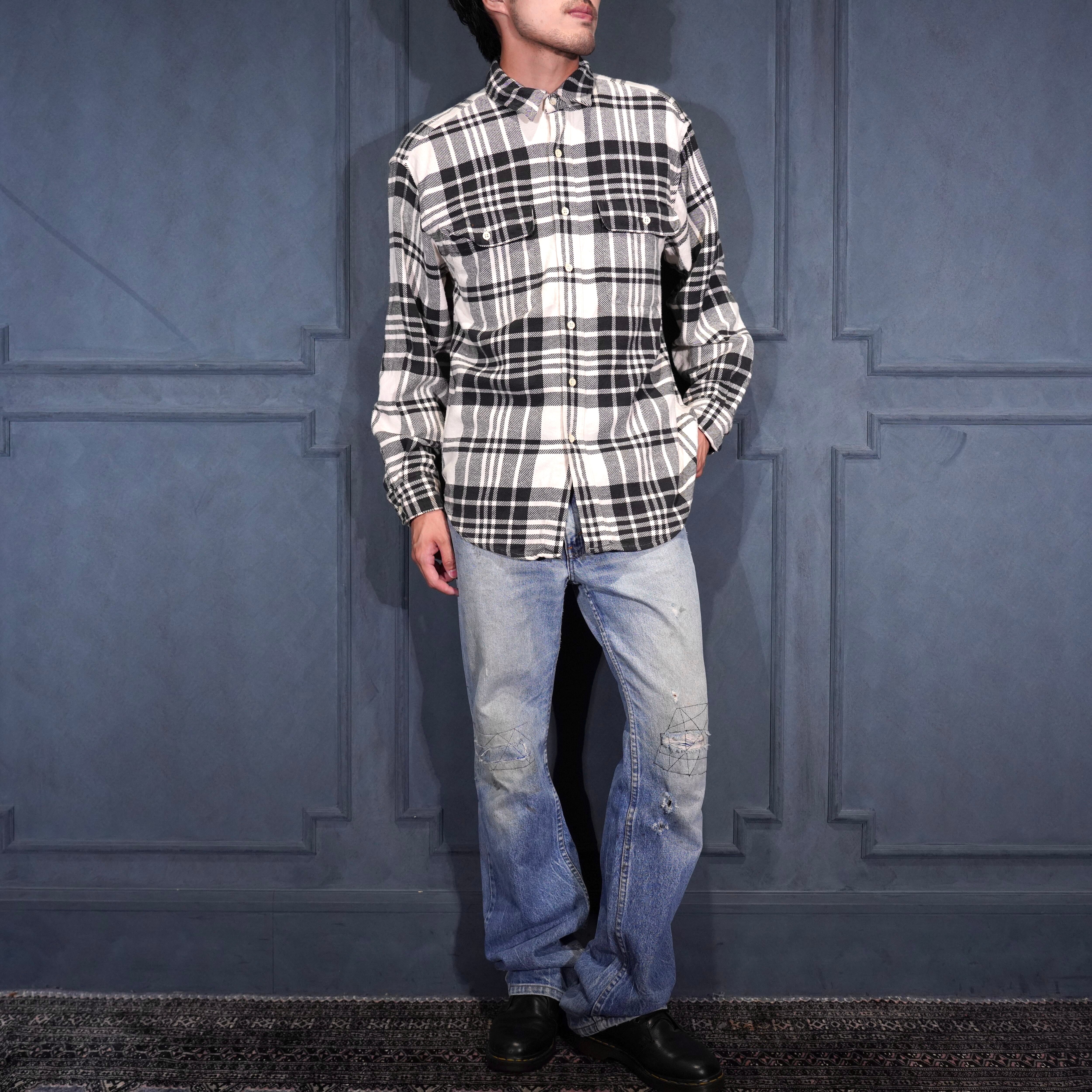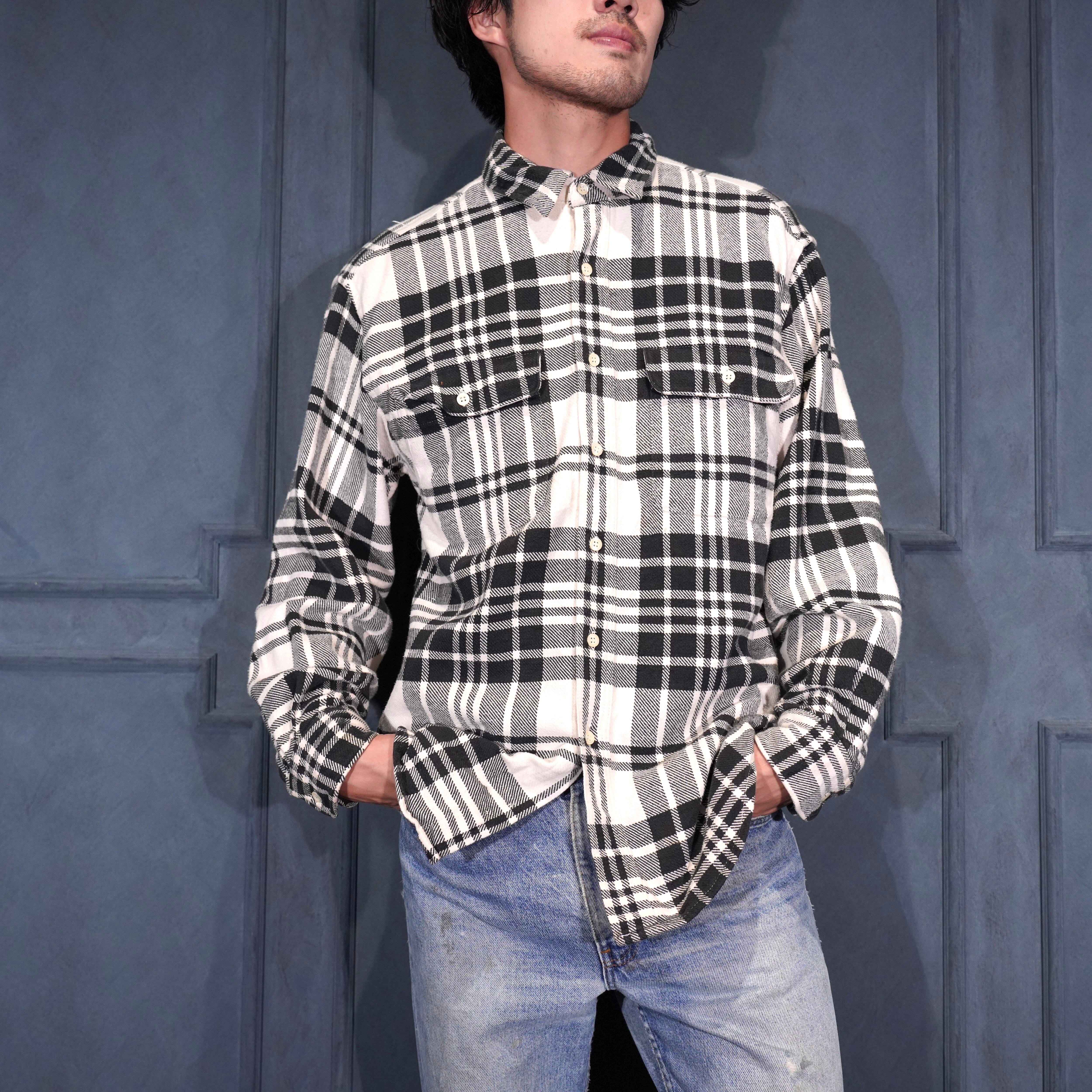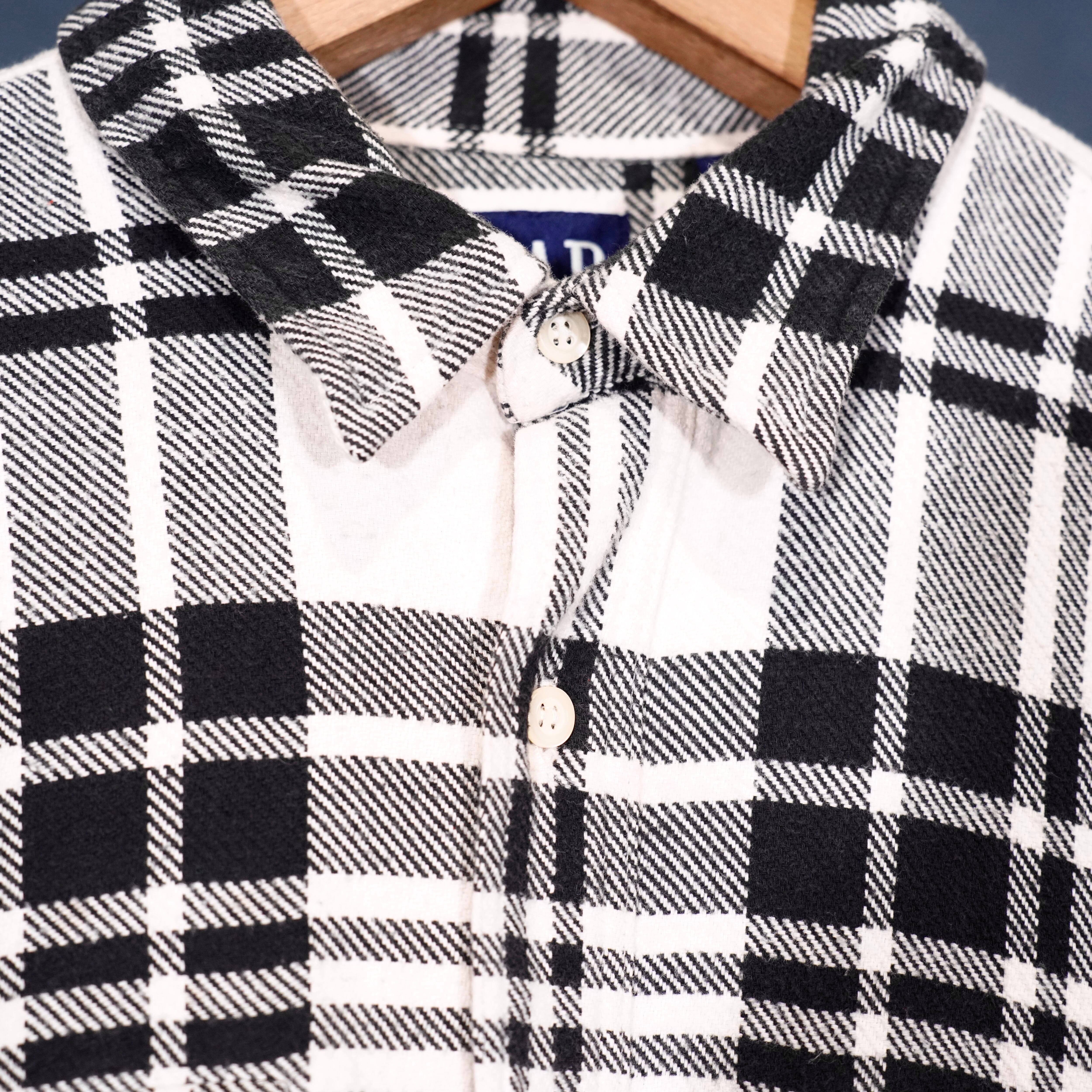 90's USA VINTAGE GAP CHECK PATTERNED DESIGN HEAVY COTTON FLANNEL SHIRT/90年代アメリカ古着オールドギャップチェック柄デザインヘビーコットンネルシャツ