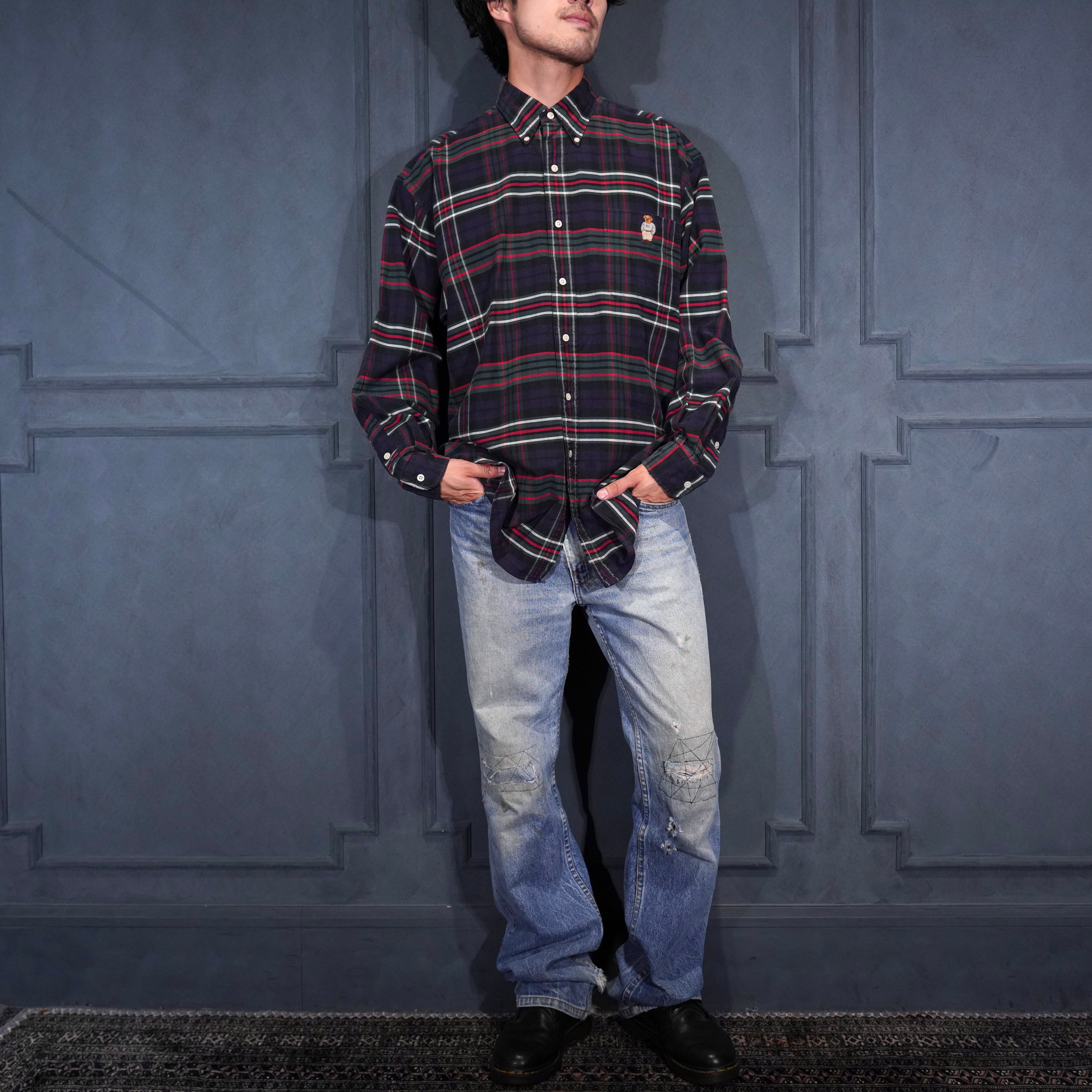 USA VINTAGE Ralph Lauren BLAKE CHECK PATTERNED POLO BEAR EMBROIDERY DESIGN BD SHIRT/アメリカ古着ラルフローレンチェック柄ポロベアー刺繍デザインボタンダウンシャツ