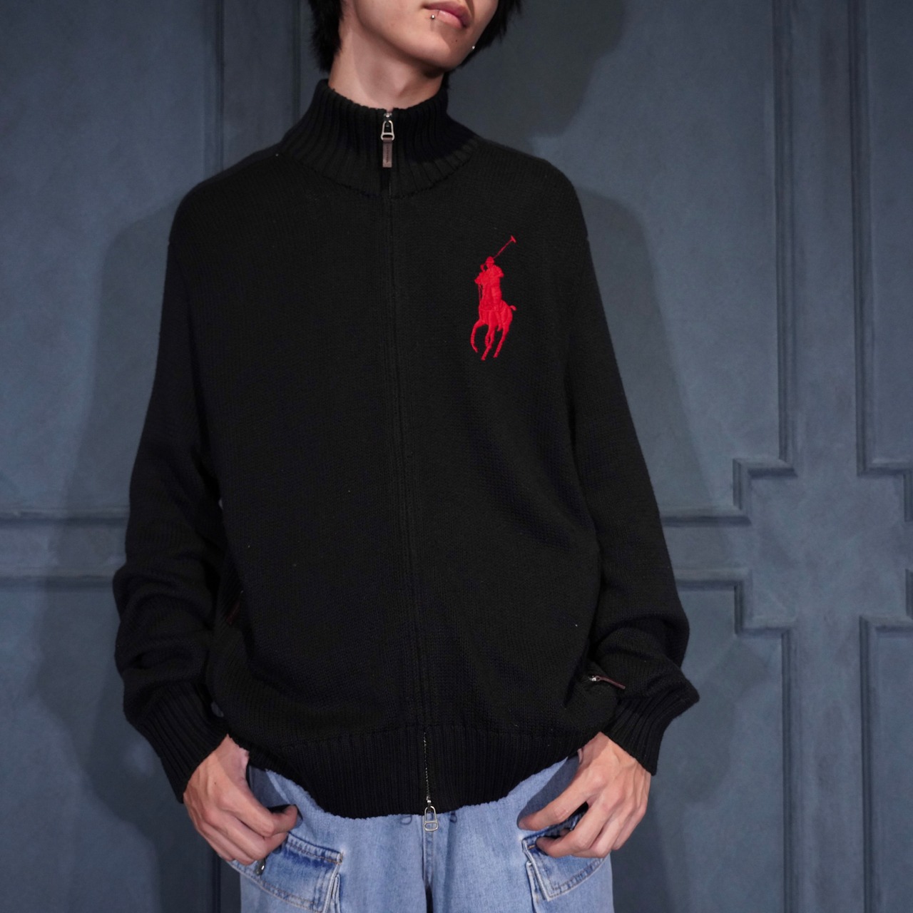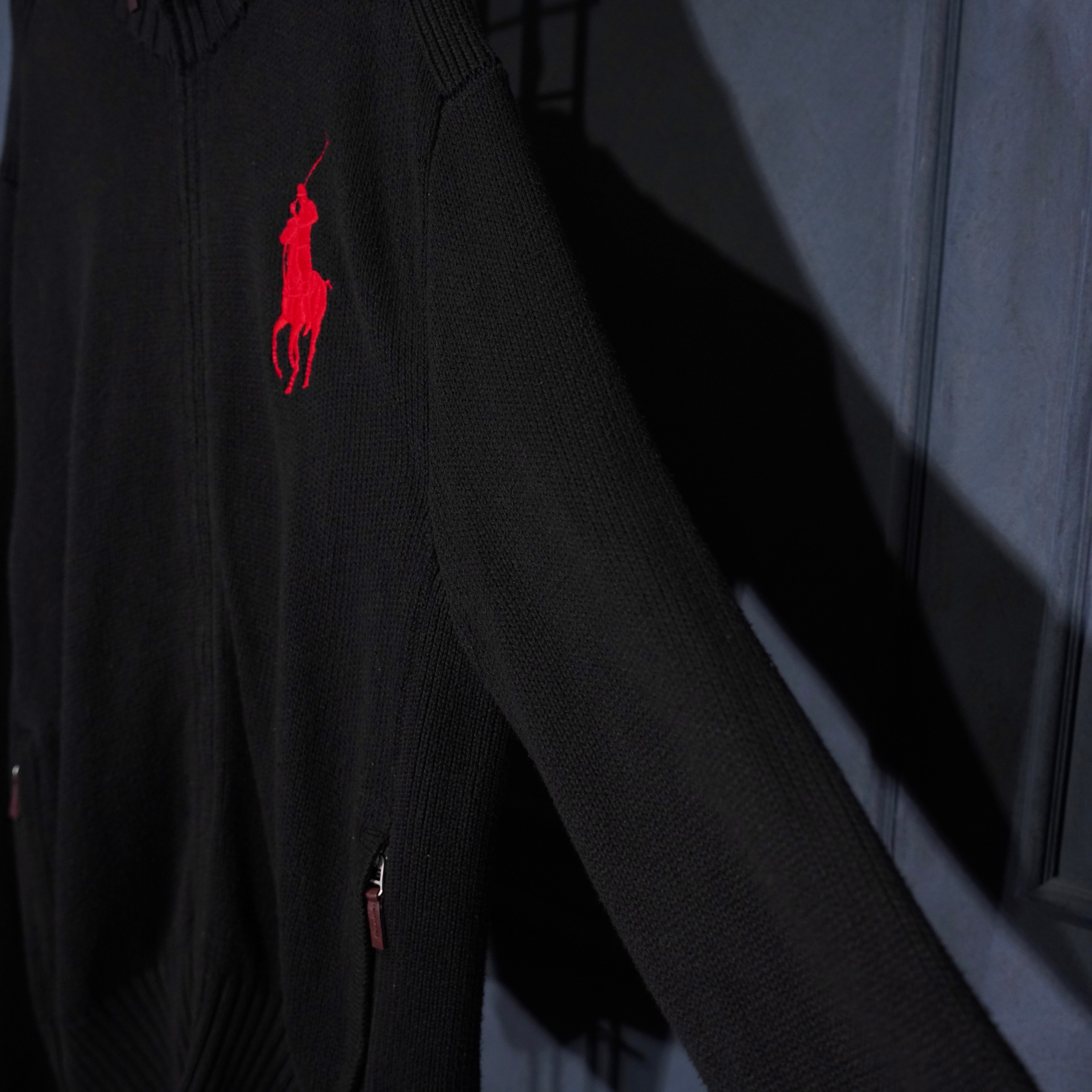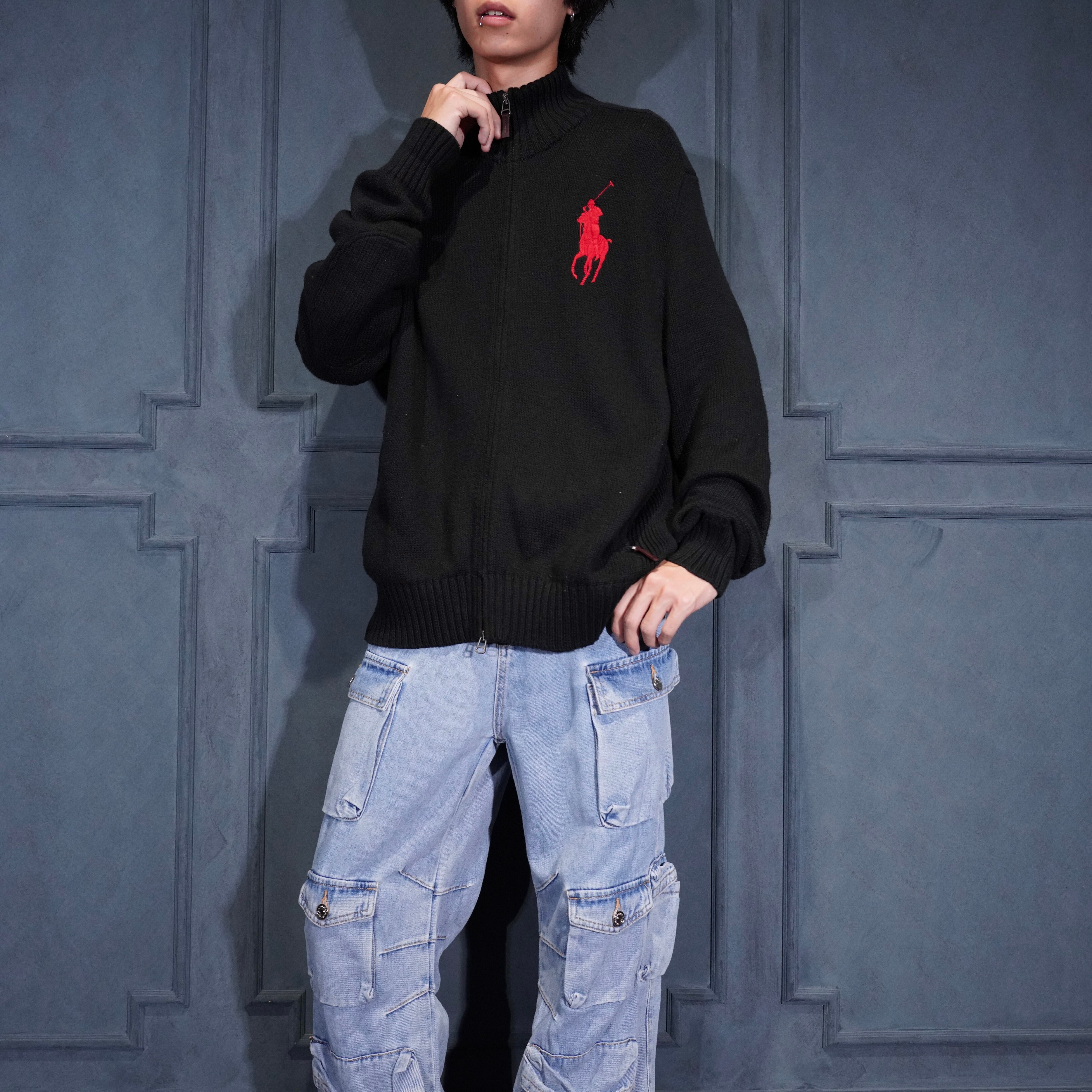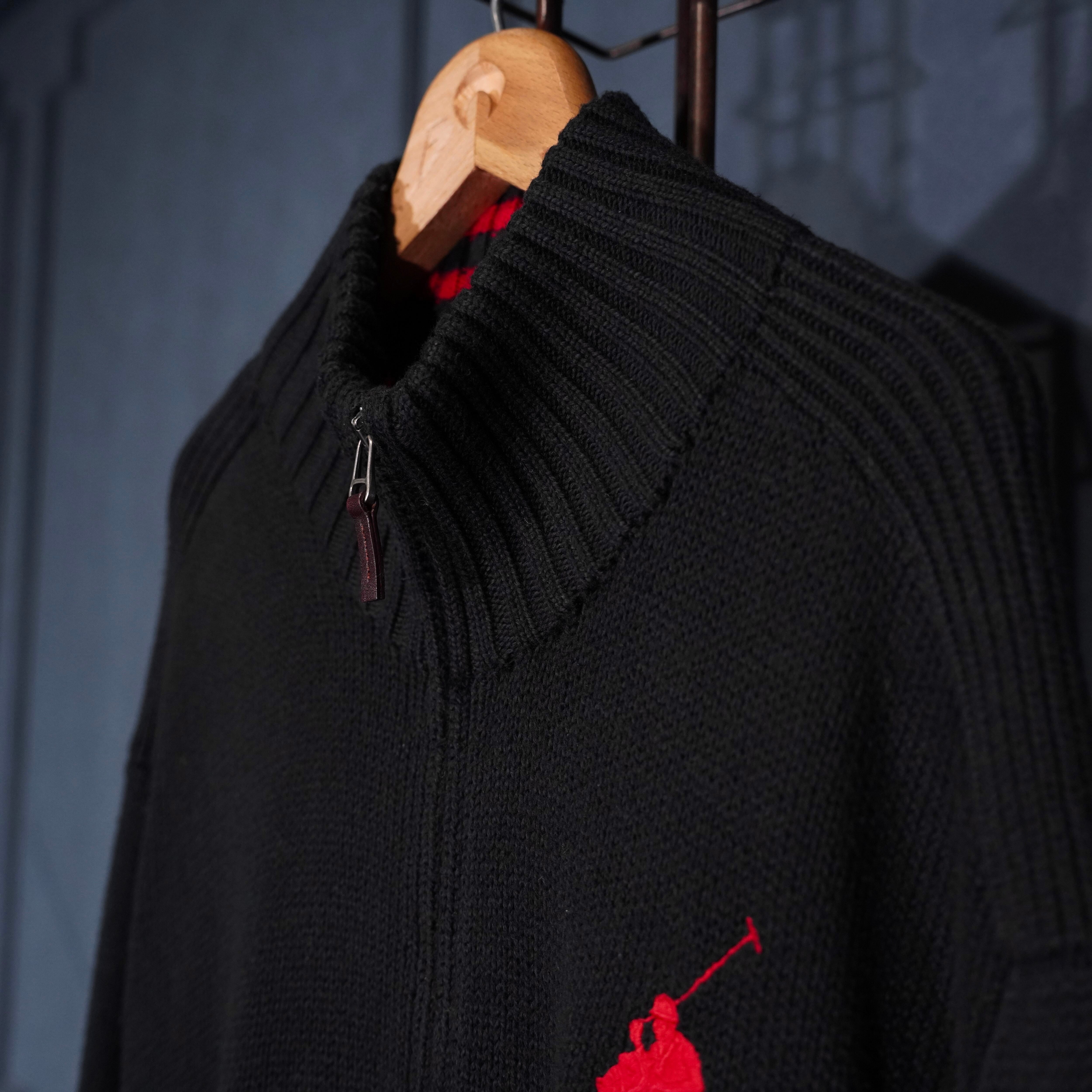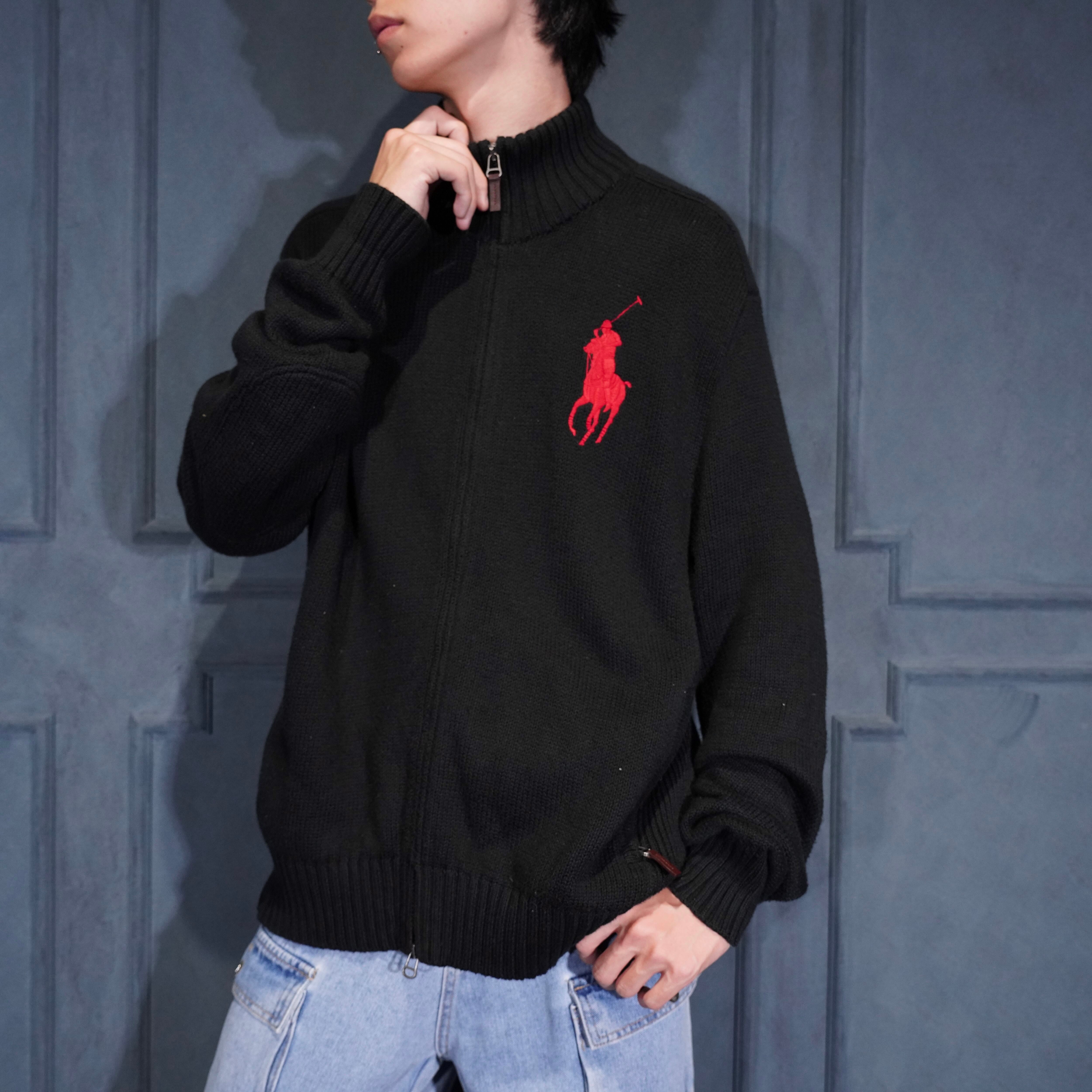 USA VINTAGE Polo by Ralph Lauren BIG PONY EMBROIDERY DESIGN COTTON ZIP UP DRIVERS KNIT/アメリカ古着ポロバイラルフローレンビッグポニーデザインコットンジップアップドライバーズニット
