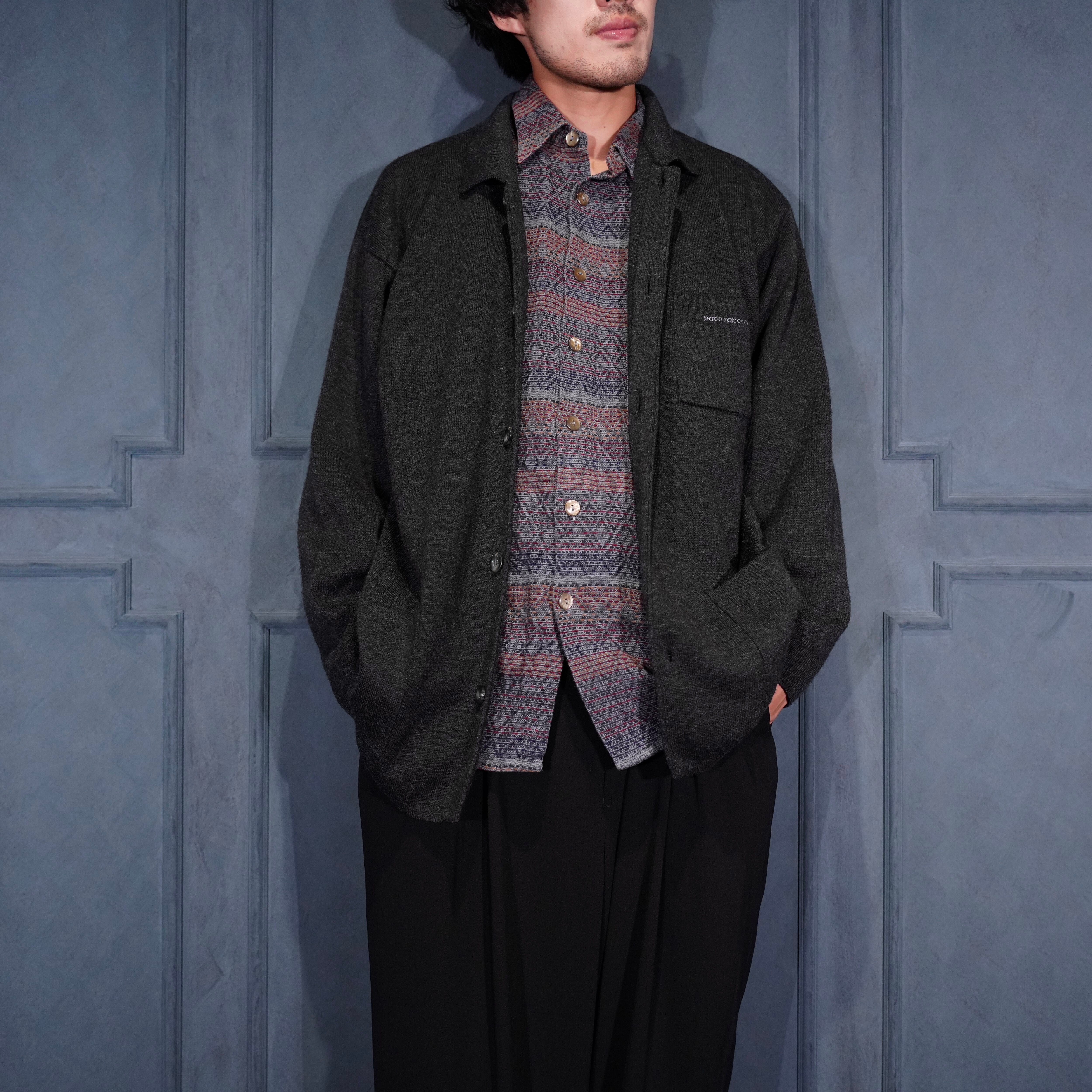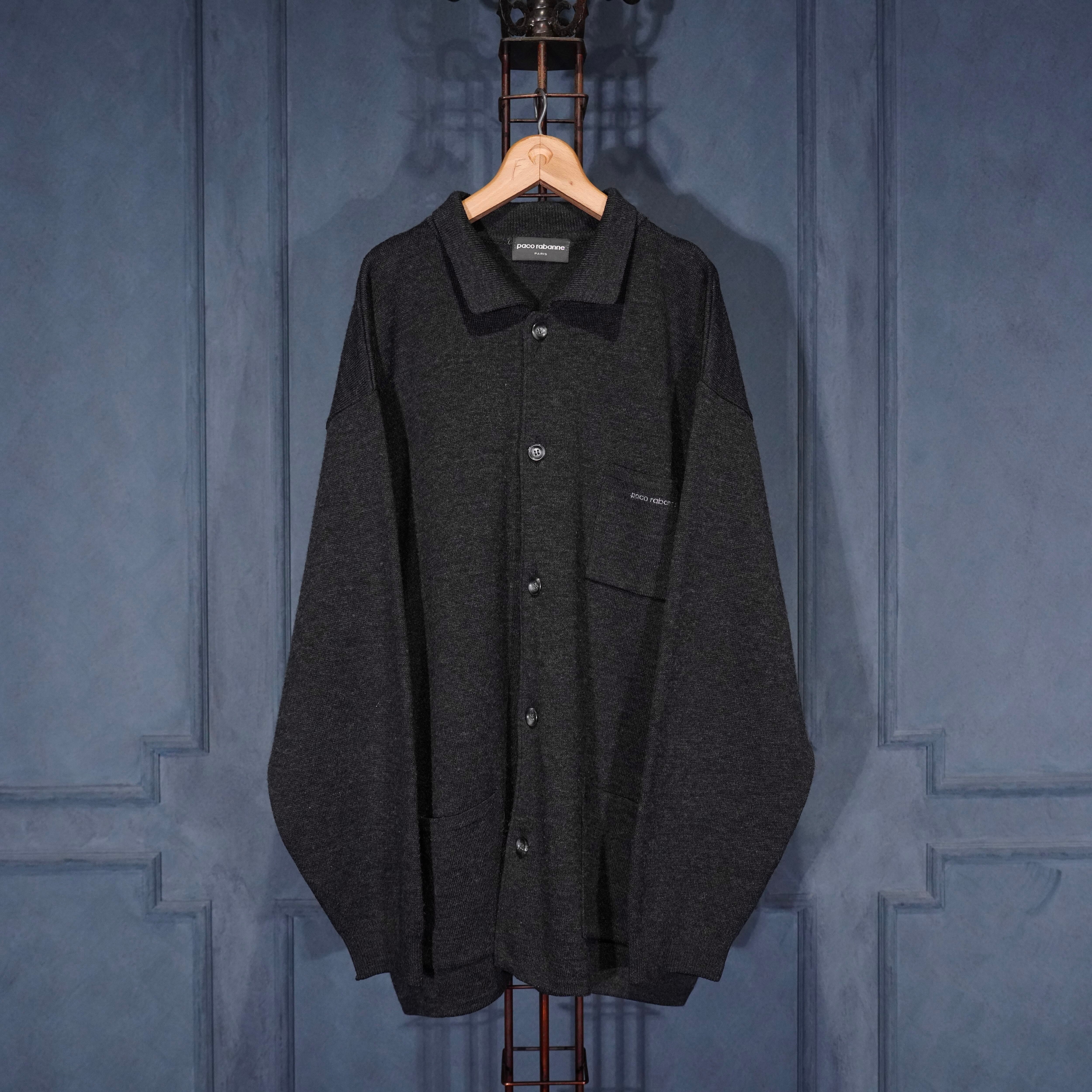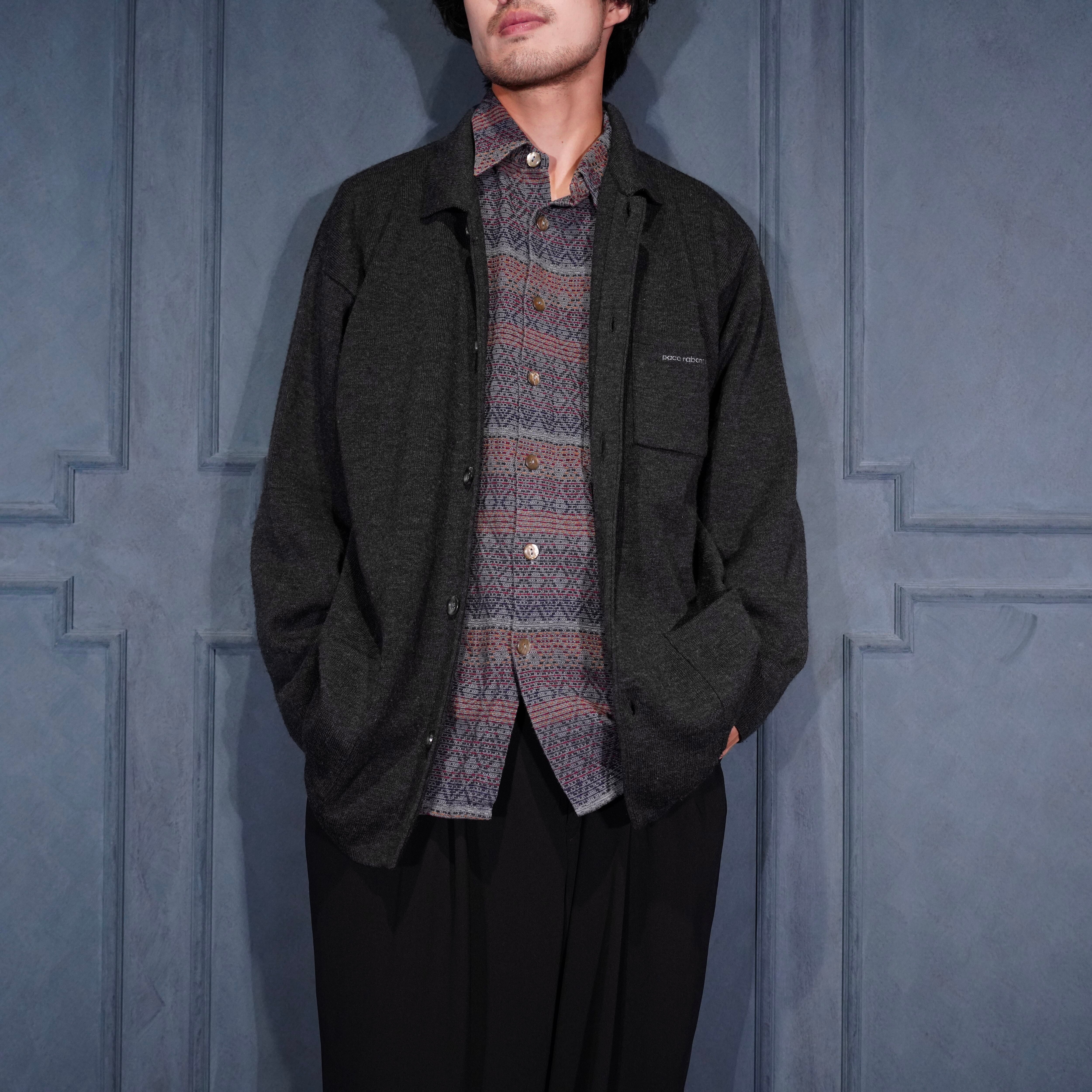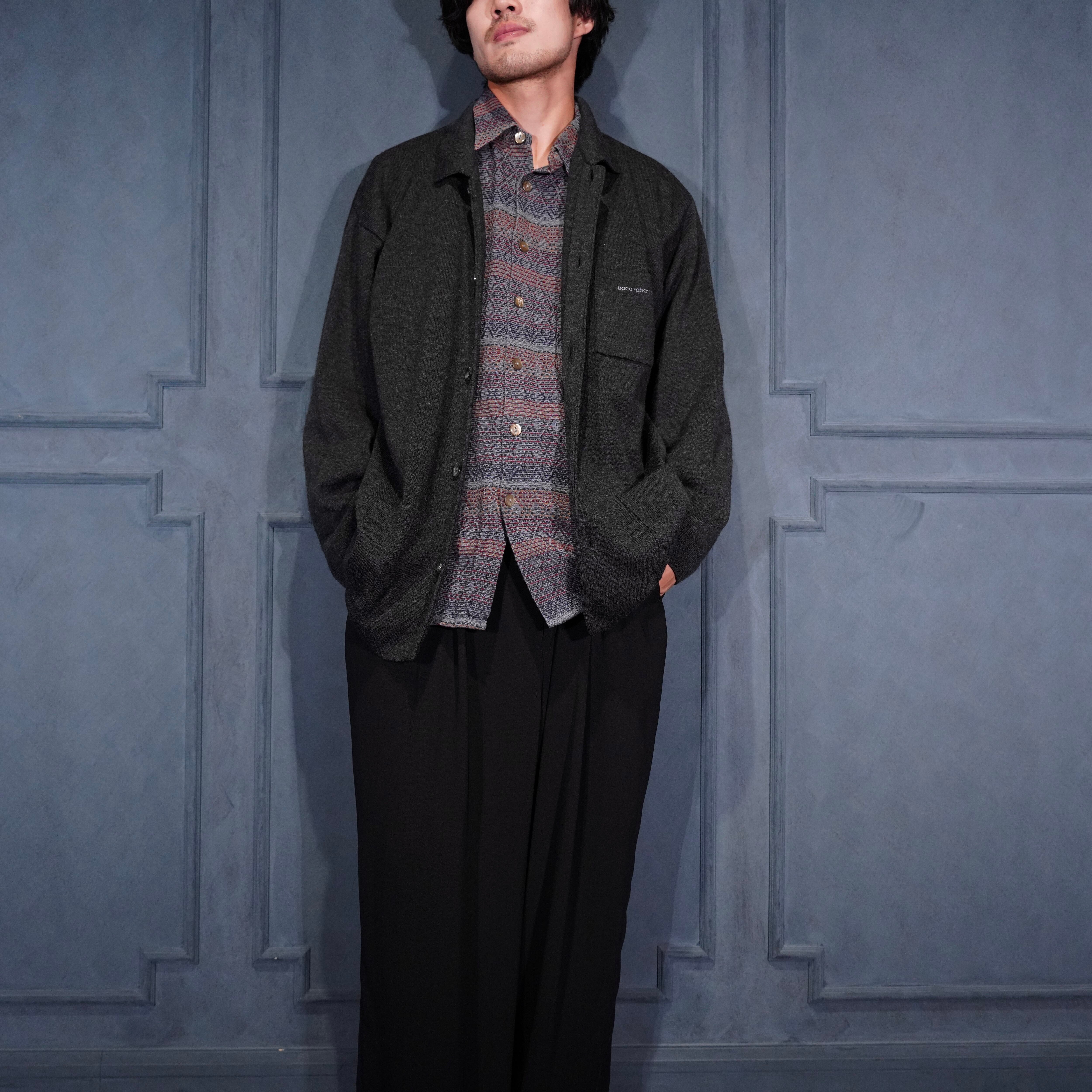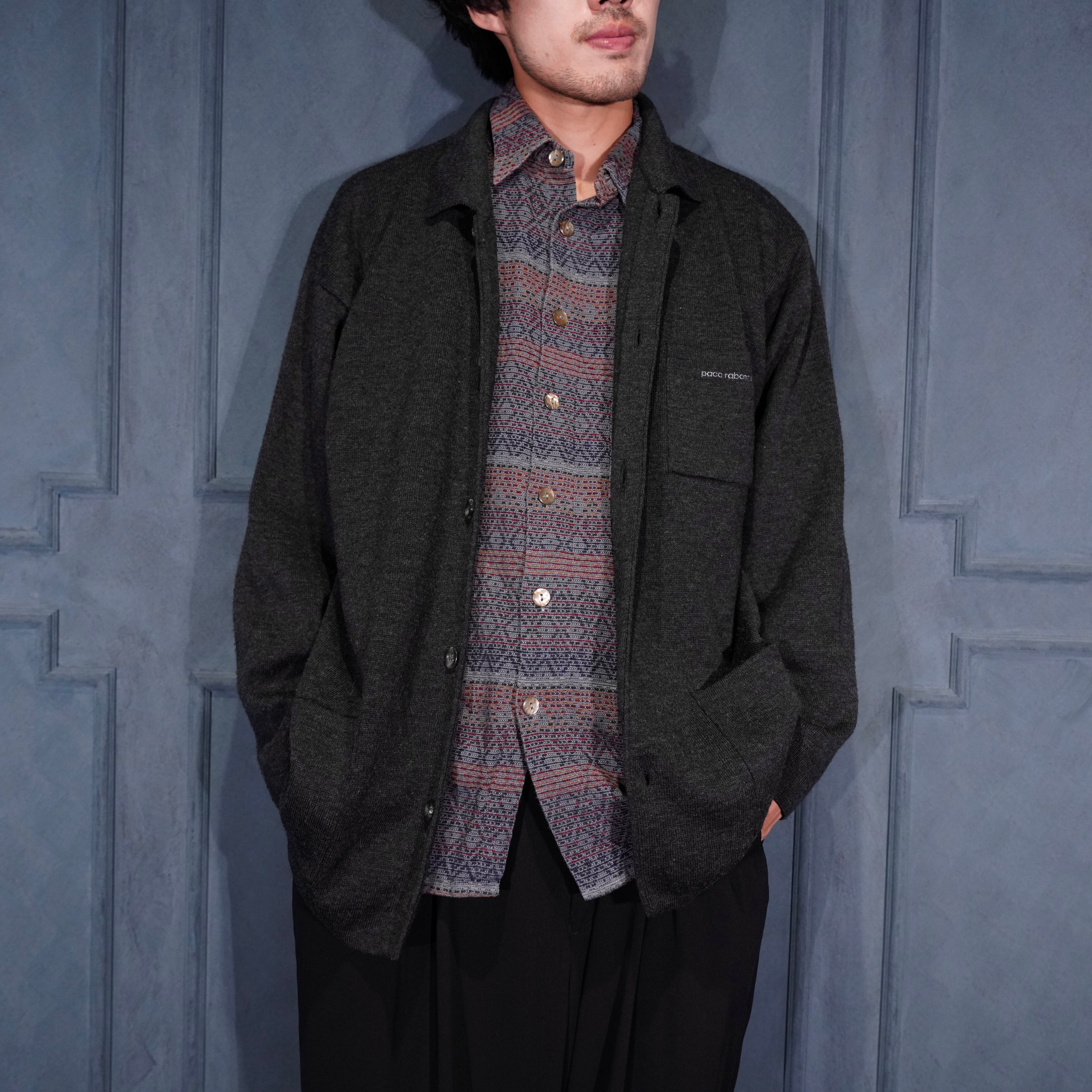 EU VINTAGE paco rabanne LOGO EMBROIDERY DESIGN KNIT JACKET/ヨーロッパ古着ロゴ刺繍デザインニットジャケット