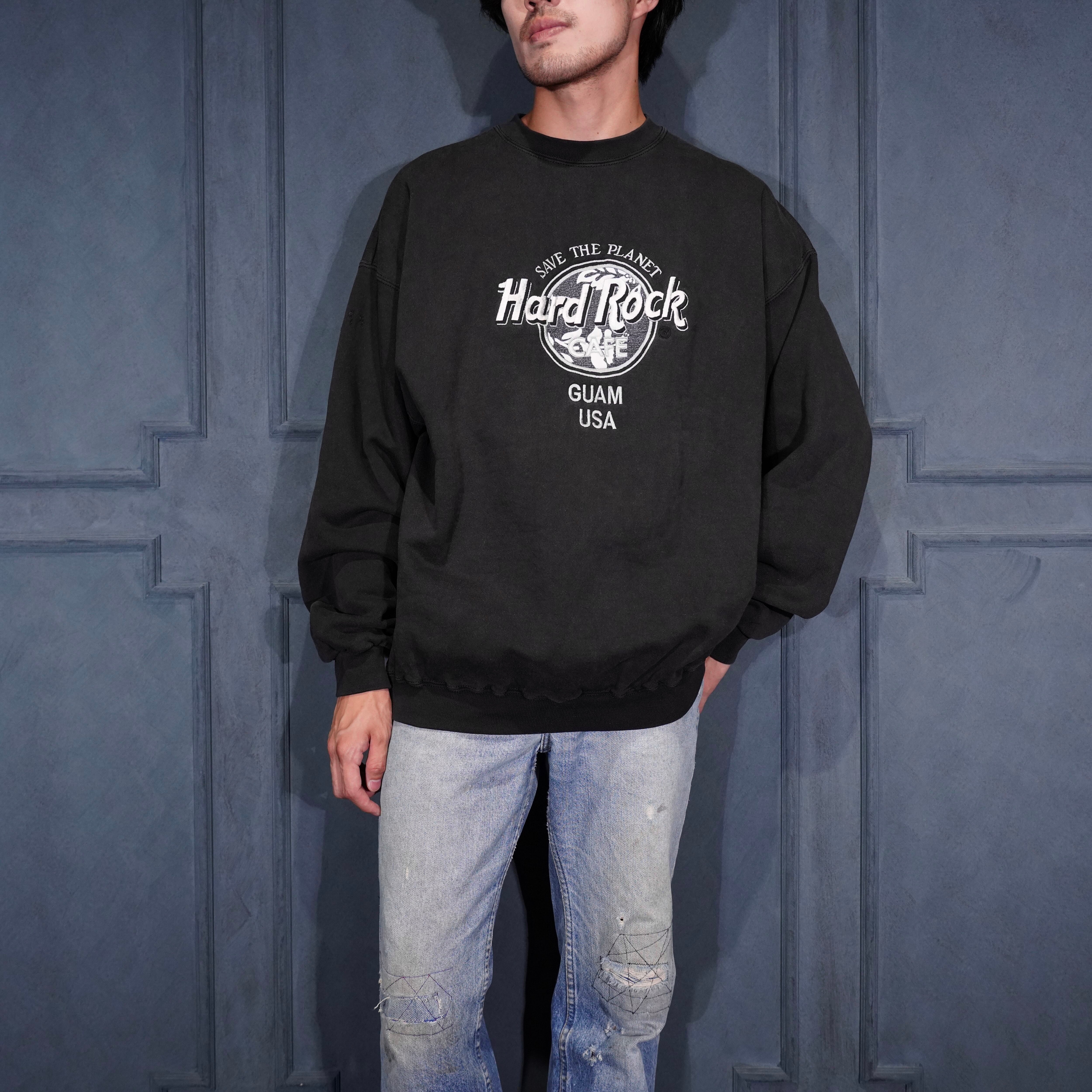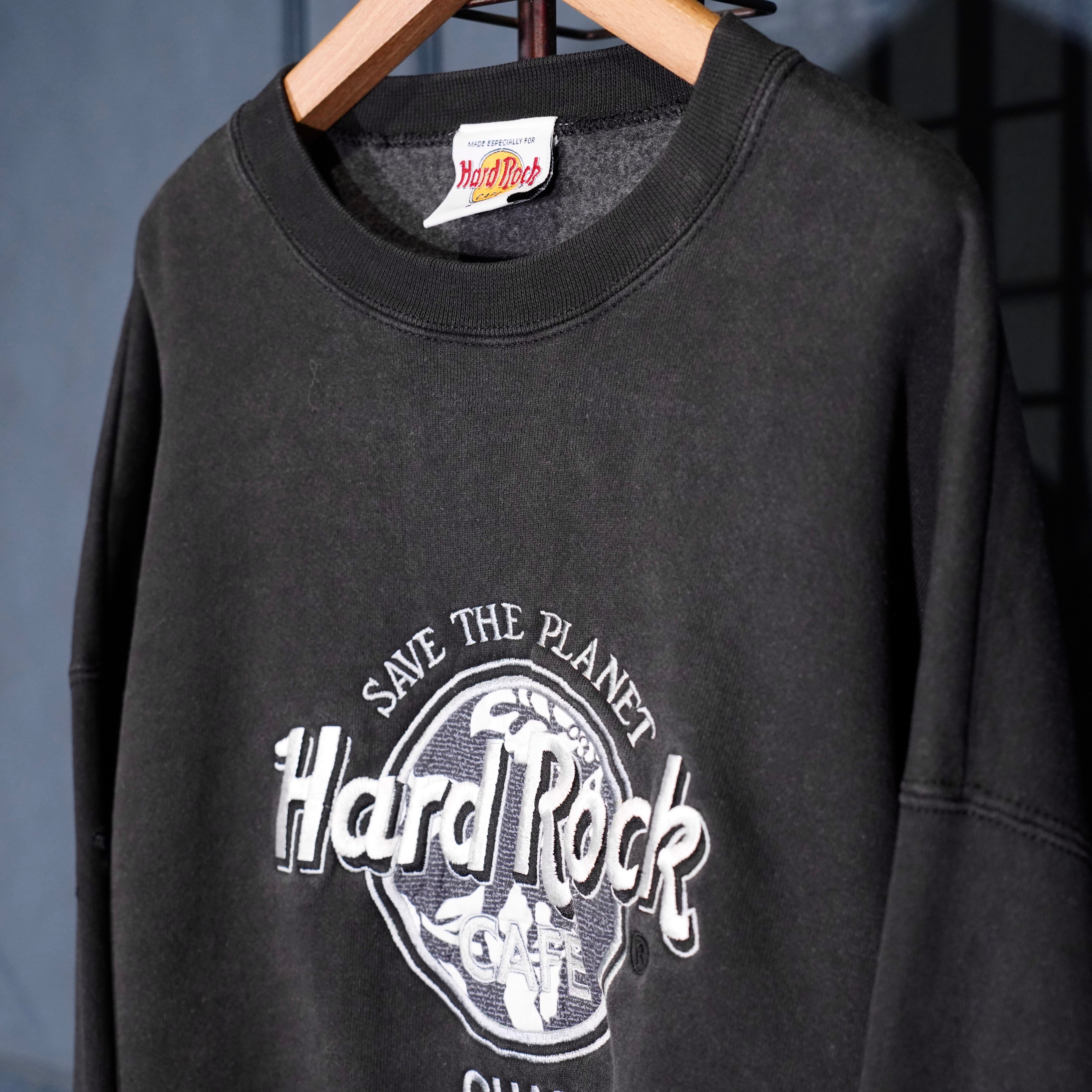 90's USA VINTAGE Hard Rock CAFE LOGO EMBDOIERY DESIGN SWEAT SHIRT/90年代アメリカ古着ロゴ刺繍デザインスウェット