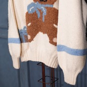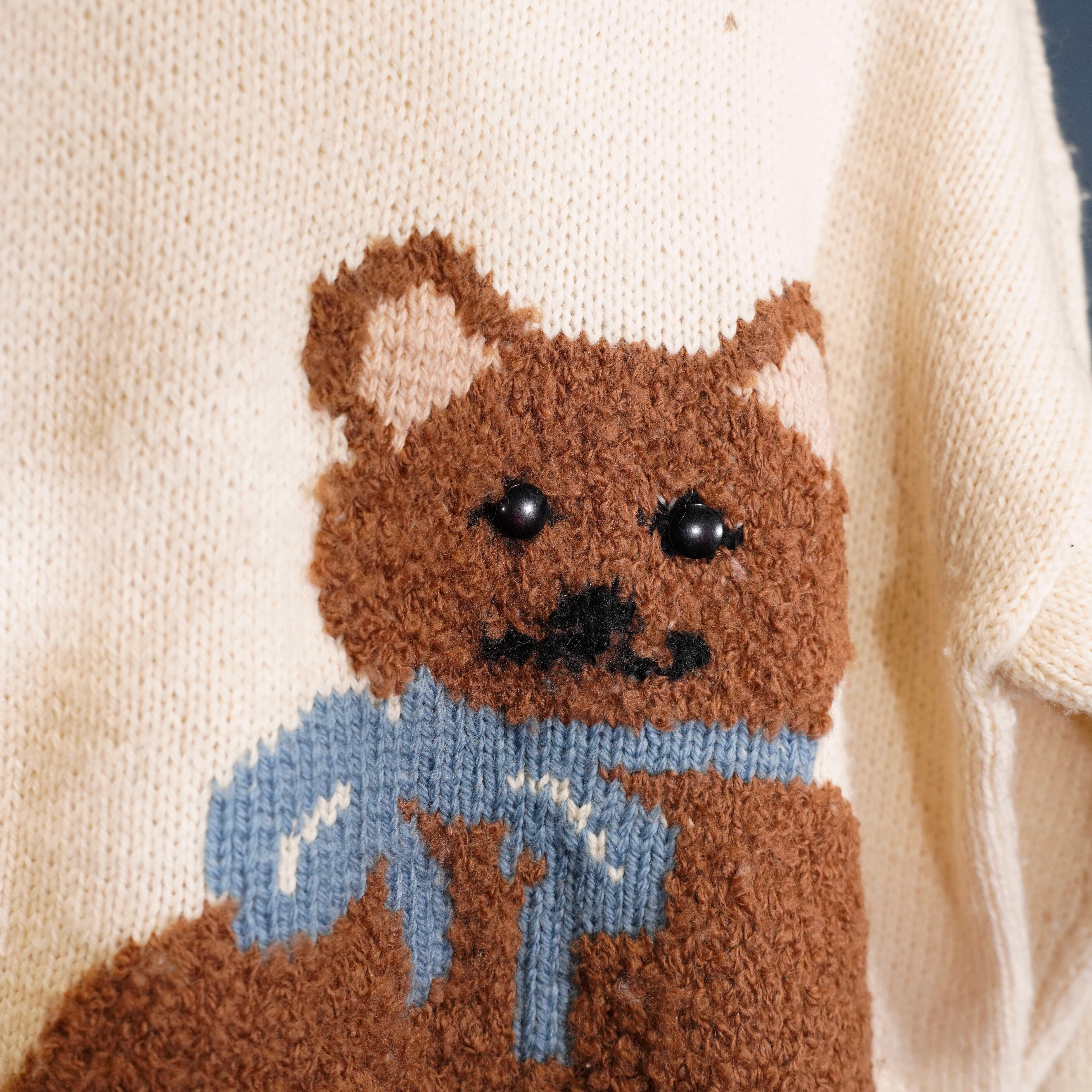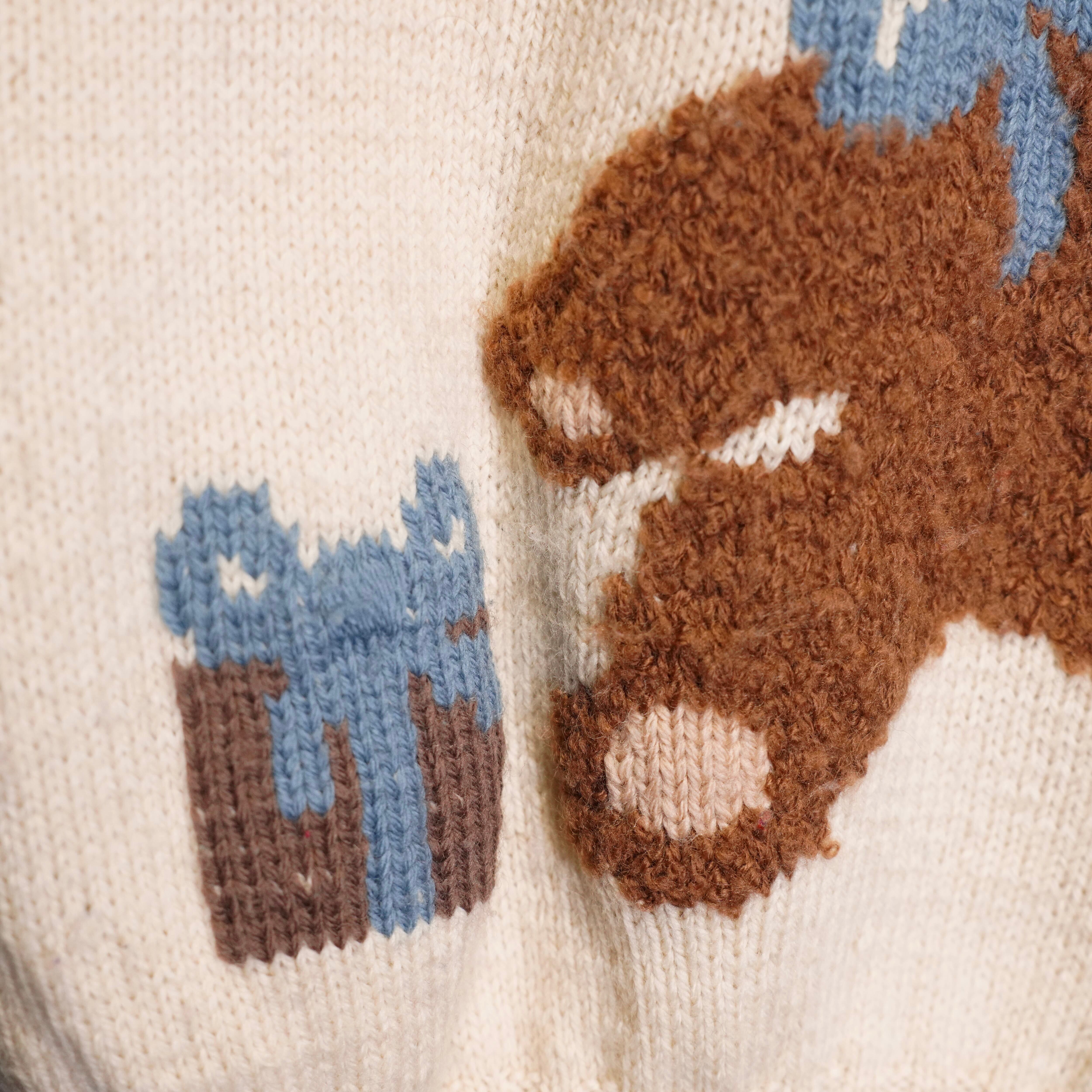 USA VINTAGE KAND KNIT BY BEREK TEDDY BEAR PRINT DESIGN WOOL HAND KNIT/アメリカ古着テディベアプリントデザインウールハンドニット
