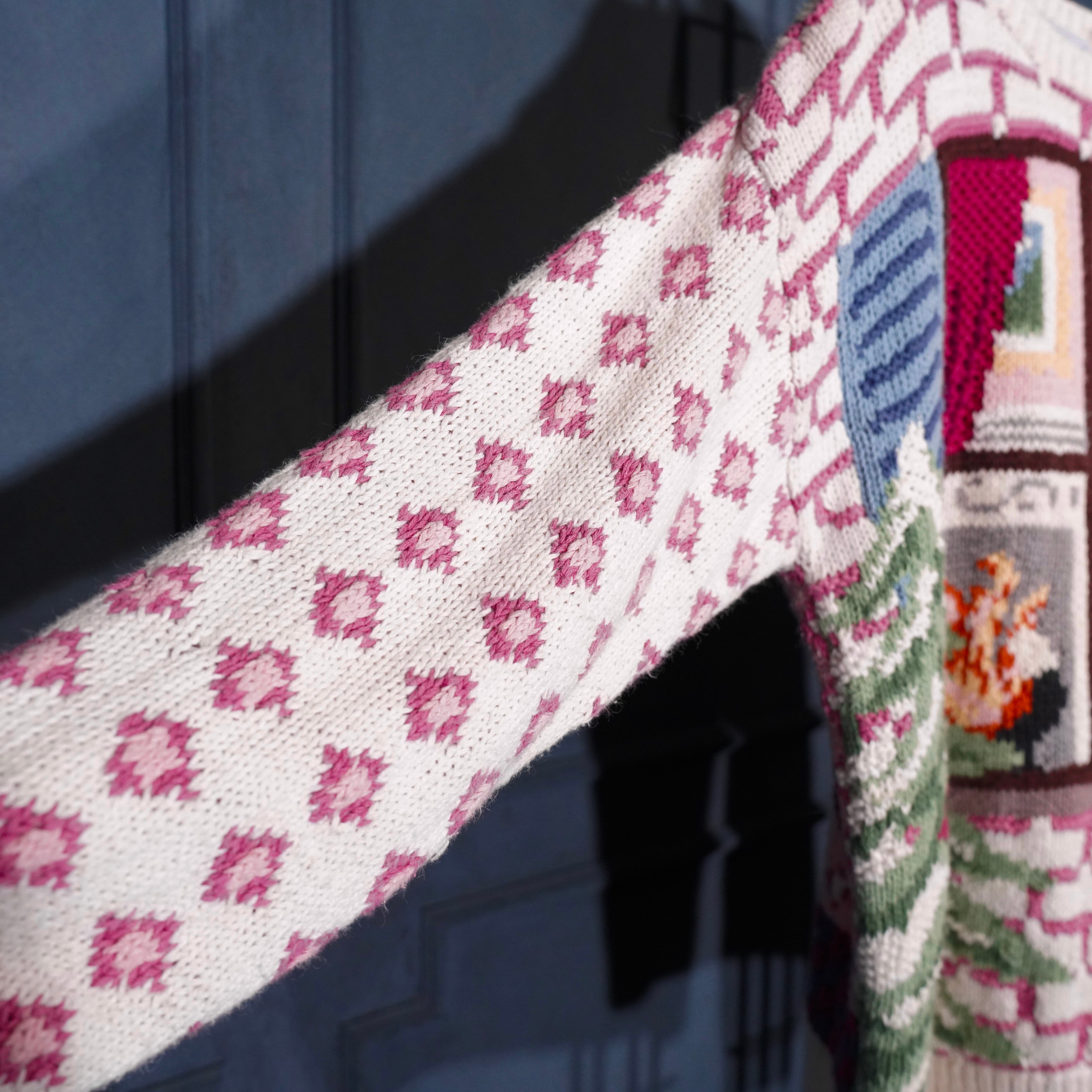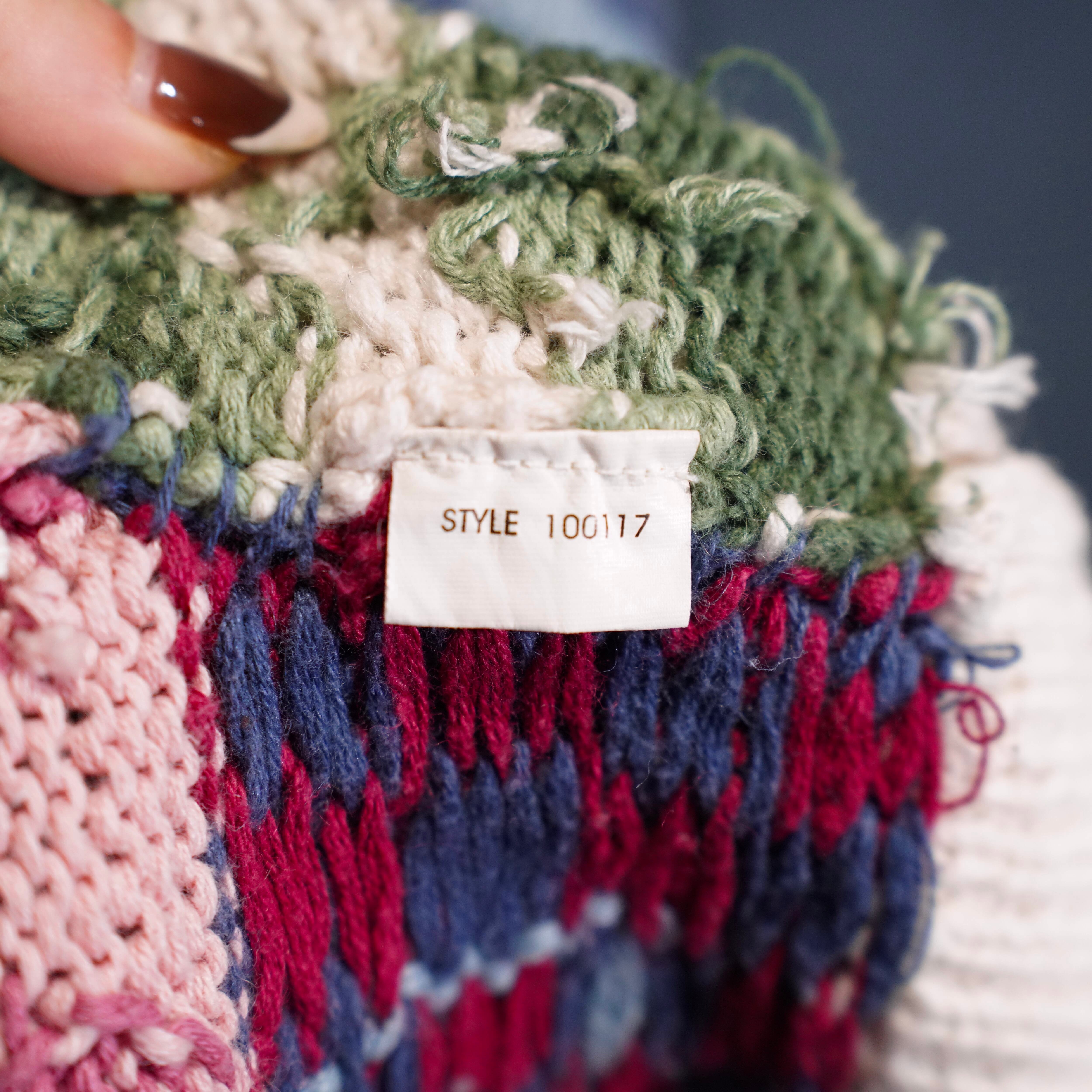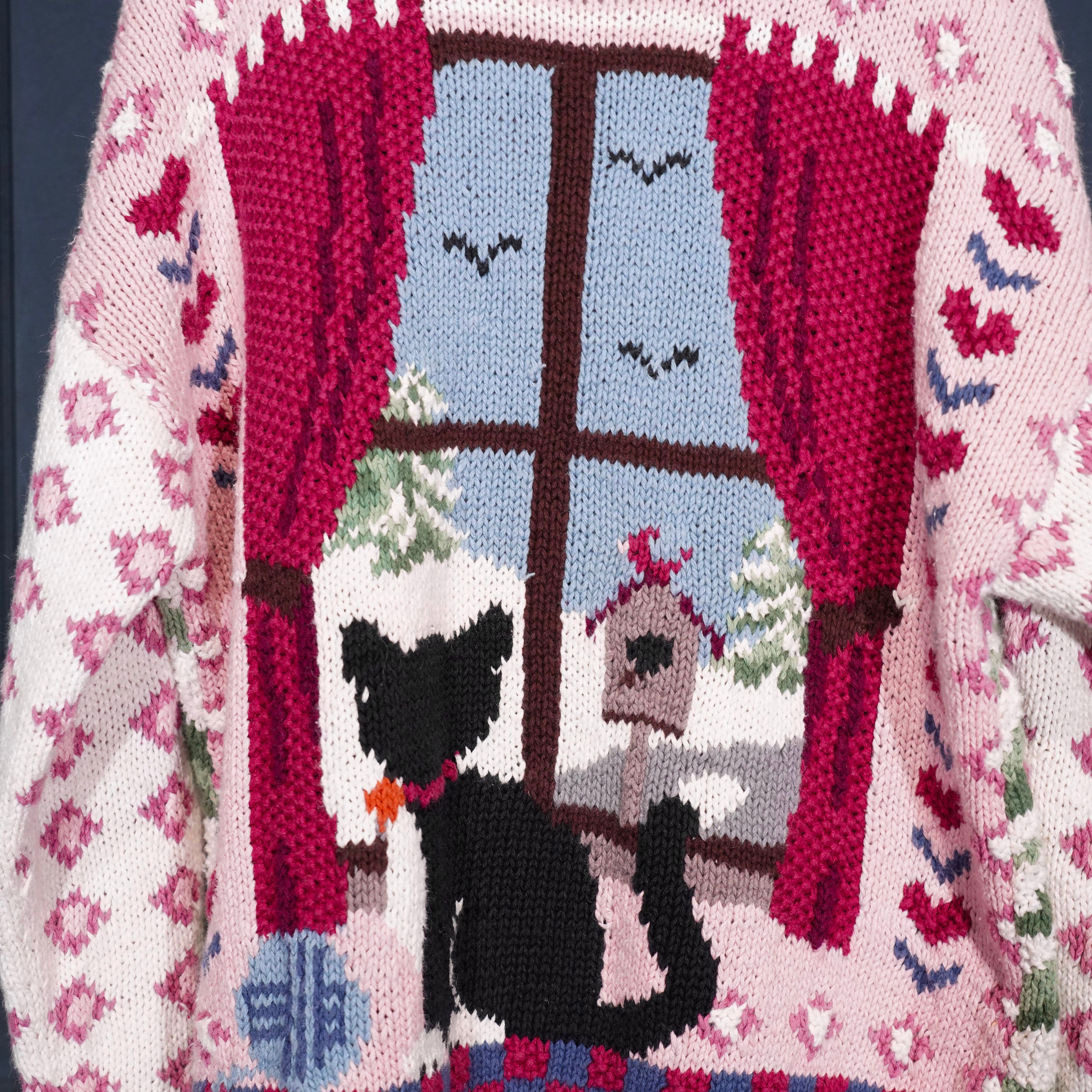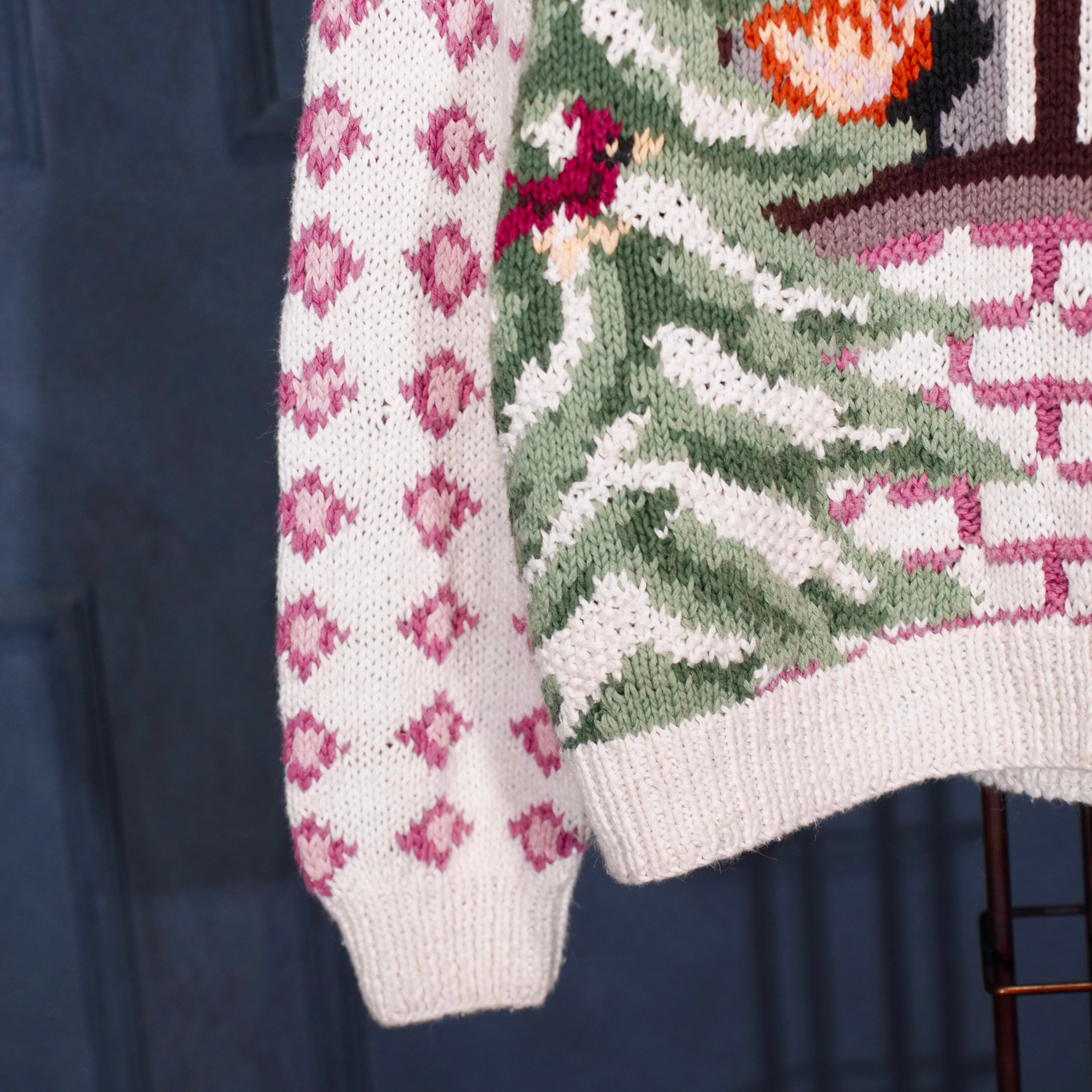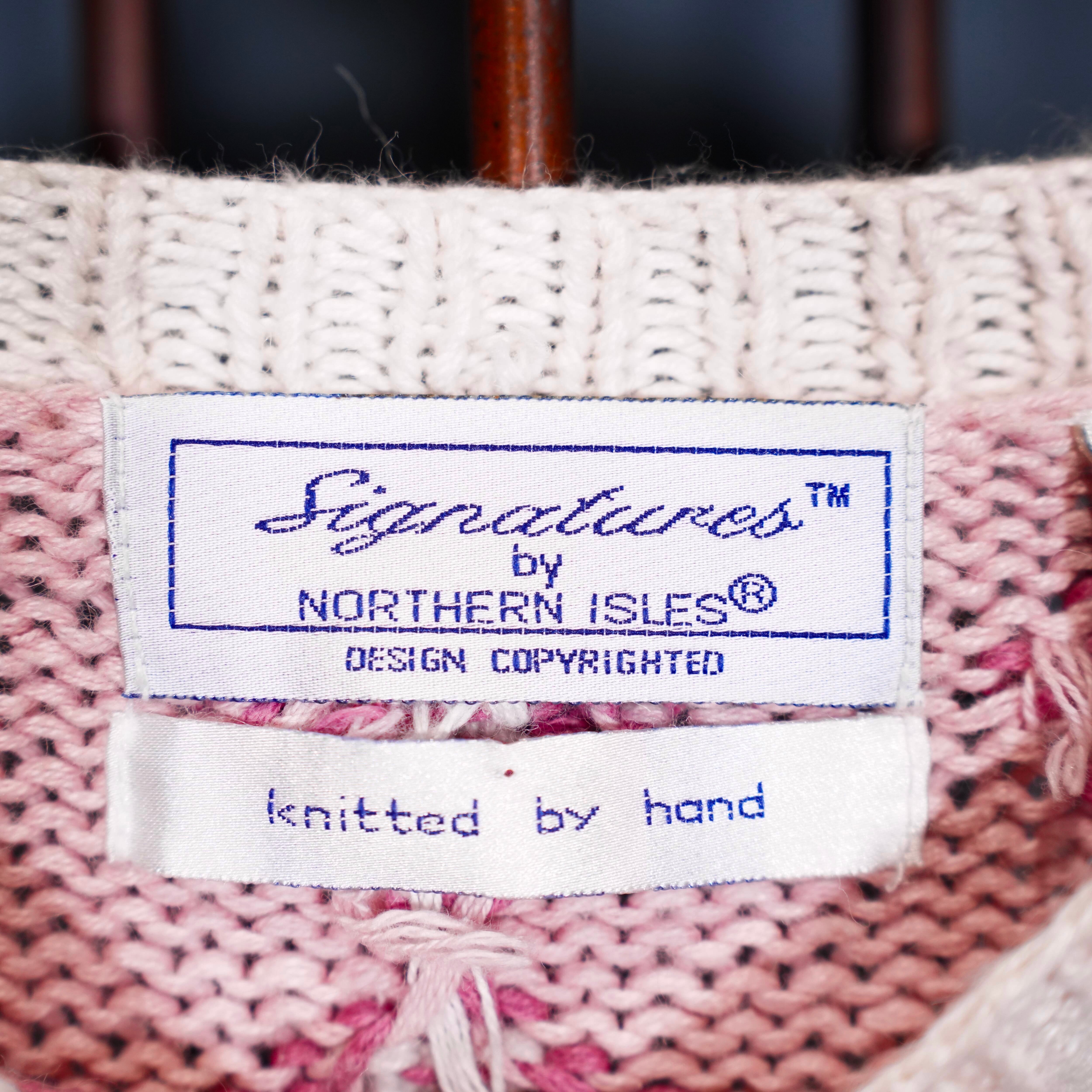 *SPECIAL ITEM* USA VINTAGE Signatures by NORTHERN ISLES knitted by hand CAT IN THE ROOM PRINT DESIGN COTTON RAMIE HAND KNIT/アメリカ古着部屋のにゃんこプリントデザインコットンラミーハンドニット