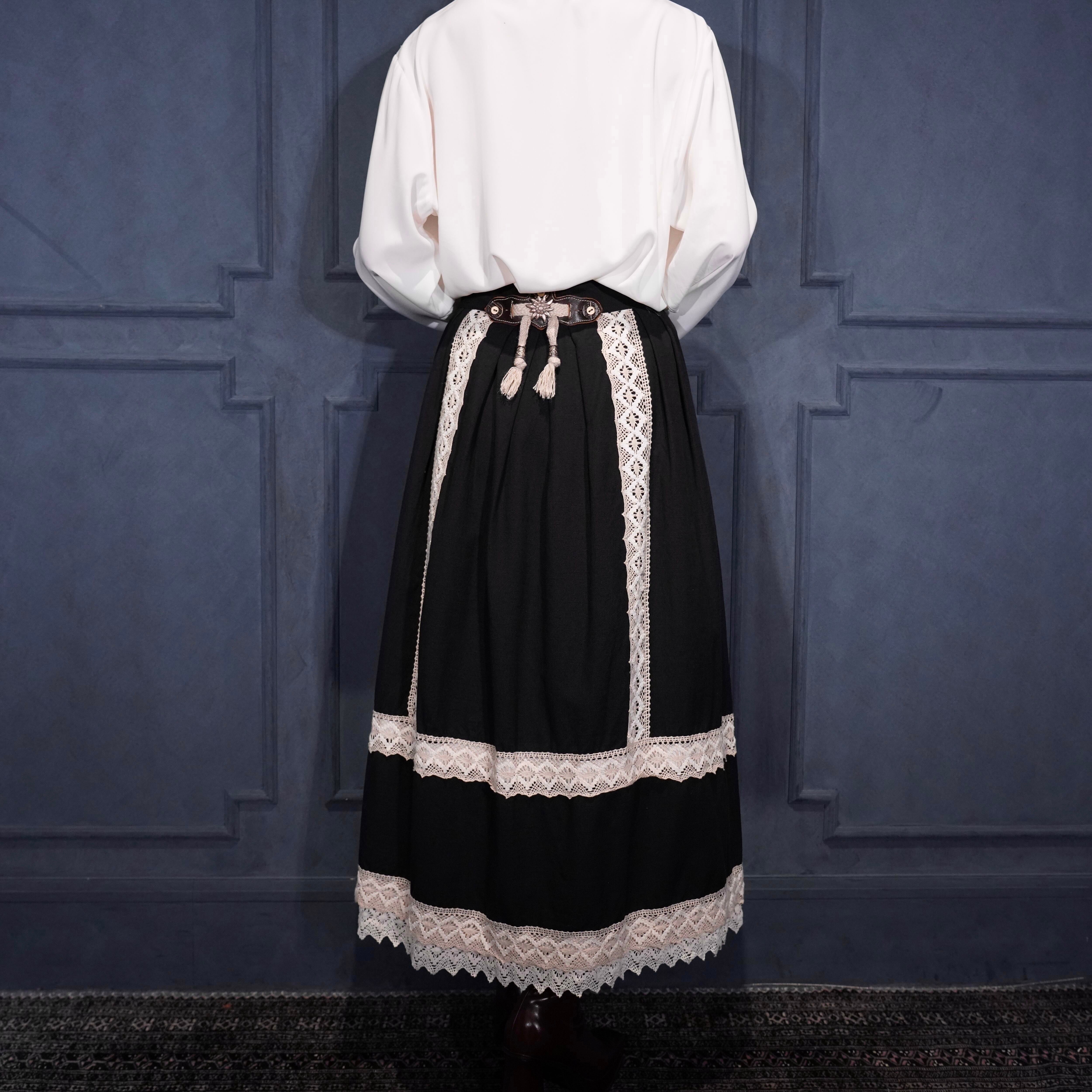 EU VINTAGE OSCAR LACE DESIGN LINEN TYROLEAN LONG SKIRT/ヨーロッパ古着レースデザインリネンチロリアンスカート