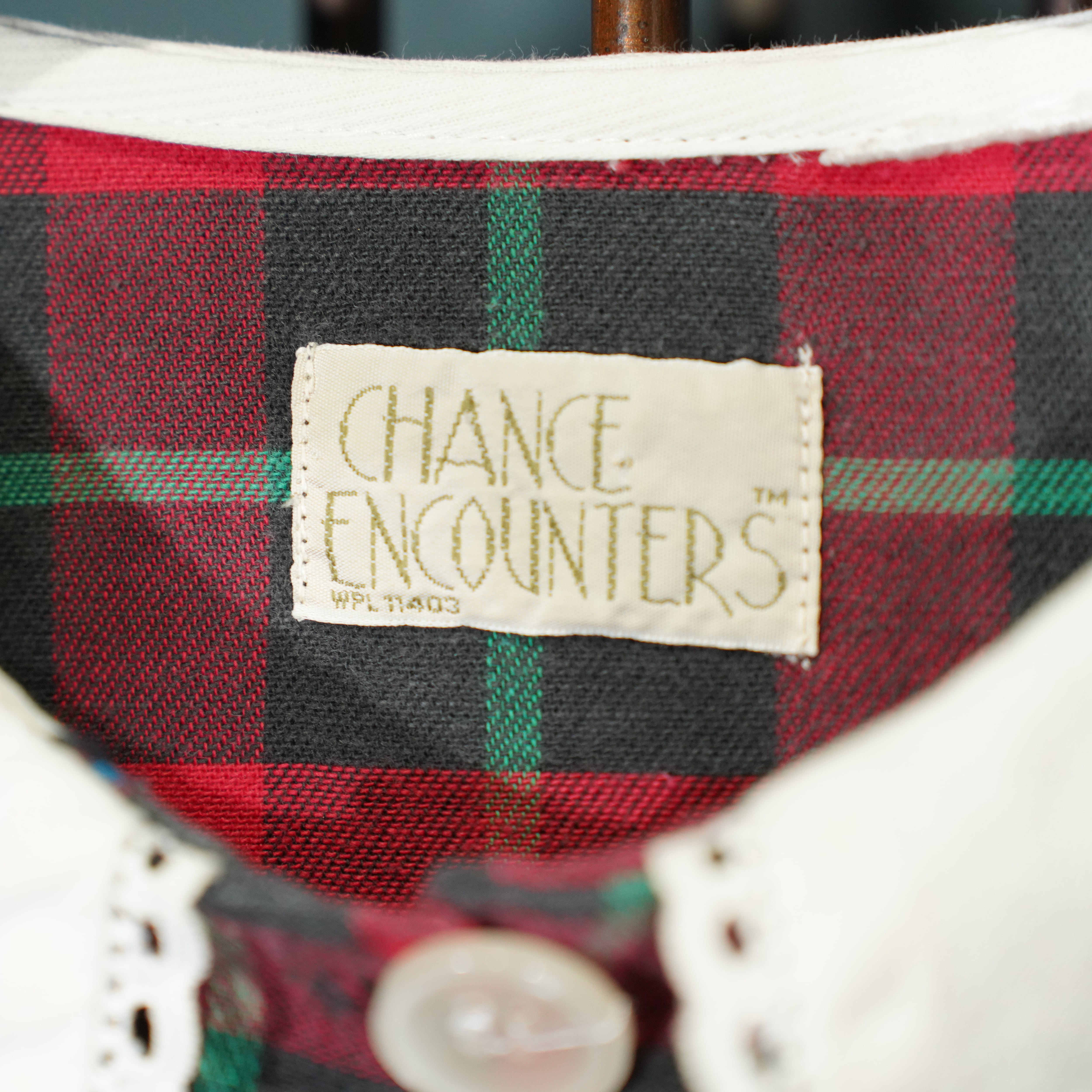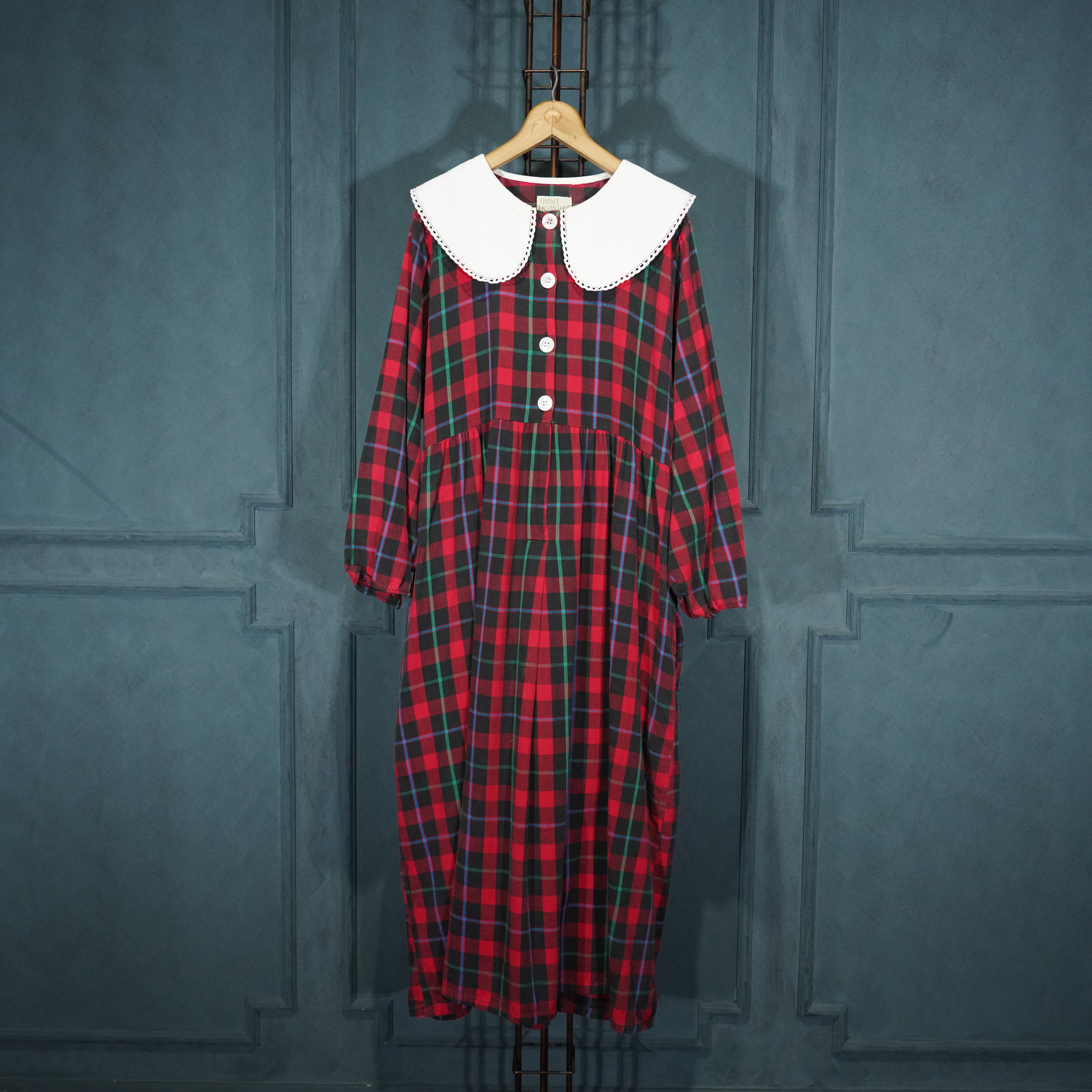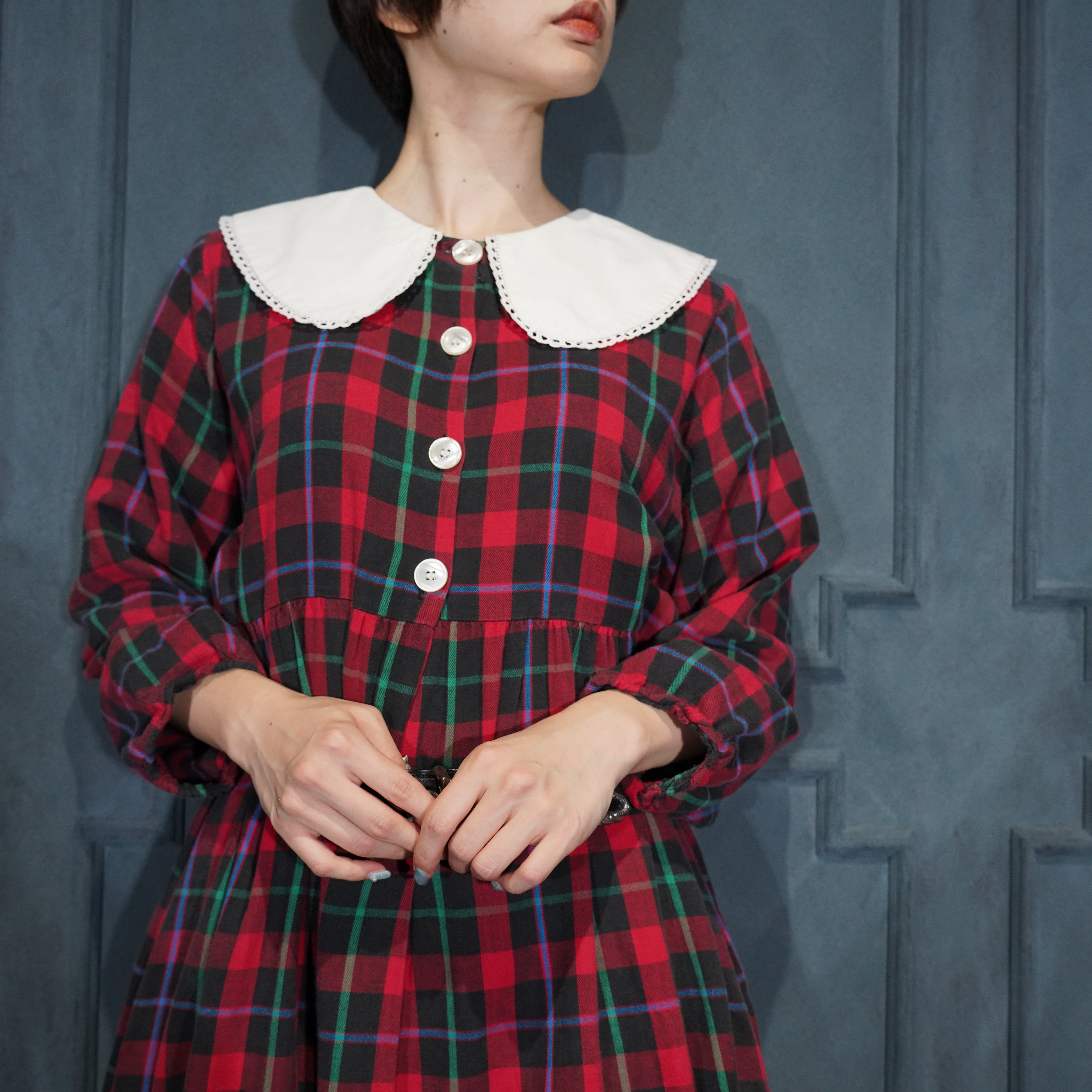 USA VINTAGE CHANCE ENCOUNTERS CHECK PATTERNED BIG COLLAR DESIGN ONE PIECE/アメリカ古着チェック柄ビッグカラーデザインワンピース