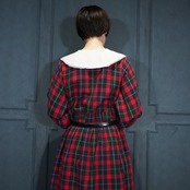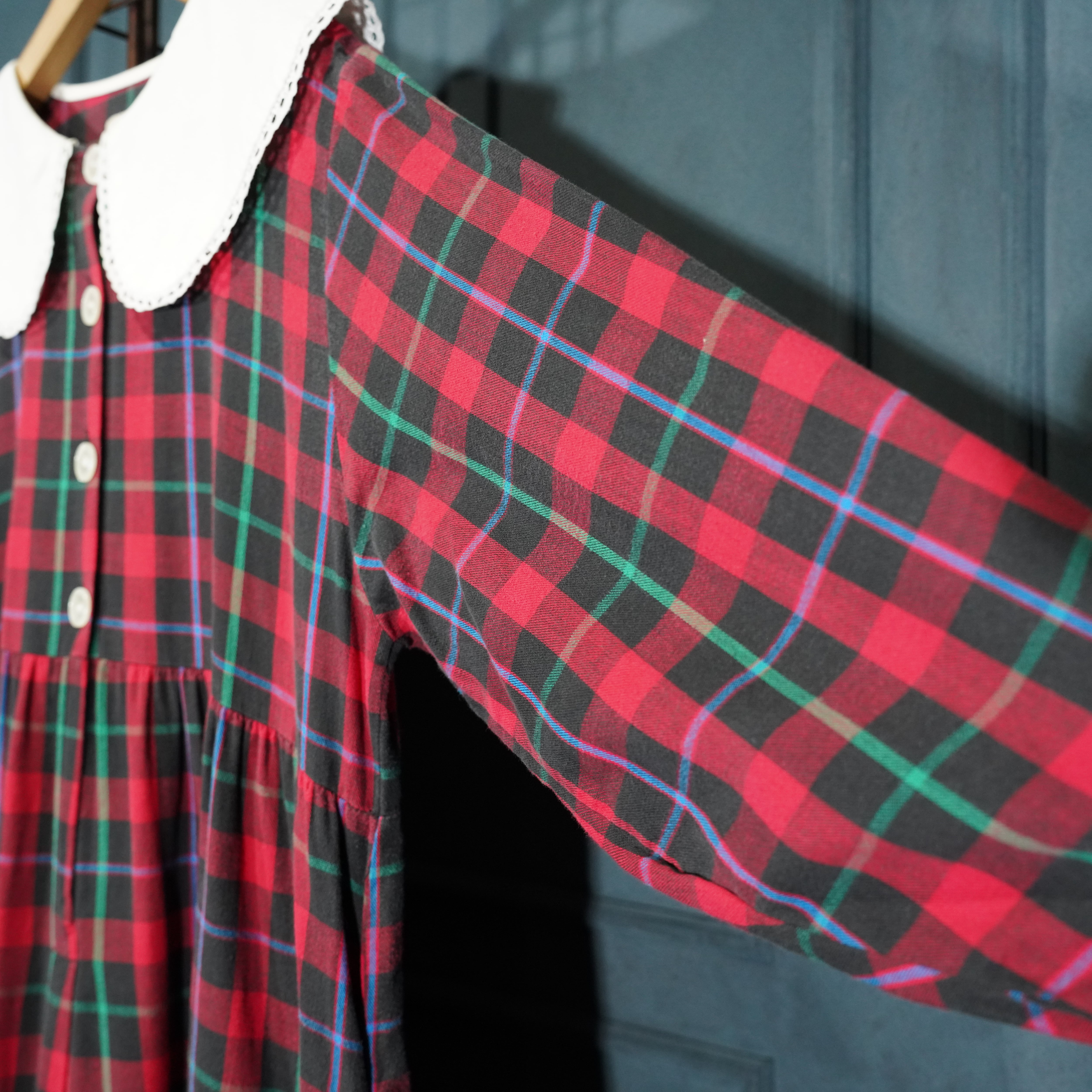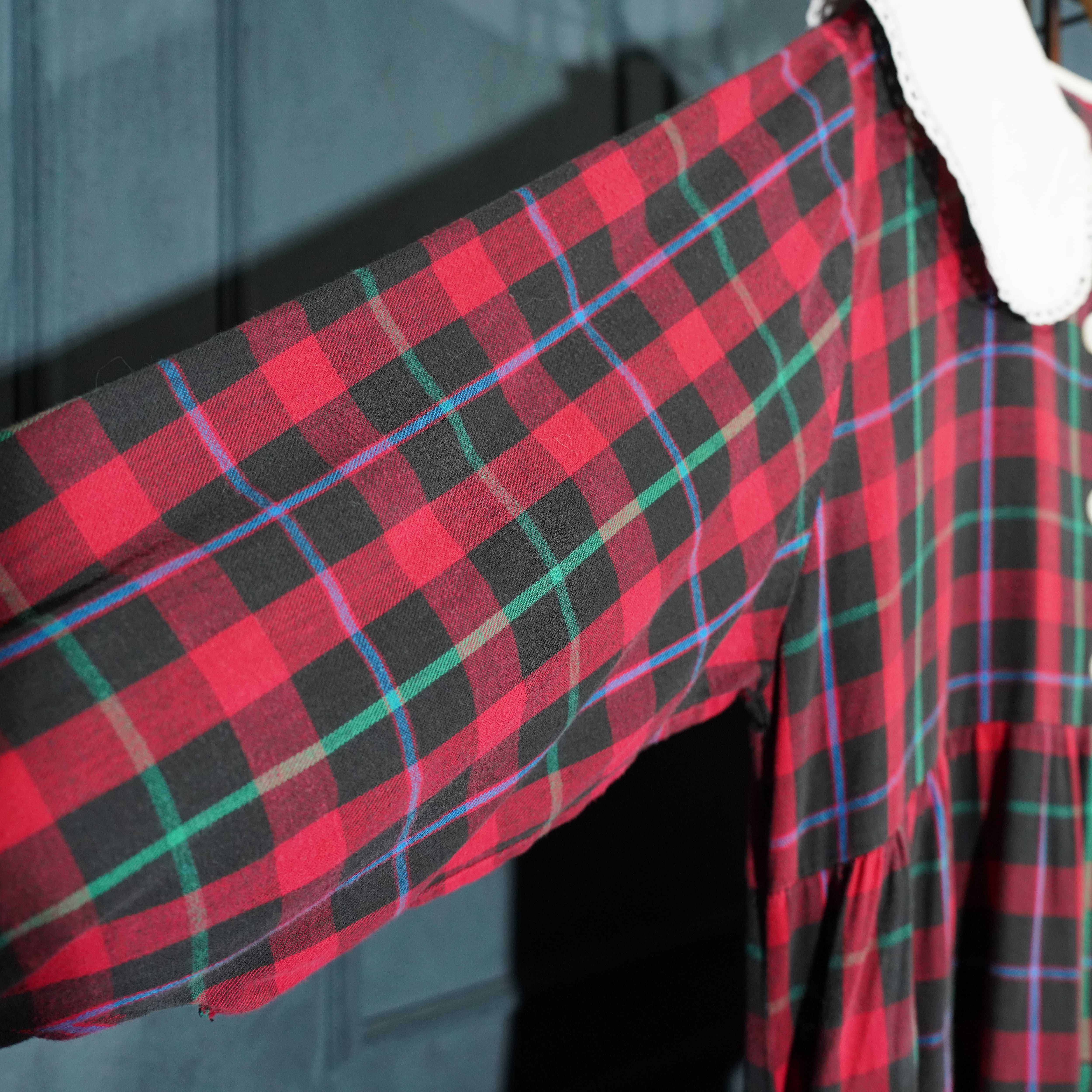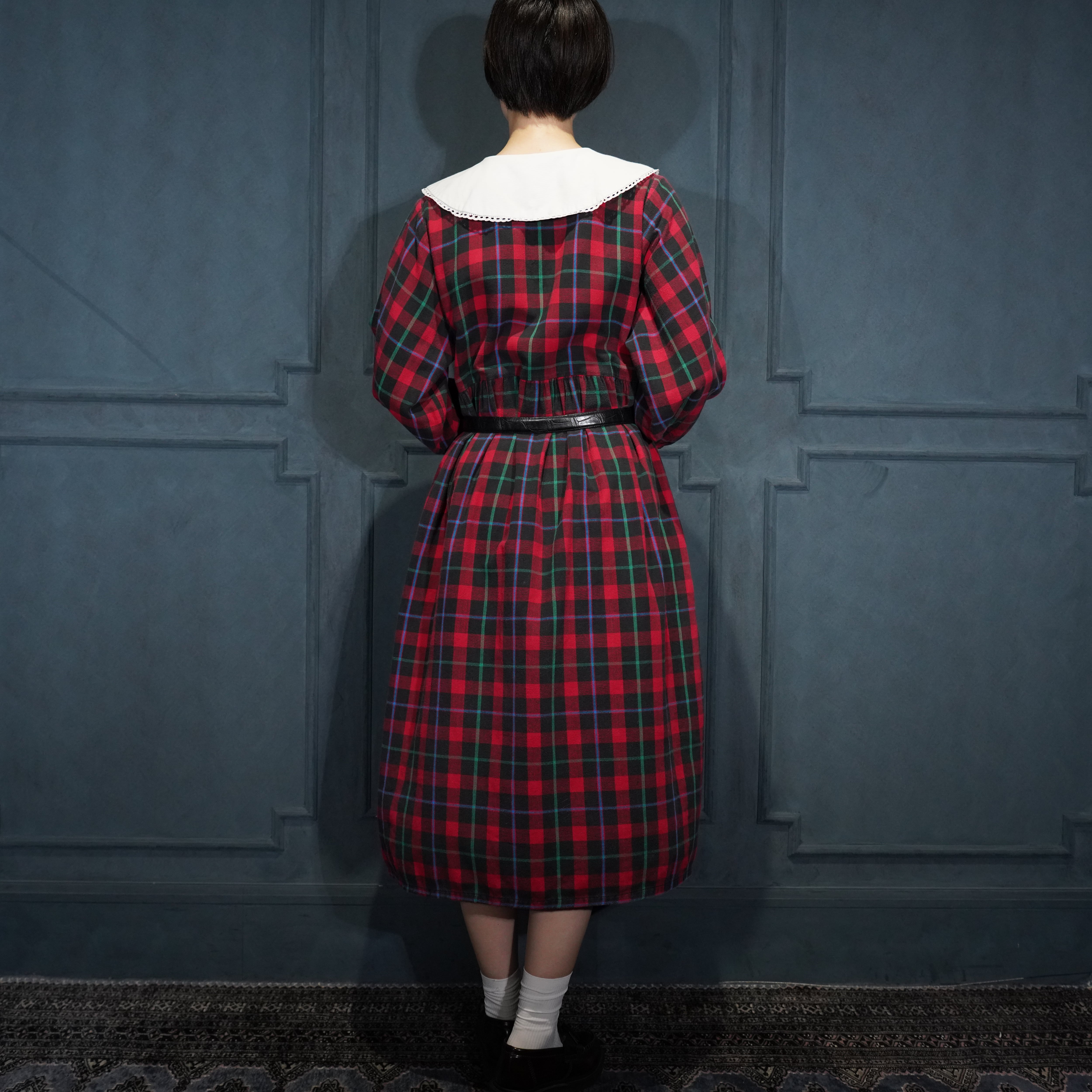 USA VINTAGE CHANCE ENCOUNTERS CHECK PATTERNED BIG COLLAR DESIGN ONE PIECE/アメリカ古着チェック柄ビッグカラーデザインワンピース