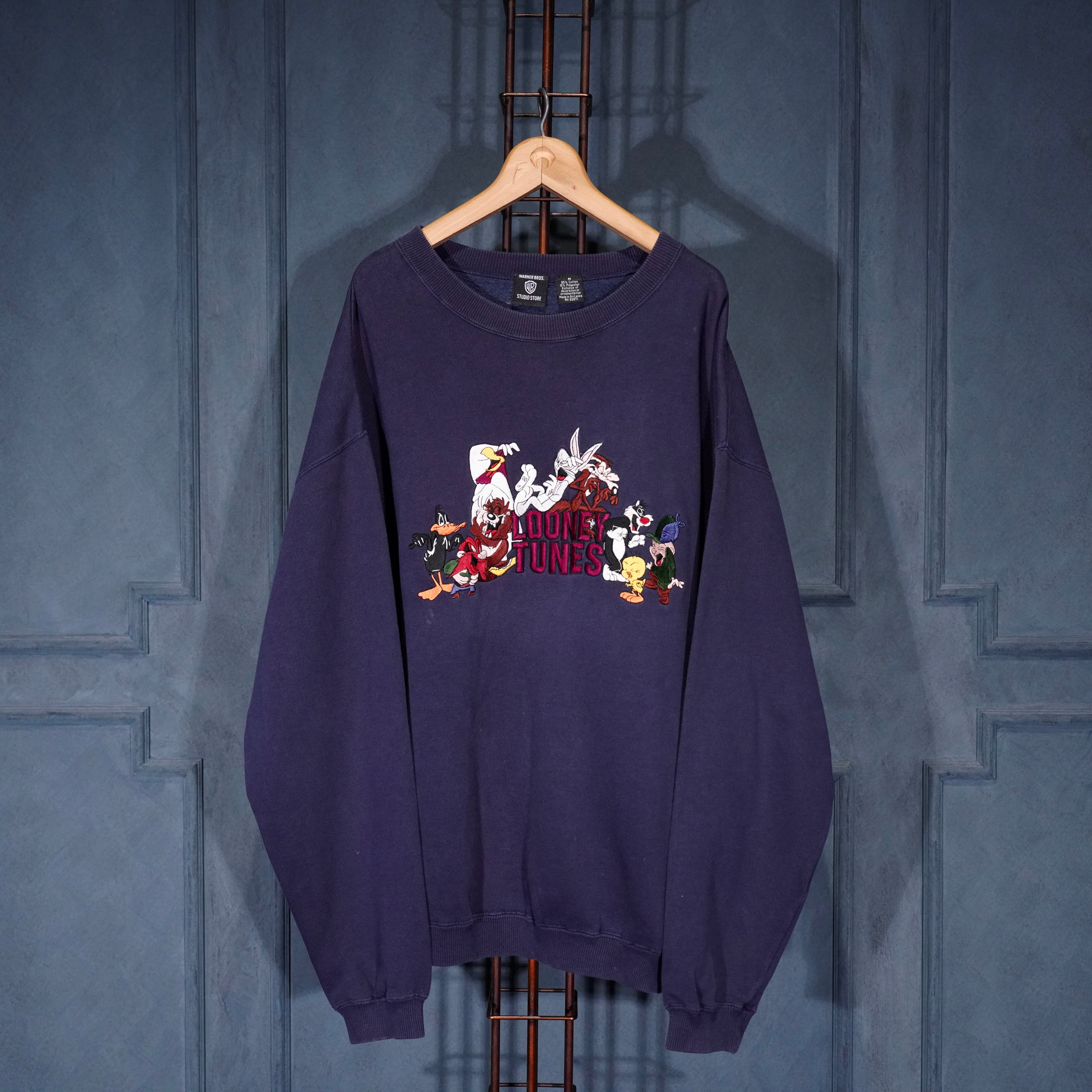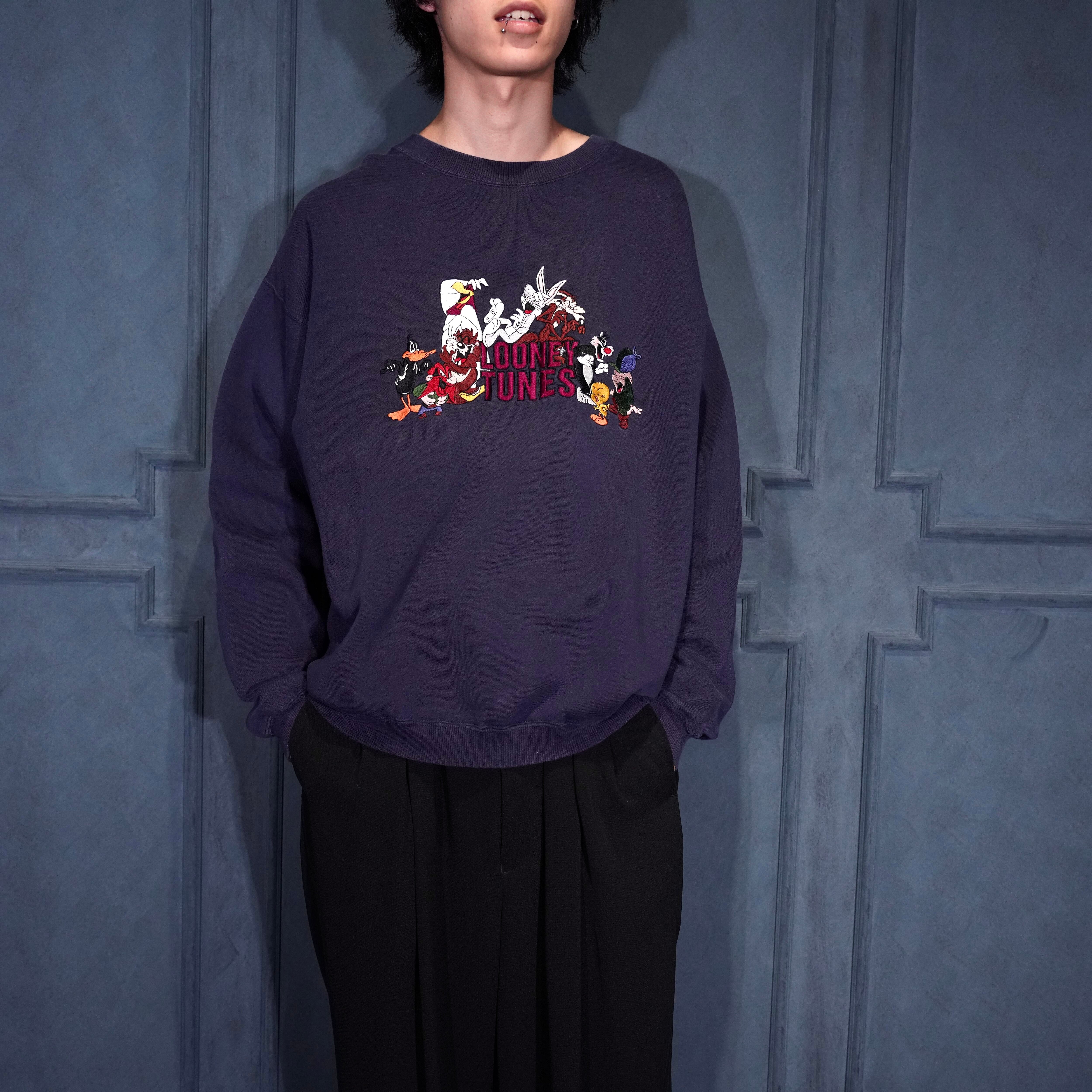90's USA VINTAGE WARNER BROS. STUDIO STORE CHARACTER EMBROIDERY DESIGN SWEAT SHIRT/90年代アメリカ古着キャラクター刺繍デザインスウェット