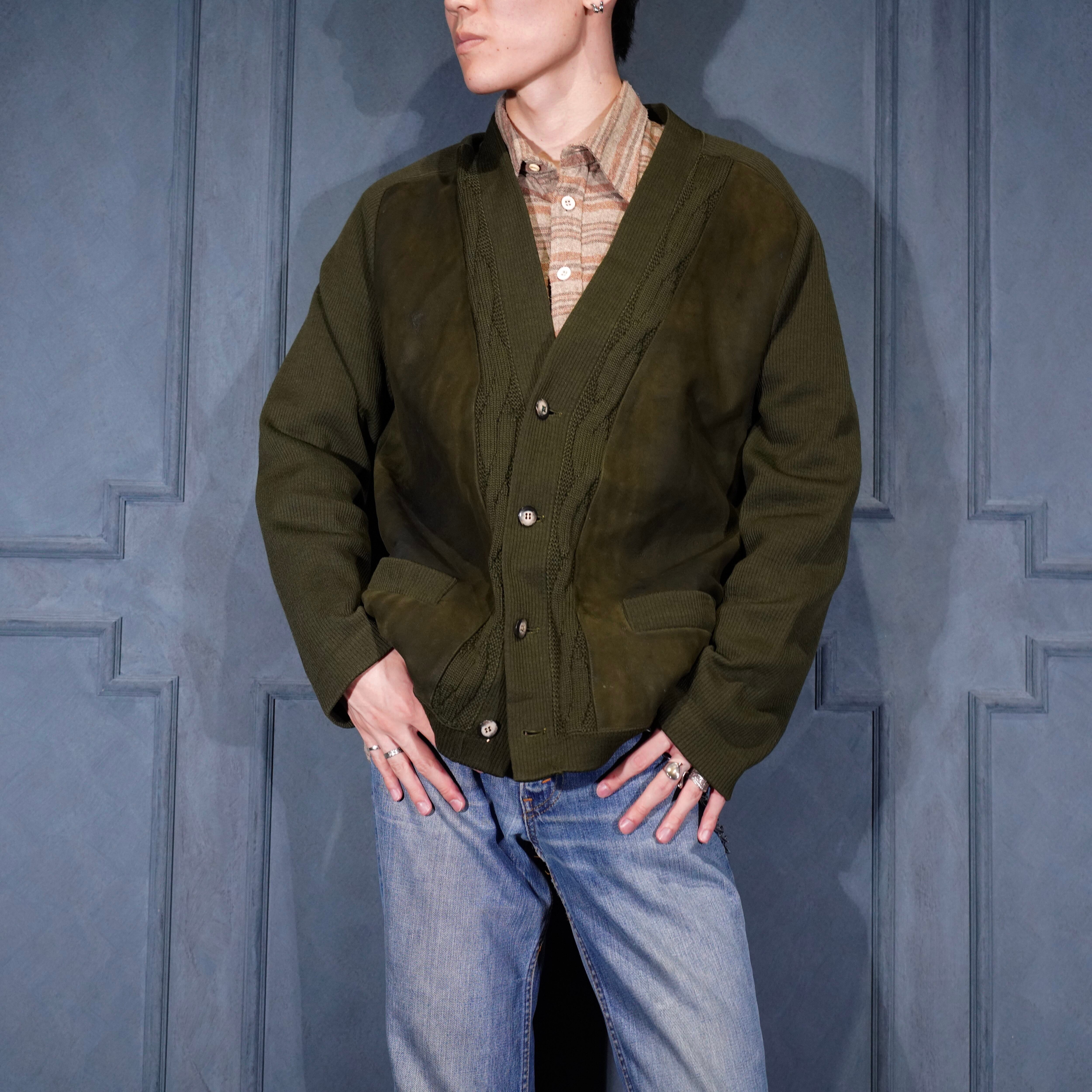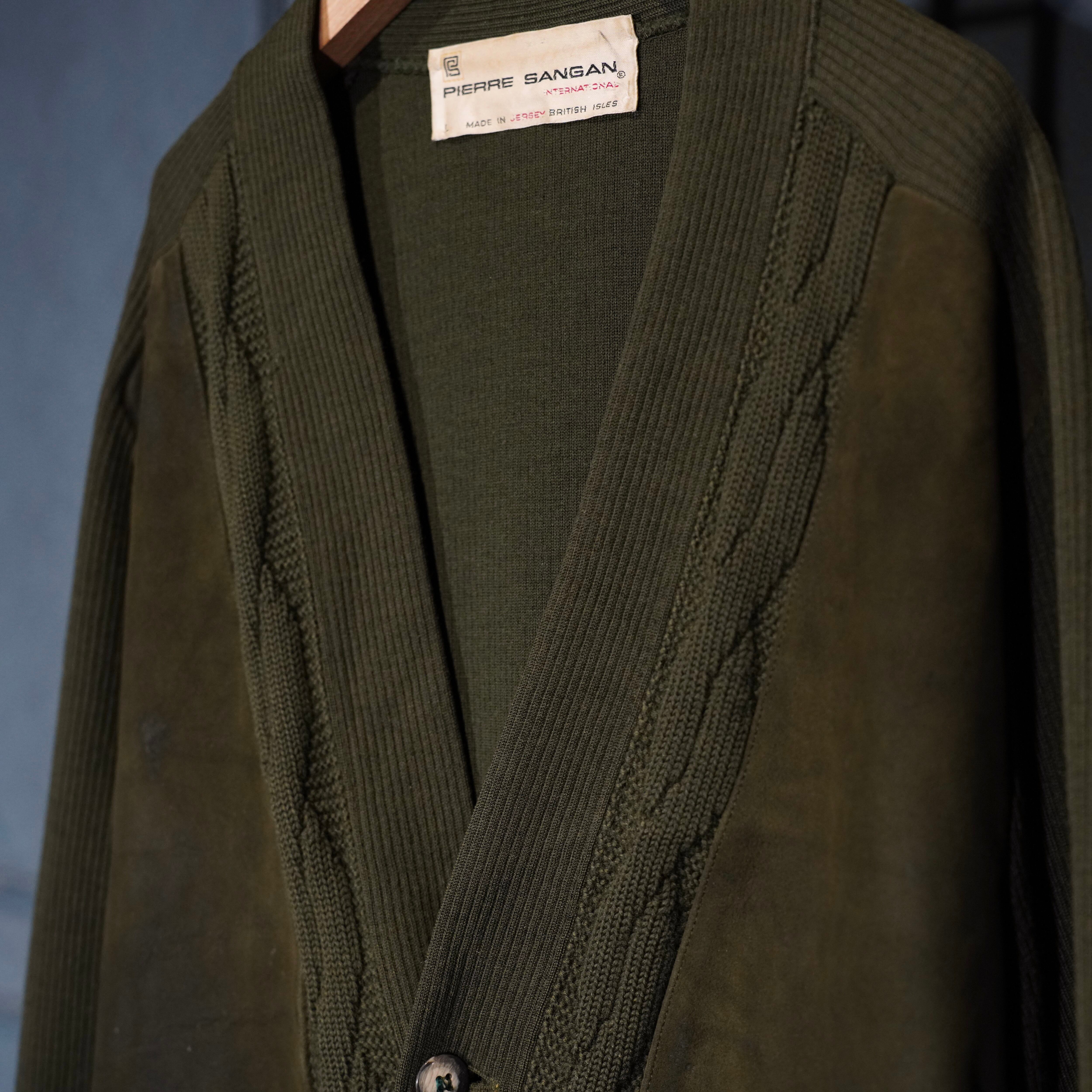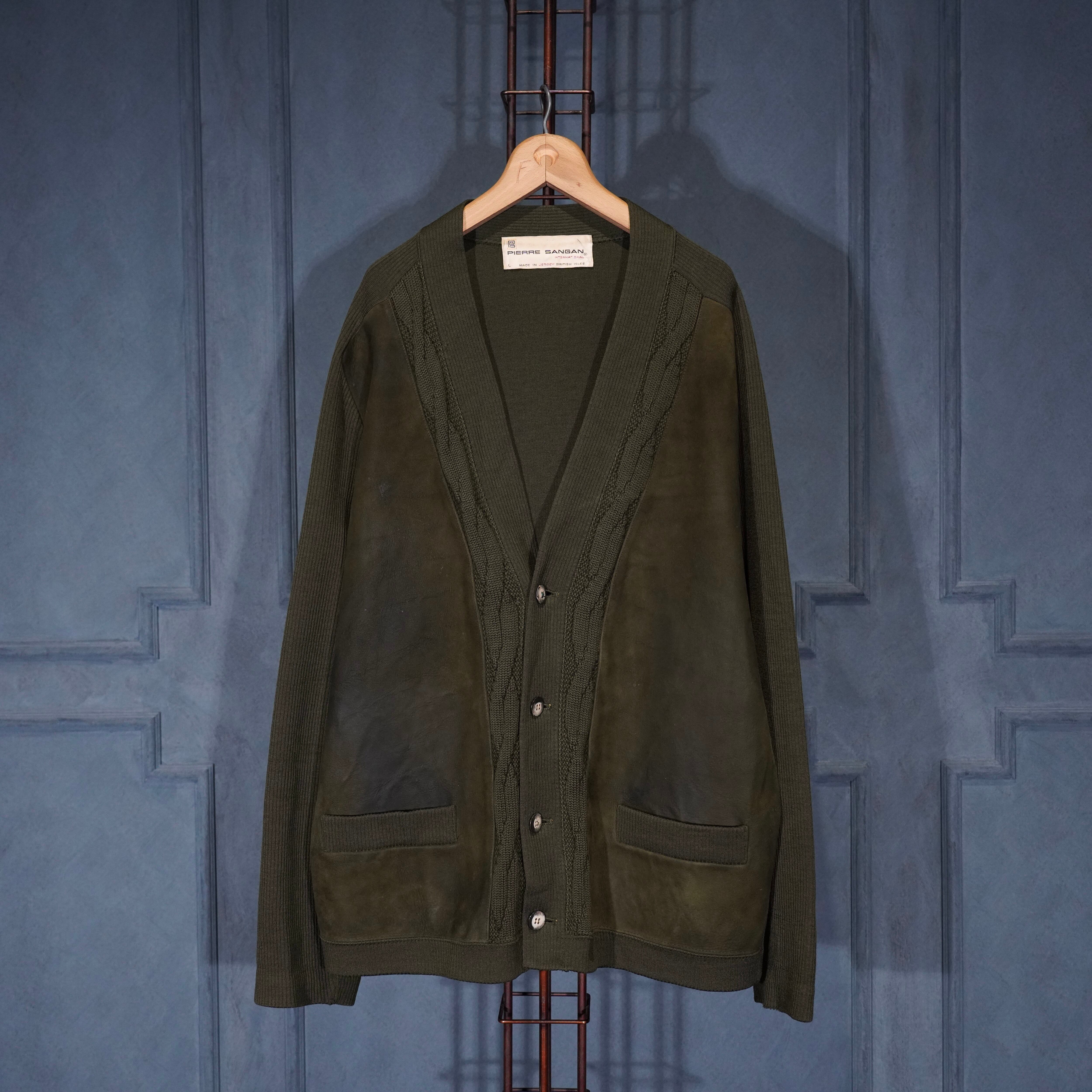 70’s USA VINTAGE PIERRE SANGAN LEATHER KNIT CARDIGAN/70年代アメリカ古着レザーニットカーディガン
