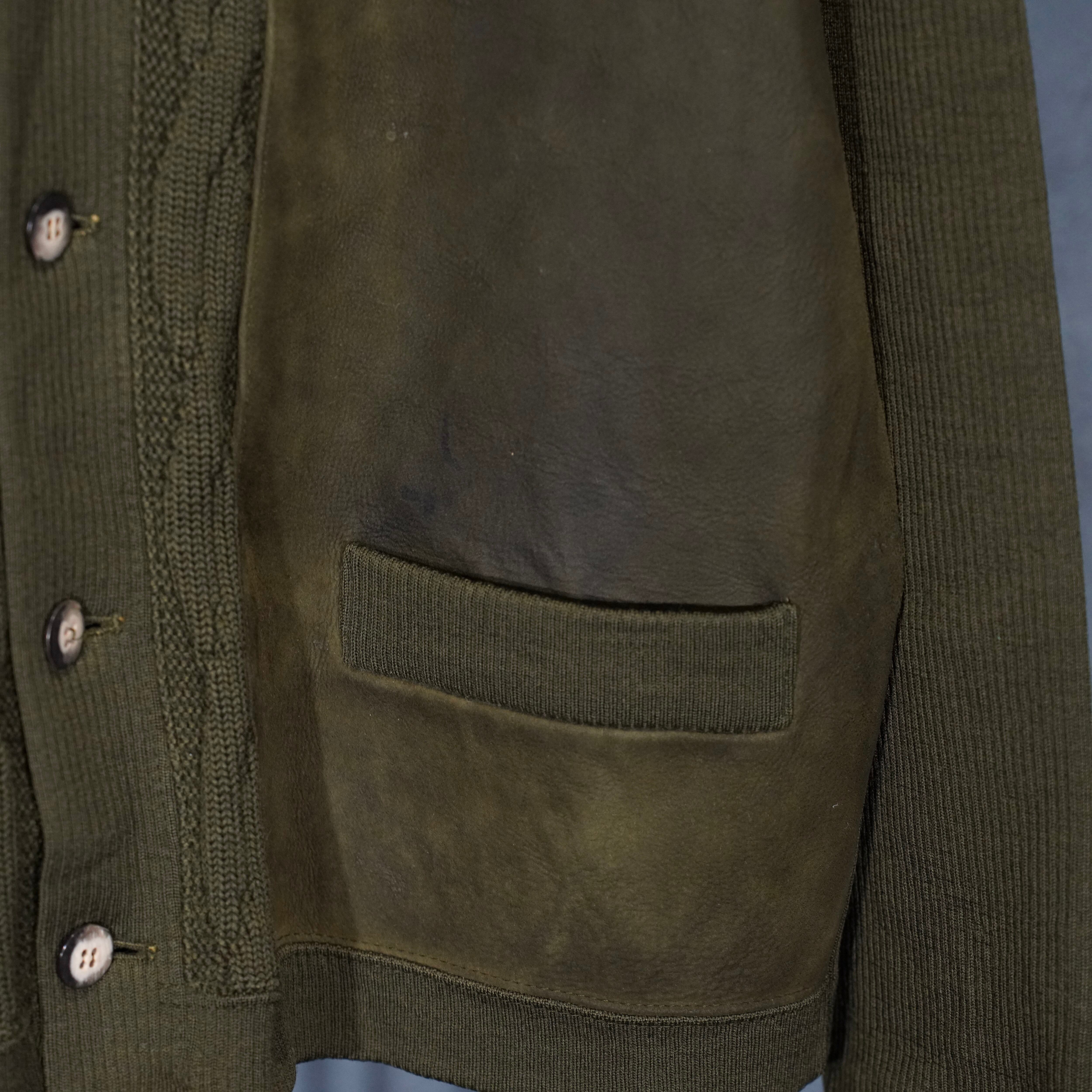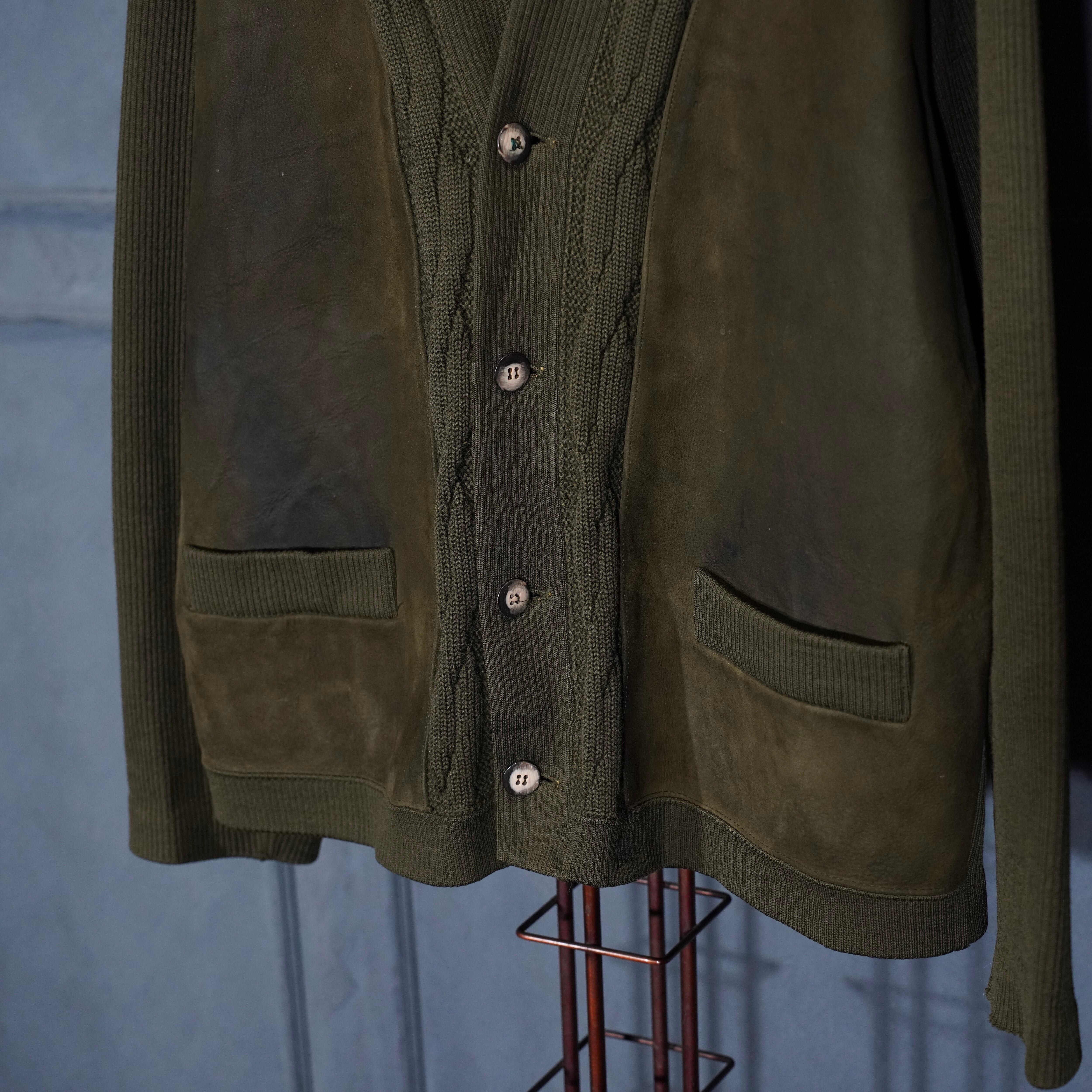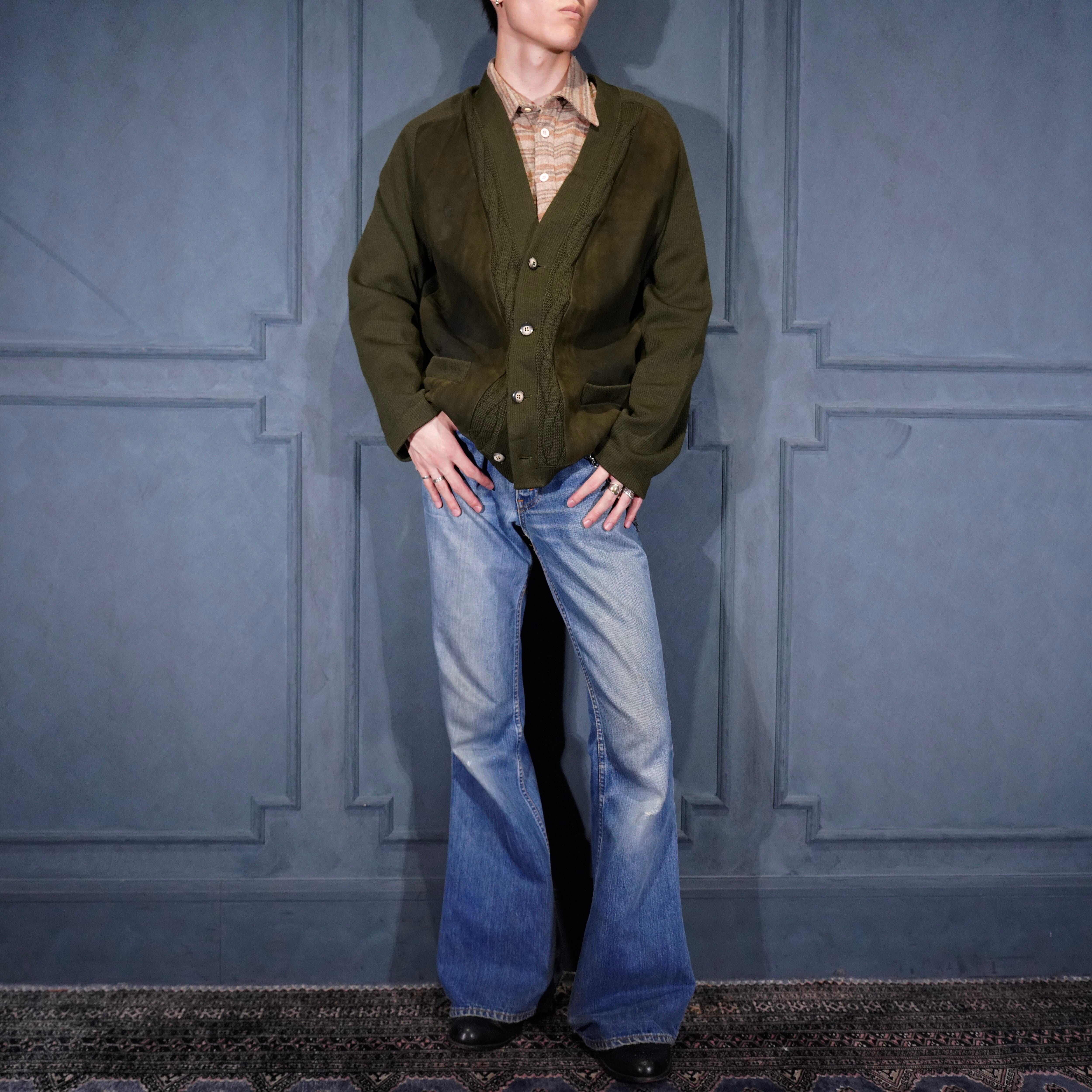 70’s USA VINTAGE PIERRE SANGAN LEATHER KNIT CARDIGAN/70年代アメリカ古着レザーニットカーディガン
