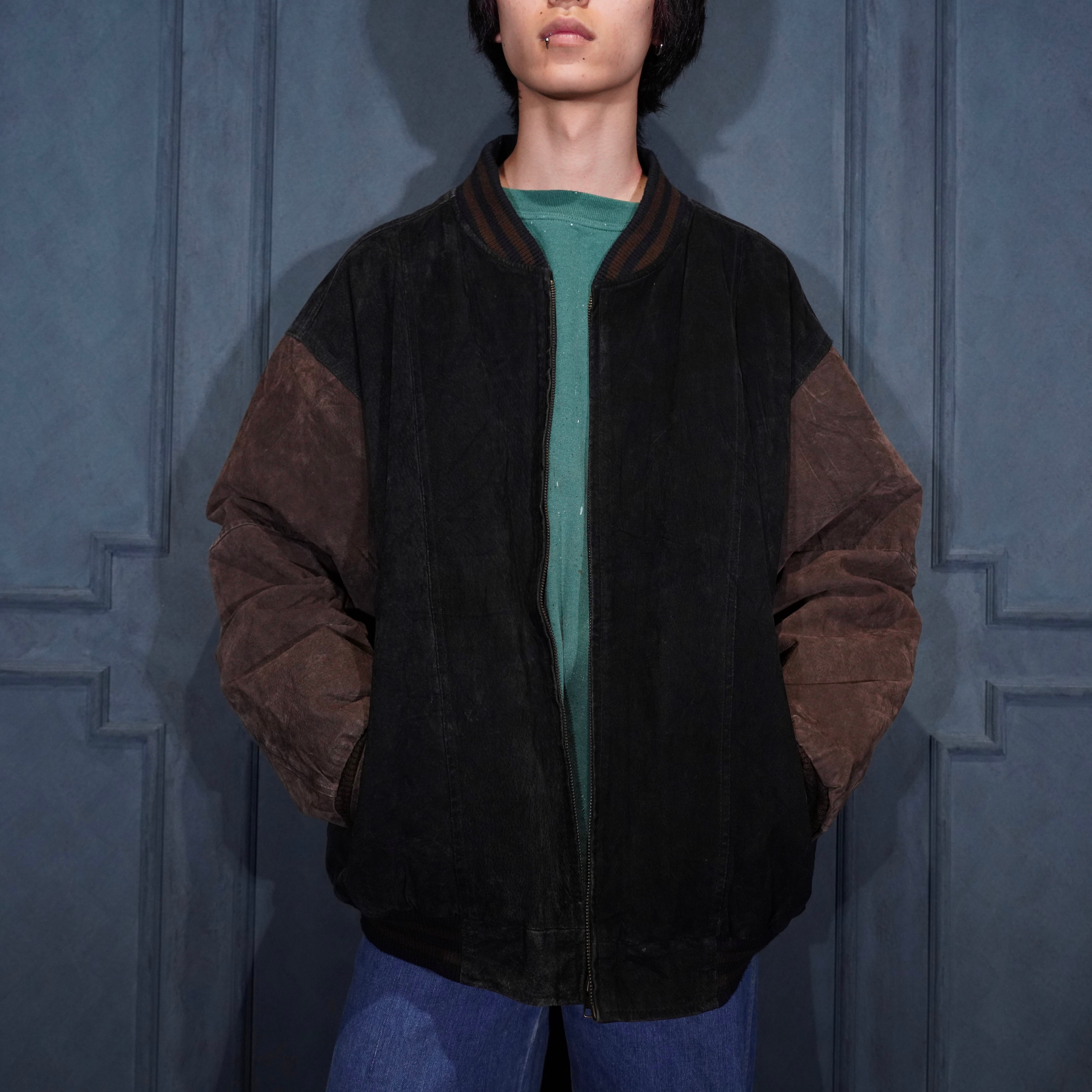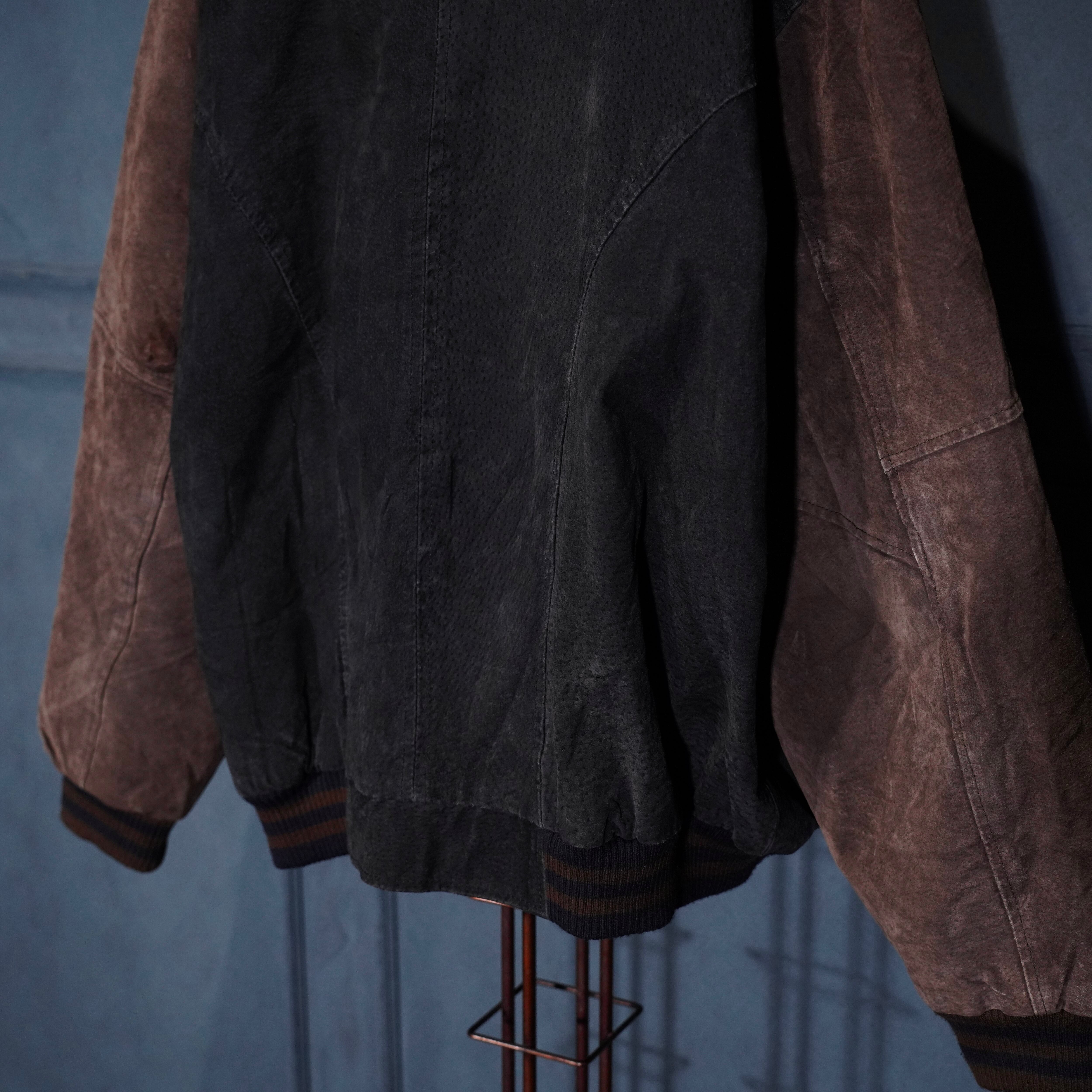 USA VINTAGE CAMBRIDGE CLASSICS 2 TONE DESIGN LEATHER ZIP UP BLOUSON/アメリカ古着2トーンデザインレザージップアップブルゾン
