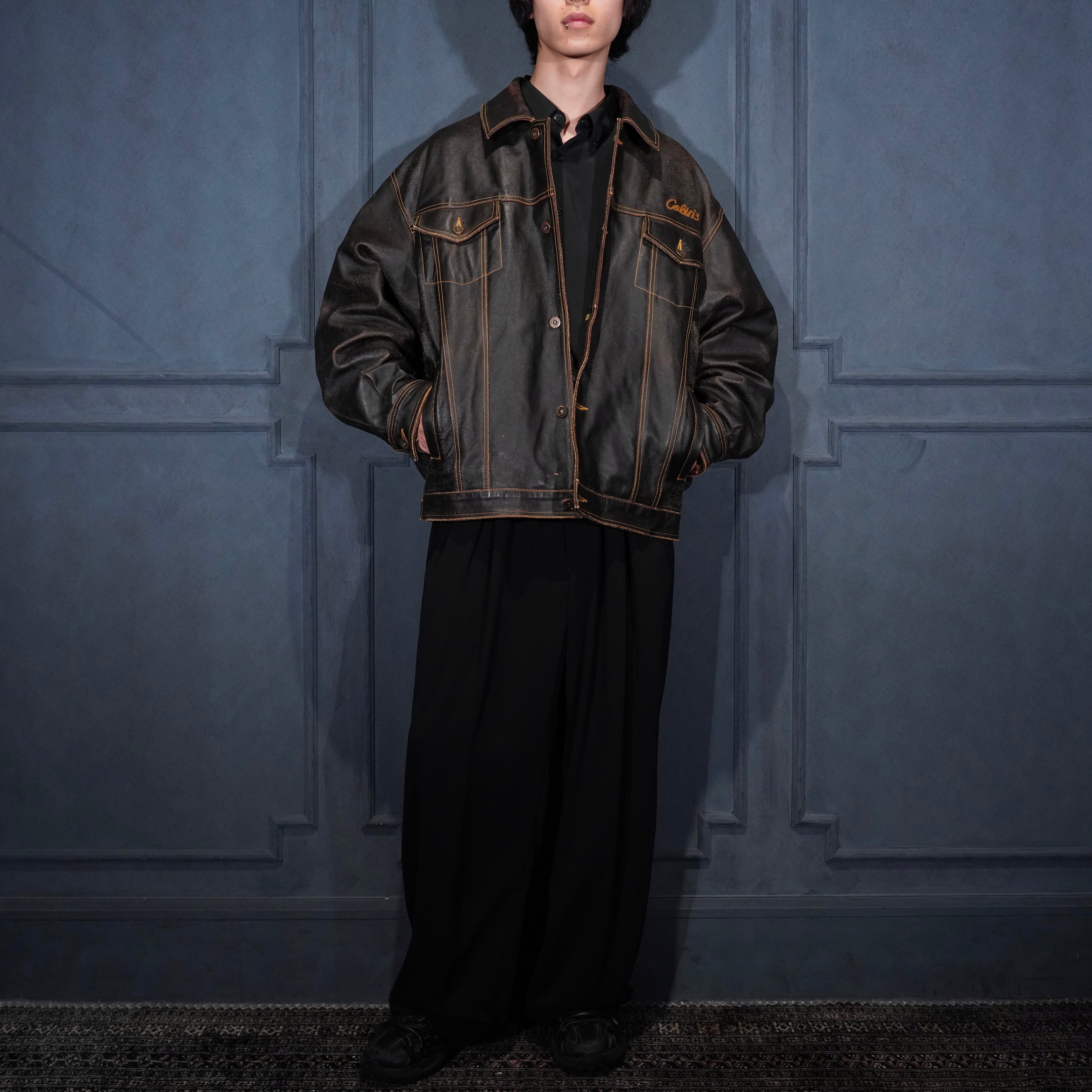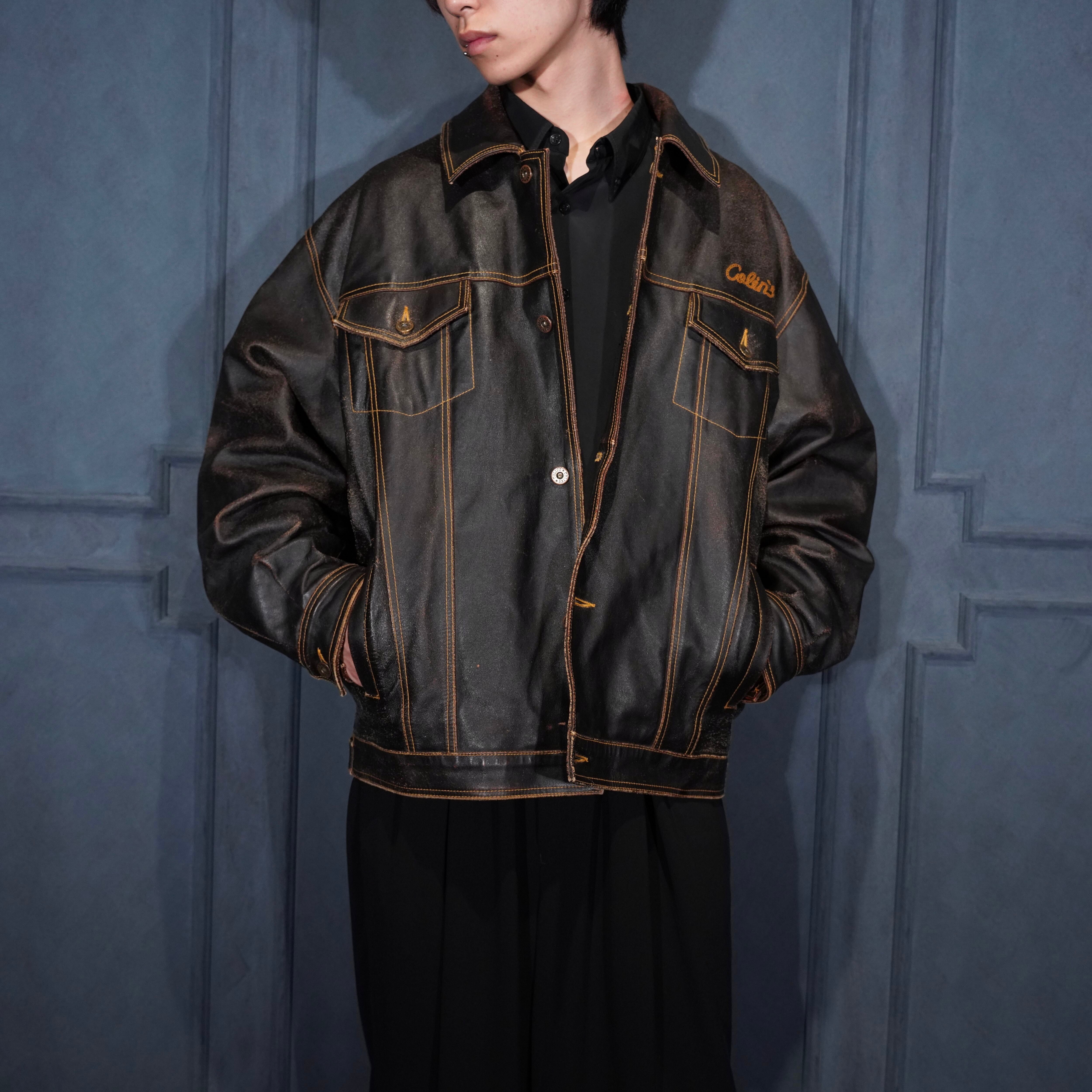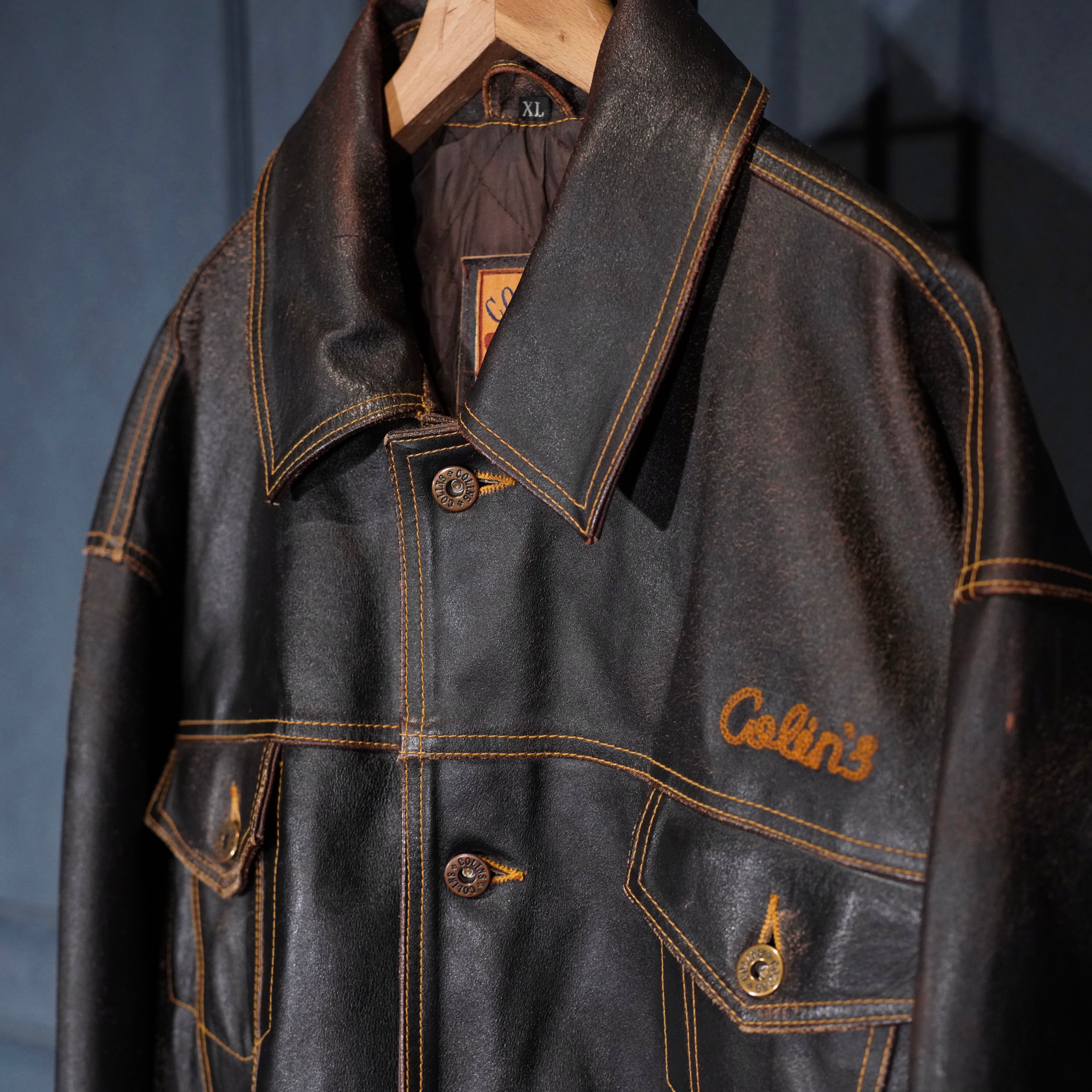 USA VINTAGE COLIN'S SOFT SPORTS WEAR EMBROIDERY DESIGN LEATHER TRACKER JACKET/アメリカ古着刺繍デザインレザートラッカージャケット