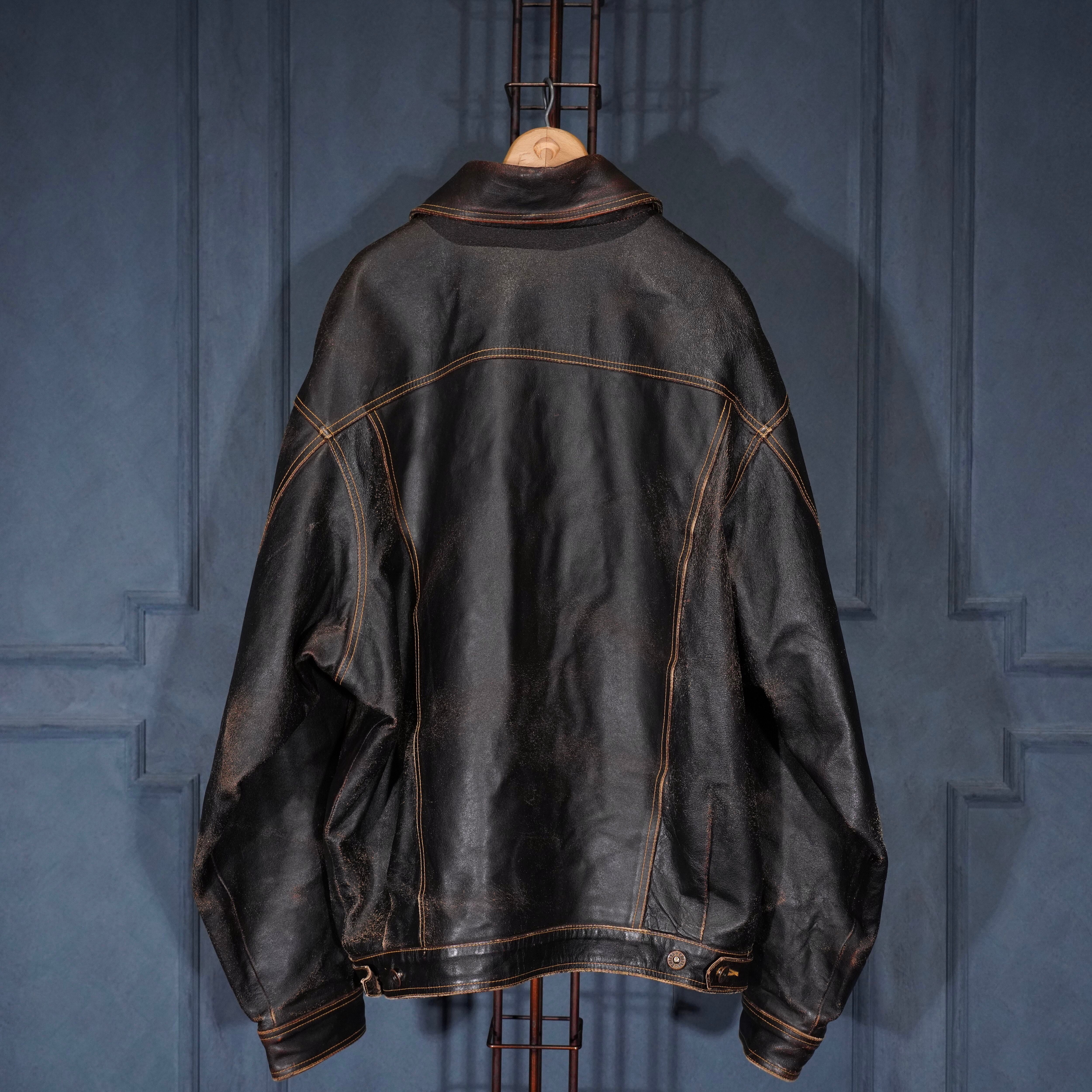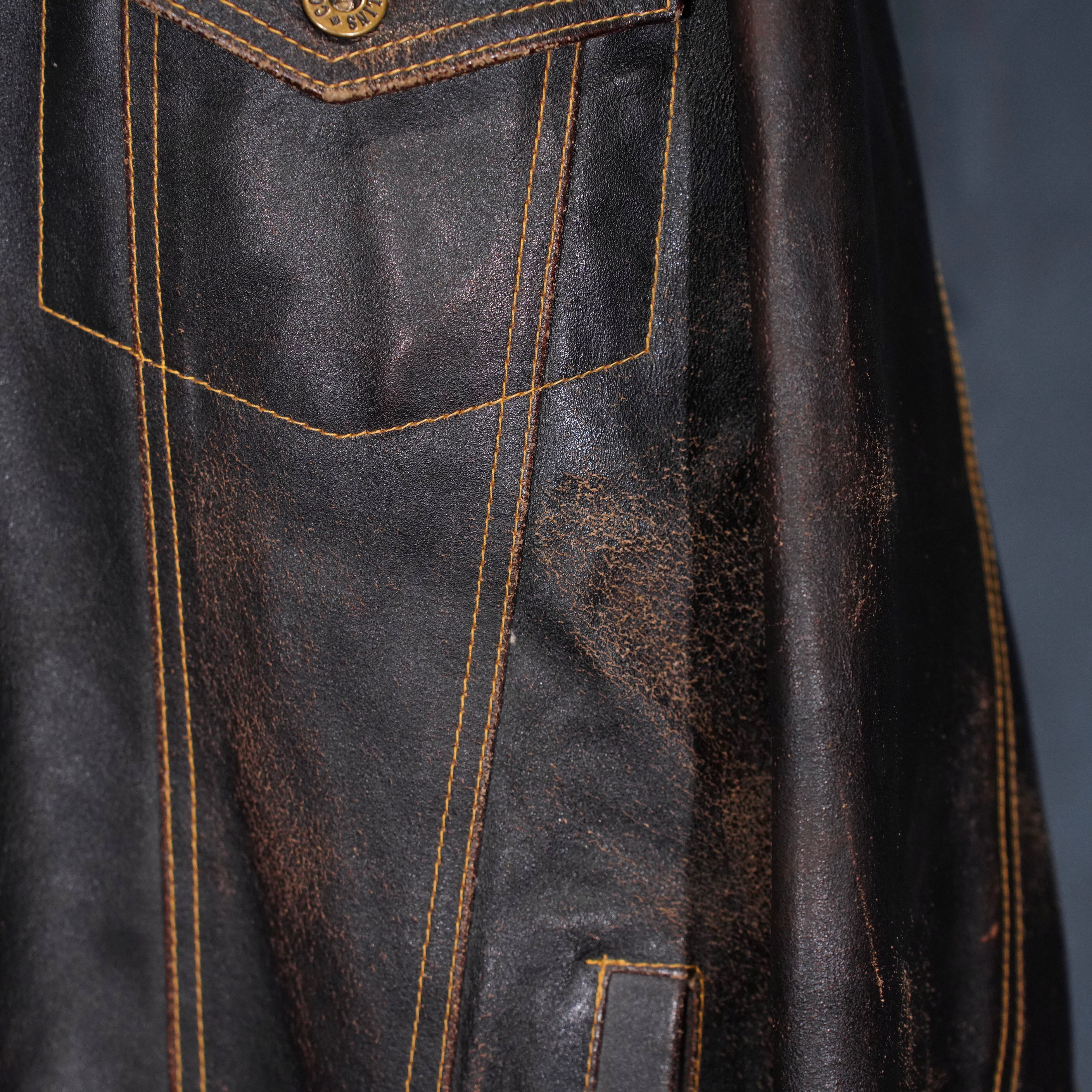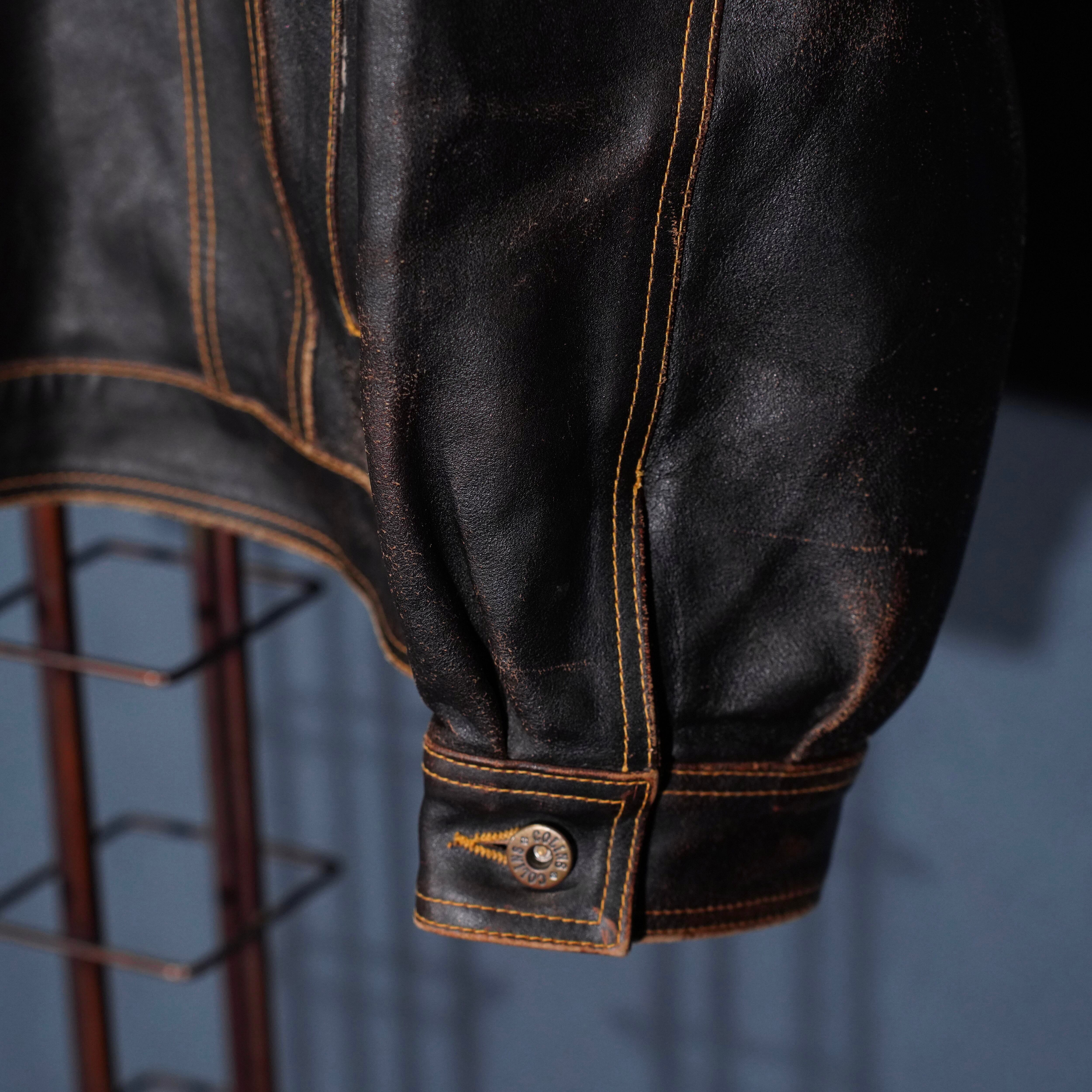 USA VINTAGE COLIN'S SOFT SPORTS WEAR EMBROIDERY DESIGN LEATHER TRACKER JACKET/アメリカ古着刺繍デザインレザートラッカージャケット