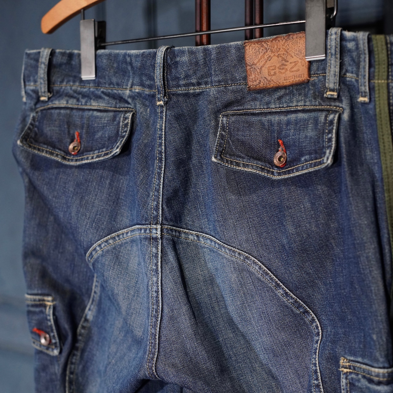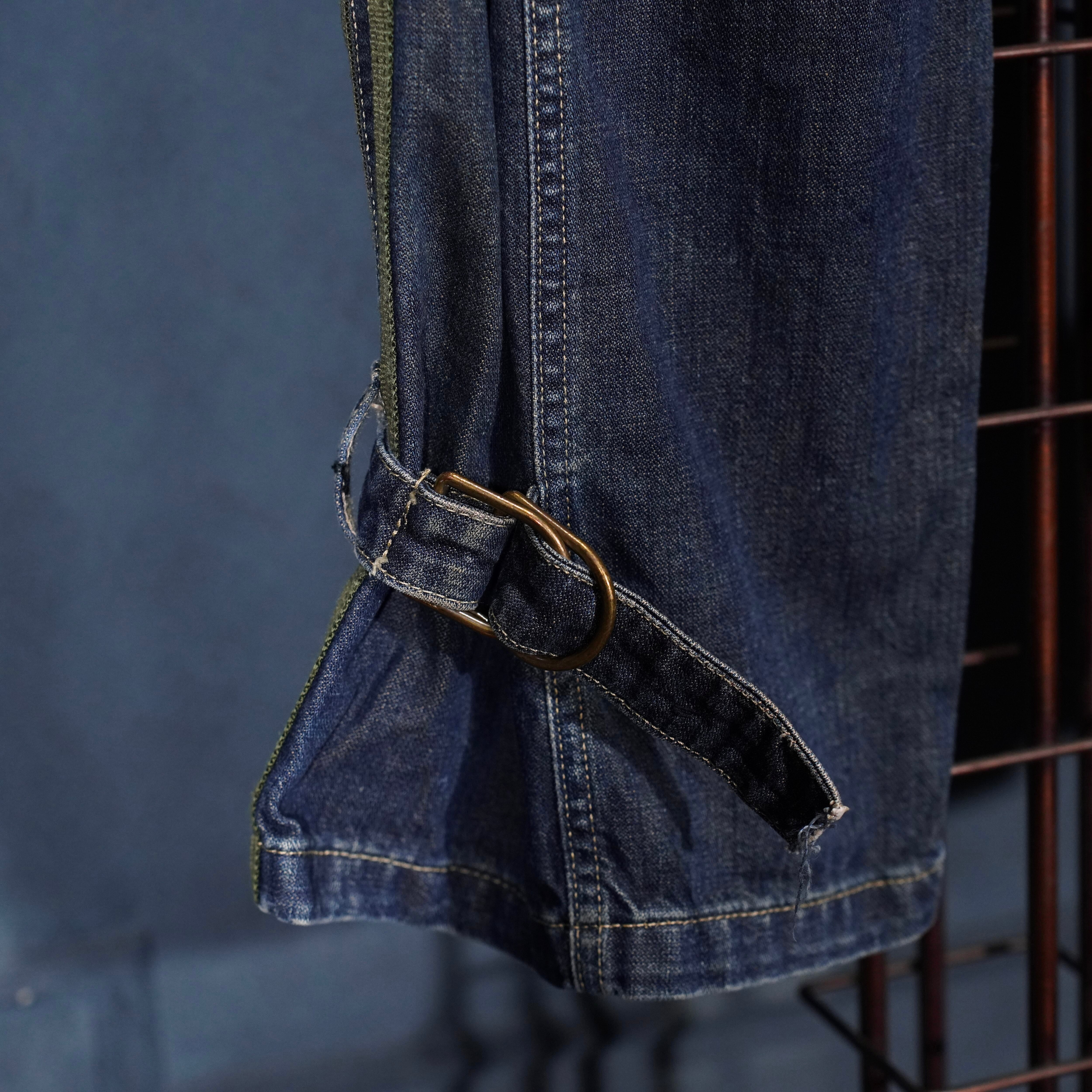 EU VINTAGE esz Denim BELT GIMMICK DESIGN DENIM PANTS MADE IN TURKEY/ヨーロッパ古着ベルトギミックデザインデニムパンツ
