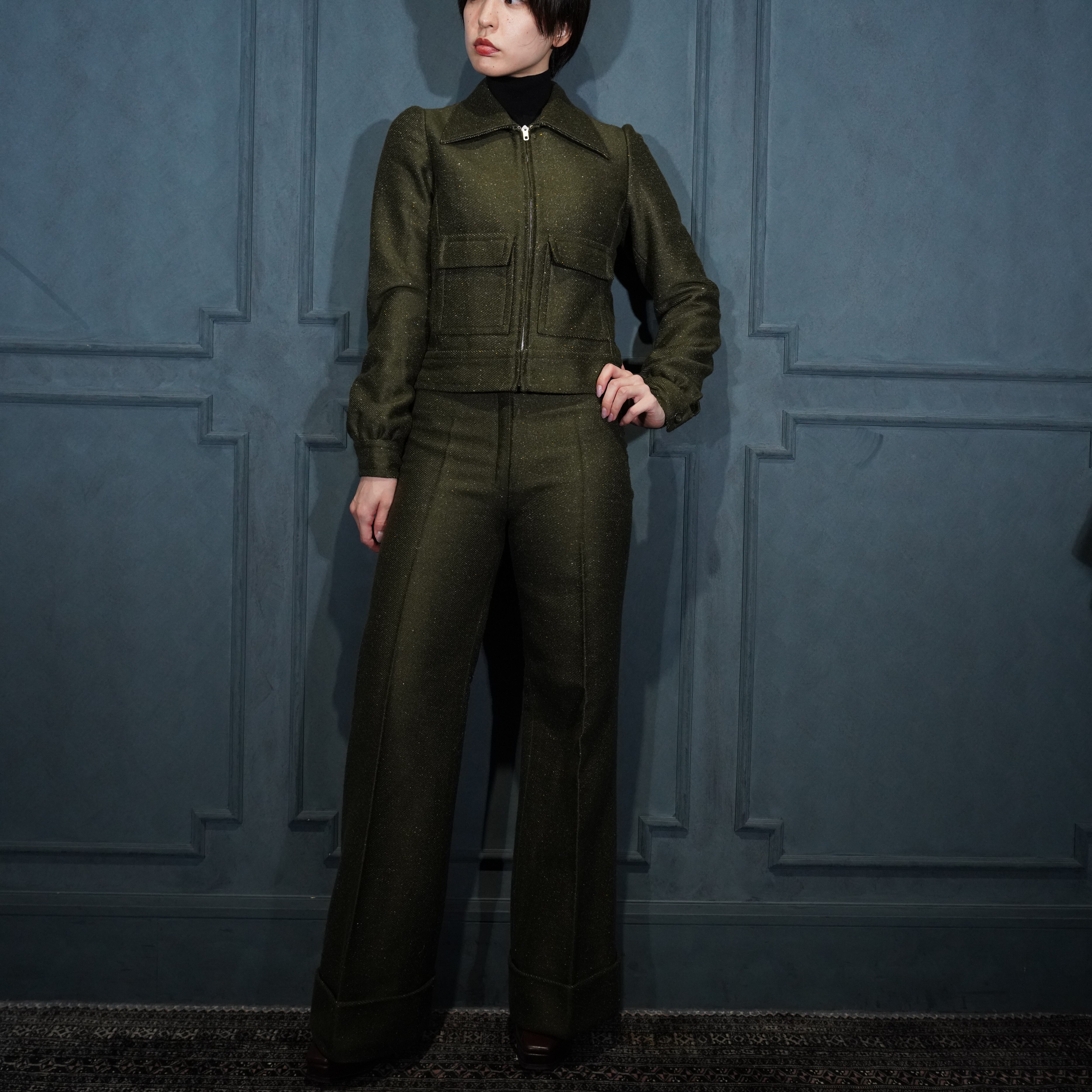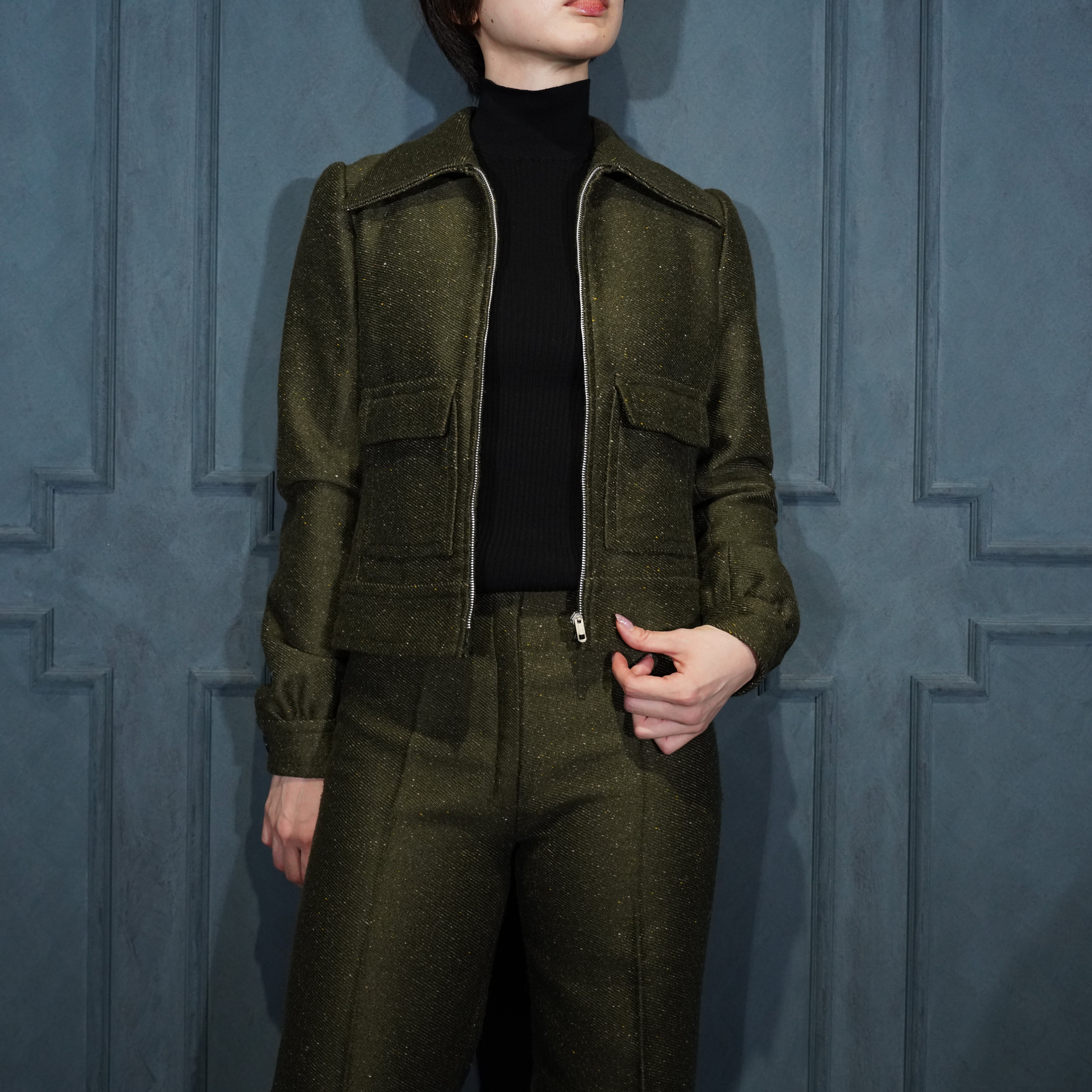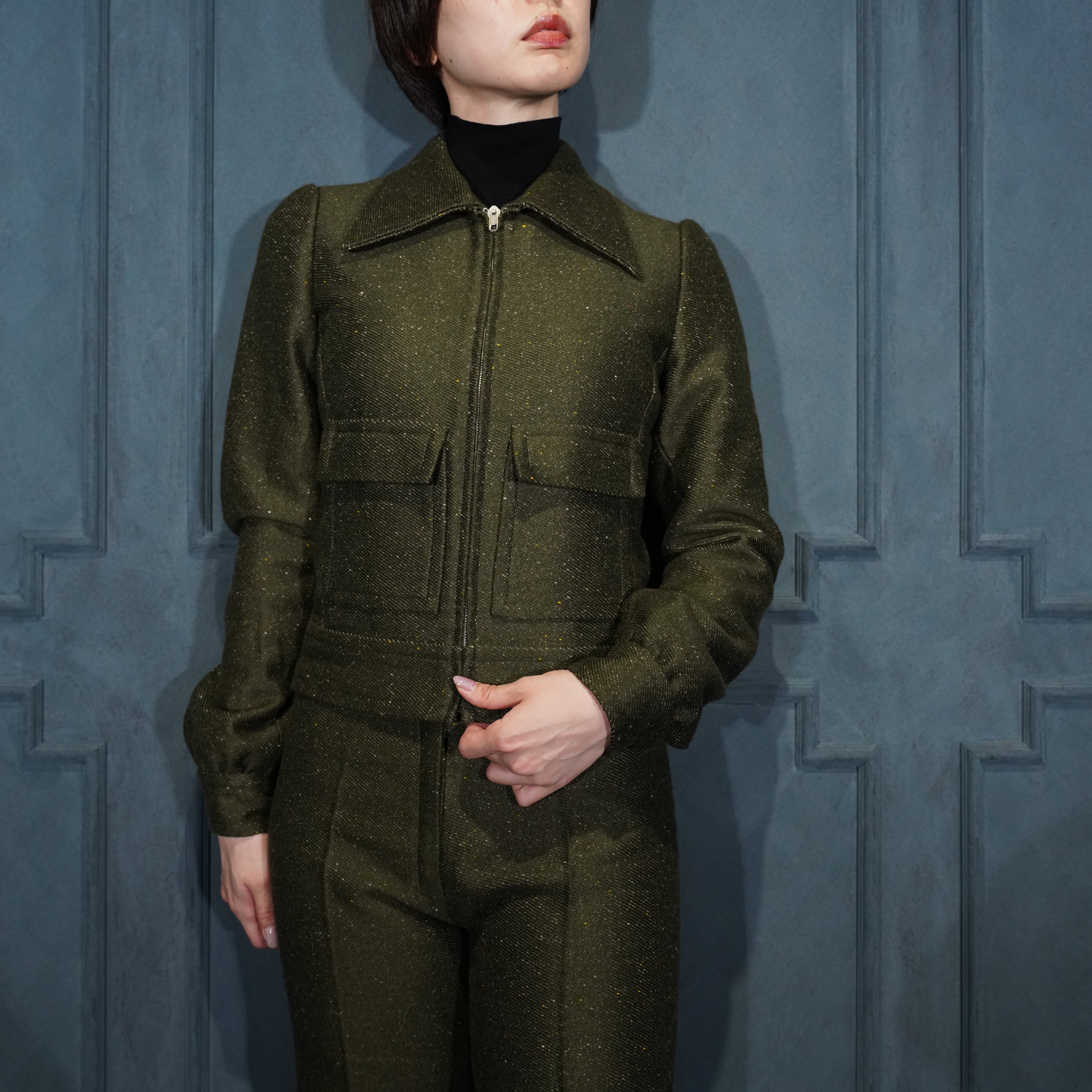 *SPECIAL ITEM* 60's USA VINTAGE ZIP UP BLOUSON FLARE PANTS TWEED SET UP SUIT/60年代アメリカ古着ジップアップブルゾンフレアパンツツイードセットアップスーツ