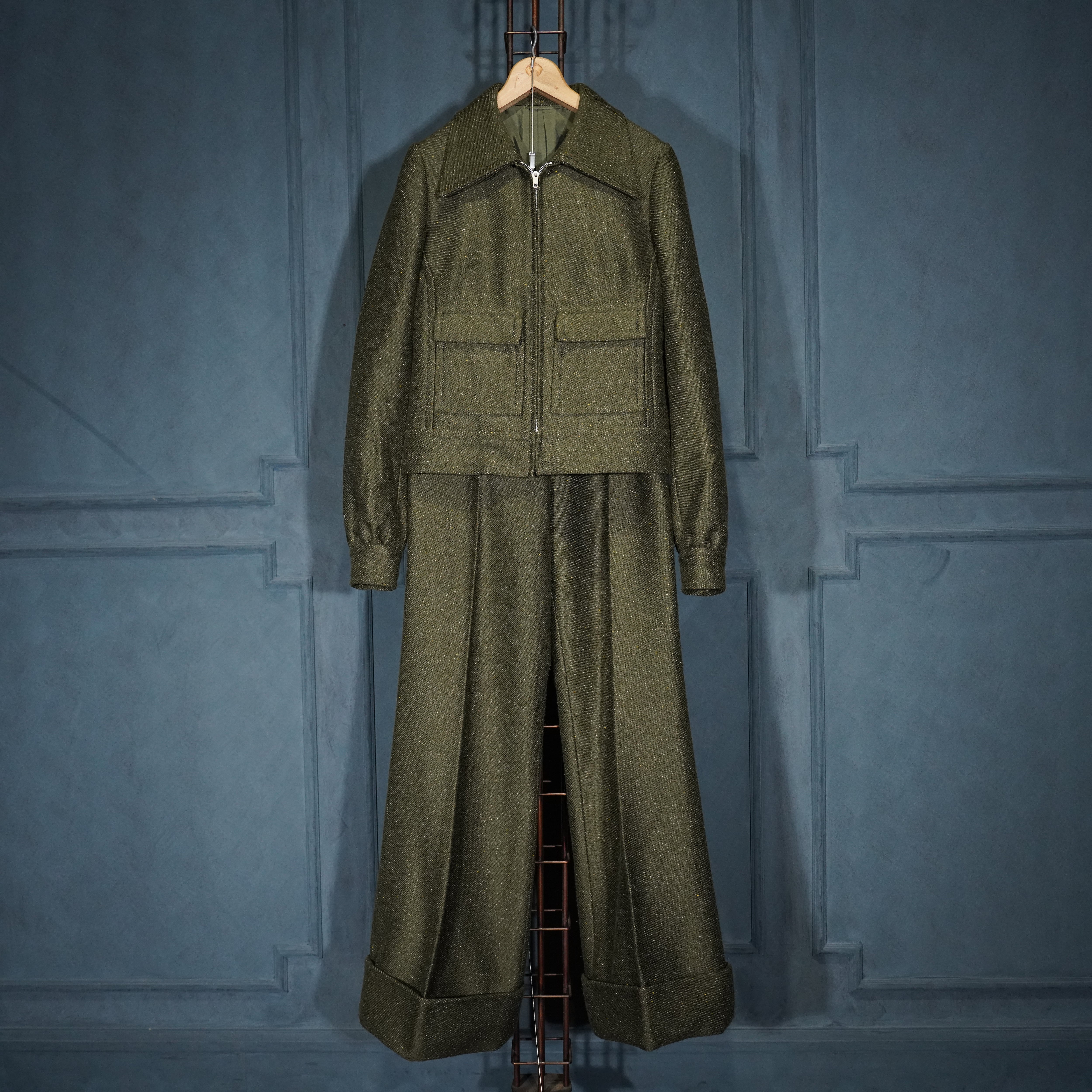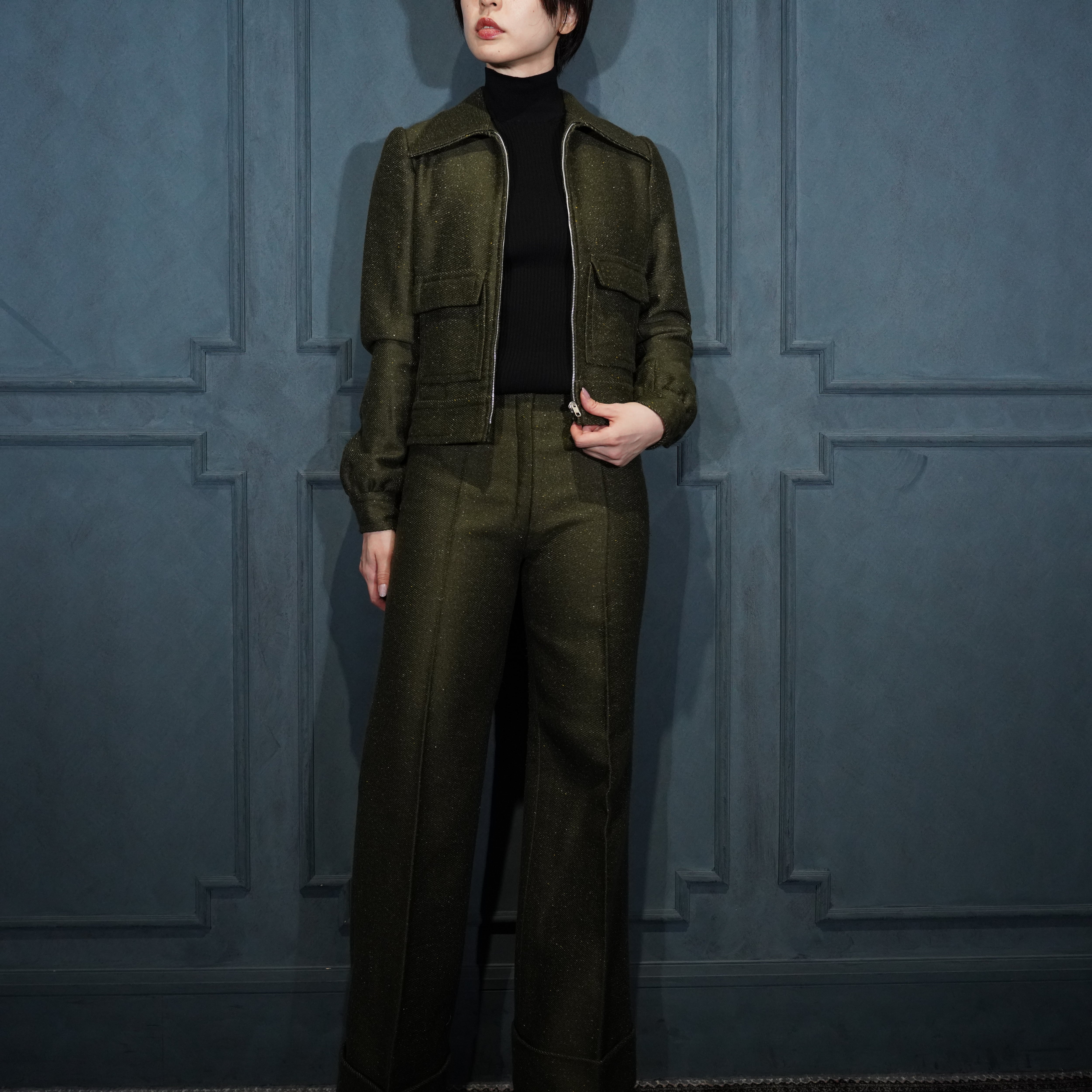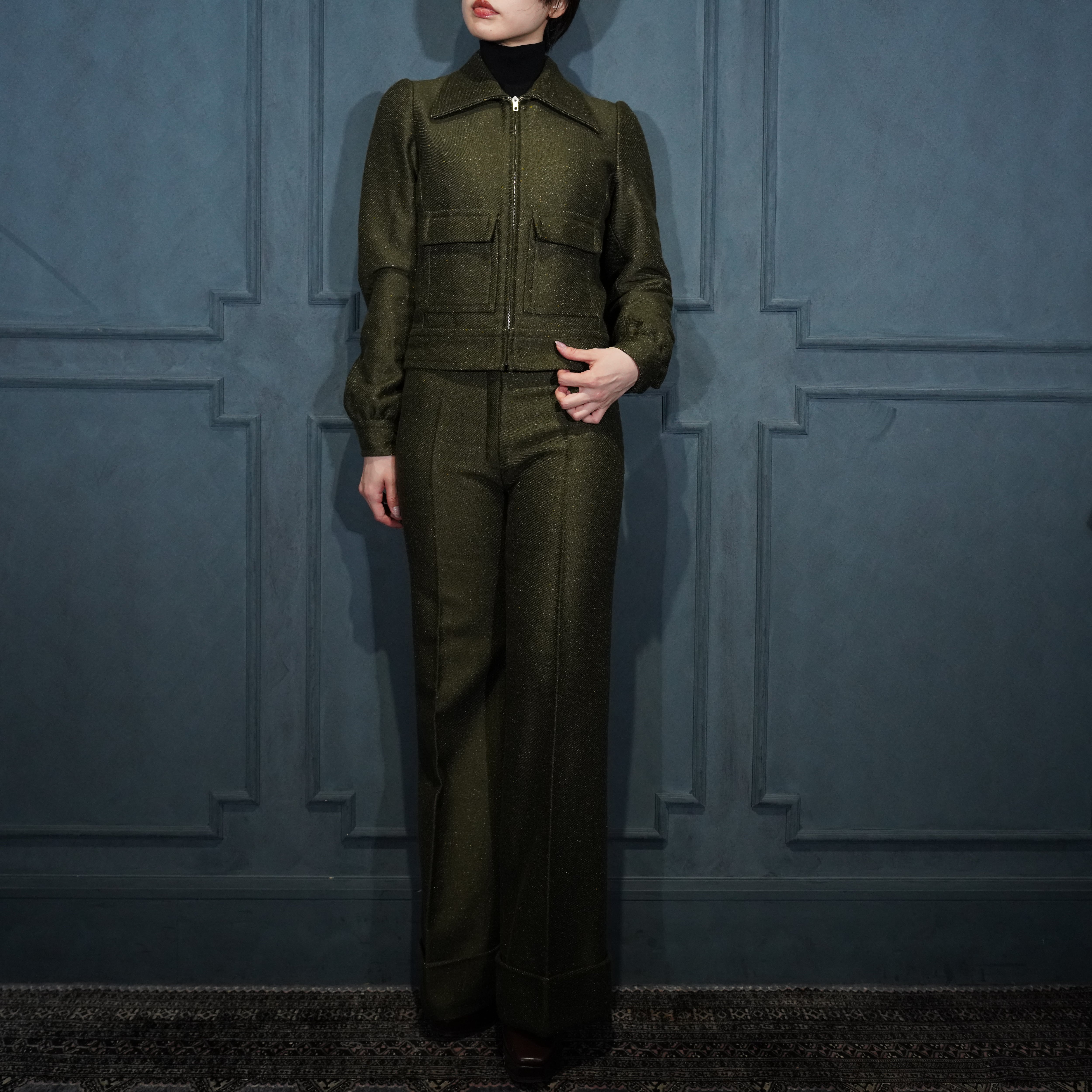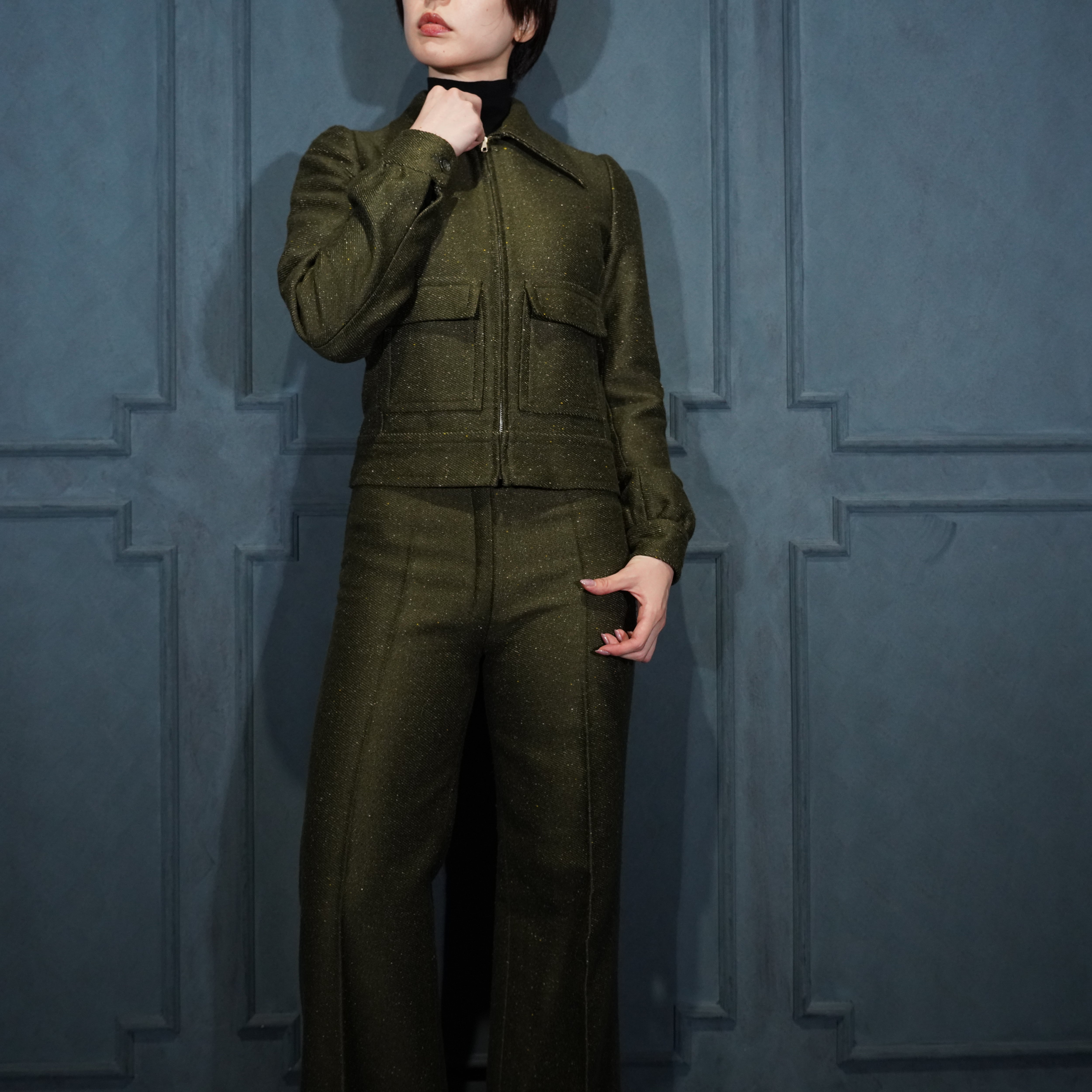 *SPECIAL ITEM* 60's USA VINTAGE ZIP UP BLOUSON FLARE PANTS TWEED SET UP SUIT/60年代アメリカ古着ジップアップブルゾンフレアパンツツイードセットアップスーツ