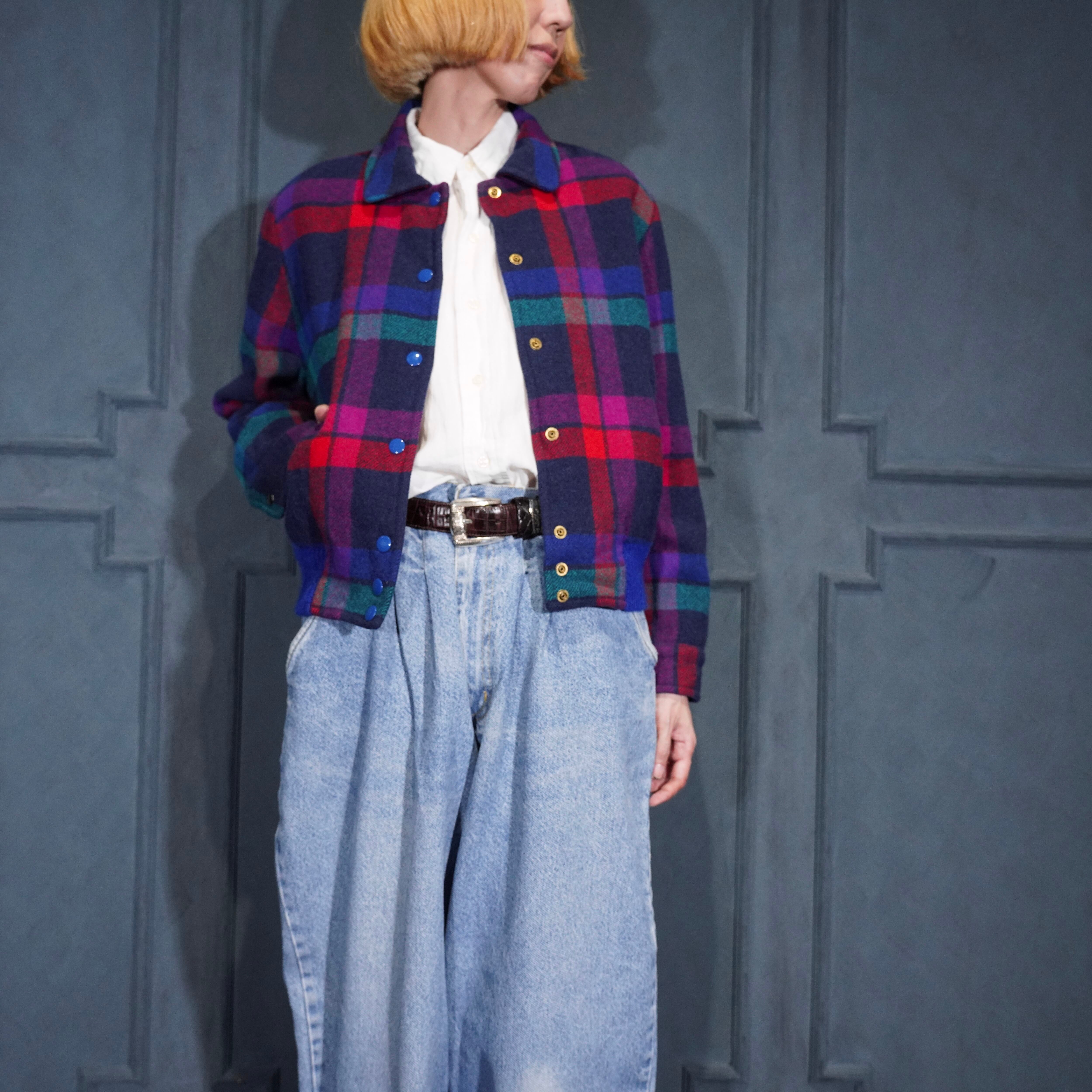 70’s〜80’s USA VINTAGE PENDLETON CHECK PATTERNED DESIGN WOOL STADIUM JUMPER/70年代〜80年代アメリカ古着ペンドルトンチェック柄デザインウールスタジャン