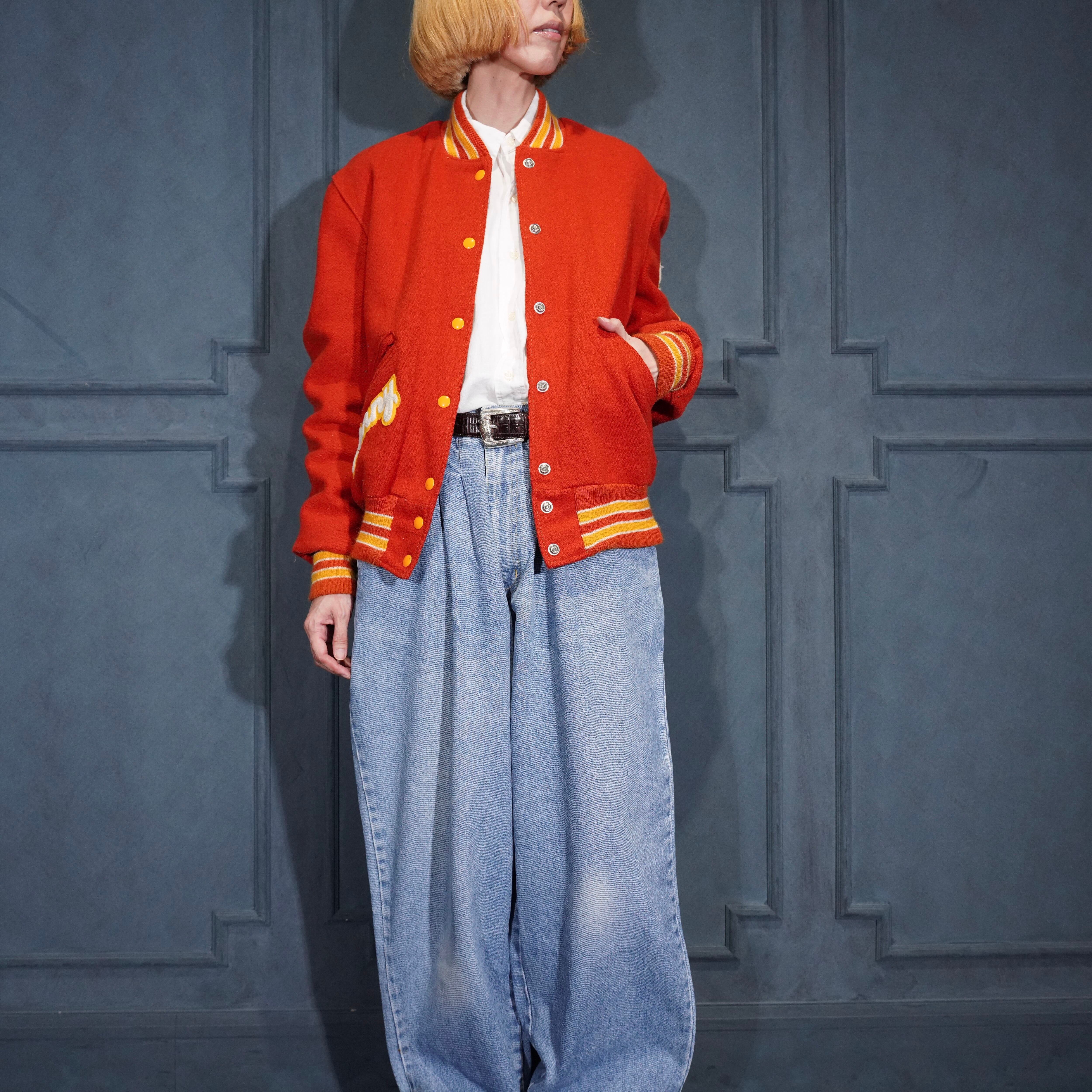 70’s〜80’s USA VINTAGE DeLONG EMBREM DESIGN WOOL STADIUM JUMPER/70年代〜80年代アメリカ古着ワッペンデザインウールスタジャン