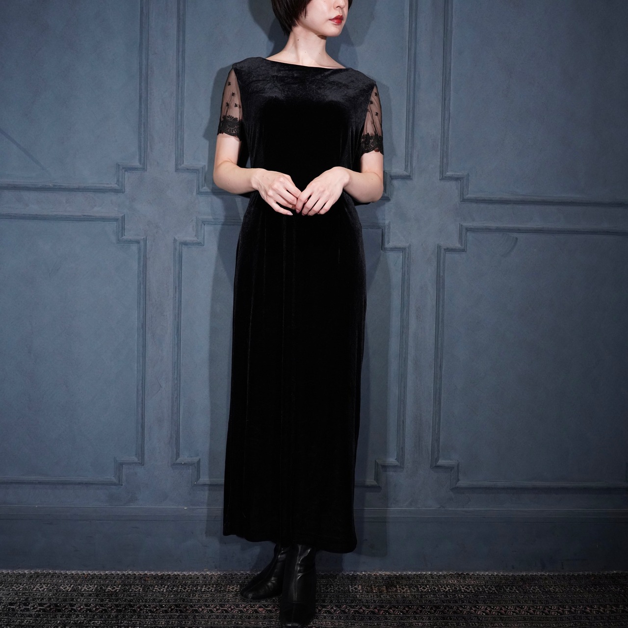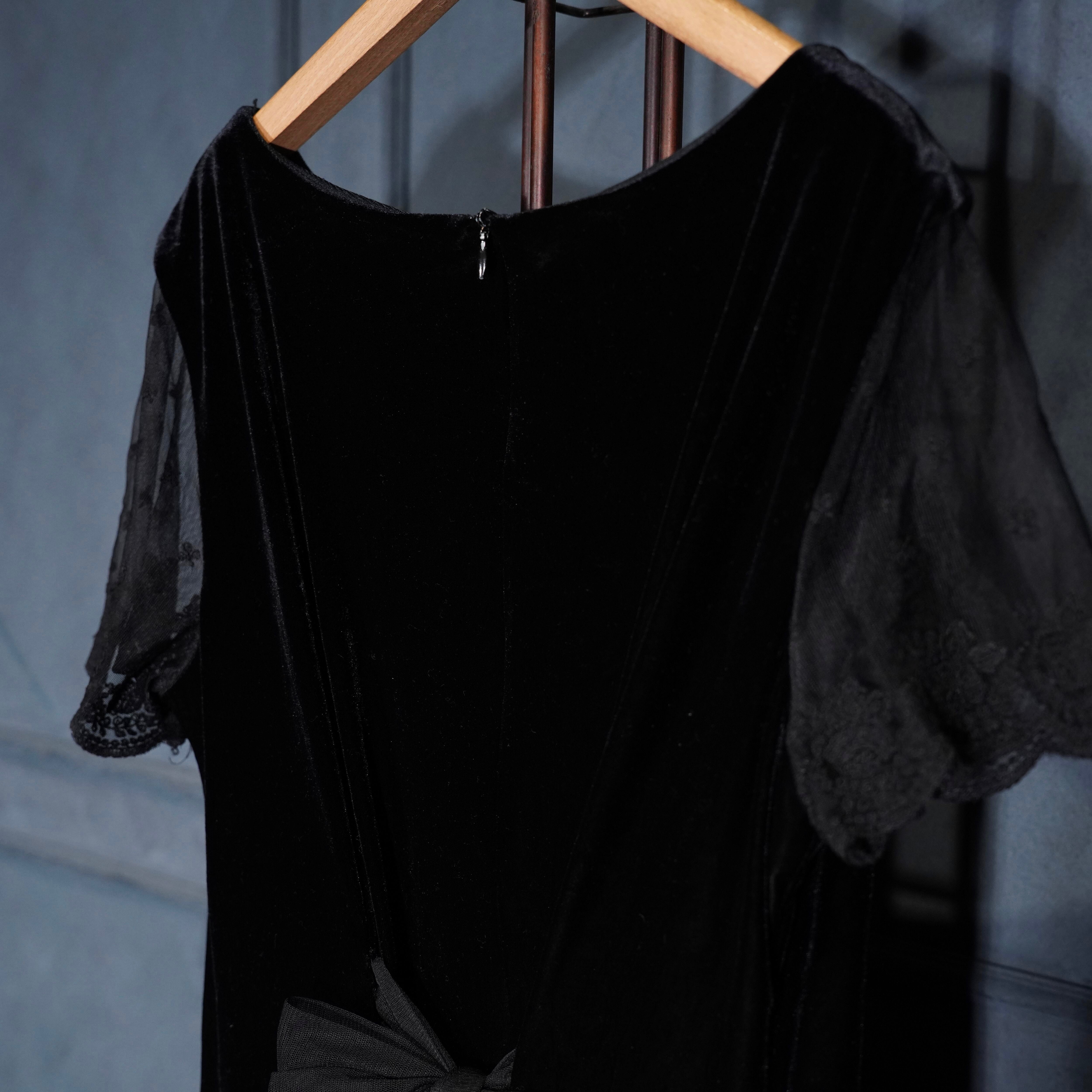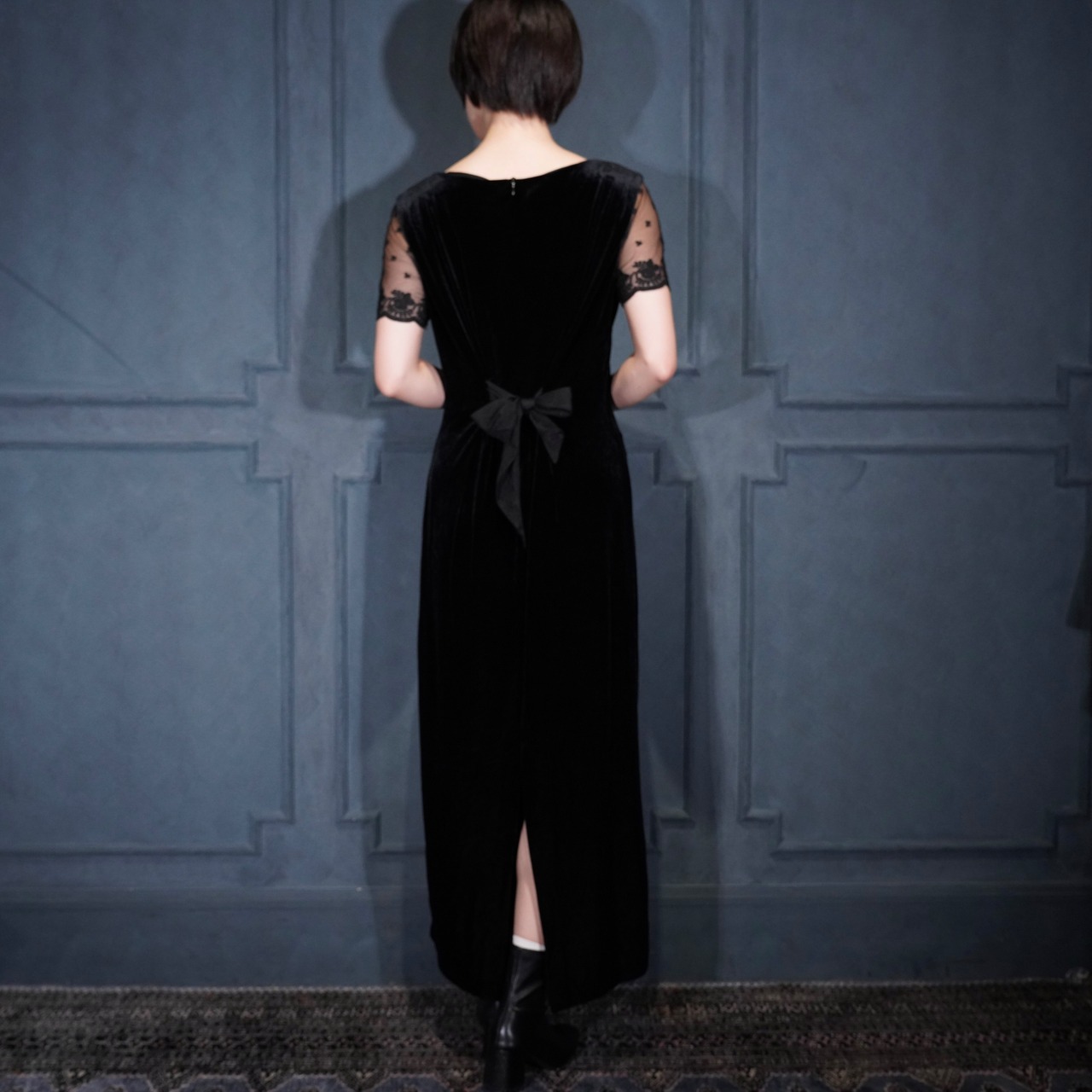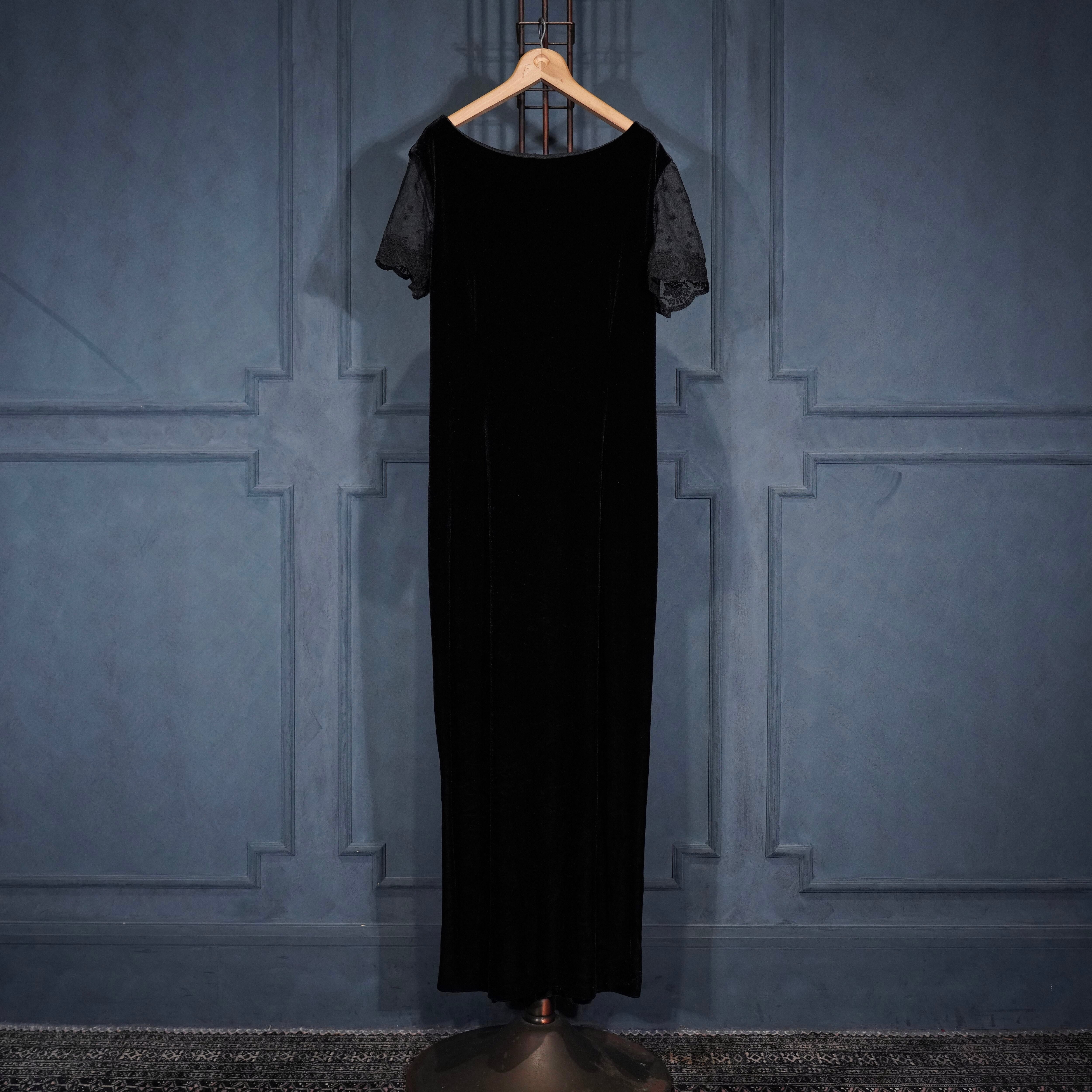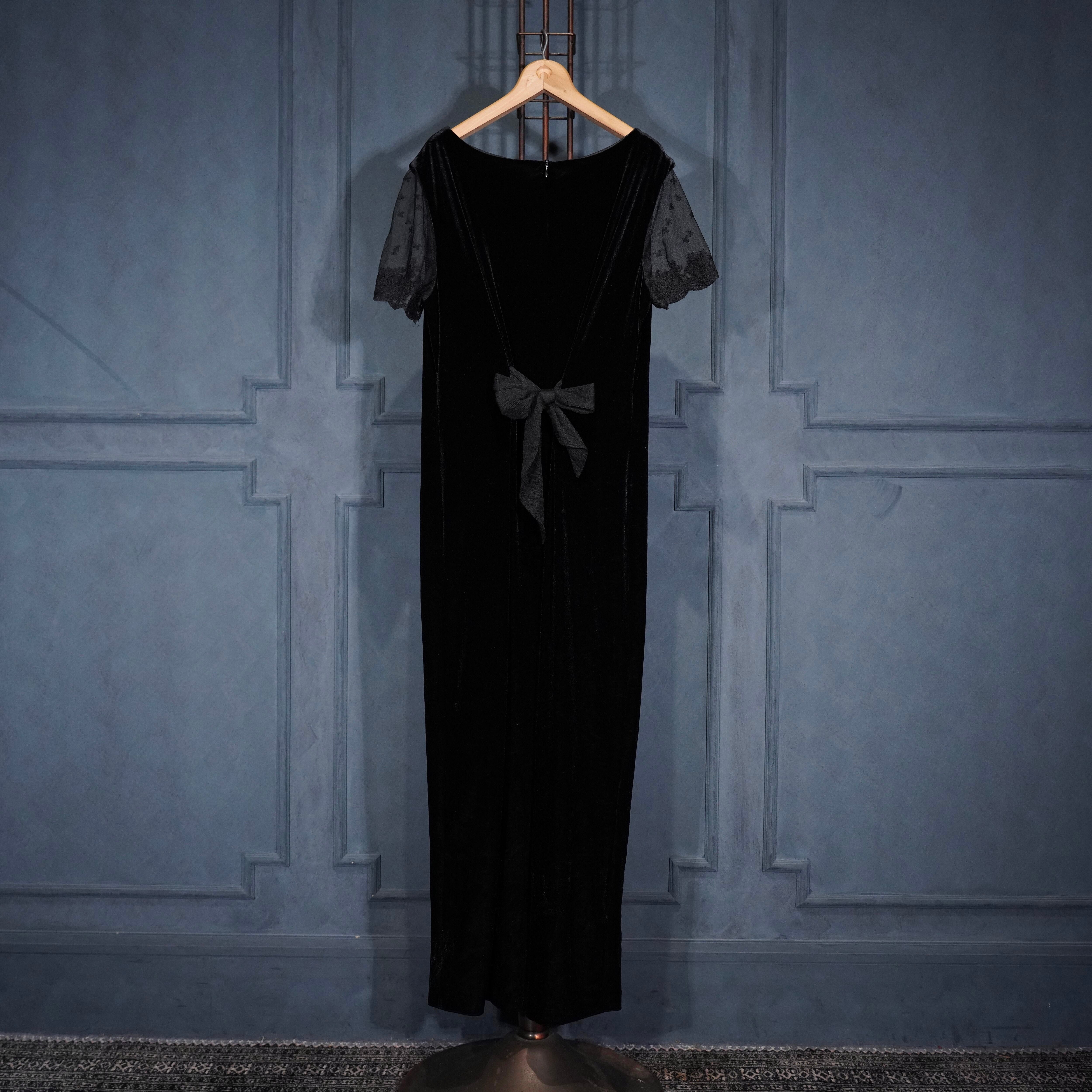 USA VINTAGE ROBBIE BEE BACK RIBBON LACE DESIGN VELOUR ONE PIECE/アメリカ古着バックリボンレースデザインベロアワンピース