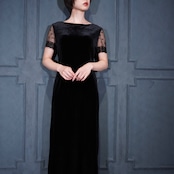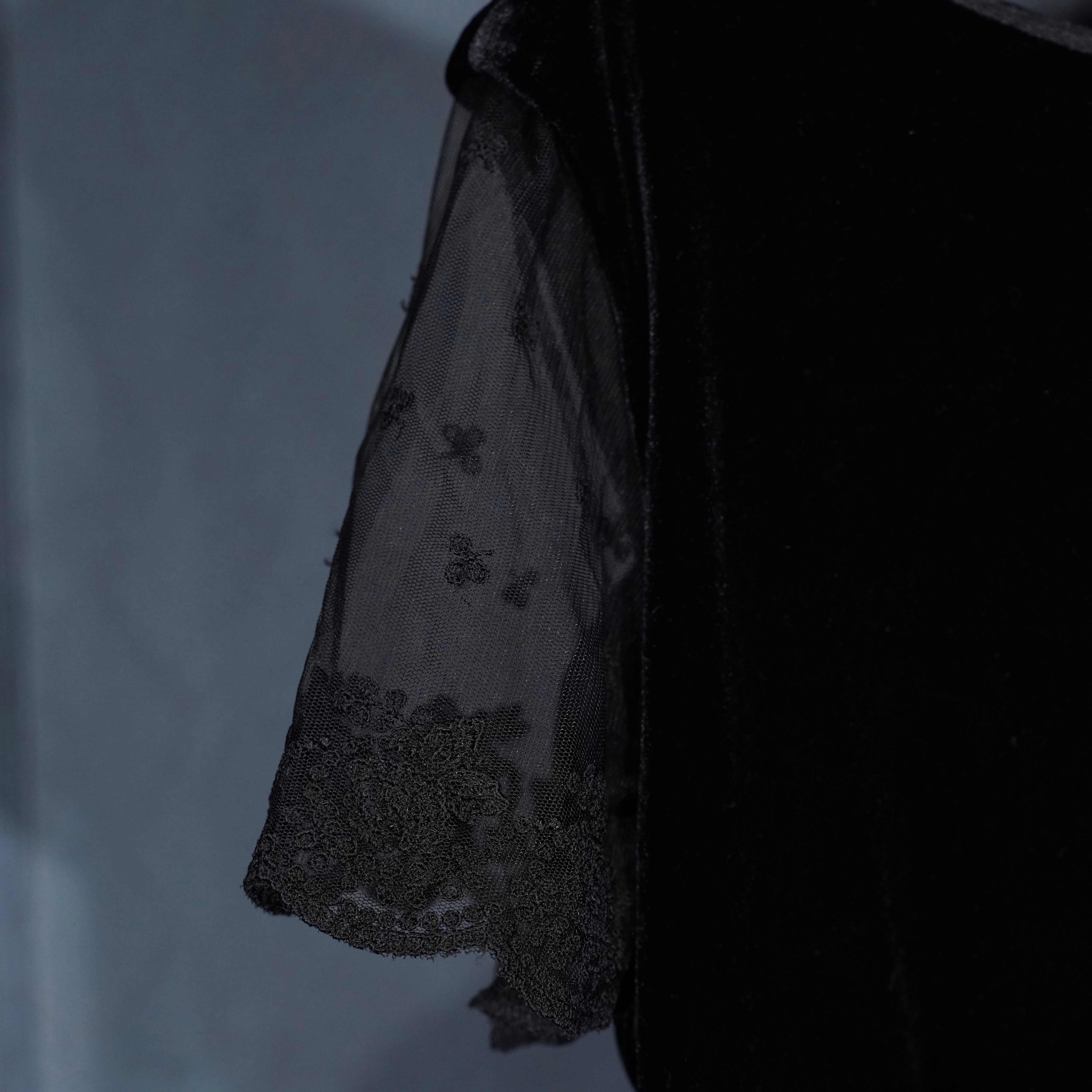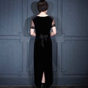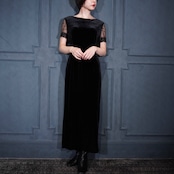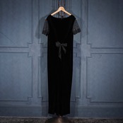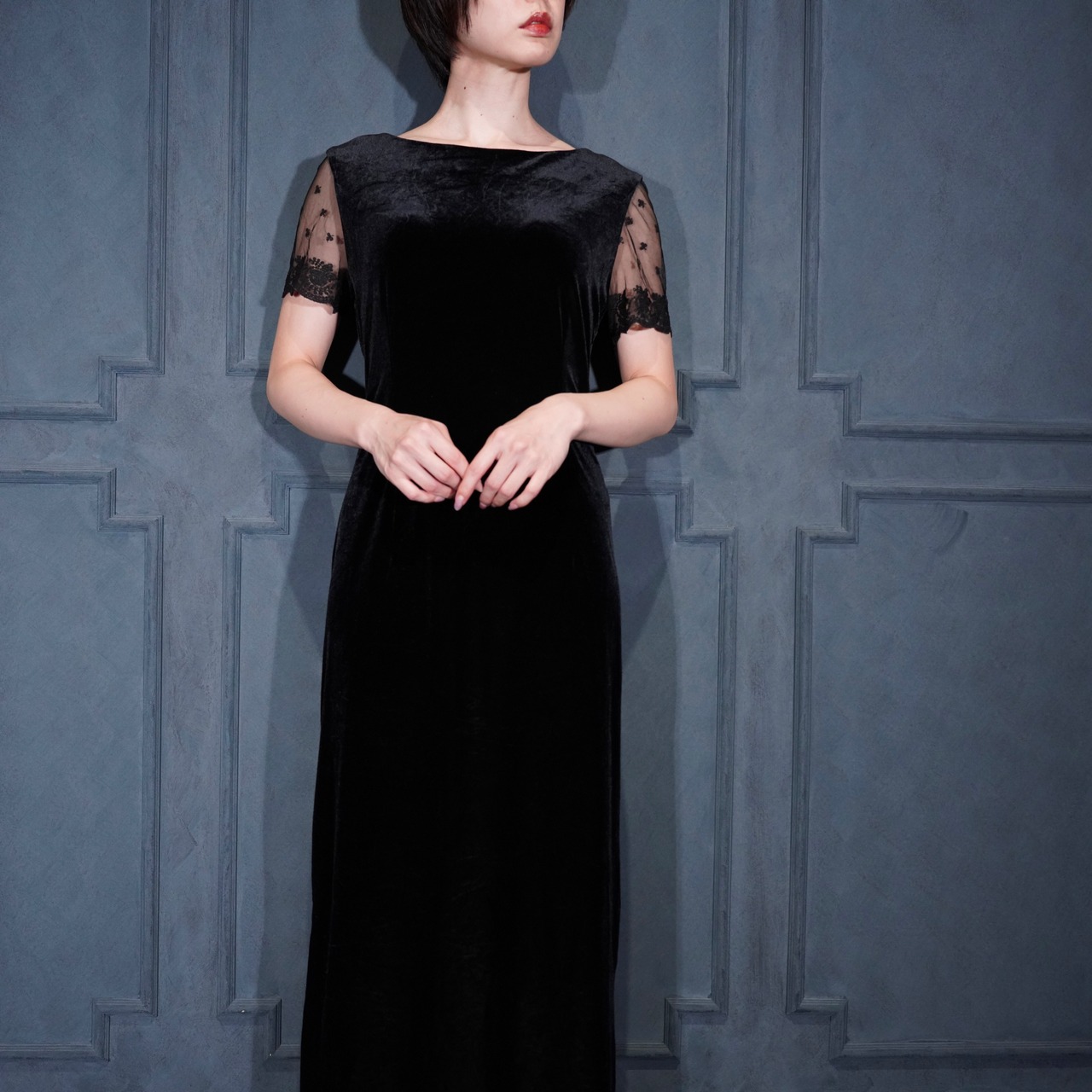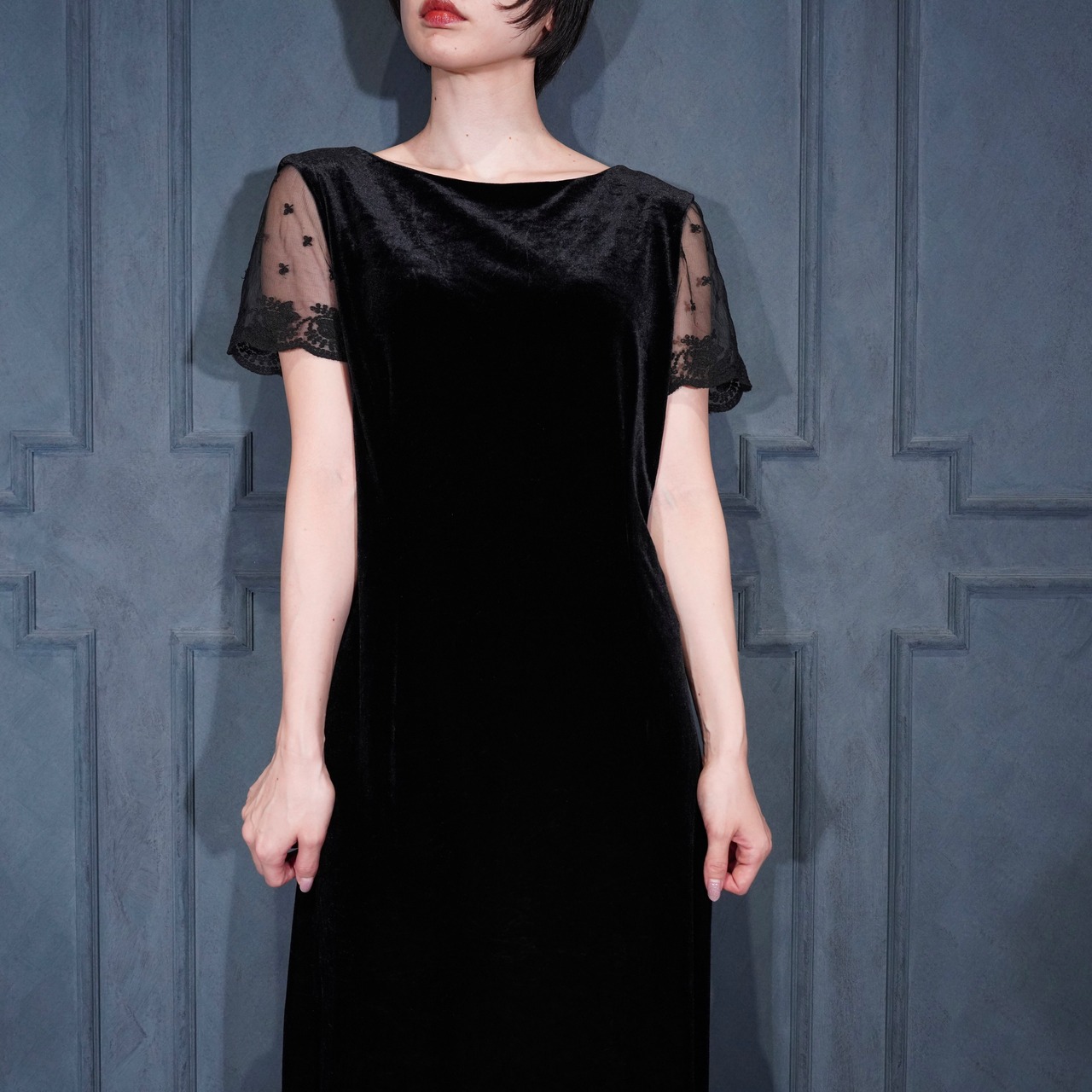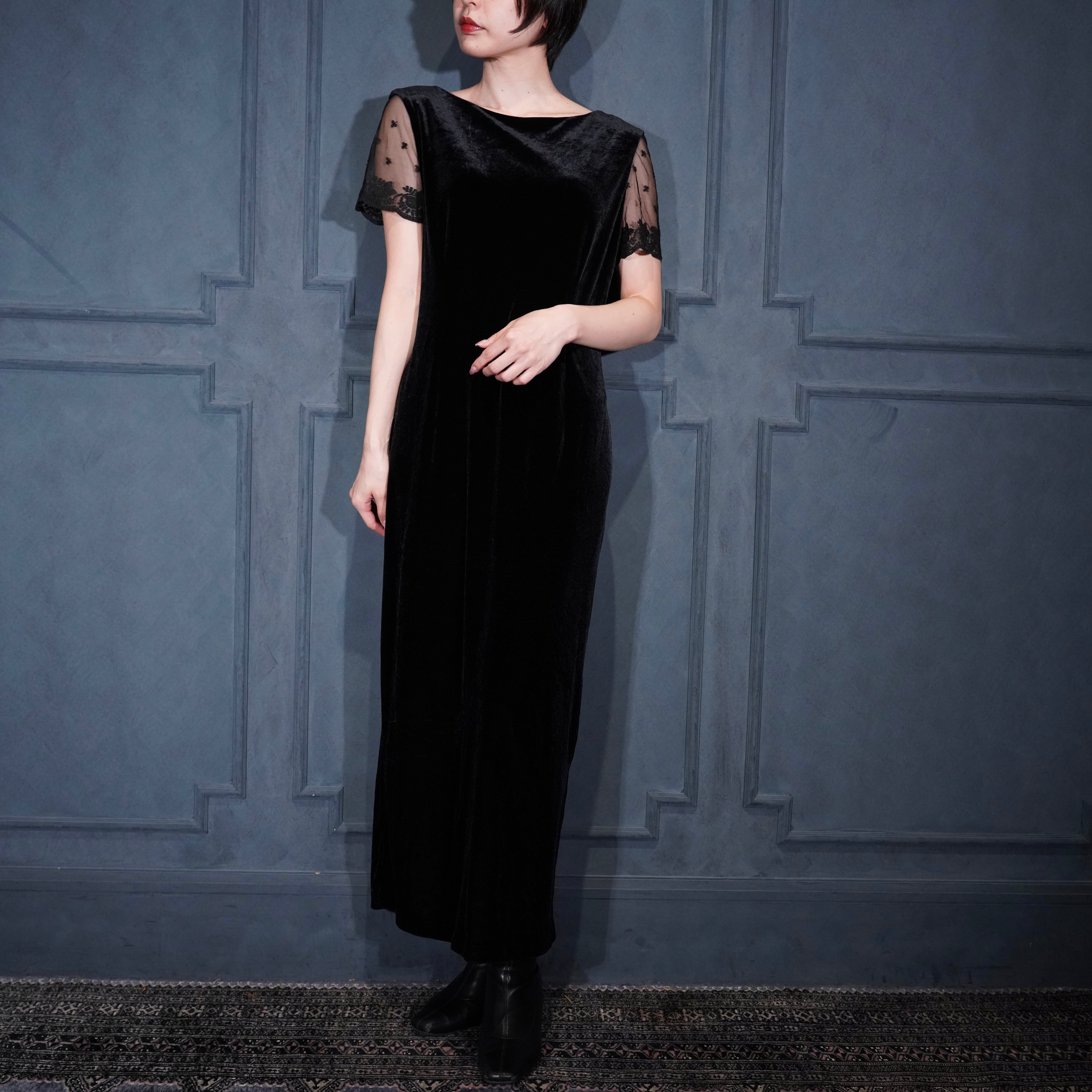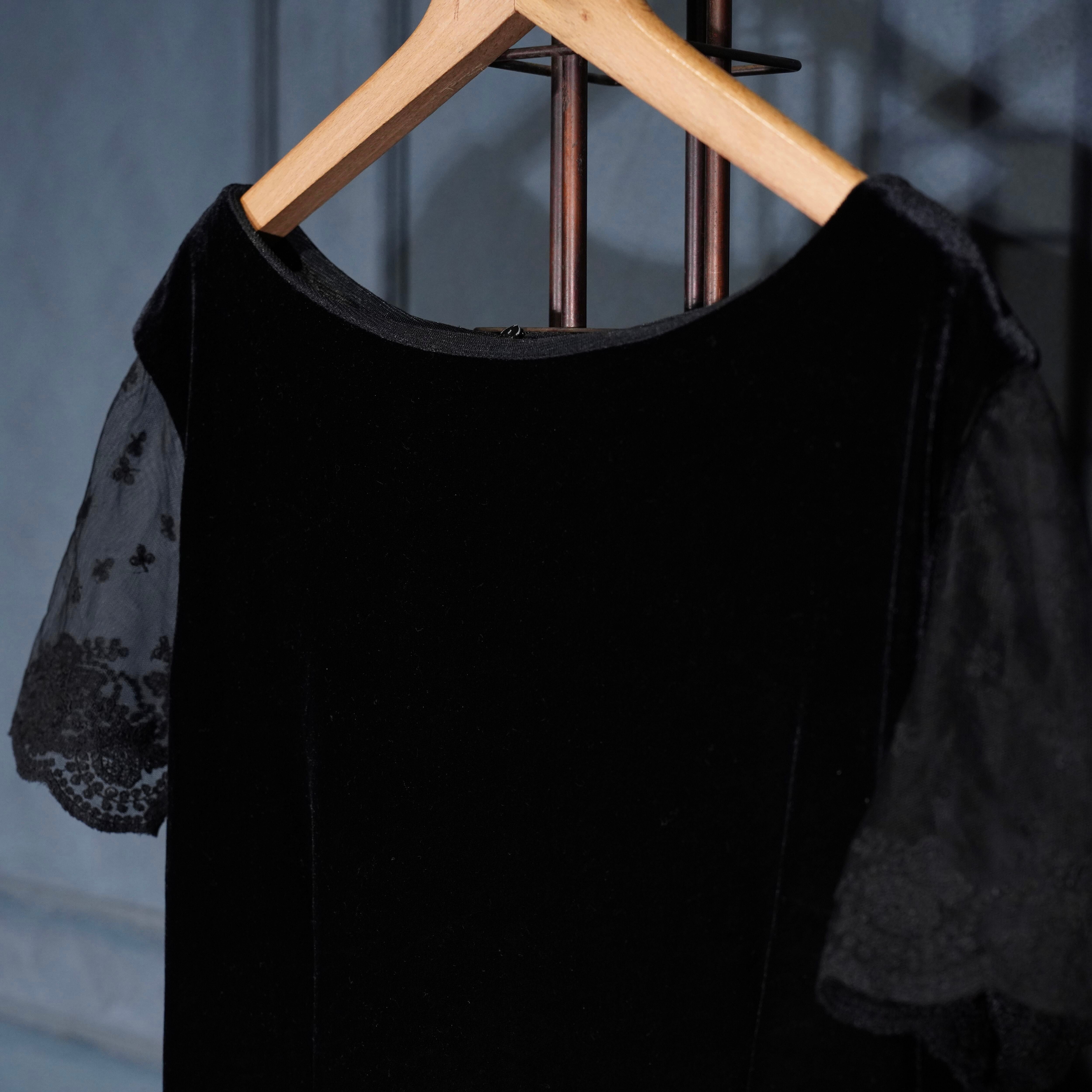 USA VINTAGE ROBBIE BEE BACK RIBBON LACE DESIGN VELOUR ONE PIECE/アメリカ古着バックリボンレースデザインベロアワンピース