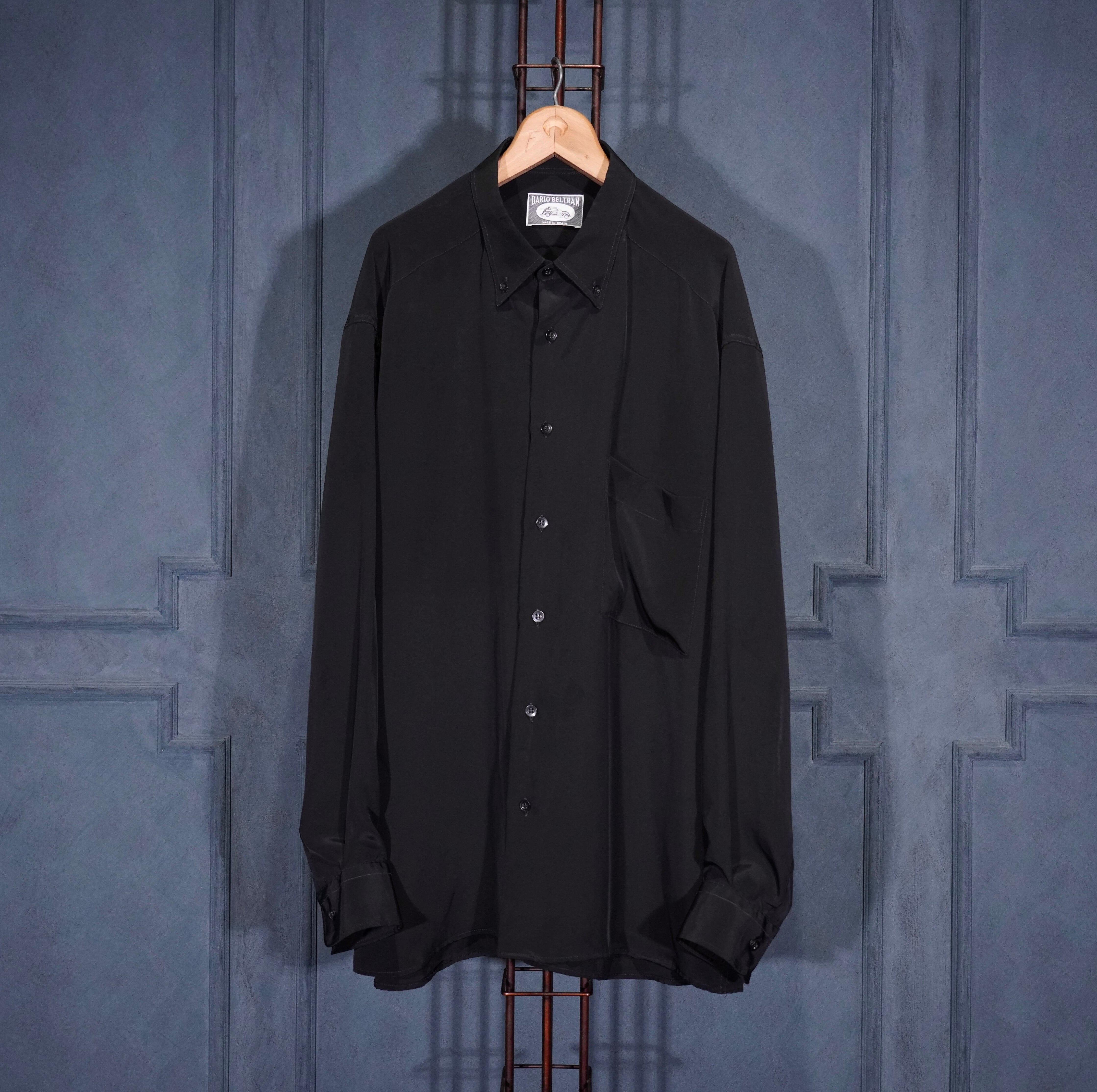 EU VINTAGE DARIO BELTRAN BLACK COLOR BD DESIGN SHIRT MADE IN SPAIN/ヨーロッパ古着ブラックカラーボタンダウンデザインシャツ