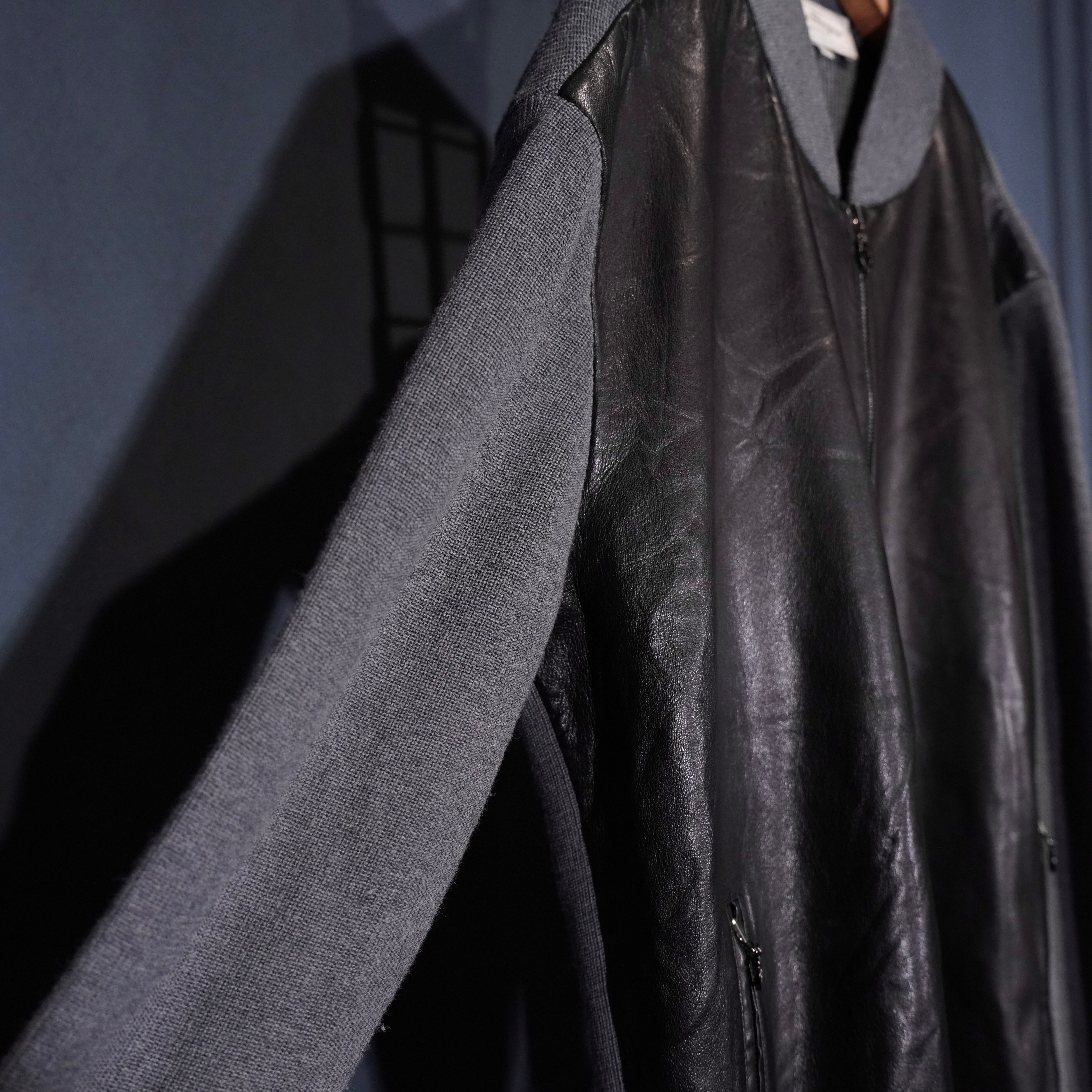 .Salvatore Ferragamo LEATHER SWITCHED DRIVERS KNIT BLOUSON MADE IN ITALY/サルヴァトーレフェラガモレザー切替ドライバーズニットブルゾン 2000000073583