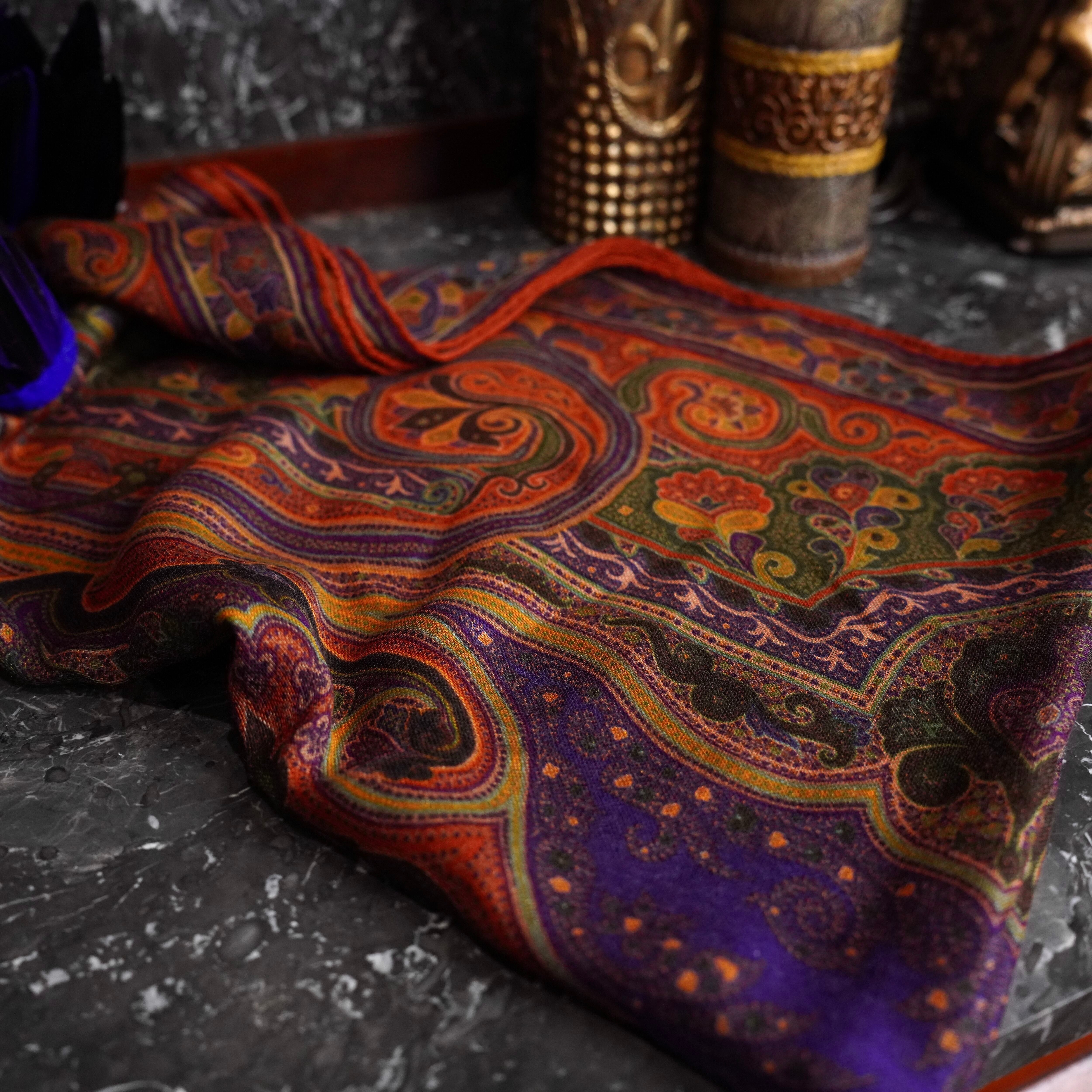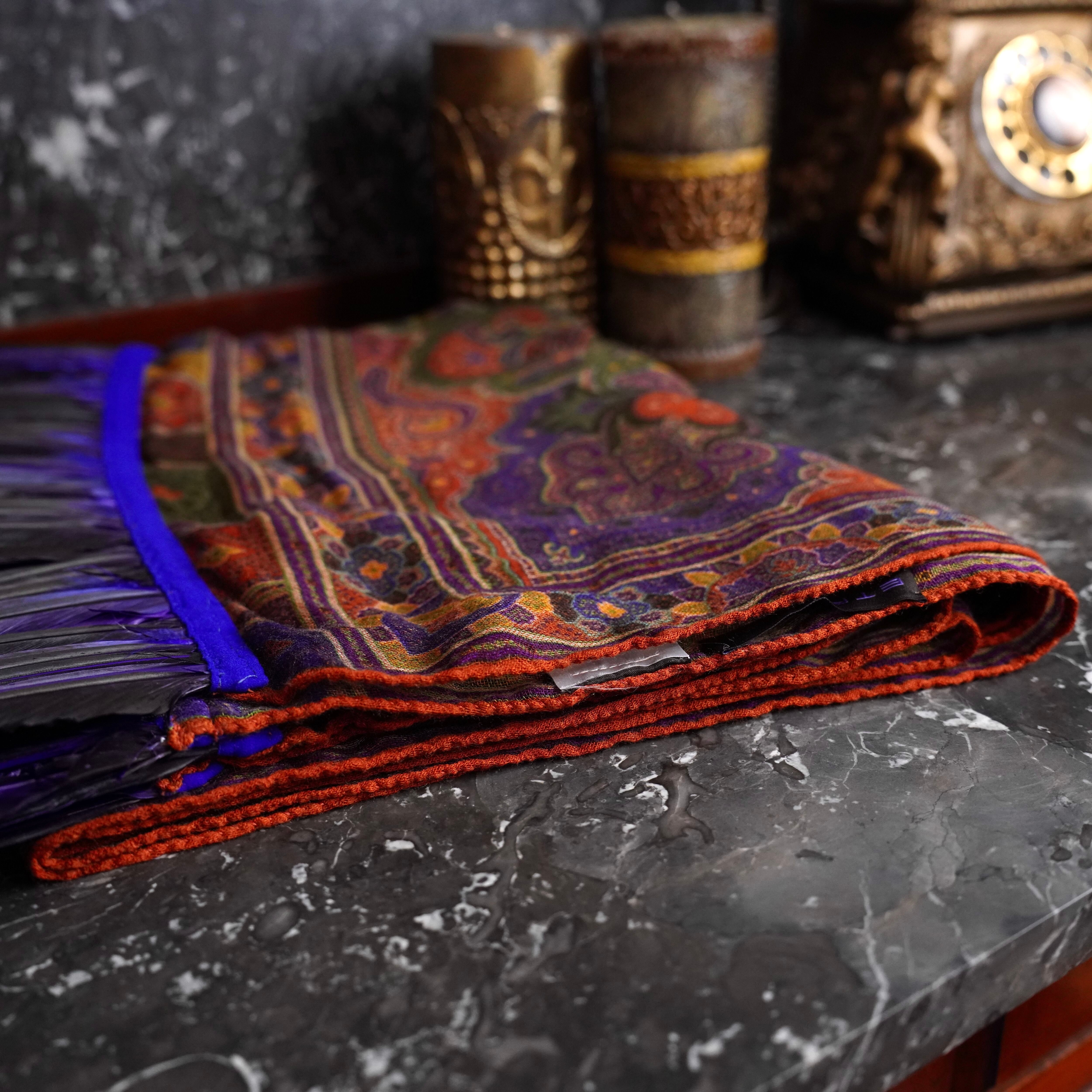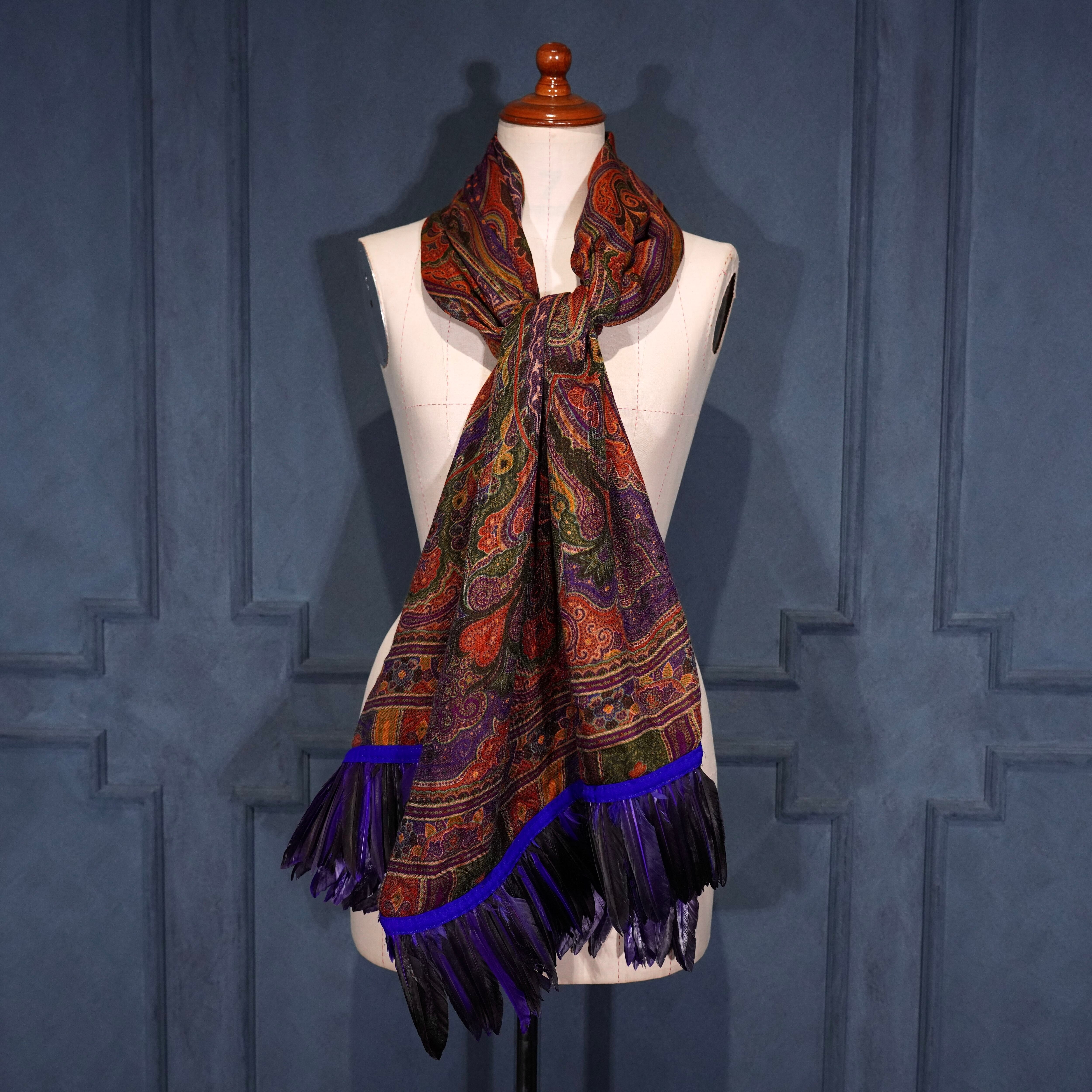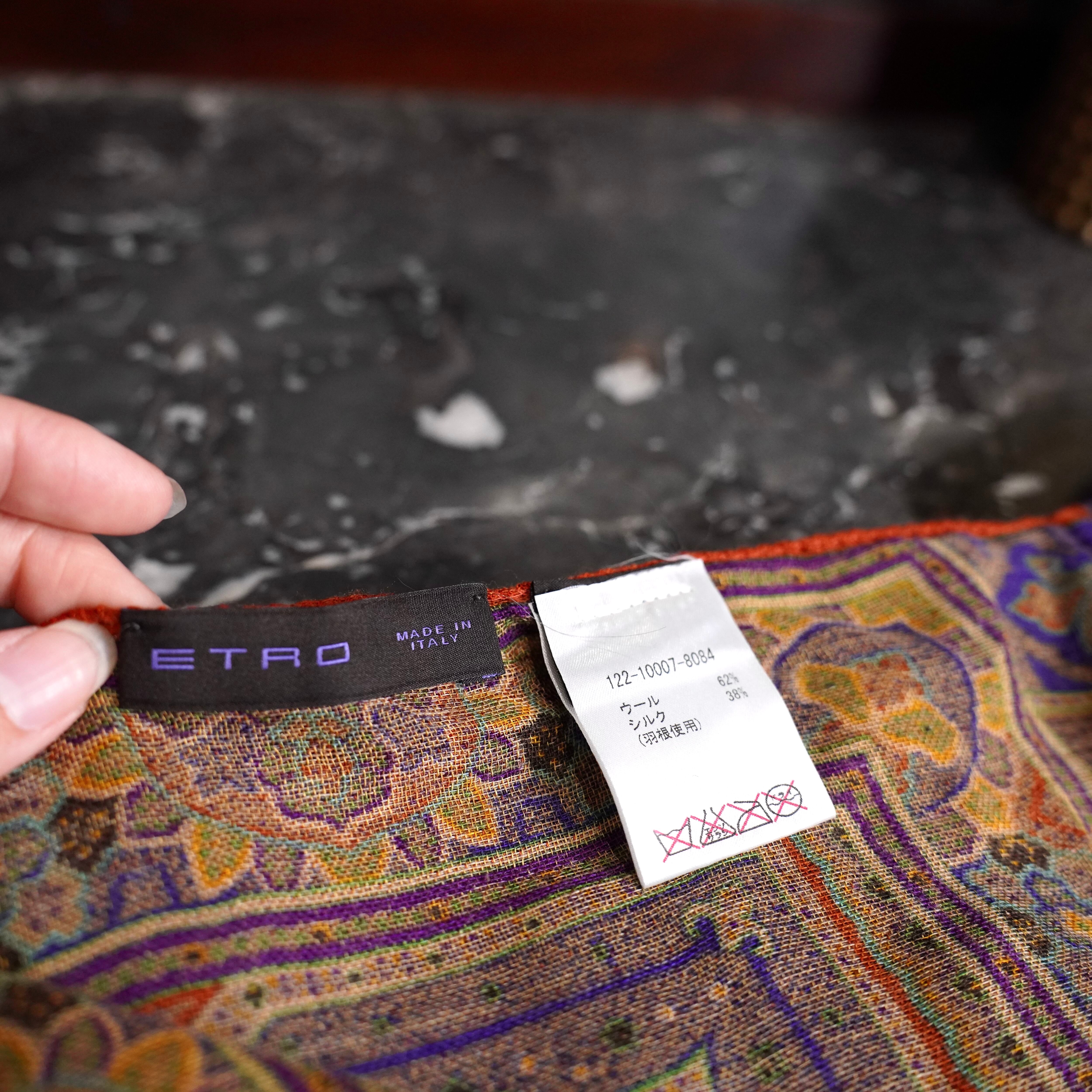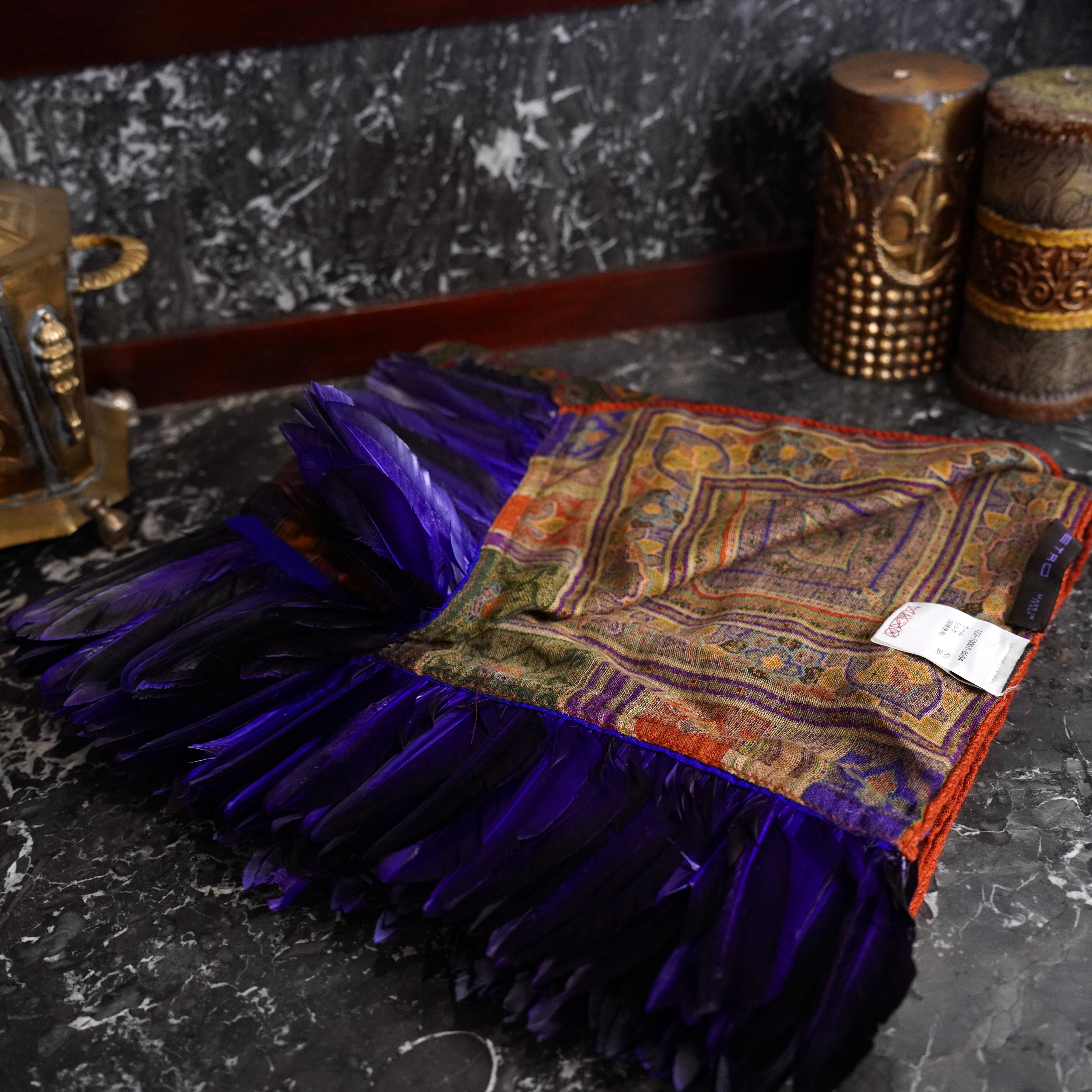 ETRO PAISLEY PATTERNED SILK WOOL FEATHER DESIGN SHAWL/エトロペイズリー柄シルクウールフェザーデザインショール(マフラー/ストール)