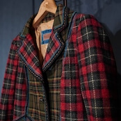EU VINTAGE MY MERRY HAT CHECK PATTERNED PATCHWORK DESIGN WOOL TAILORED JACKET/ヨーロッパ古着チェック柄パッチワークデザインウールテーラードジャケット