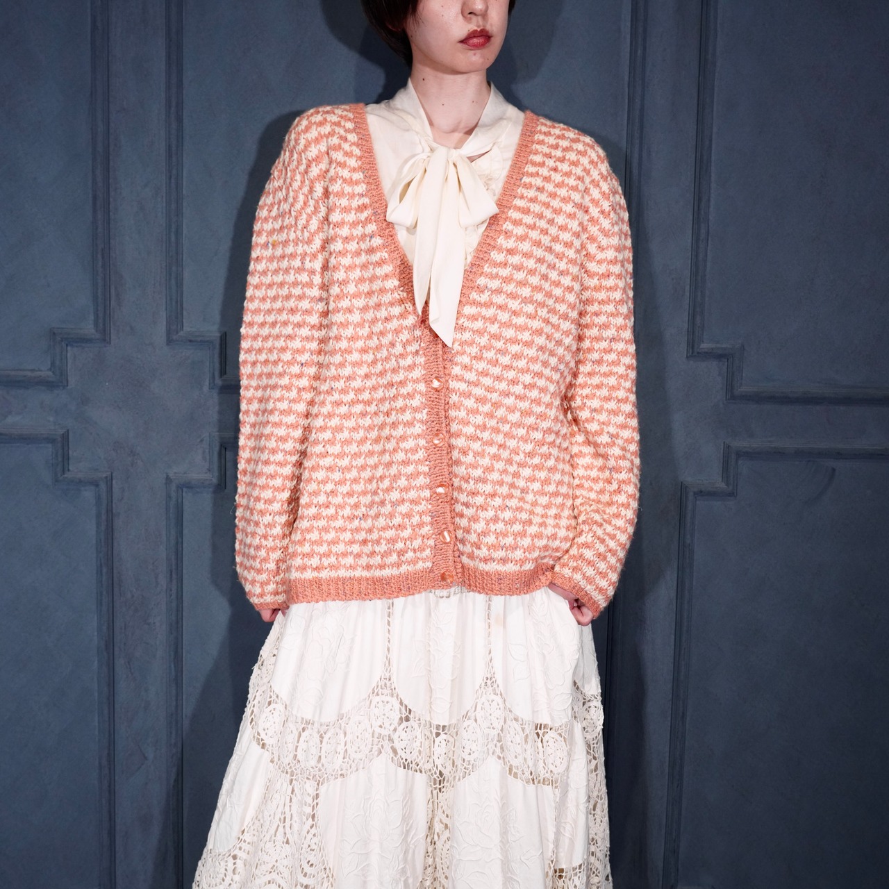 USA VINTAGE BIRDS EYE LIKE DESIGN COTTON KNIT CARDIGAN/アメリカ古着バーズアイ風コットンニットカーディガン