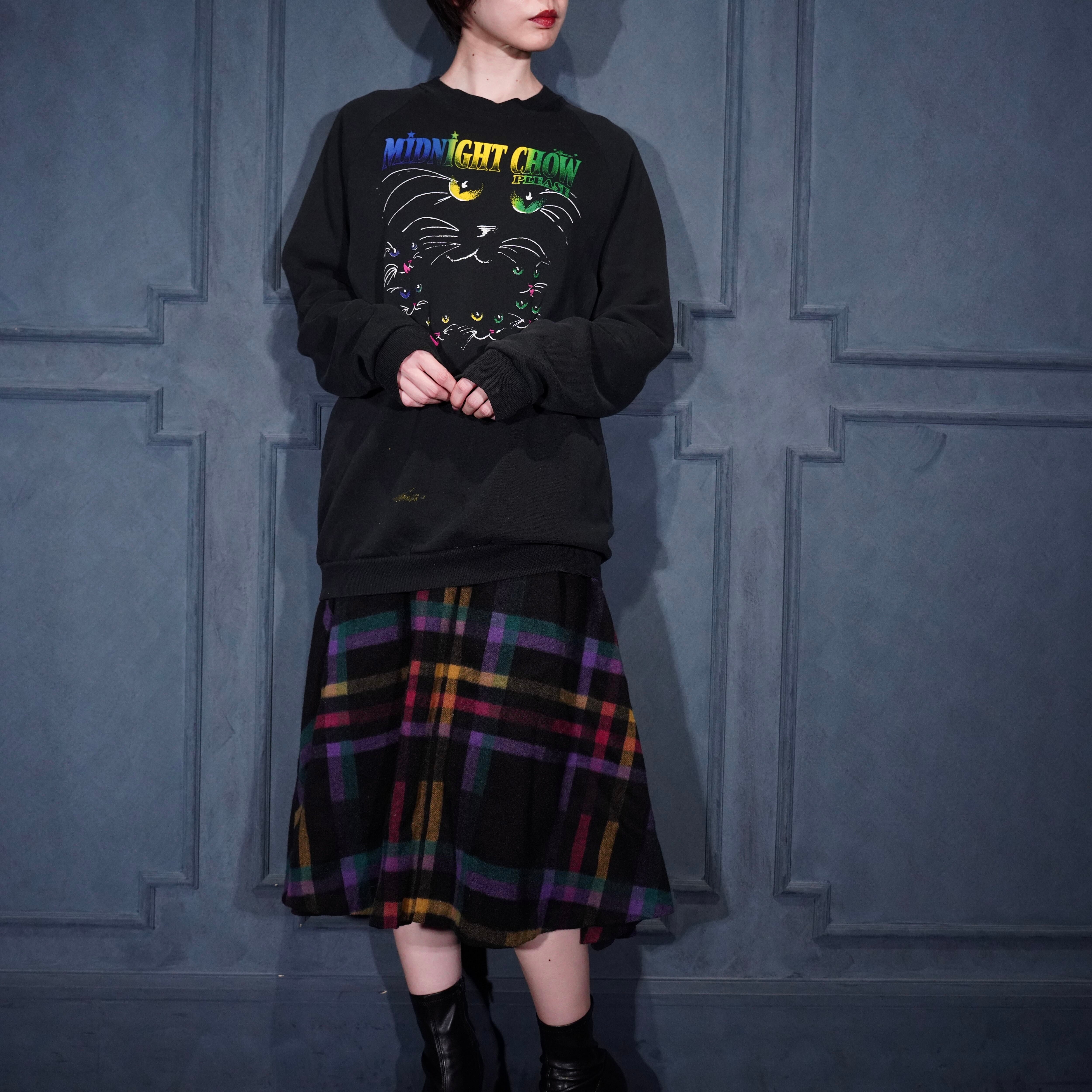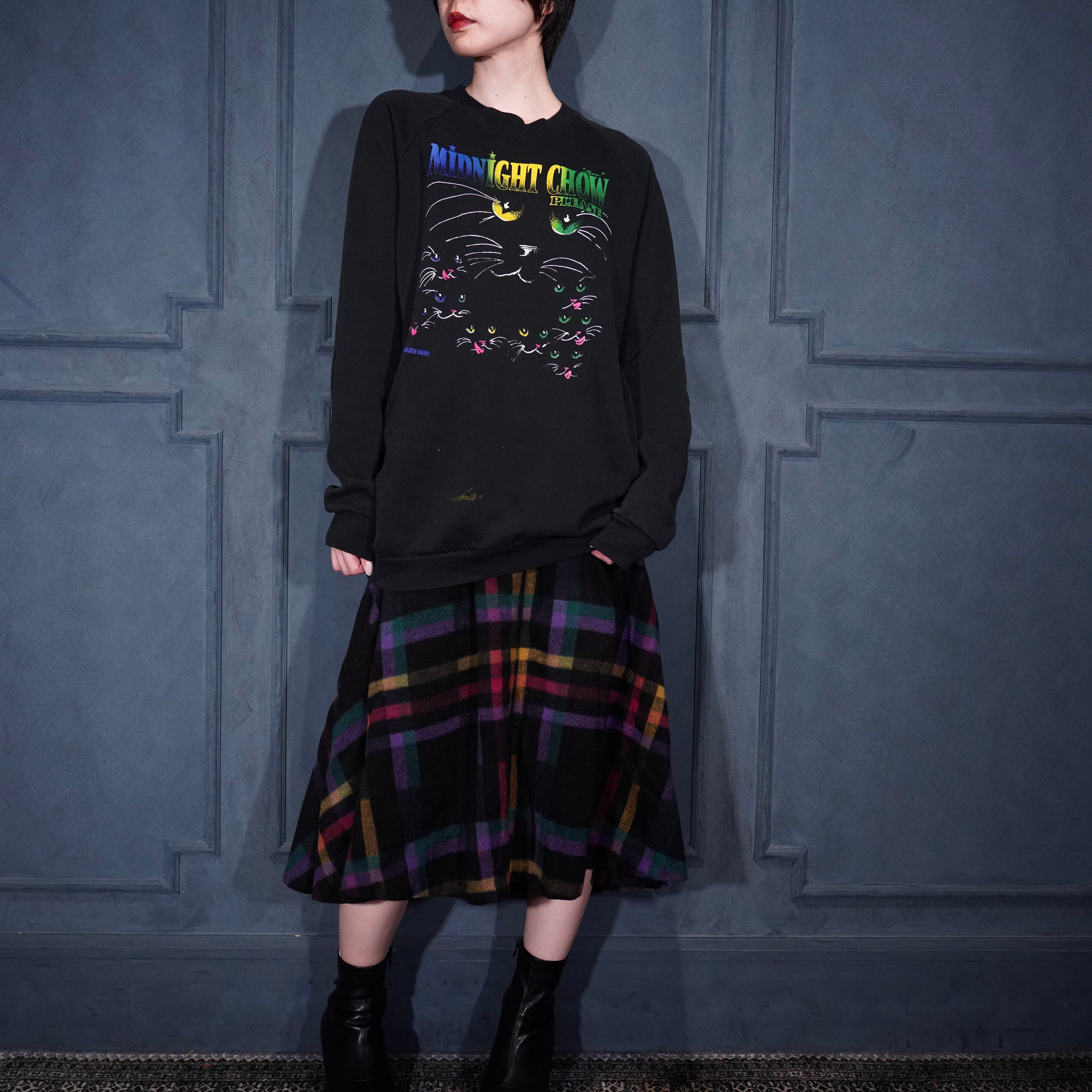 80's USA VINTAGE JERZEES CATS PRINT DESIGN SWEAT SHIRT/80年代アメリカ古着にゃんこプリントデザインスウェット