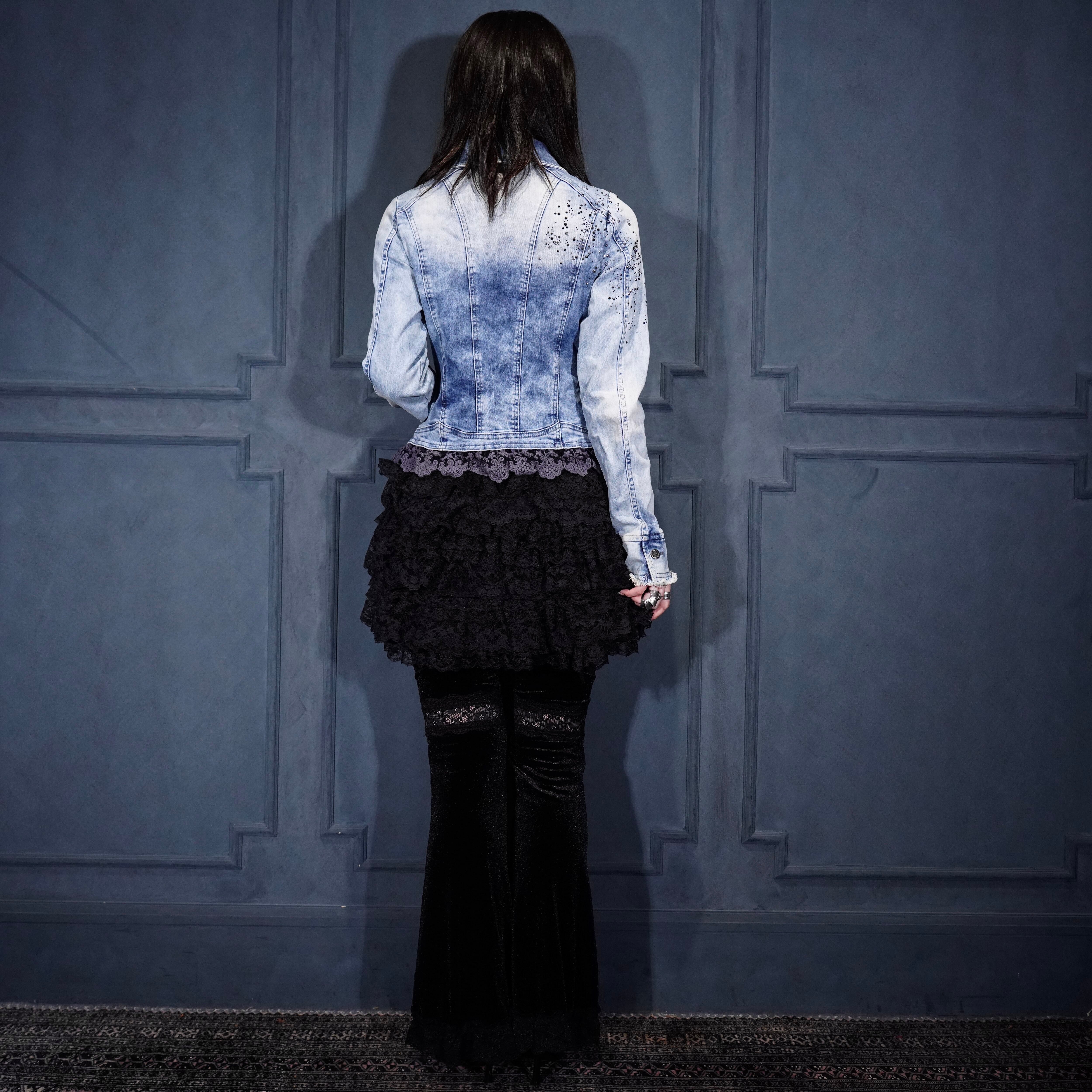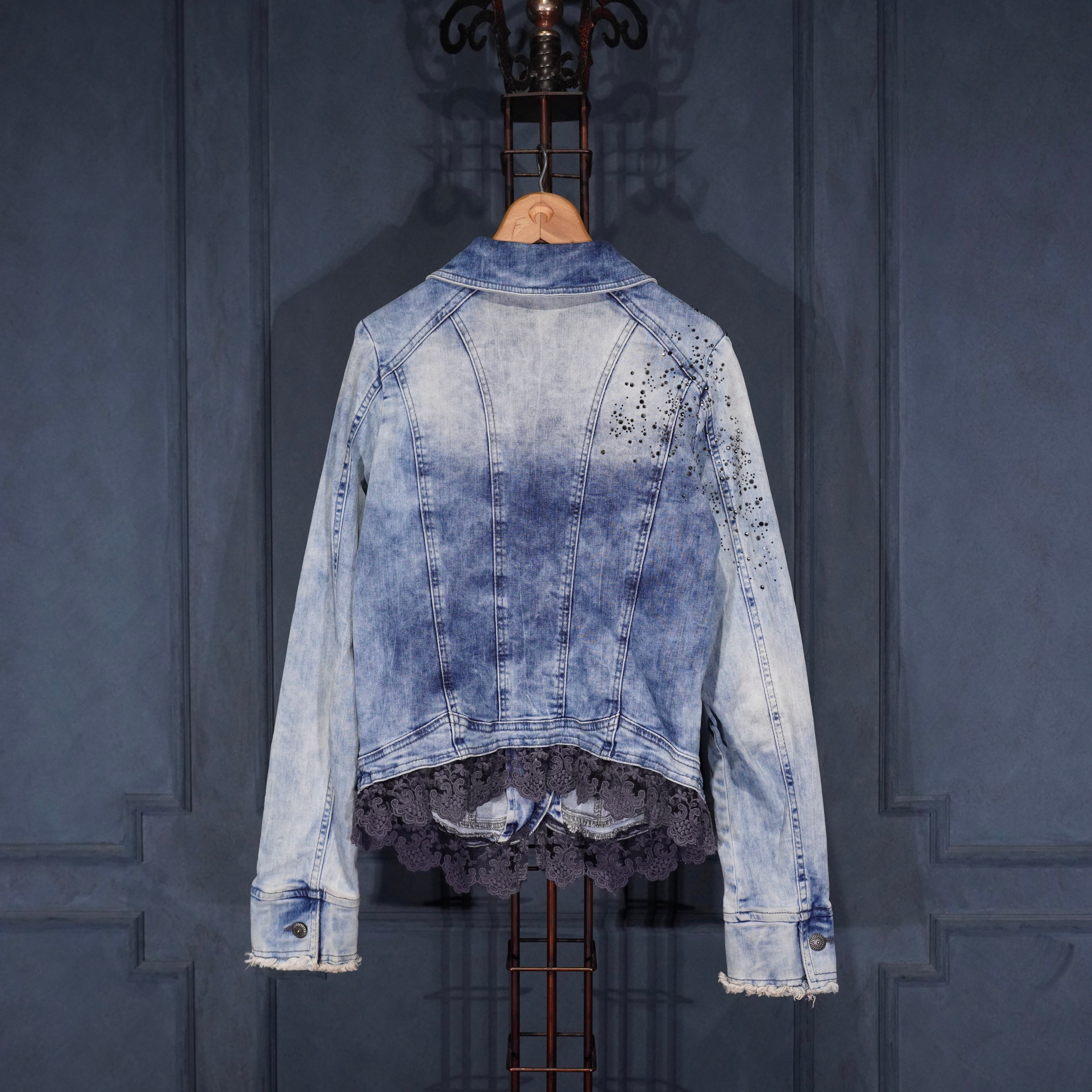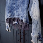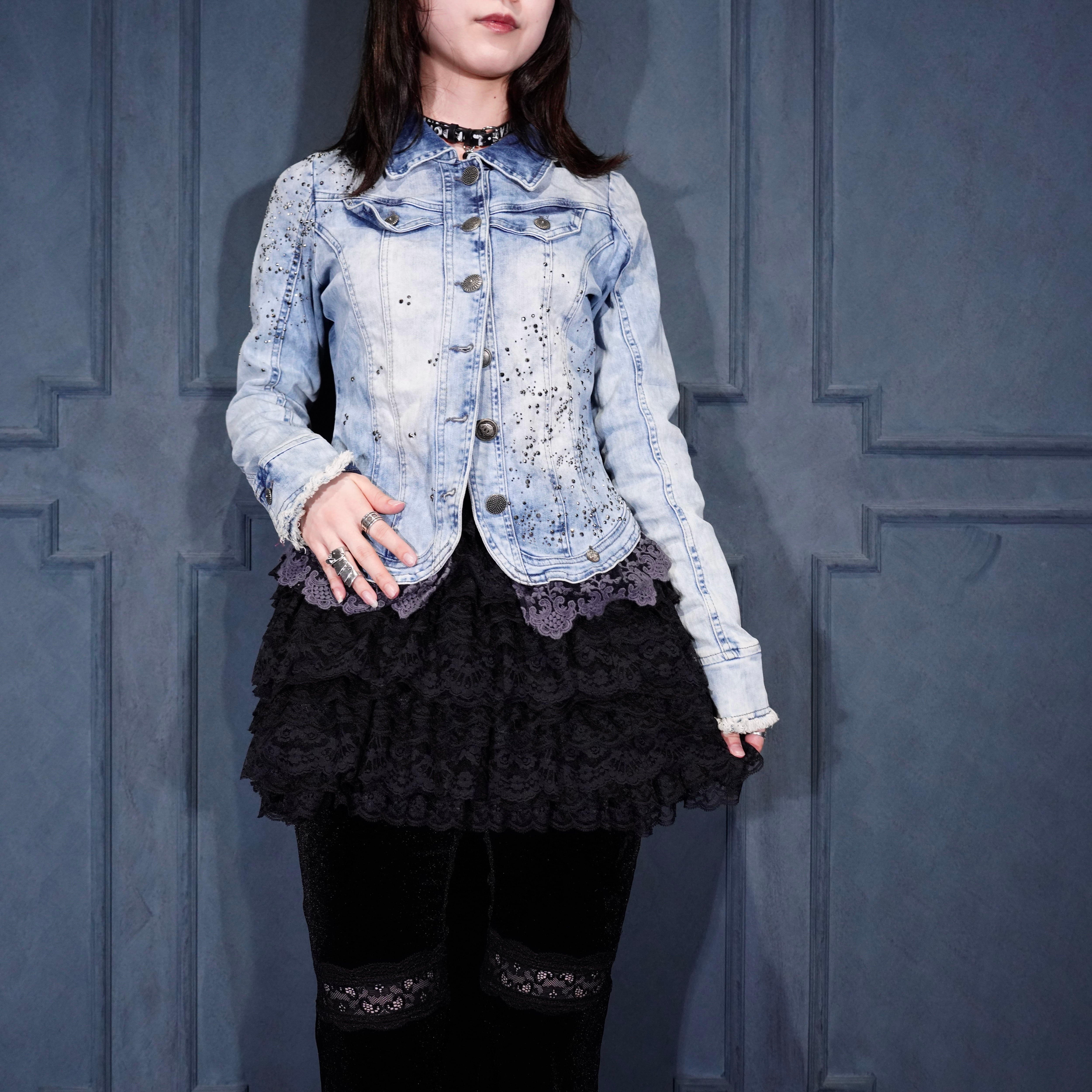 EU VINTAGE tredy LINESTONE LACE DESIGN WASHED DENIME SHIRT JACKET/ヨーロッパ古着ラインストーンレースデザインウォッシュドデニムシャツジャケット