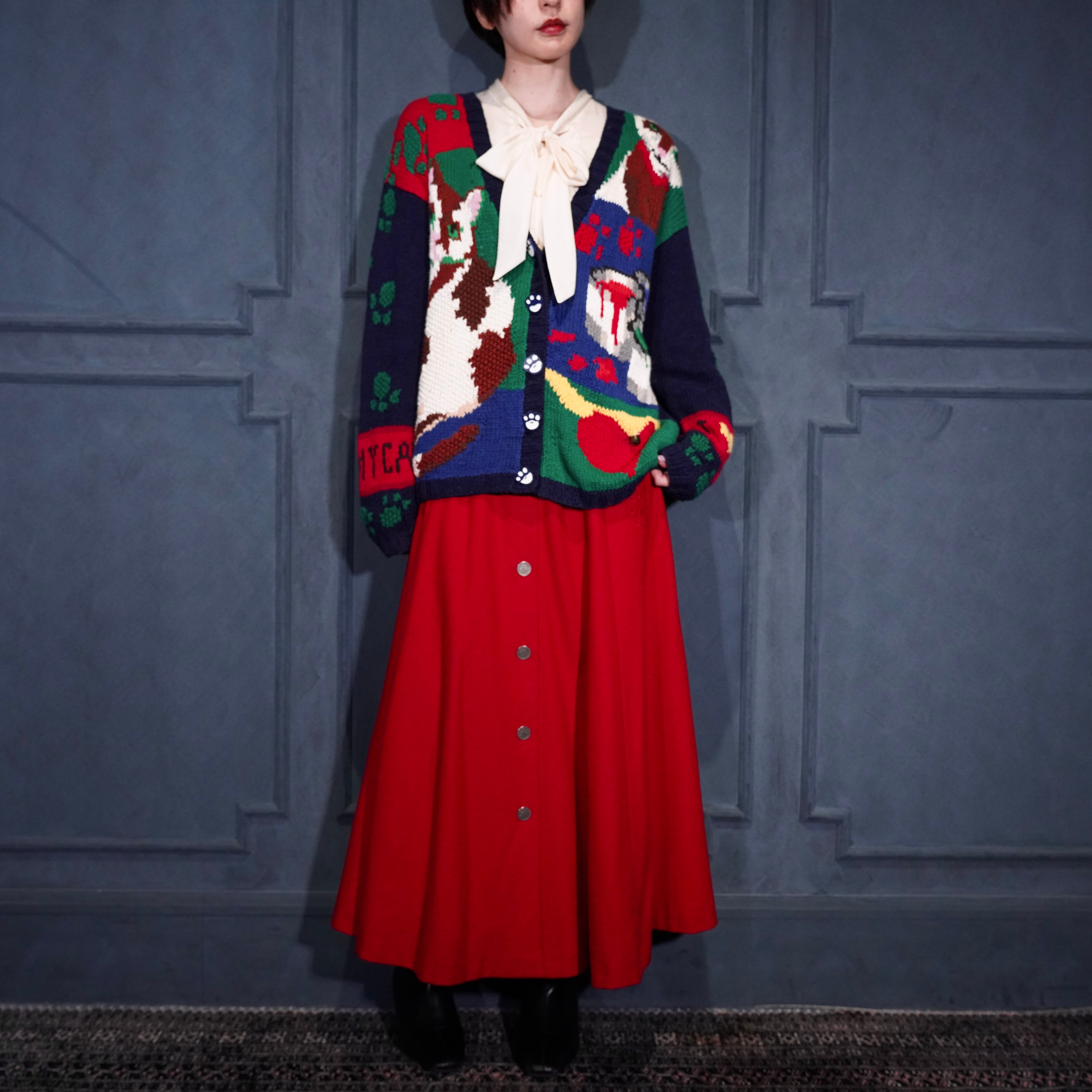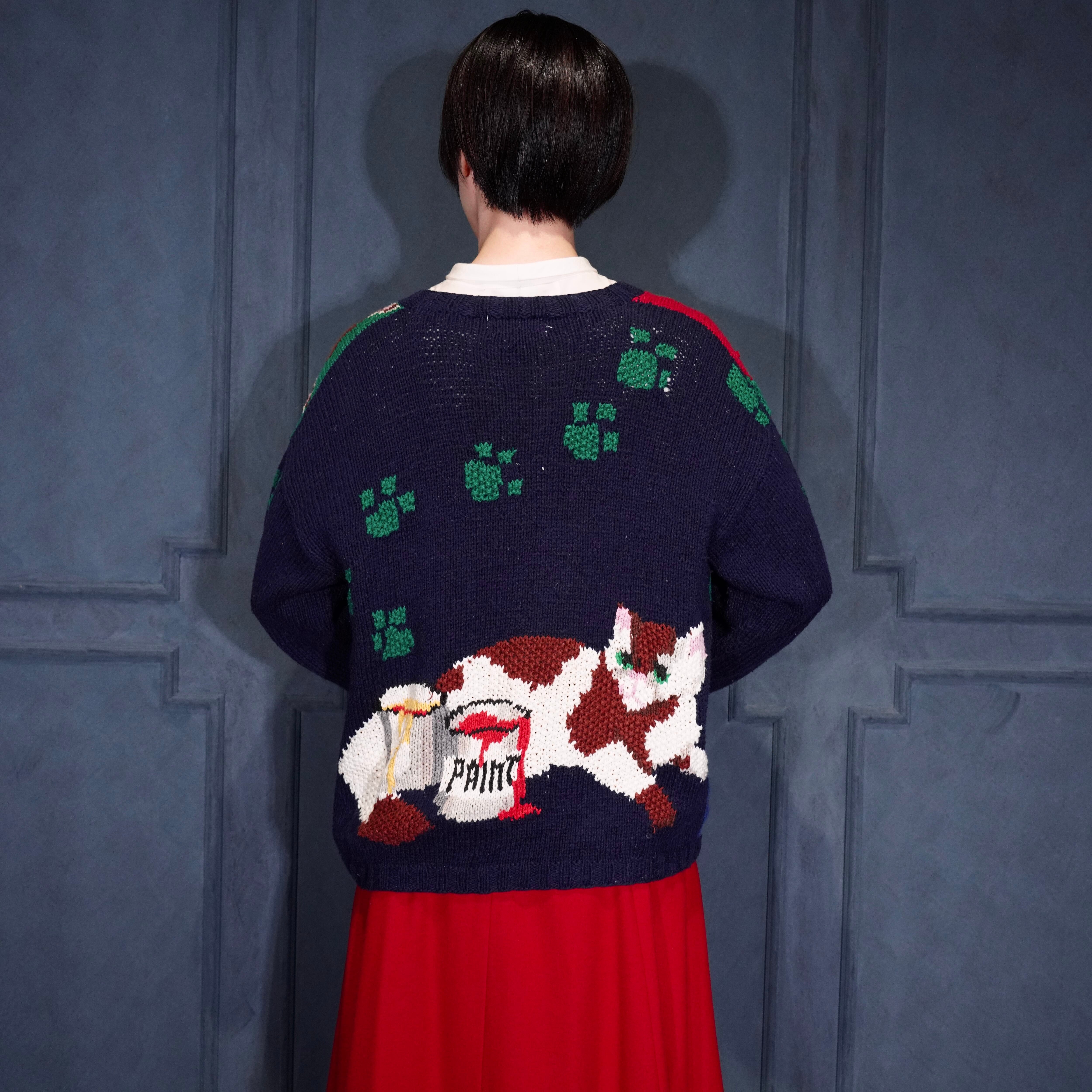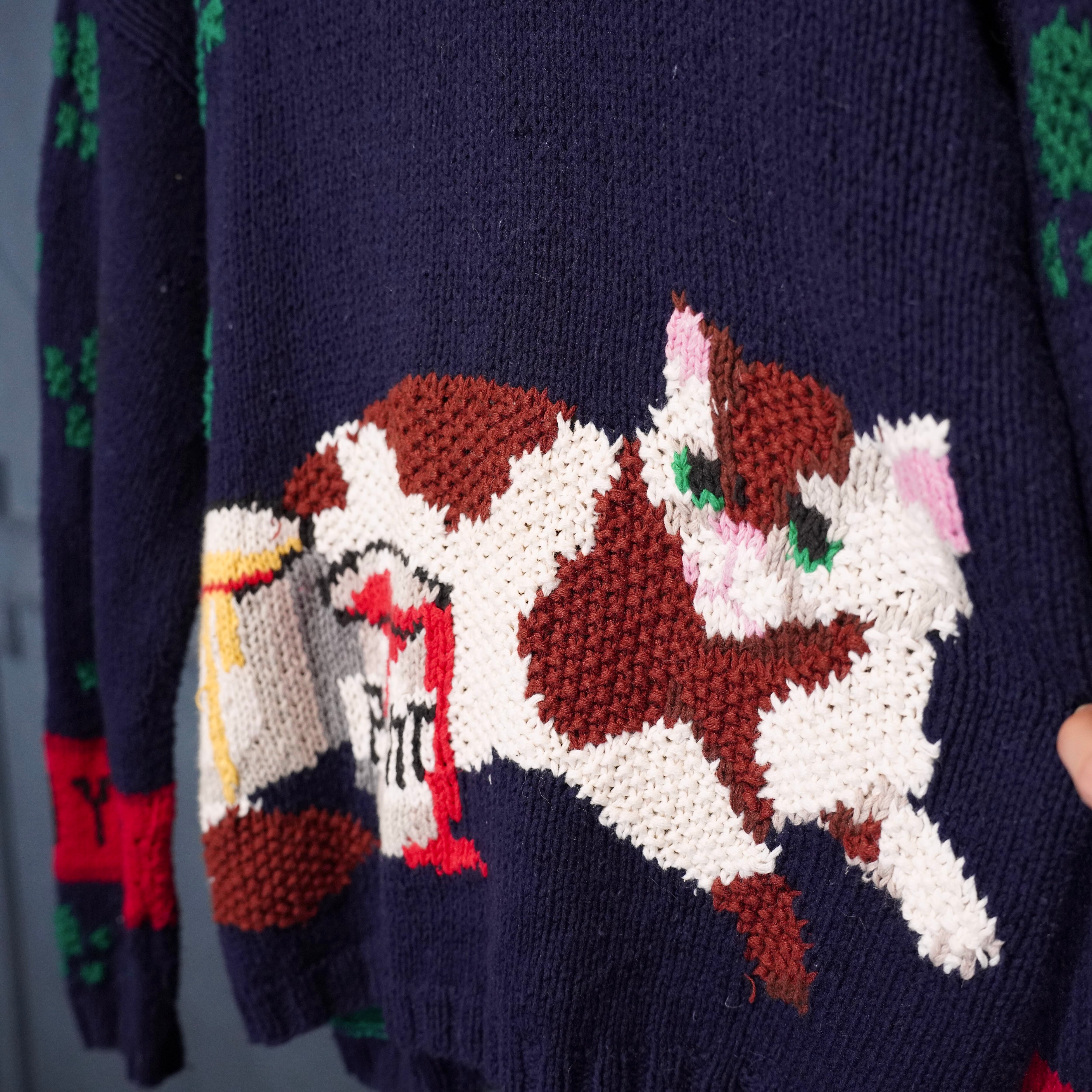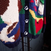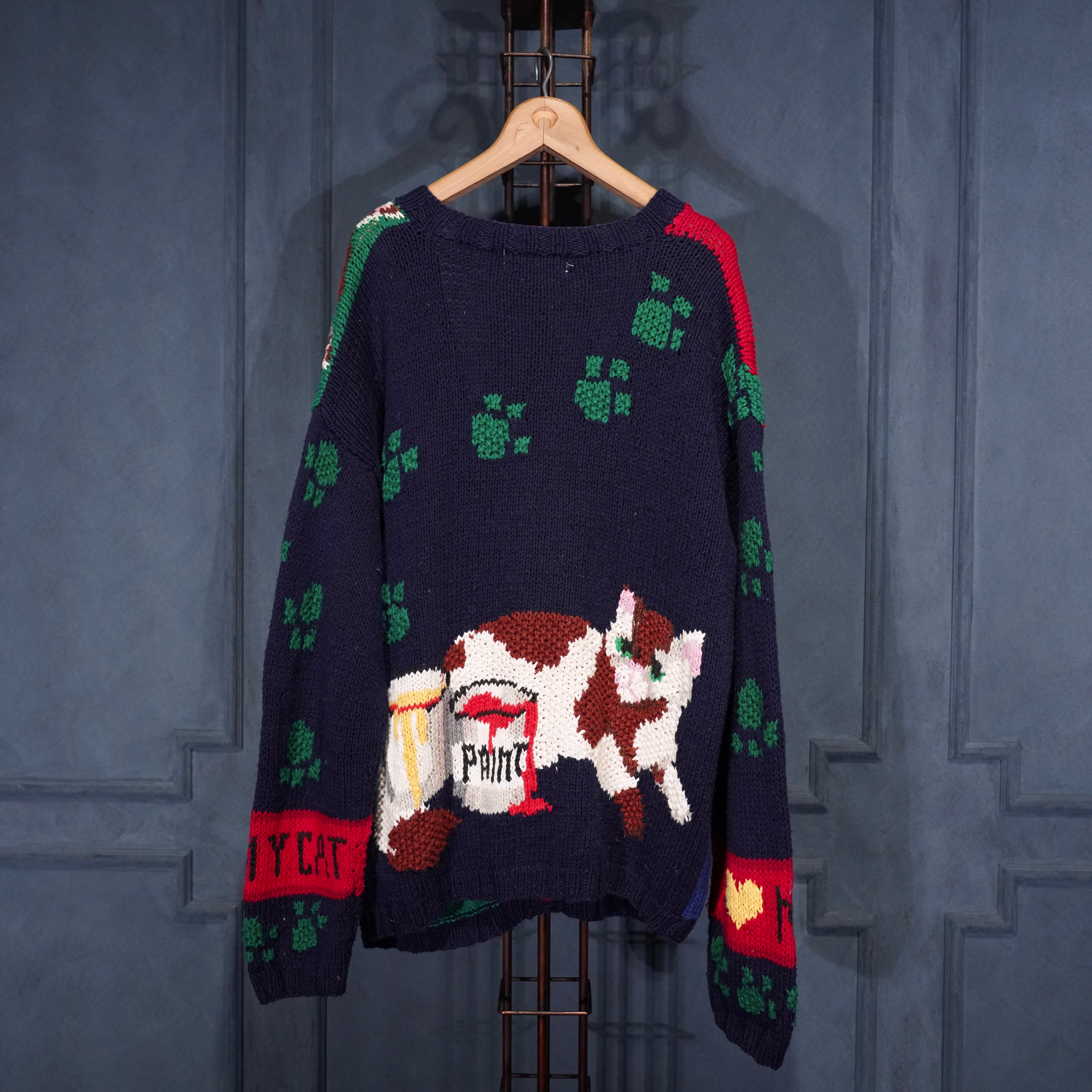 USA VINTAGE ALEXANdRA BARILETT for the eagle's eye CAT DESIGN COTTON RAMIE HAND KNIT CARDIGAN/アメリカ古着にゃんこデザインコットンラミーハンドニットカーディガン